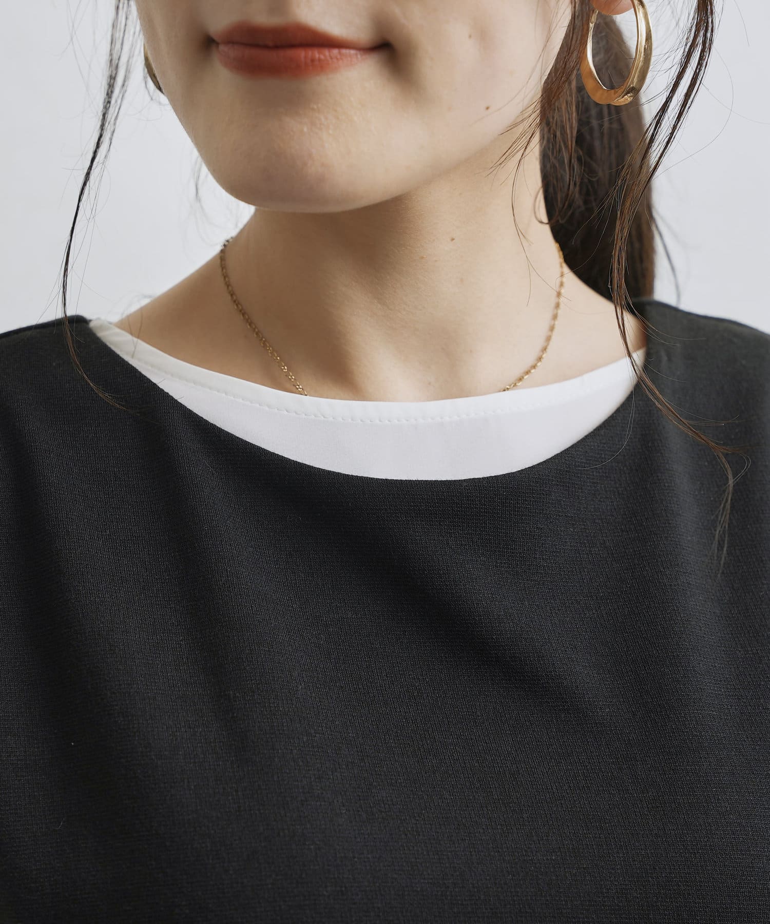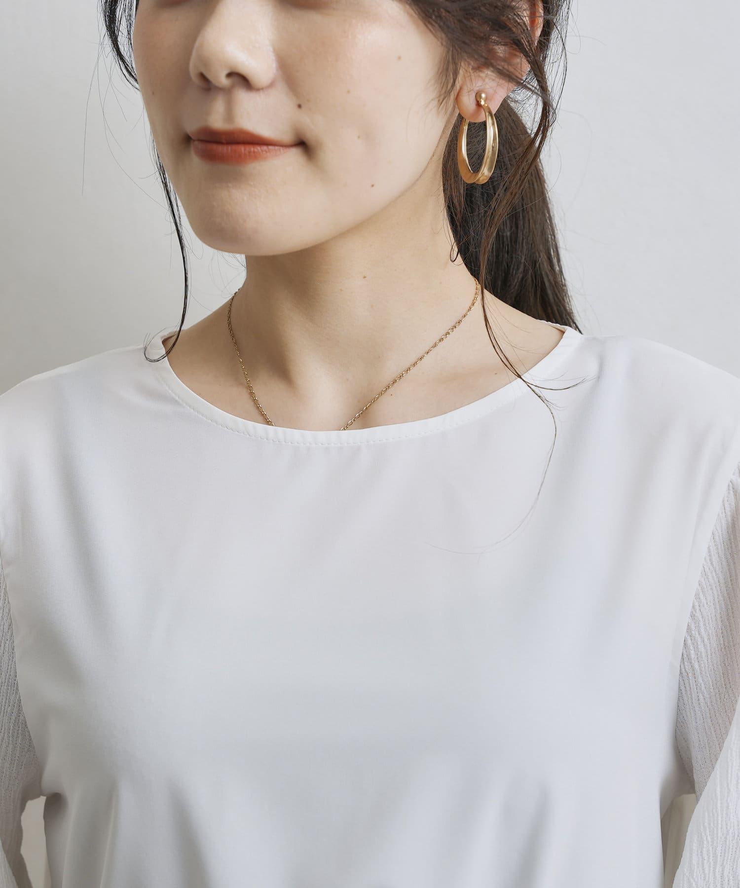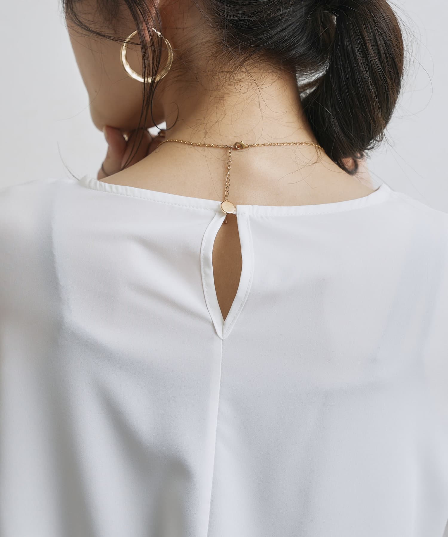 首元がシンプルなのでネックレスなどをプラスしてもお洒落に仕上がります。