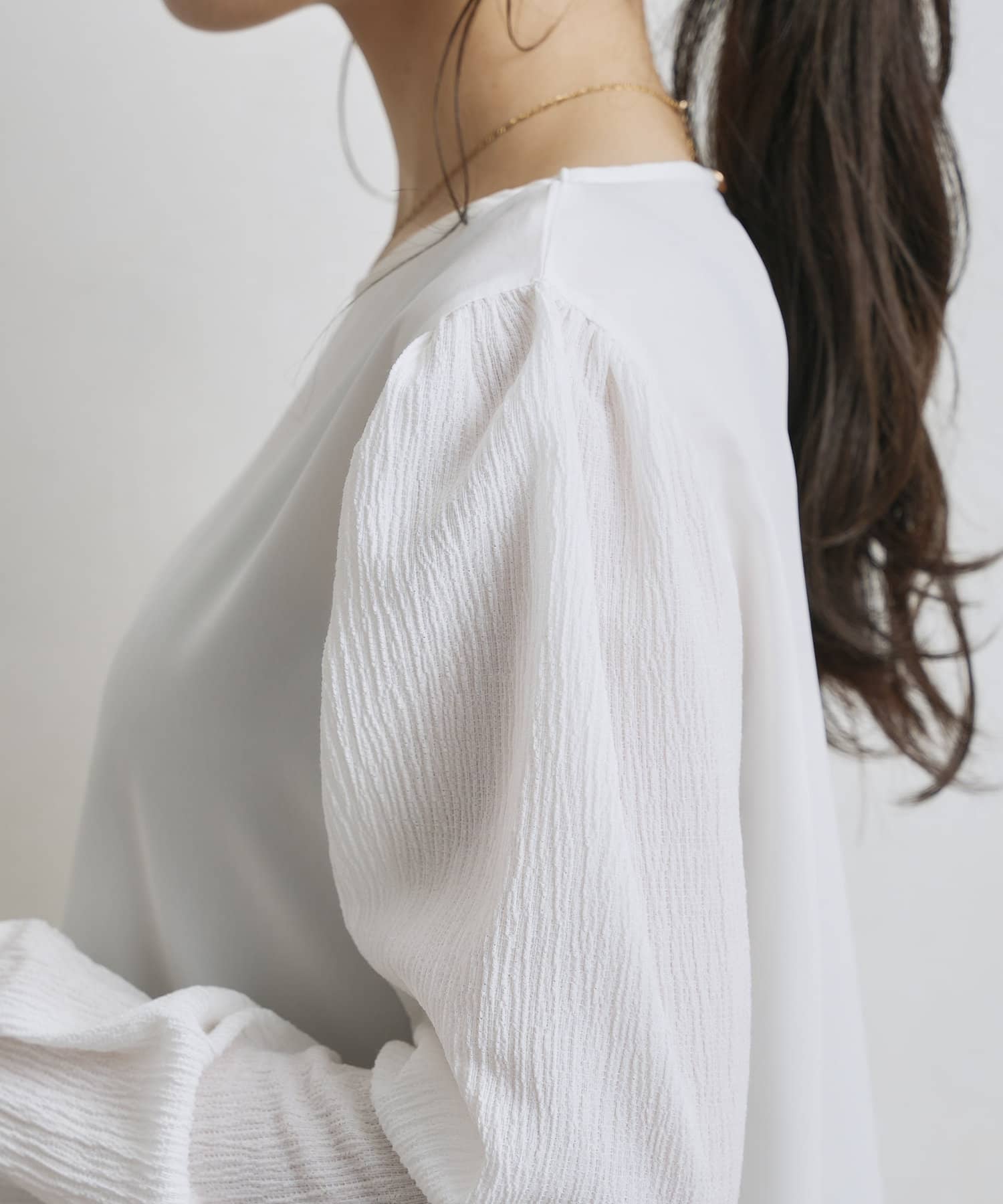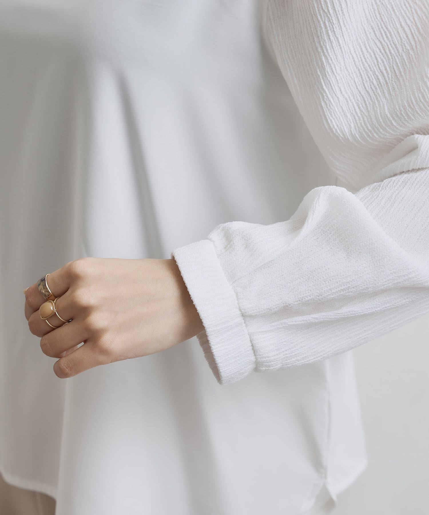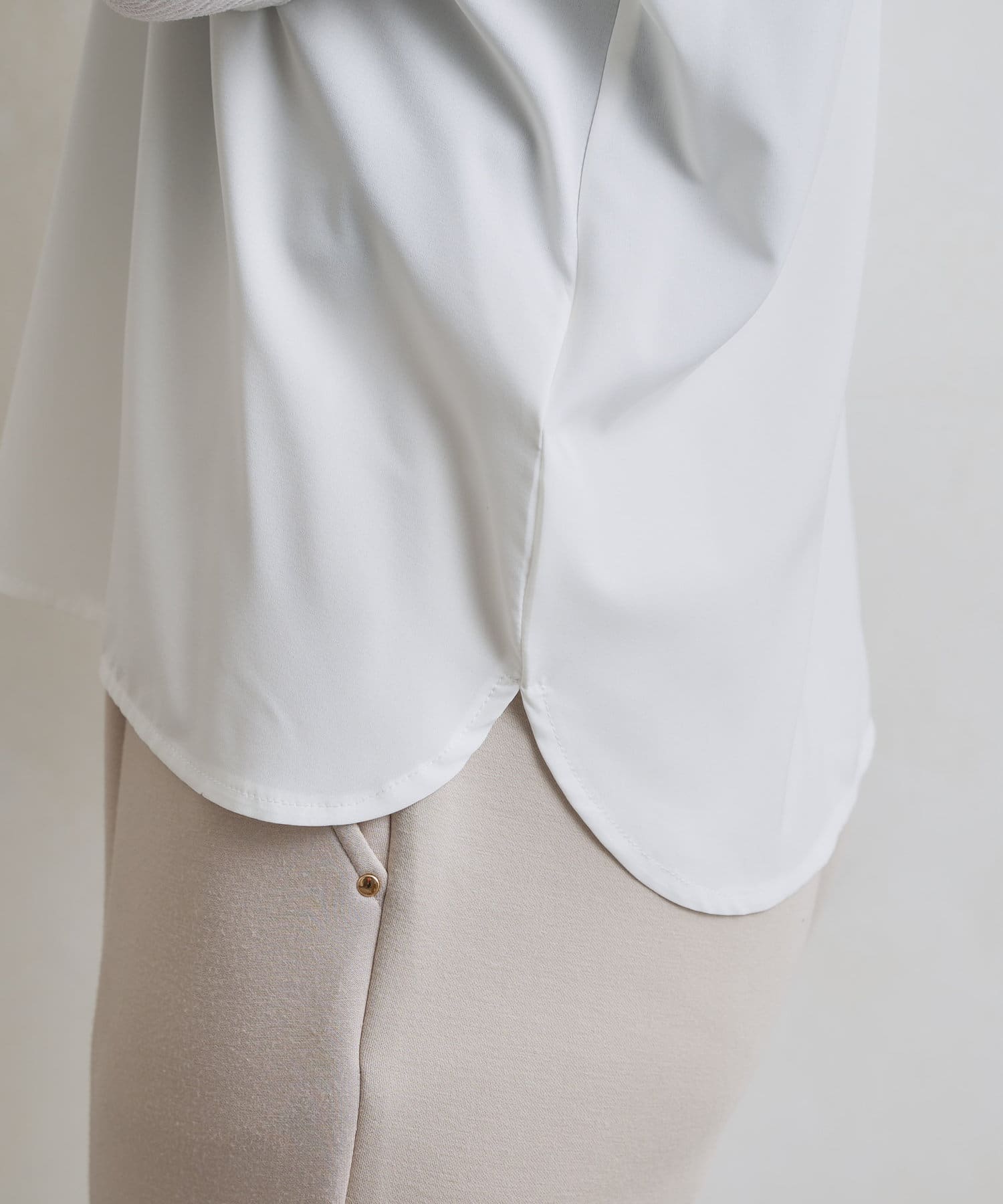 首元がシンプルなのでネックレスなどをプラスしてもお洒落に仕上がります。