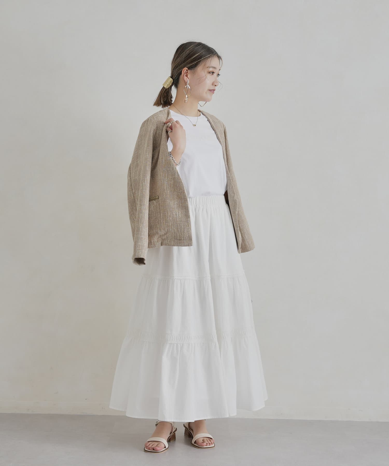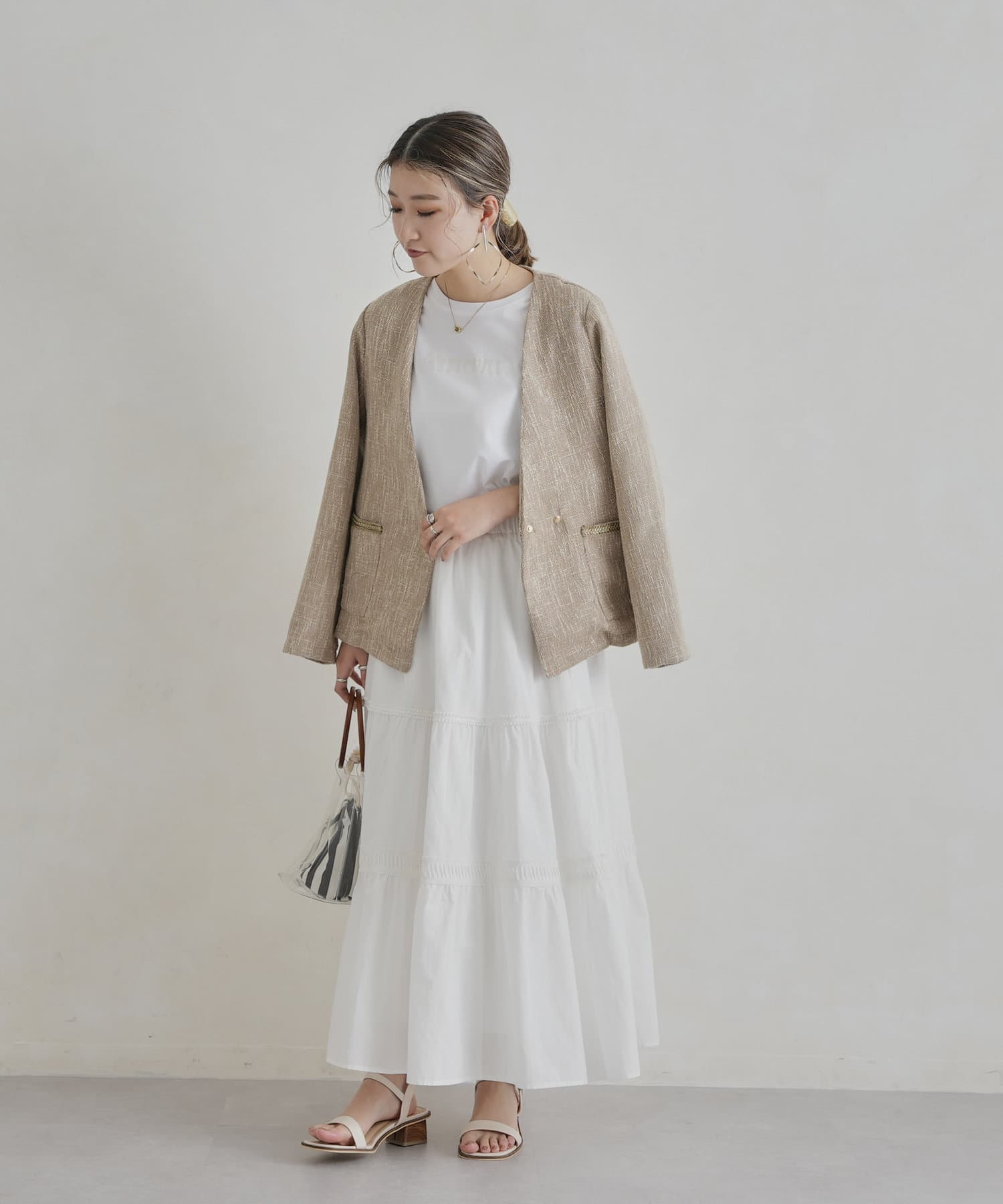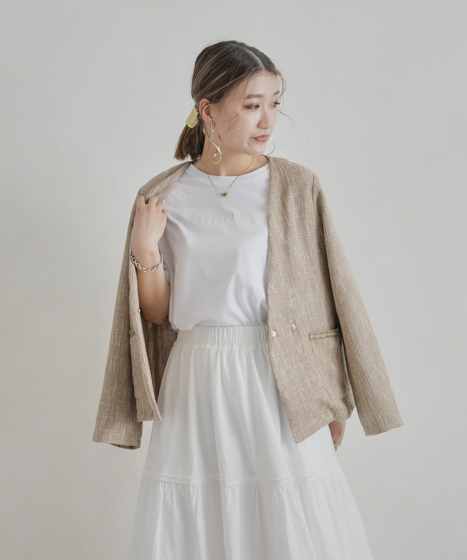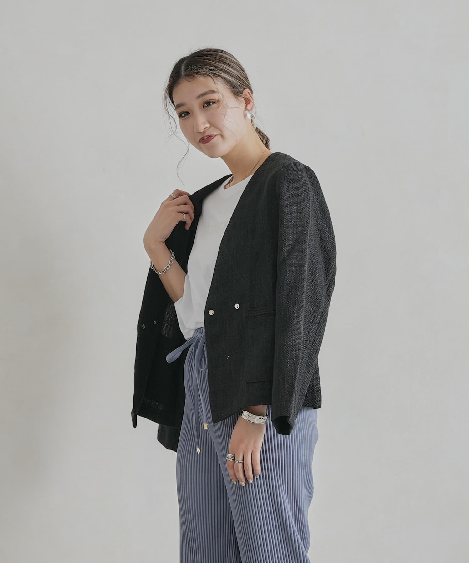 ・インナーにはブラウスやカジュアルにTシャツ合わせもおすすめです。