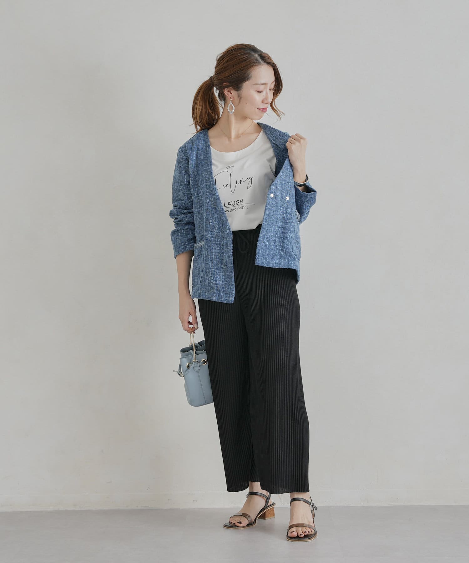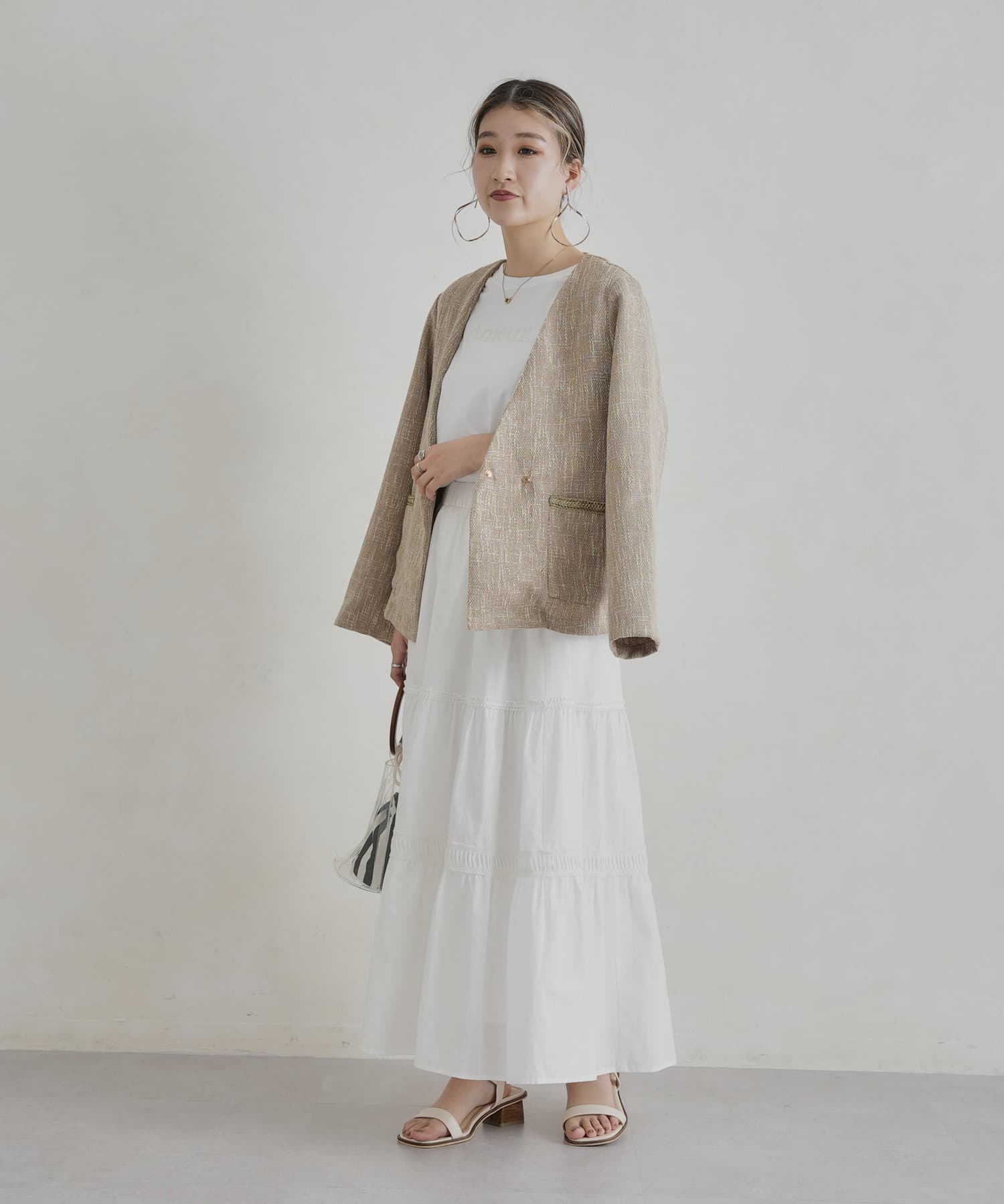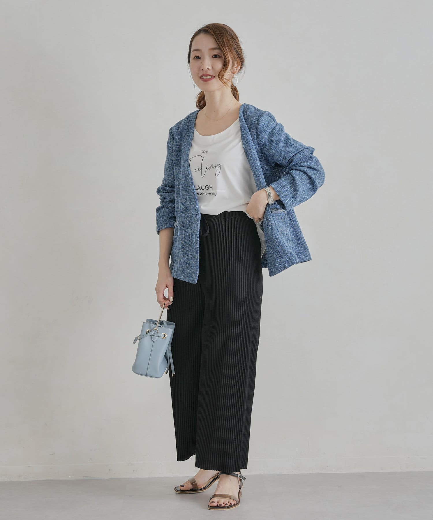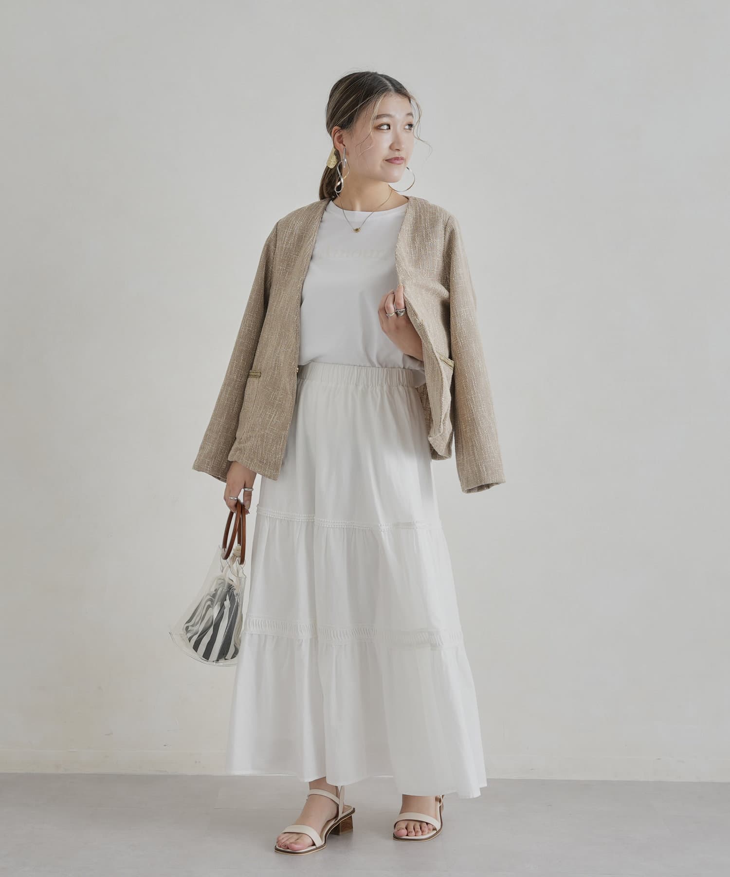 ・インナーにはブラウスやカジュアルにTシャツ合わせもおすすめです。