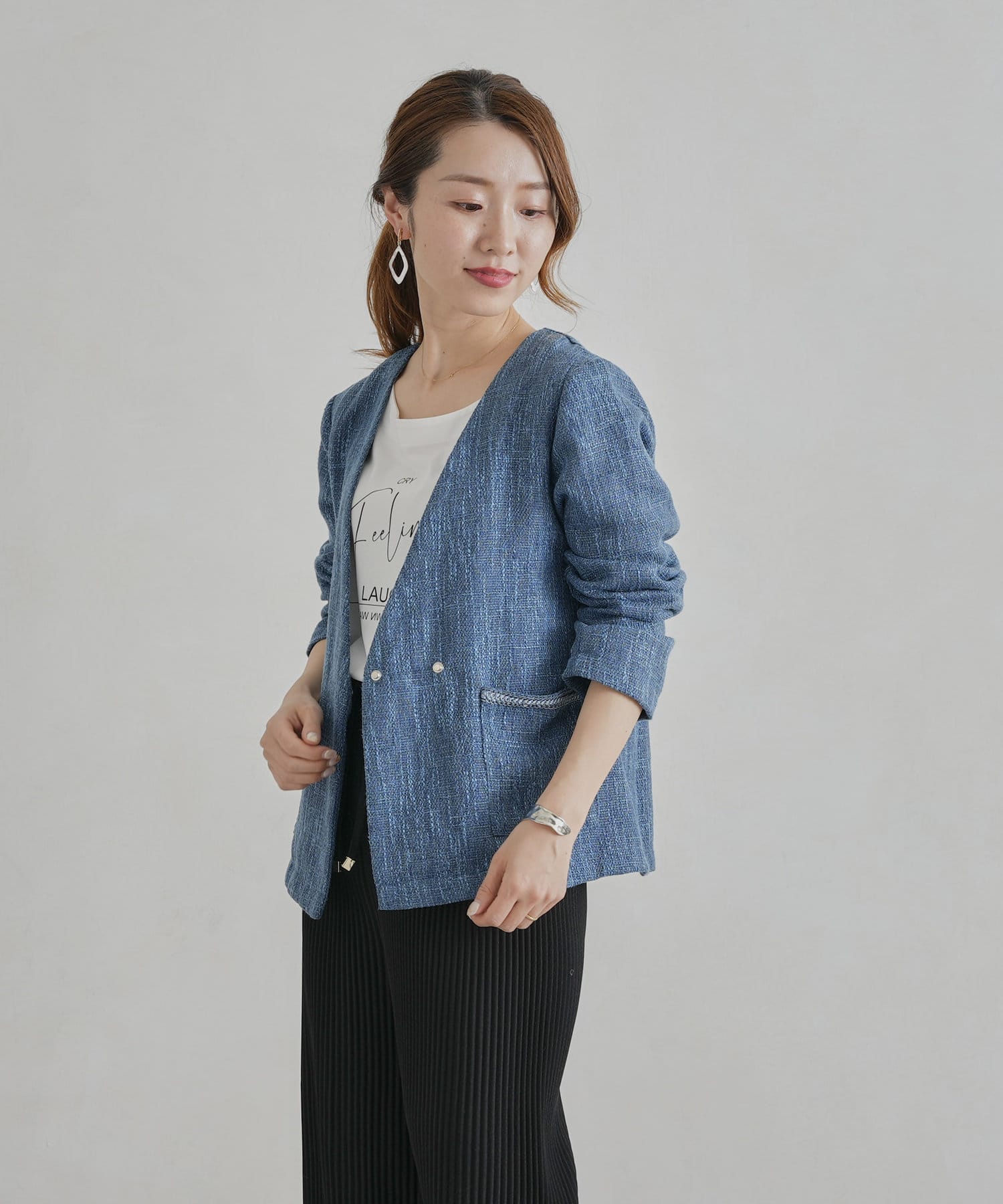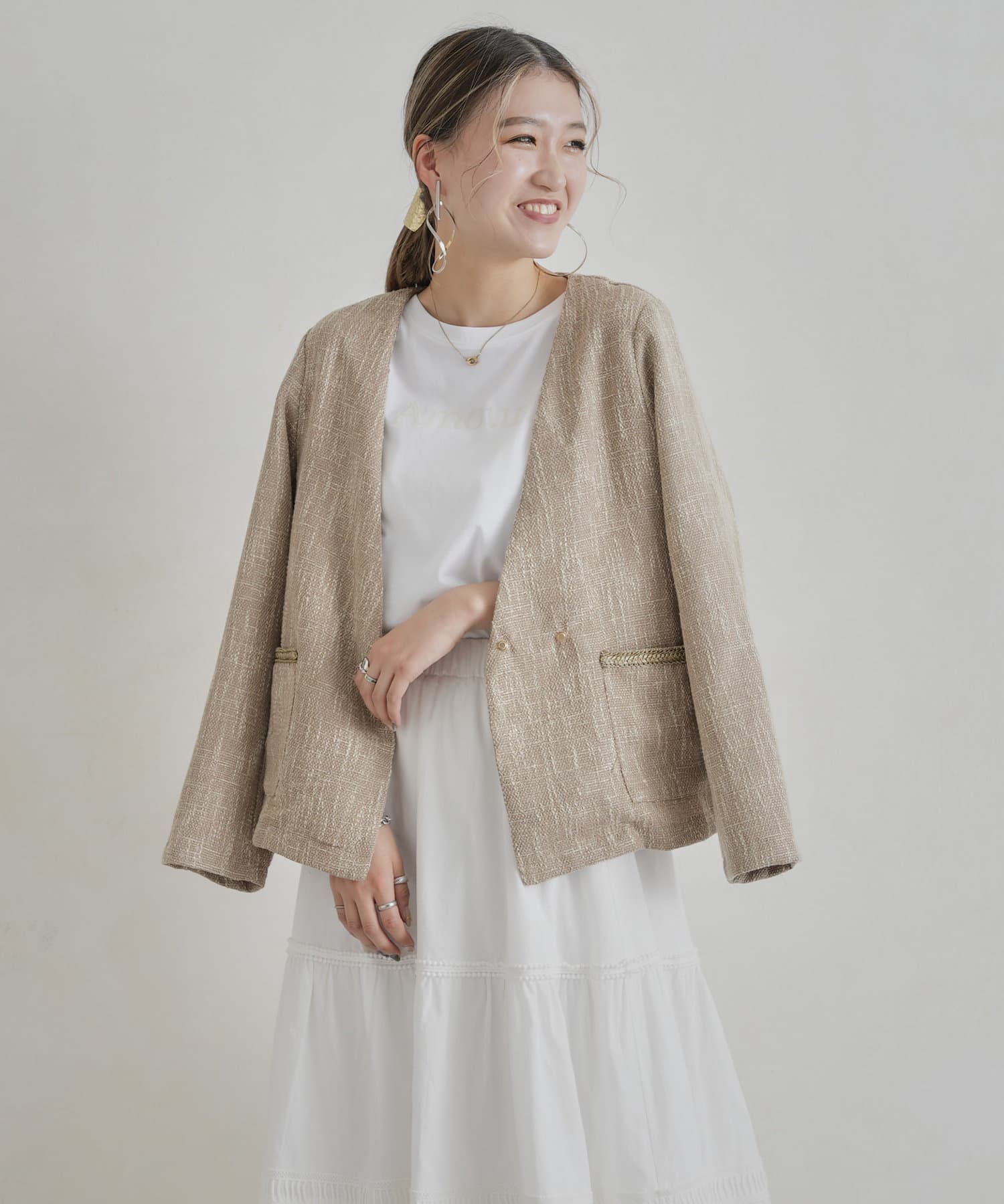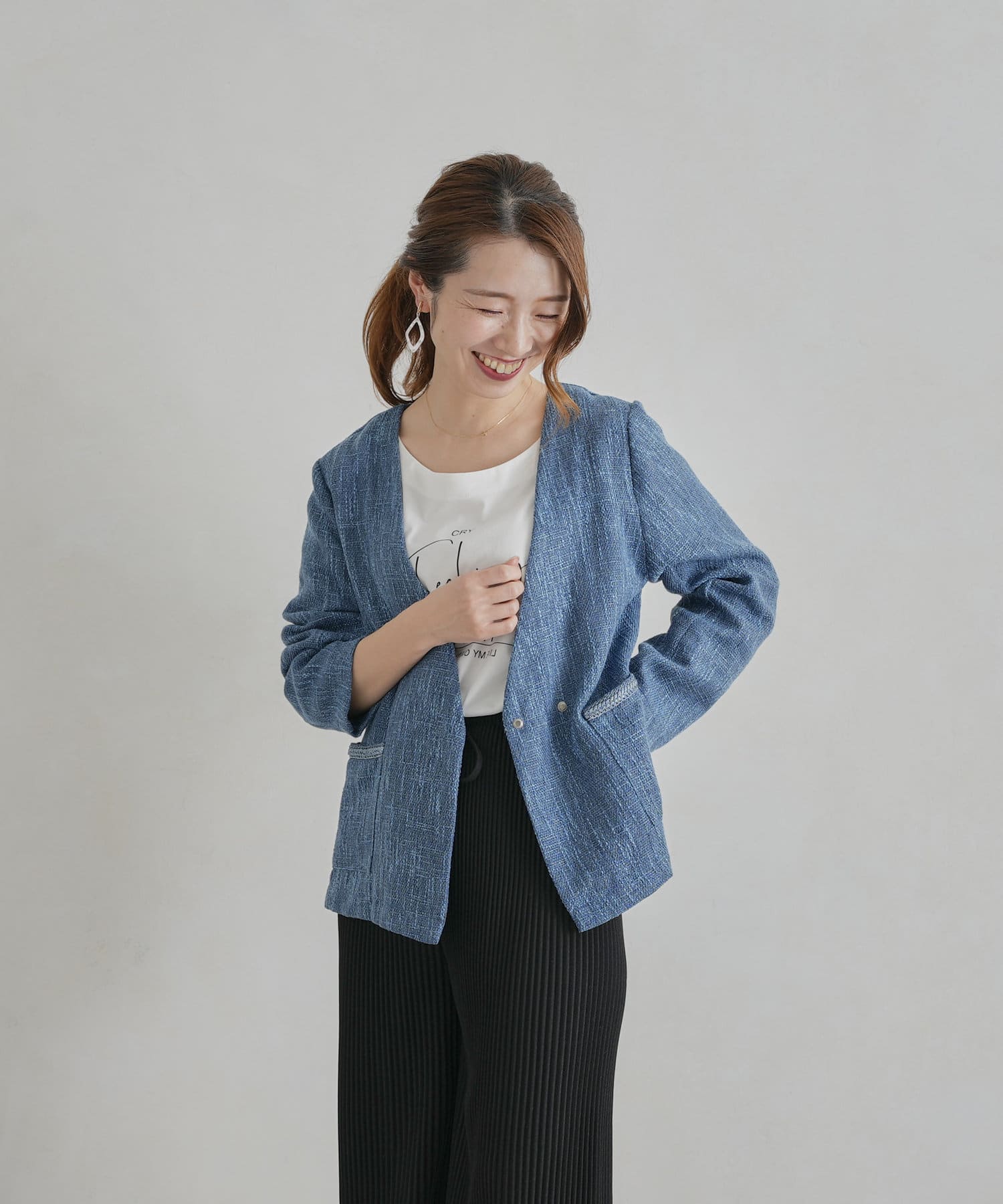 【着用動画あり】ツイードカラーレスジャケット