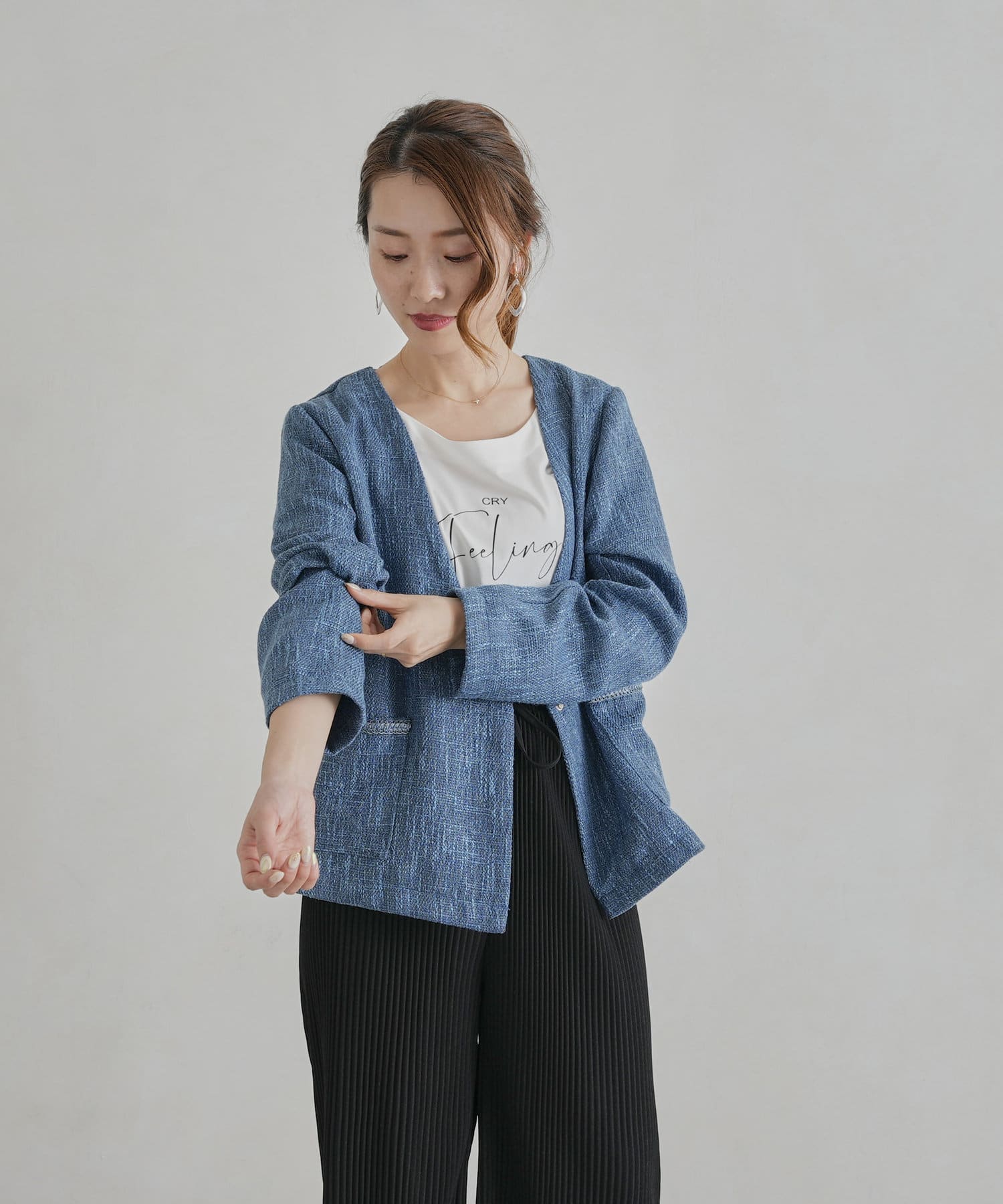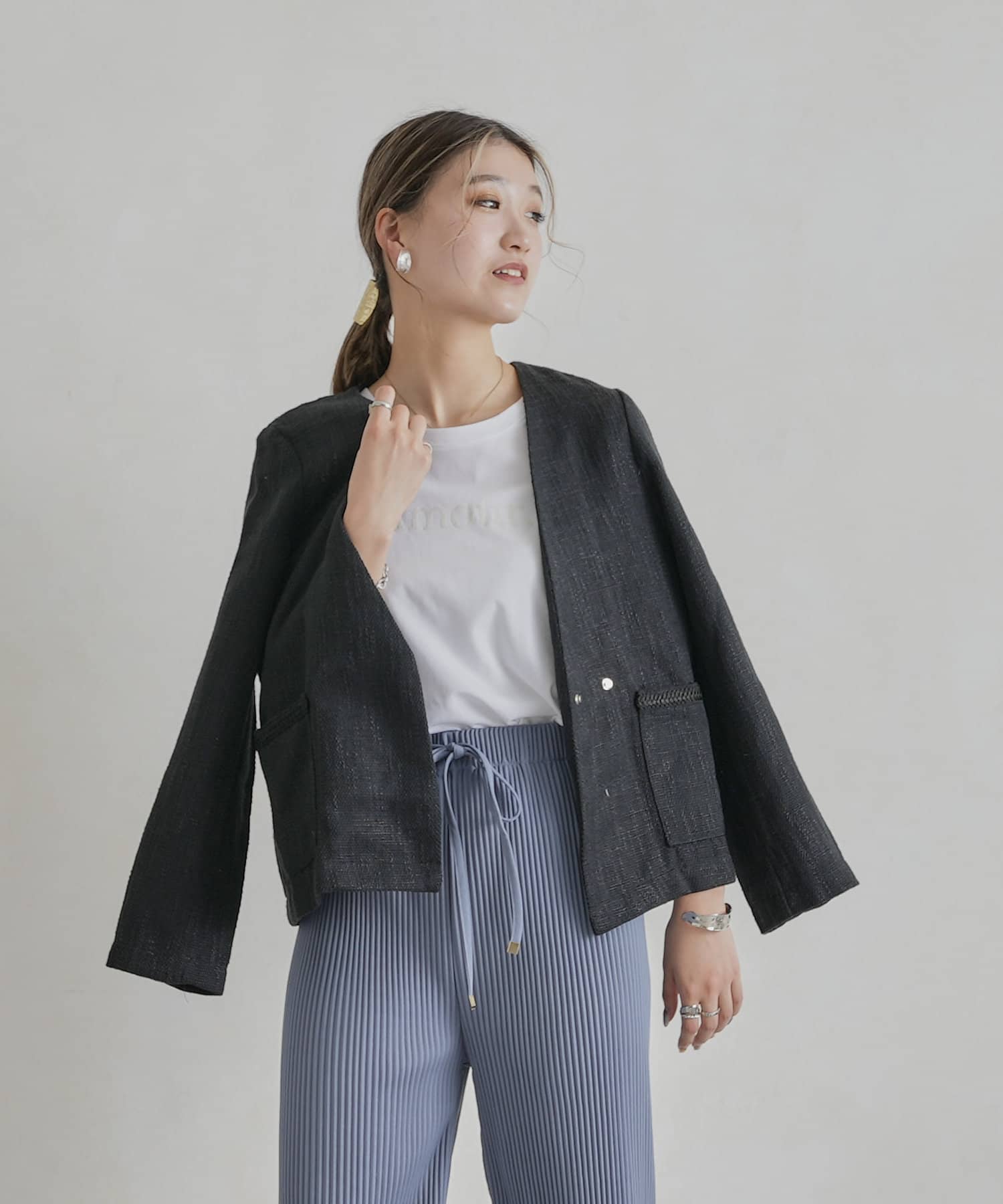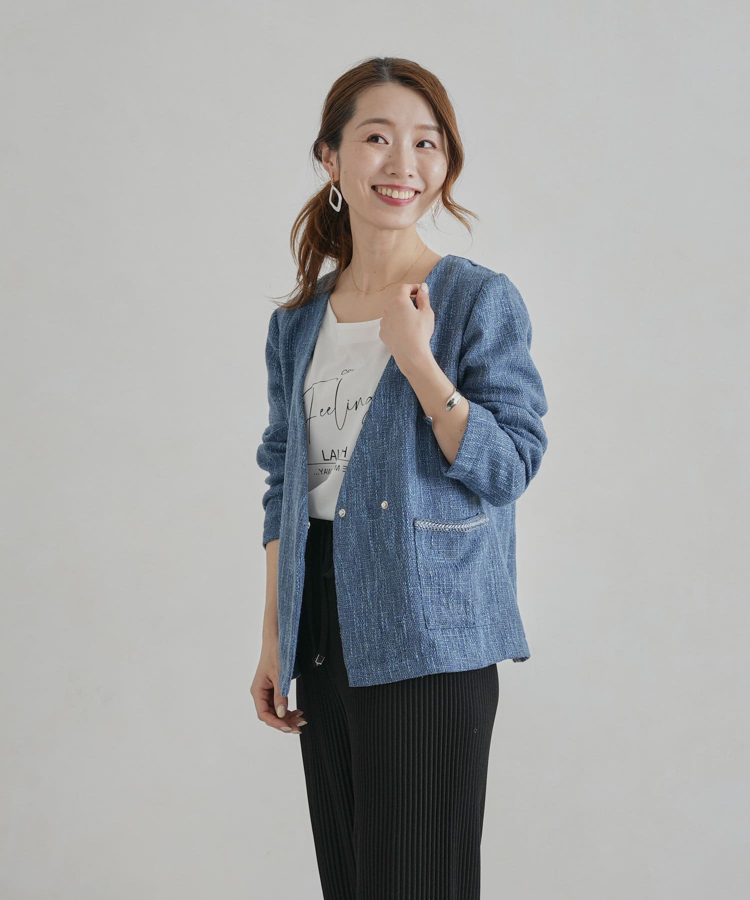 【着用動画あり】ツイードカラーレスジャケット