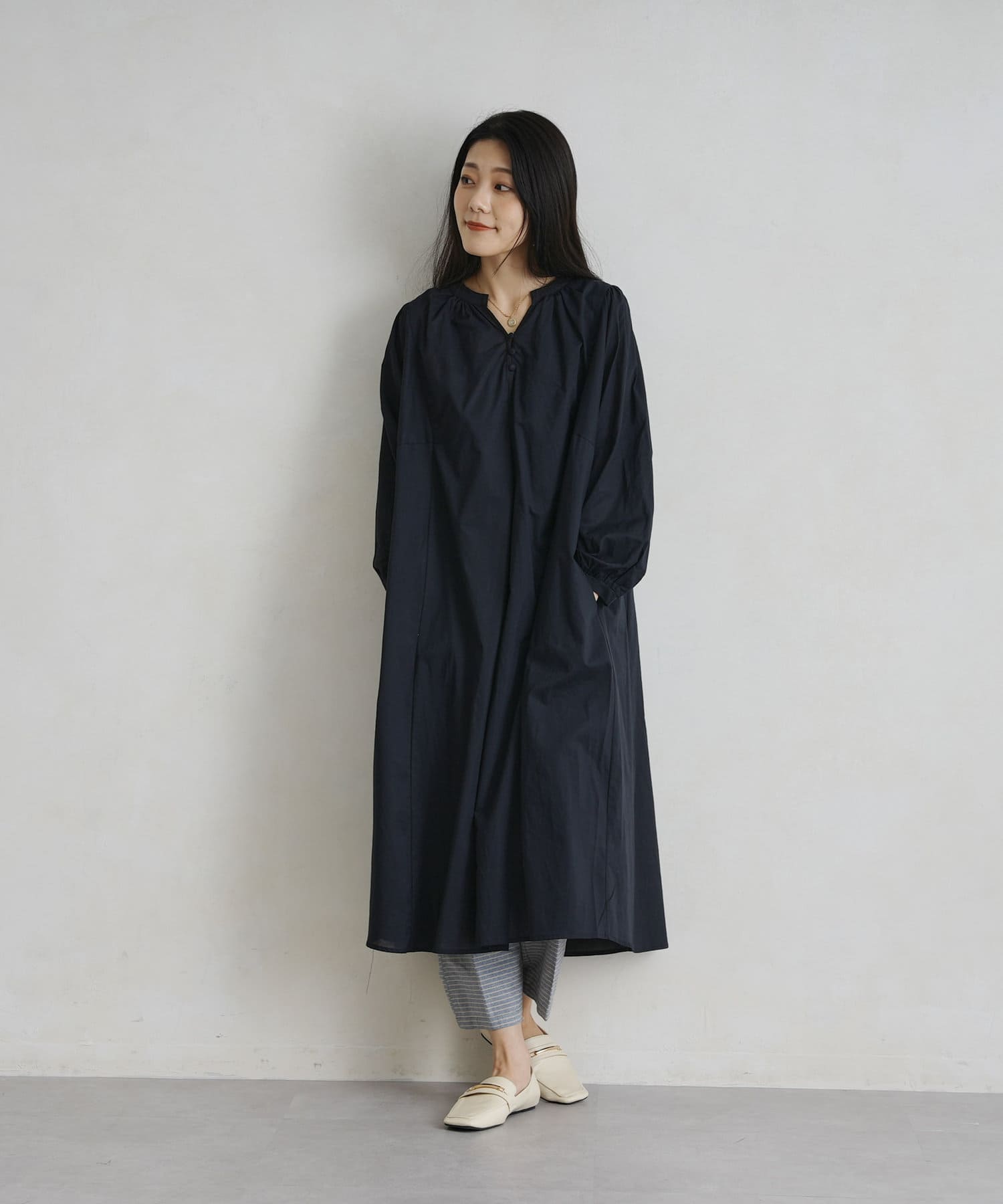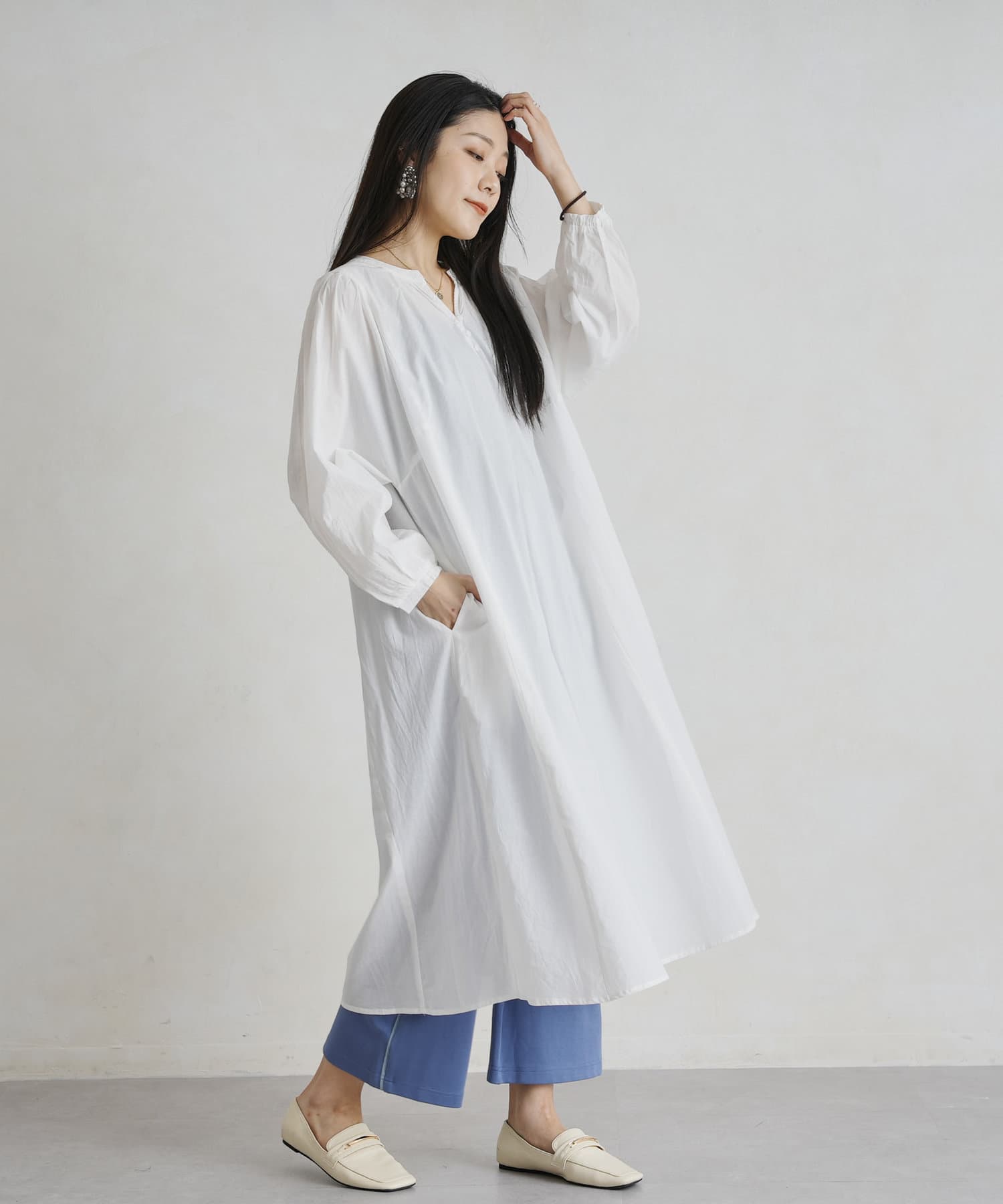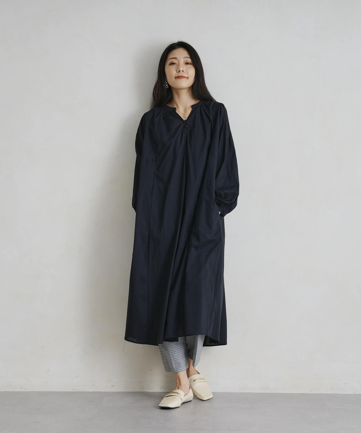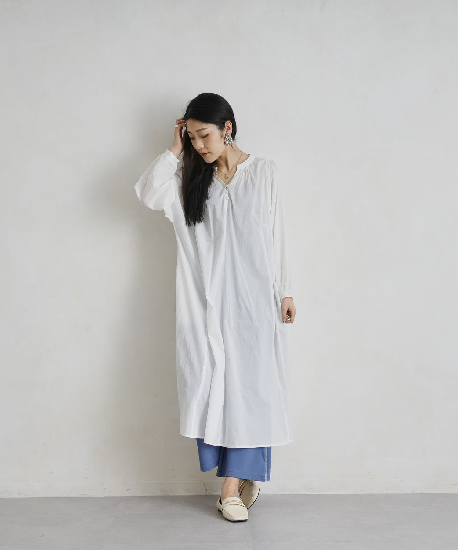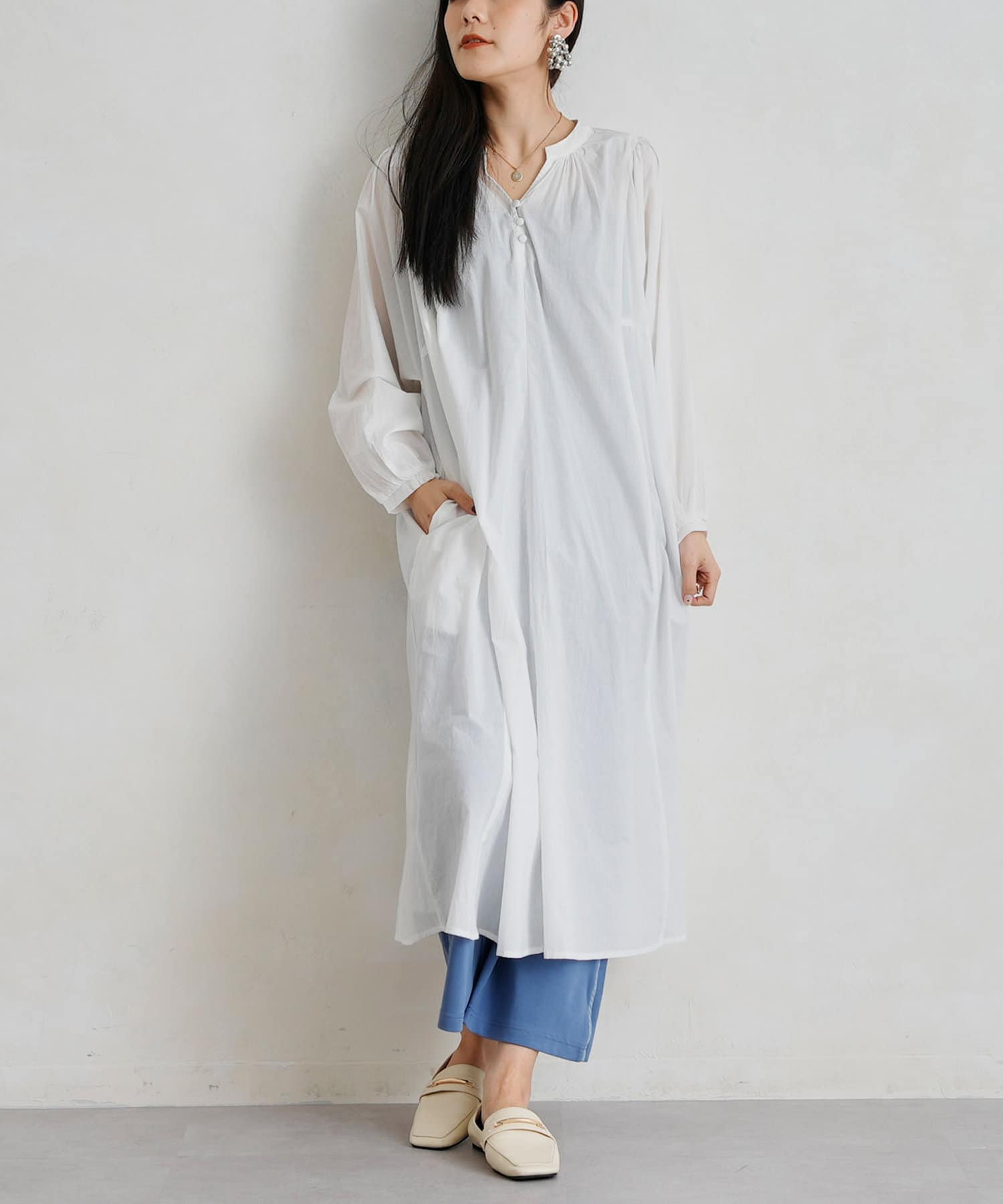 レイヤードも楽しめるスモックワンピース