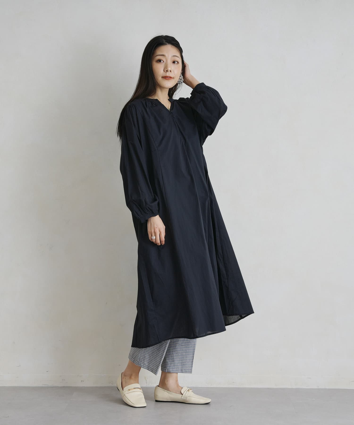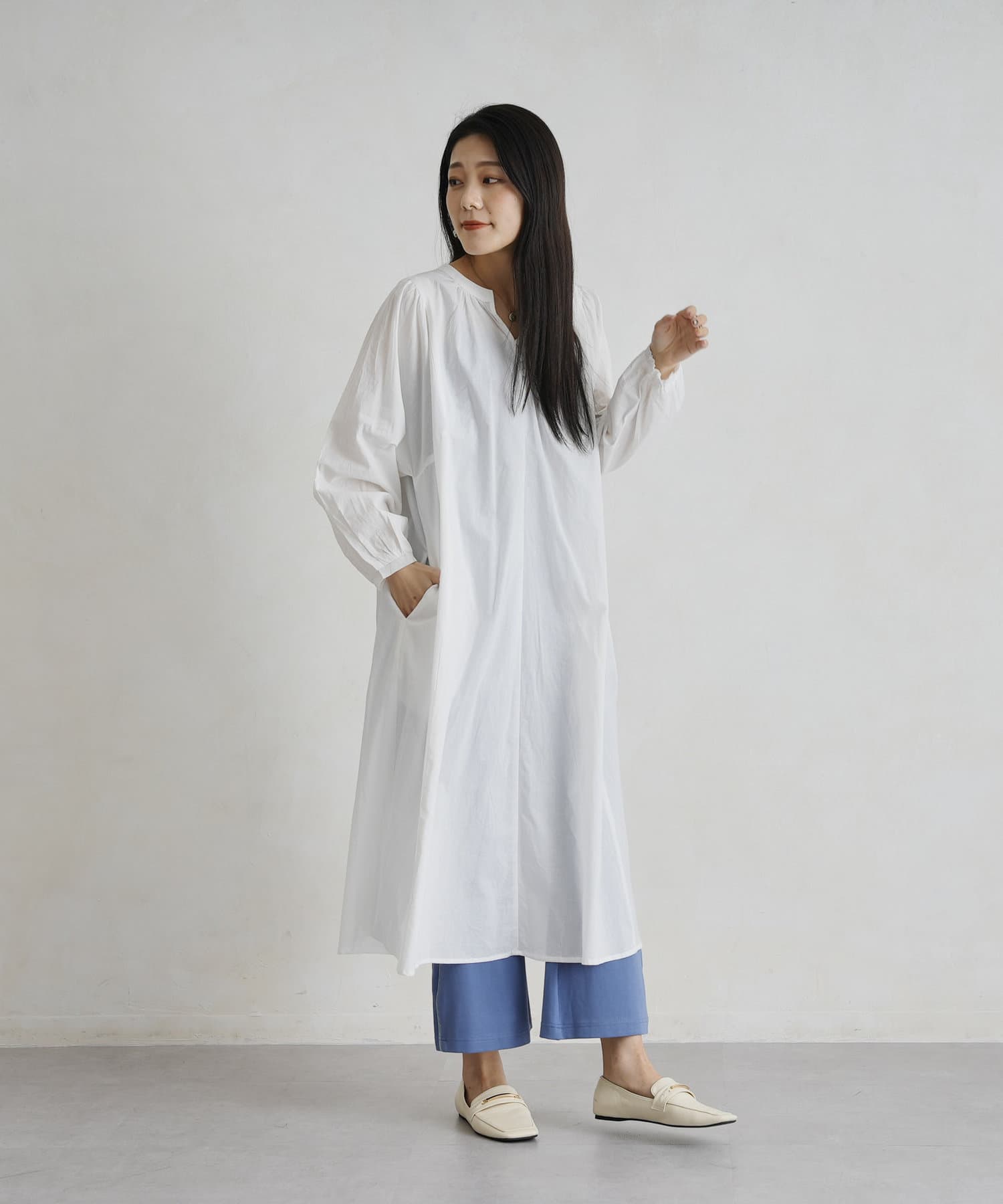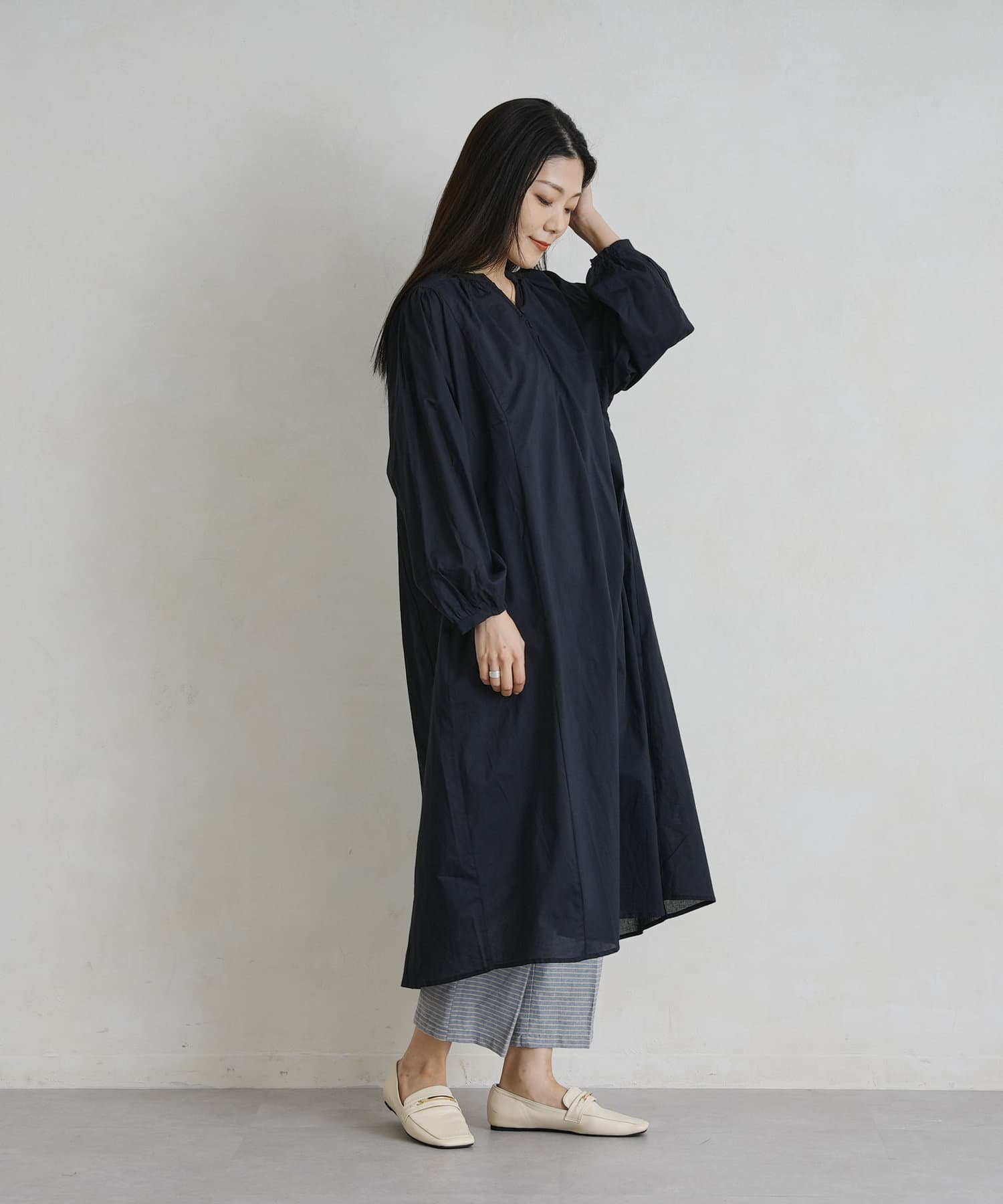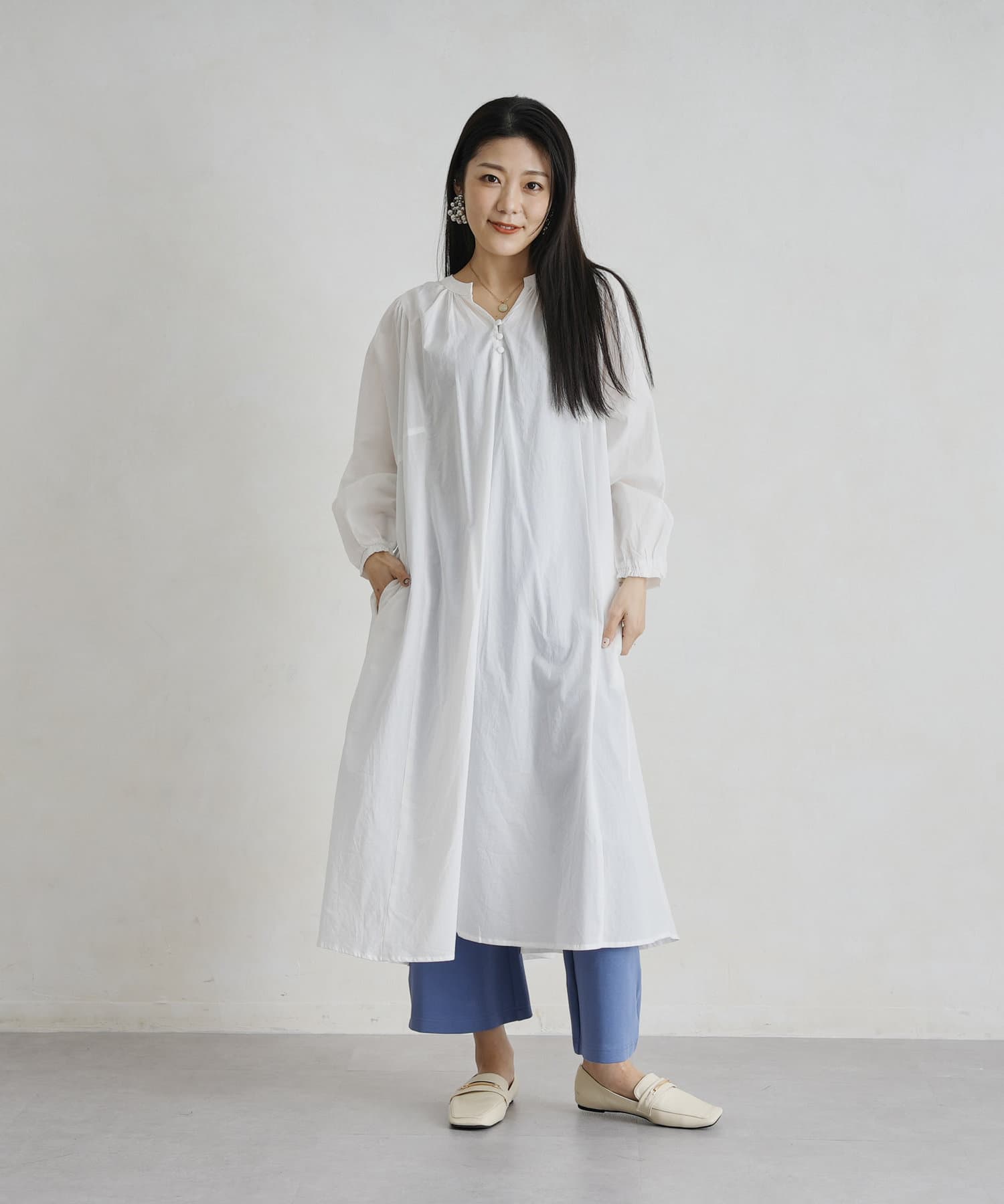 レイヤードも楽しめるスモックワンピース