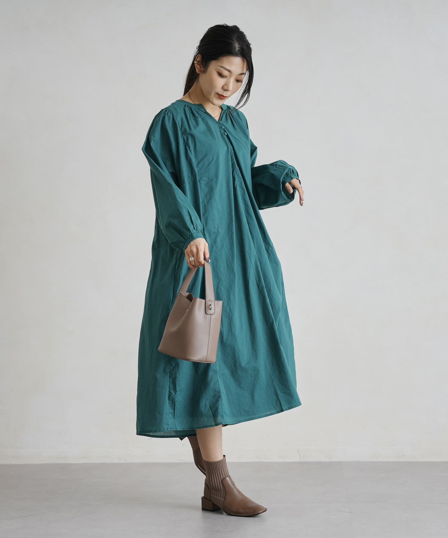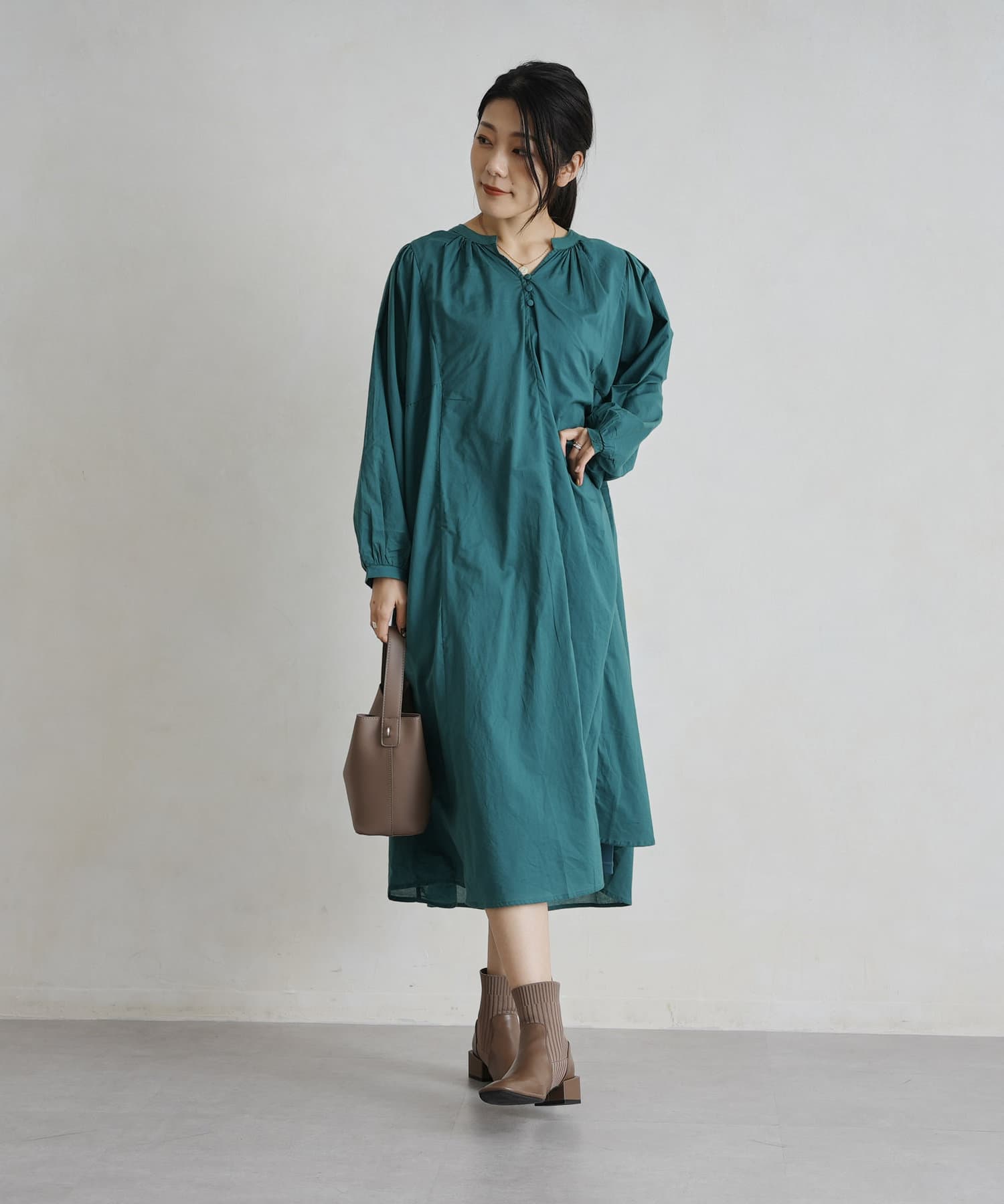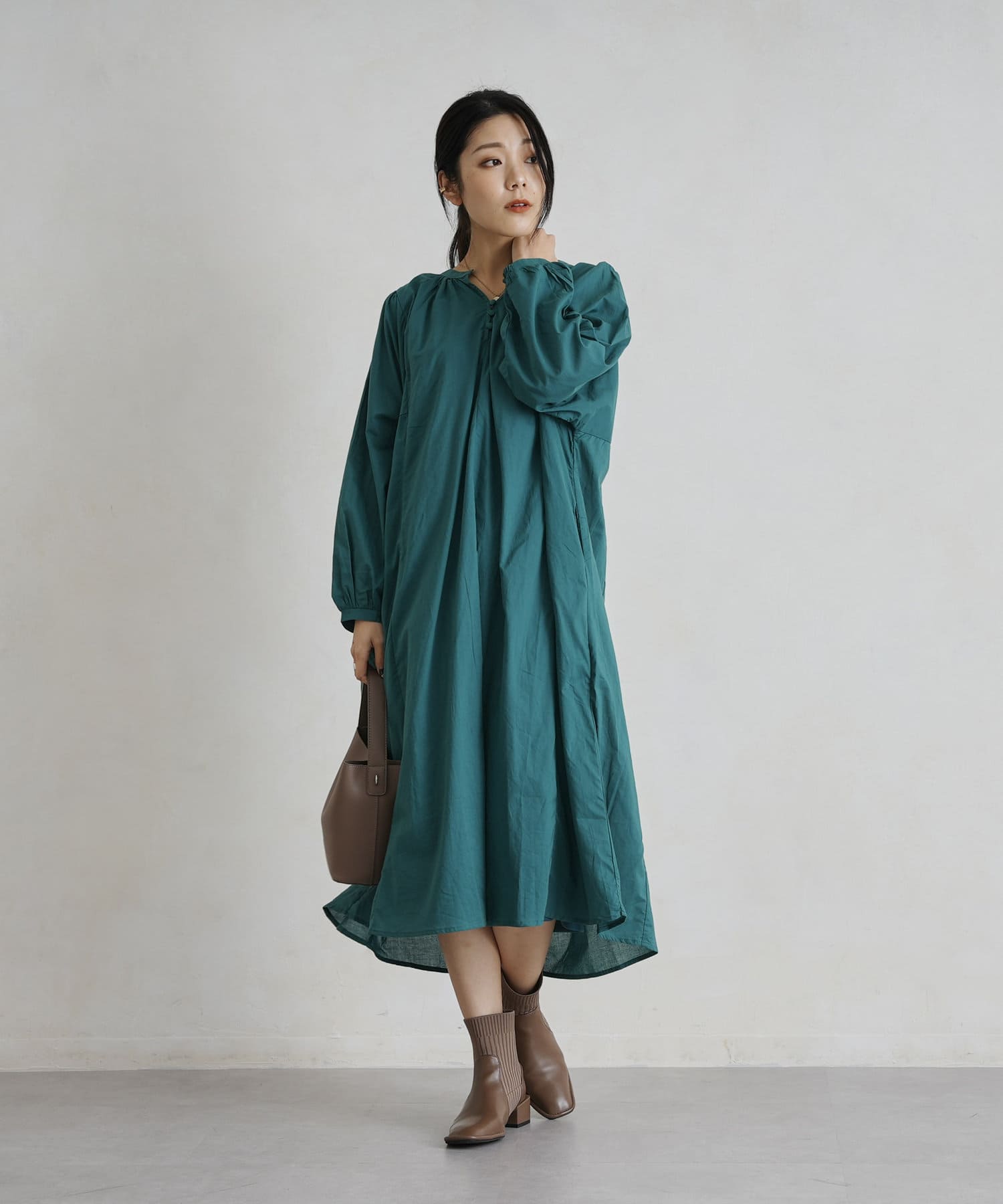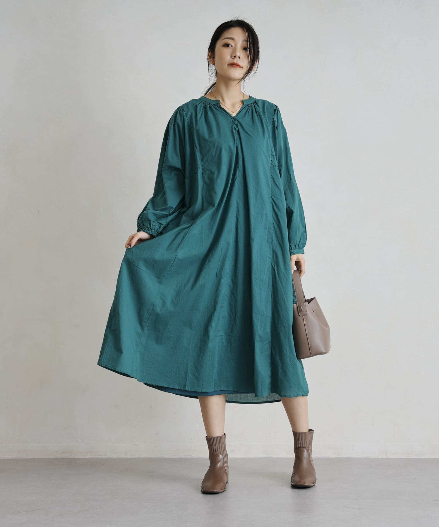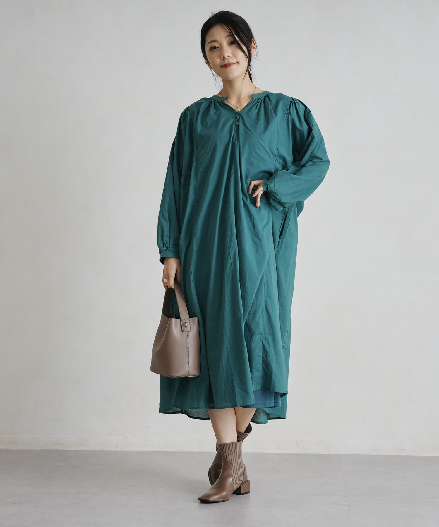 レイヤードも楽しめるスモックワンピース