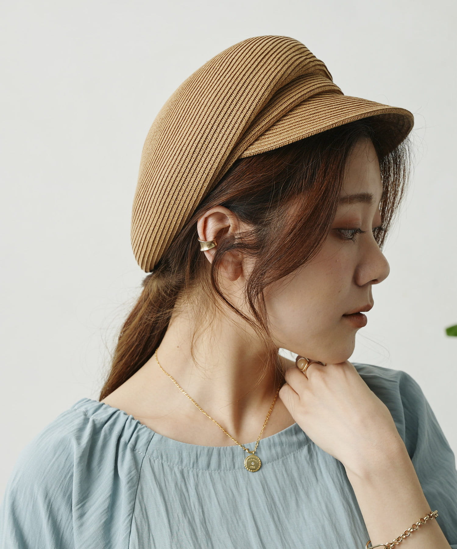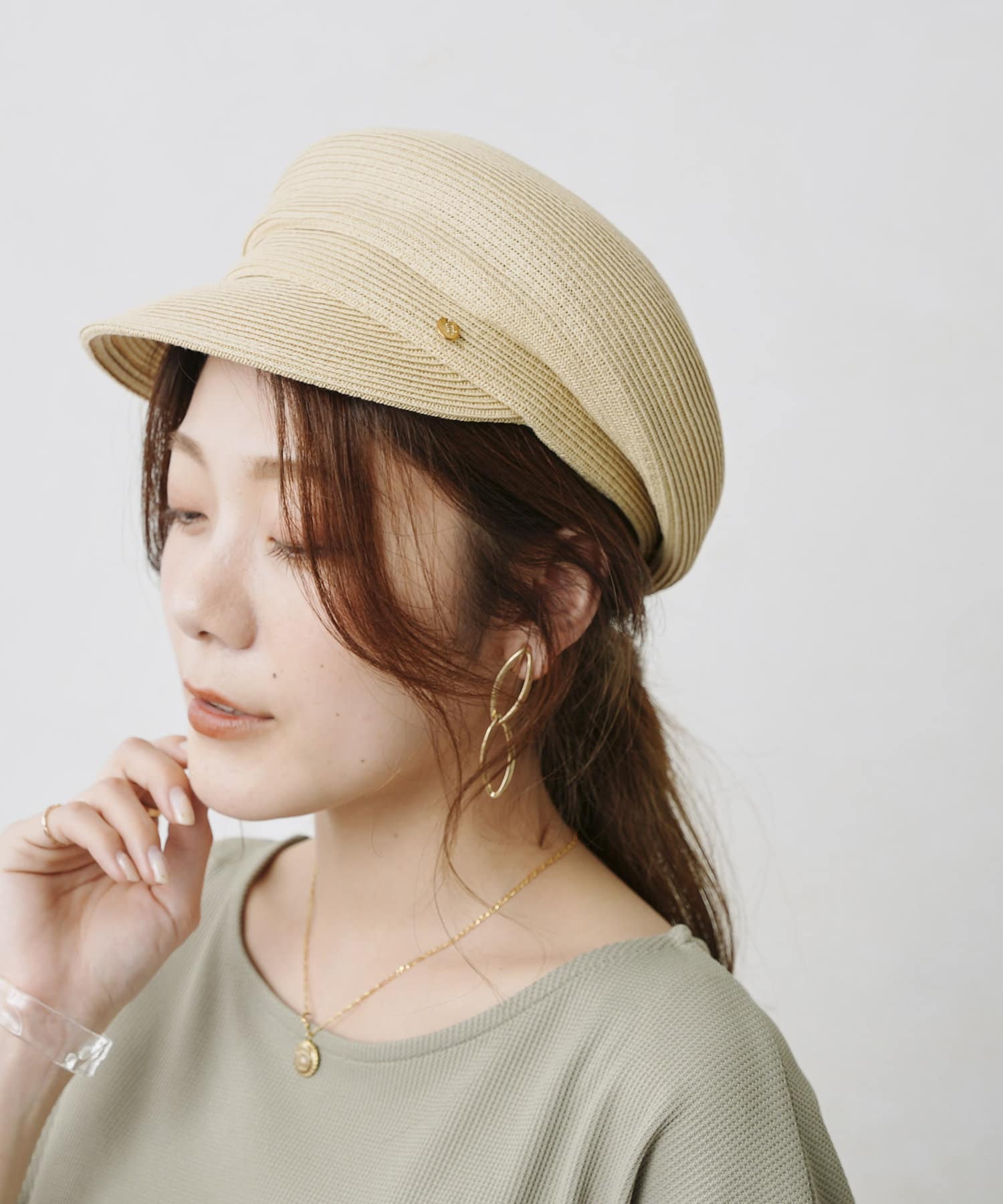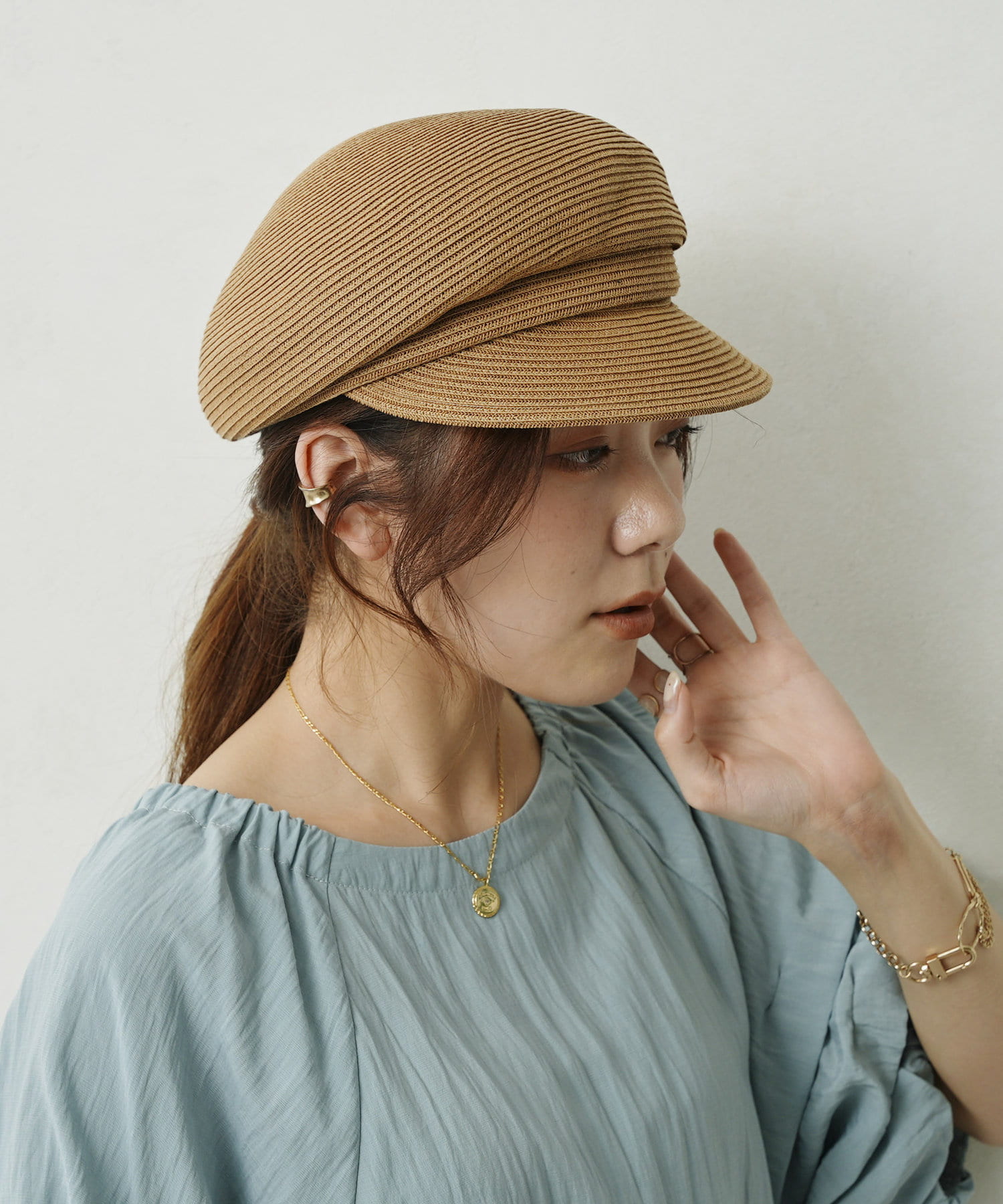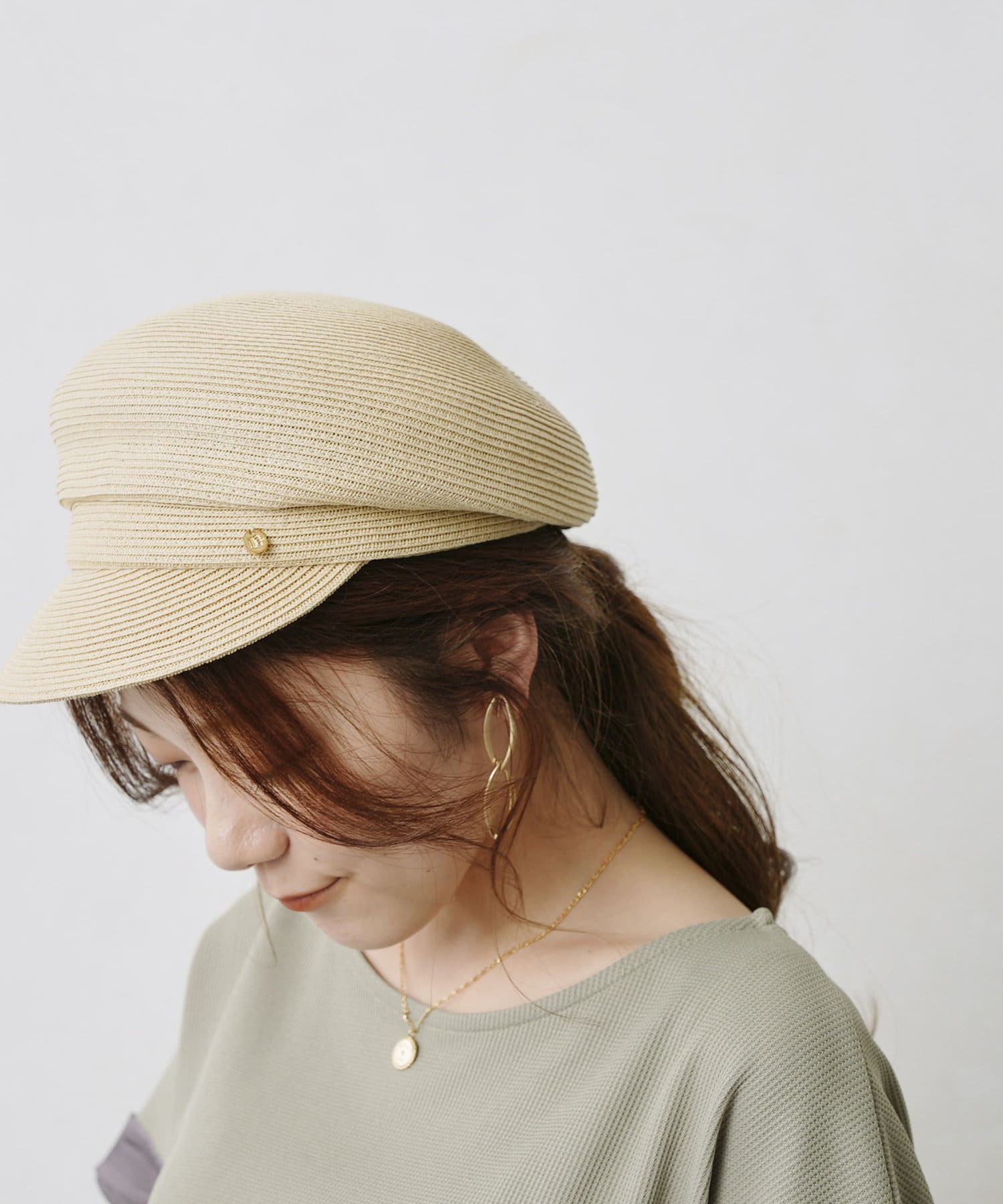 GLDのリベットと丸みのあるシルエットが上品さをプラスしてくれる大人キャスケット