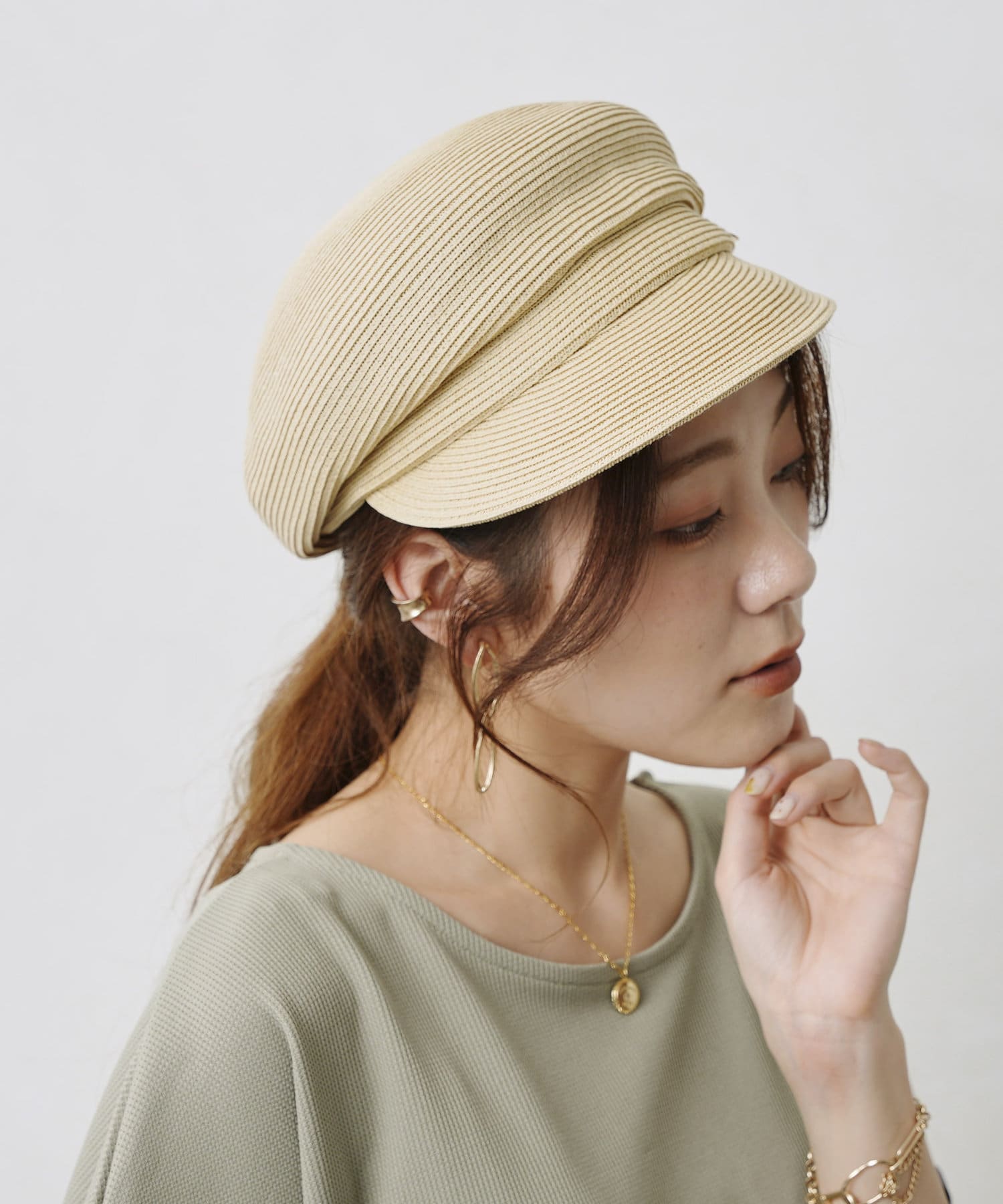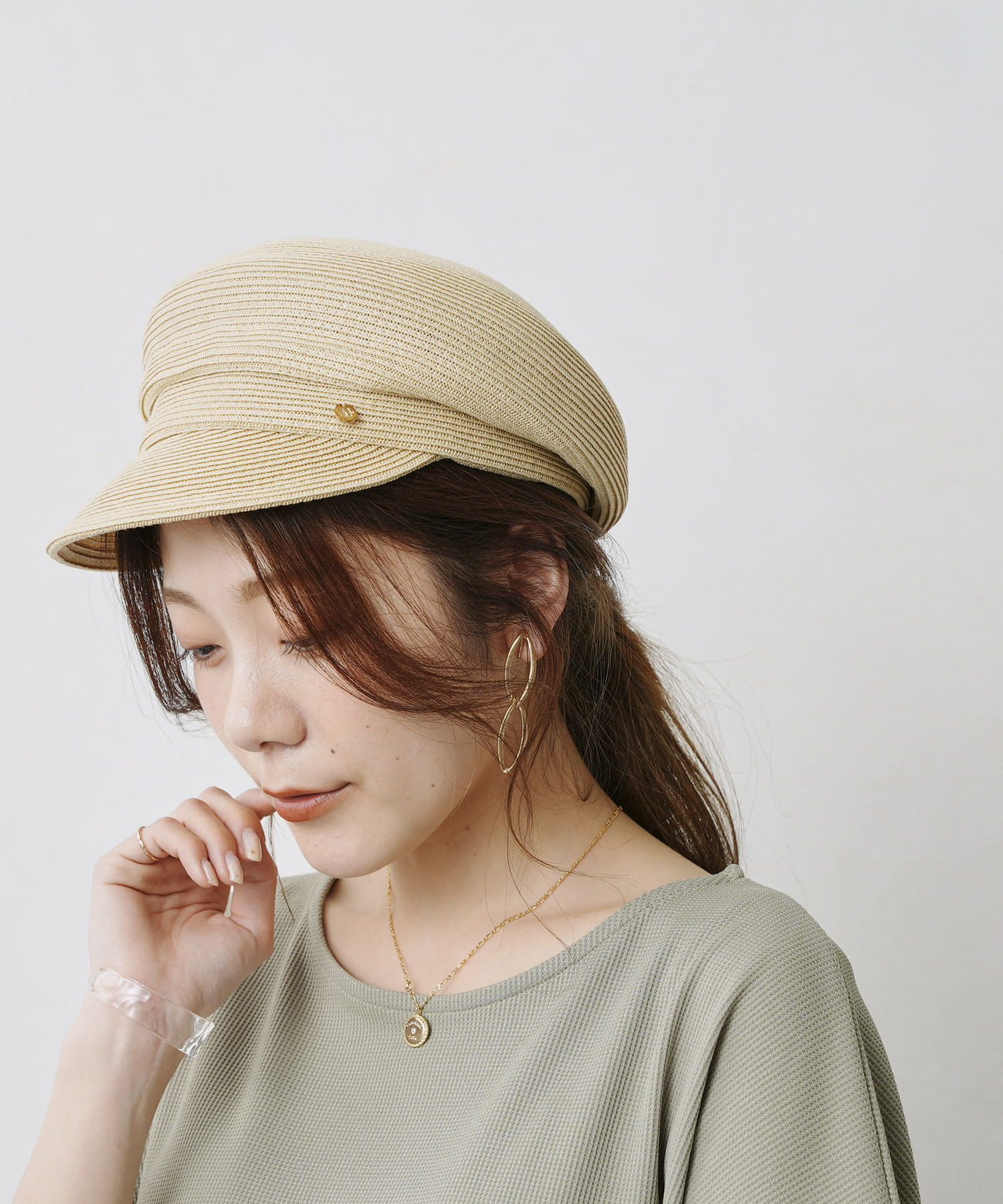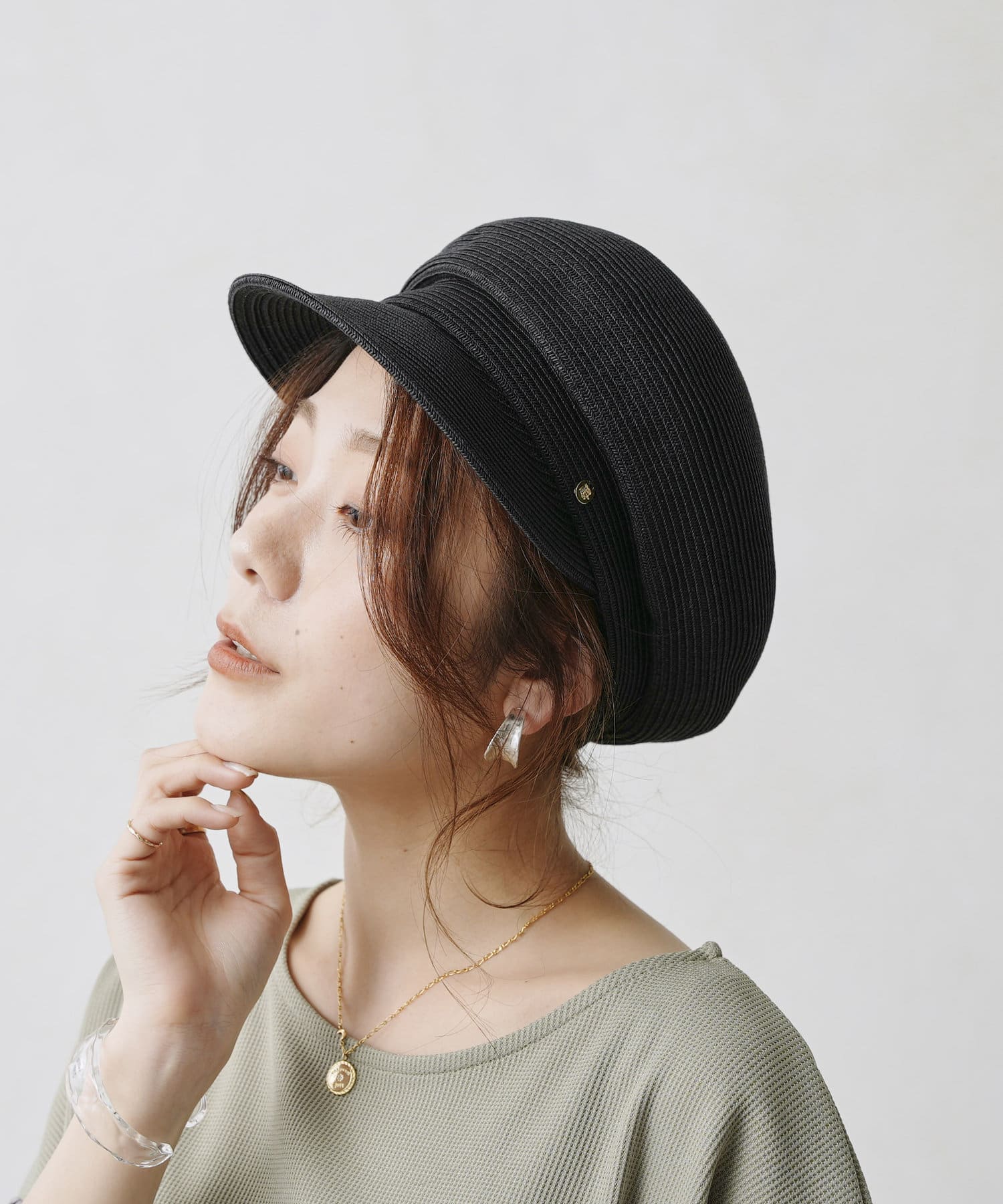 GLDのリベットと丸みのあるシルエットが上品さをプラスしてくれる大人キャスケット