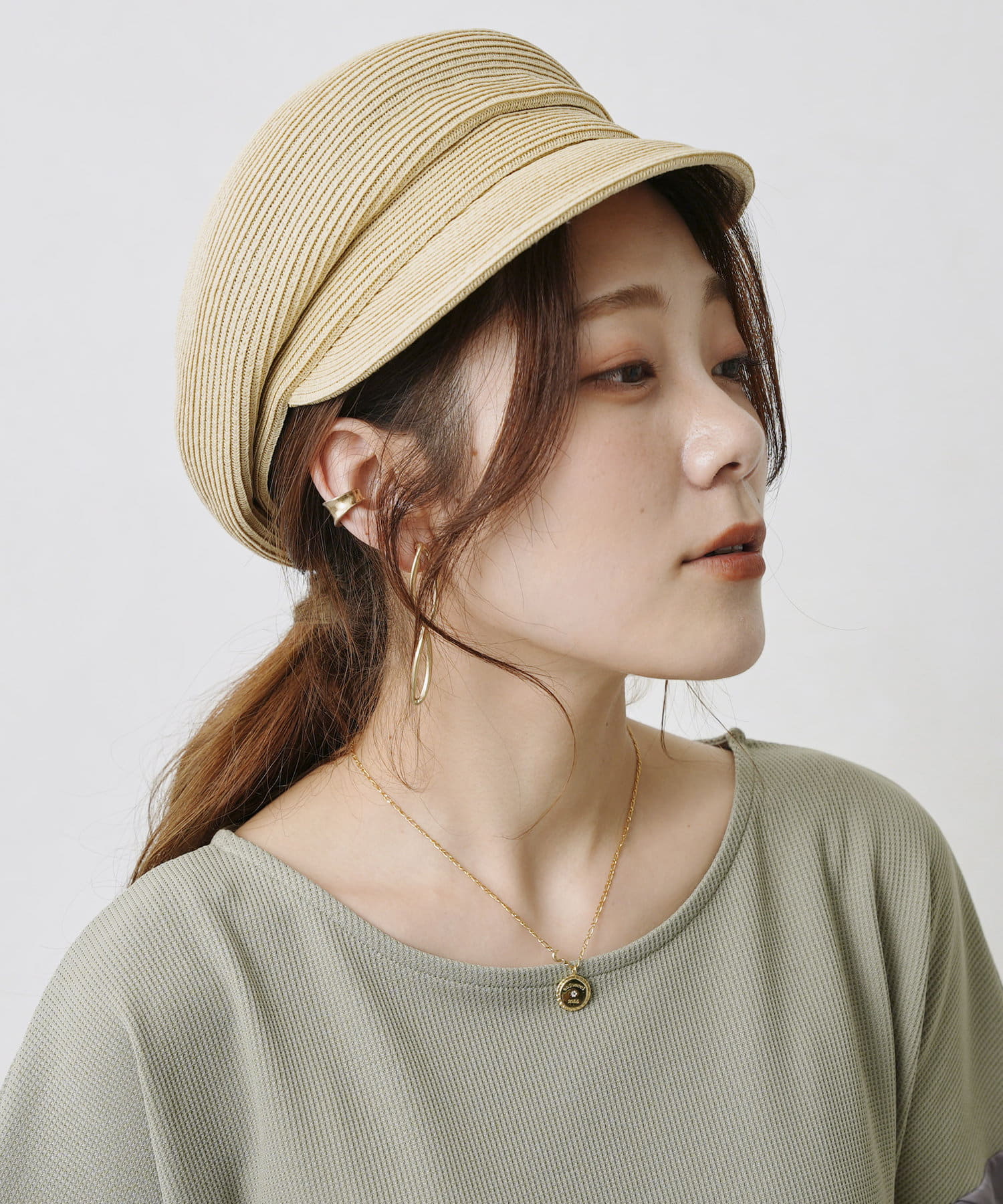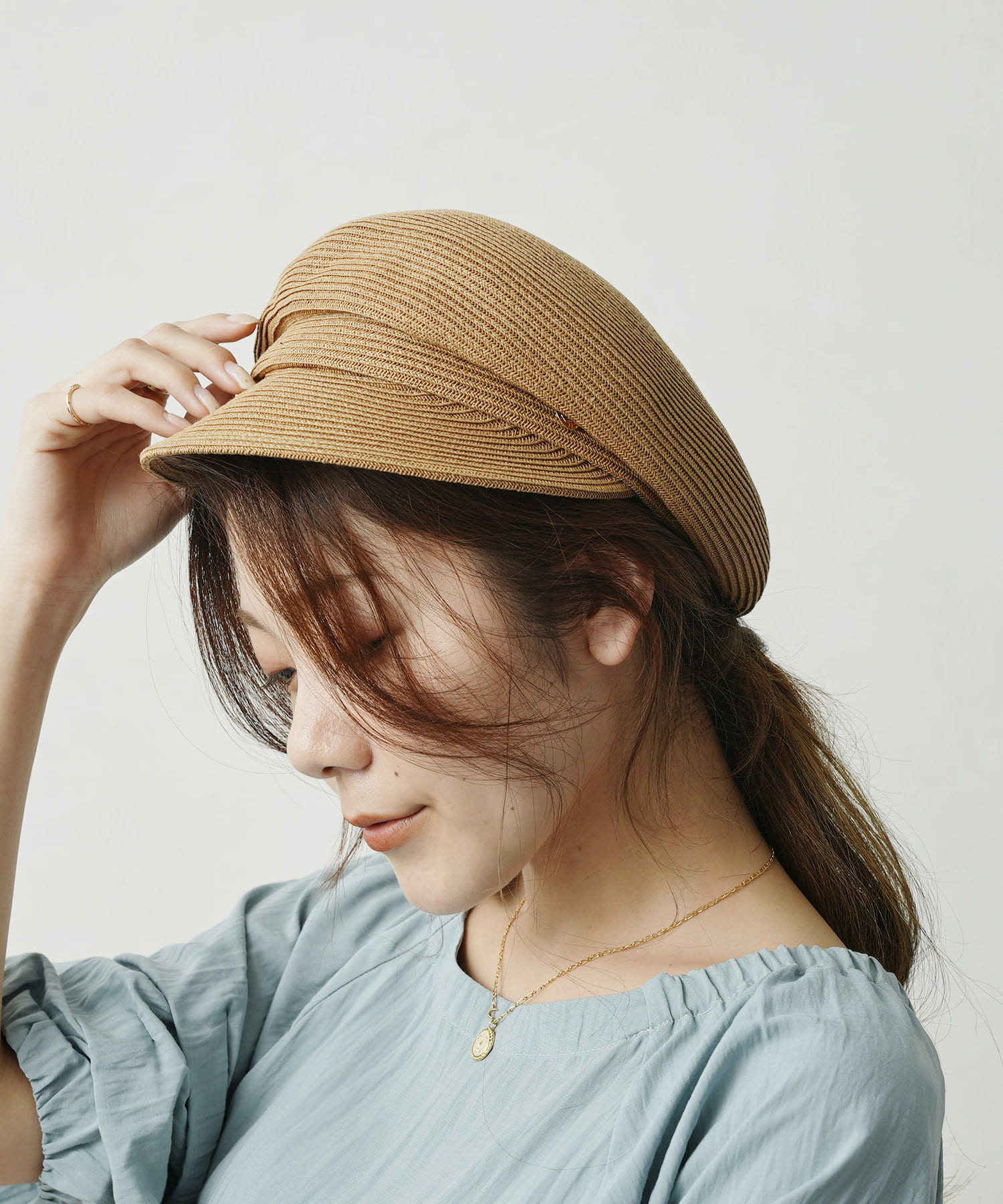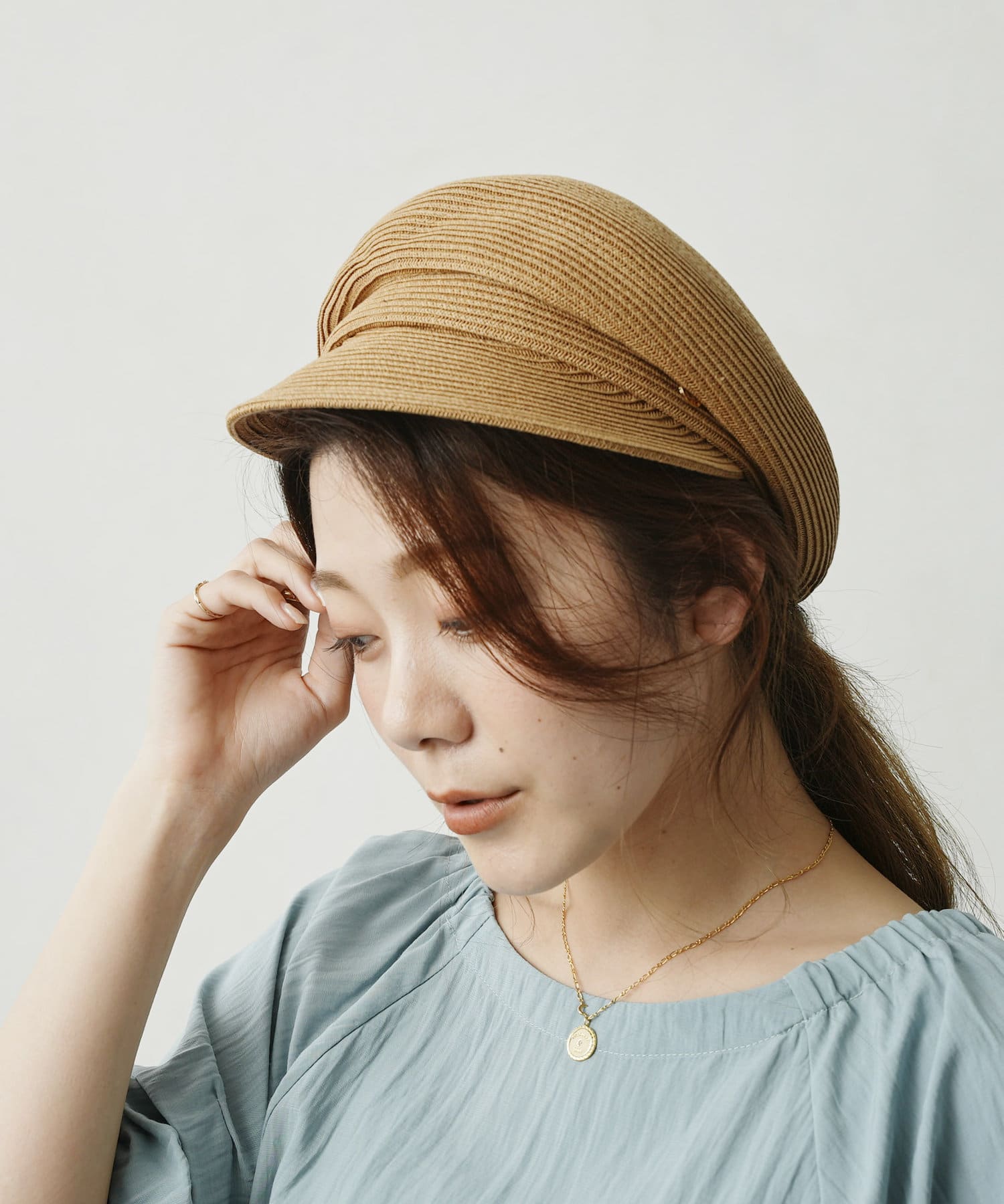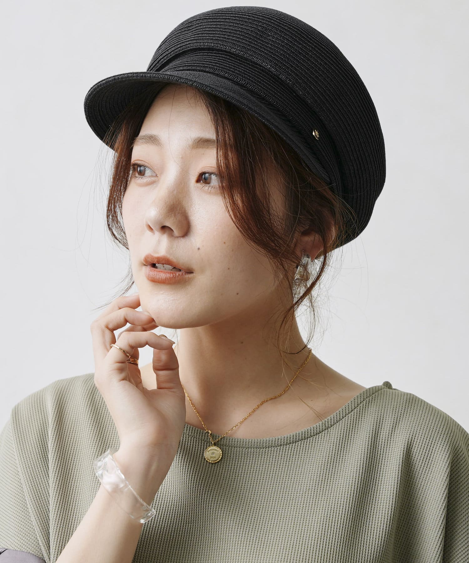 GLDのリベットと丸みのあるシルエットが上品さをプラスしてくれる大人キャスケット
