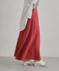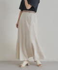 • Chez toi(シェトワ) 【着用動画あり】ウエスト配色リネンバイヤスフレアスカート