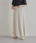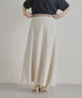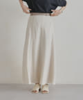 Chez toi(シェトワ) 【着用動画あり】ウエスト配色リネンバイヤスフレアスカート