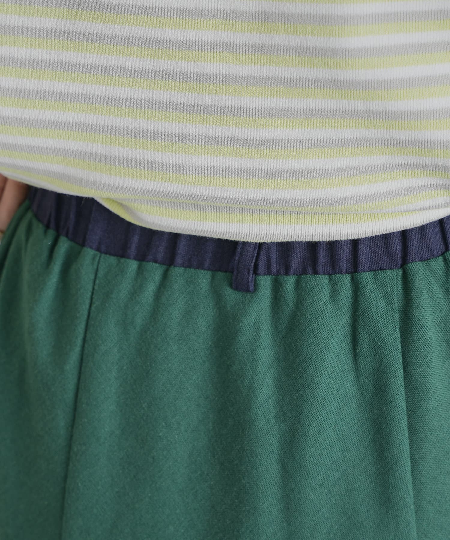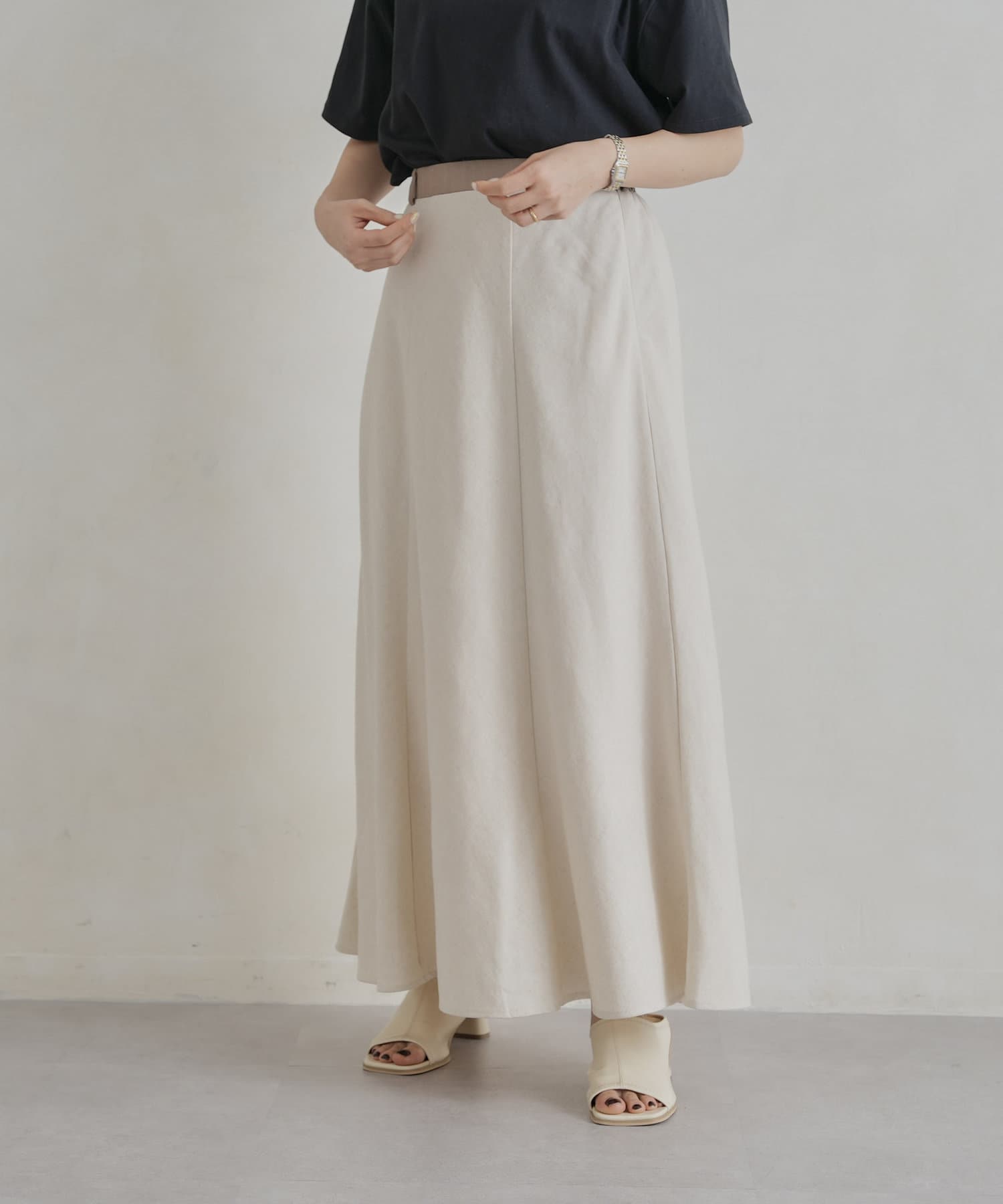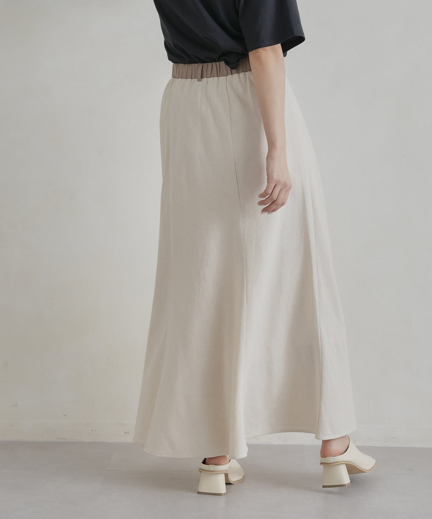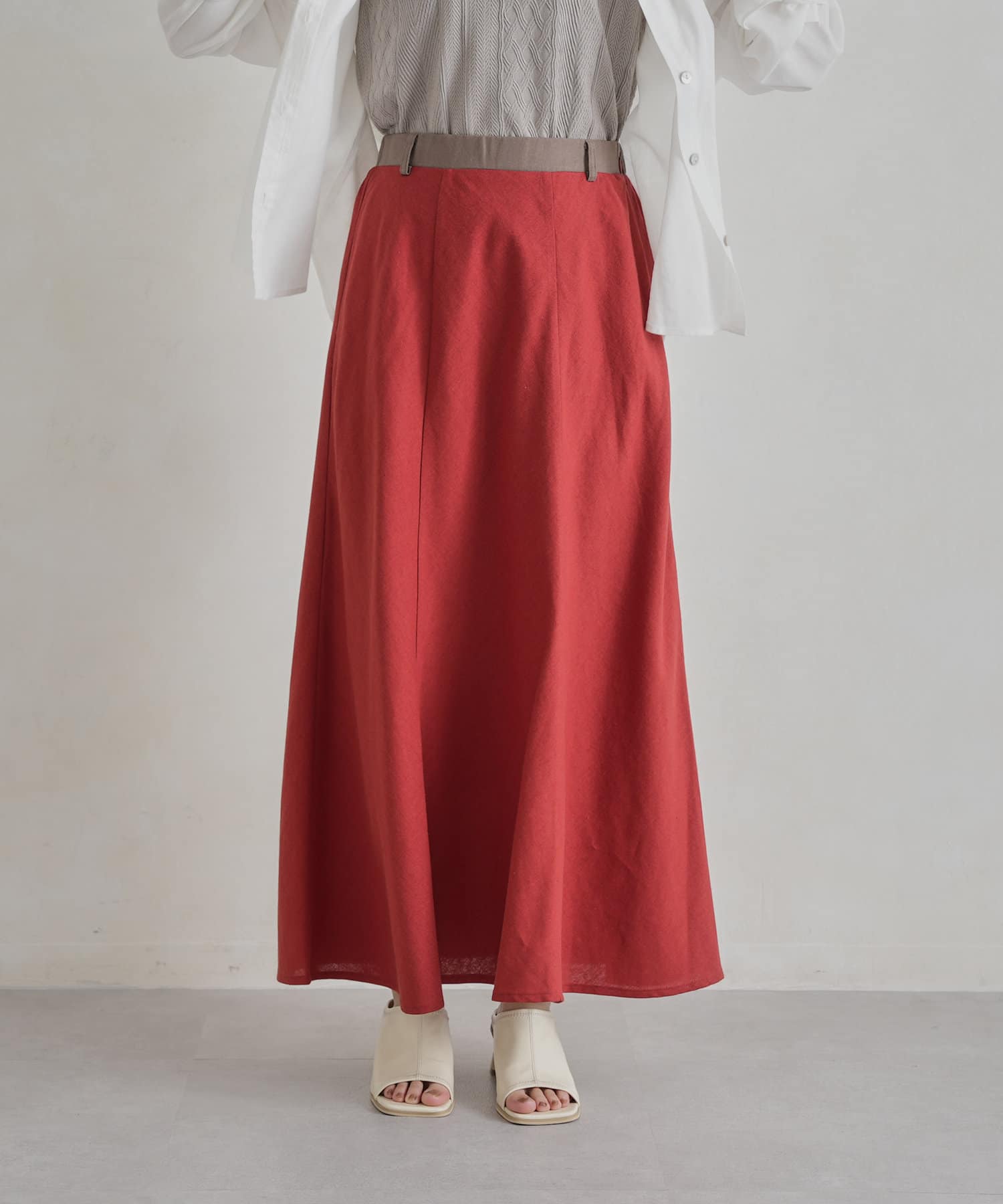 【着用動画あり】ウエスト配色リネンバイヤスフレアスカート