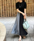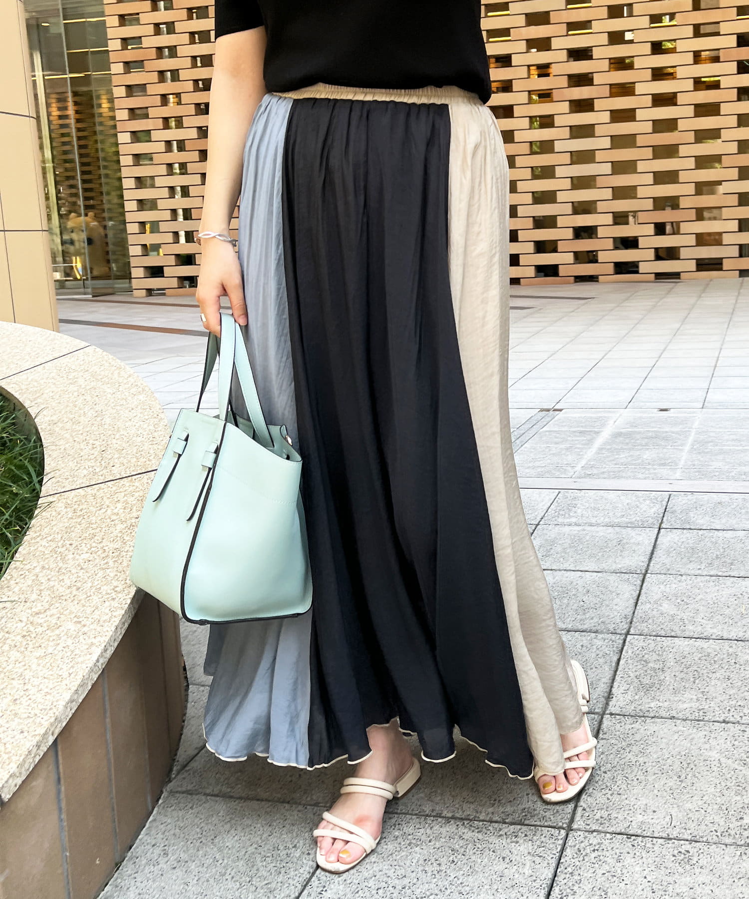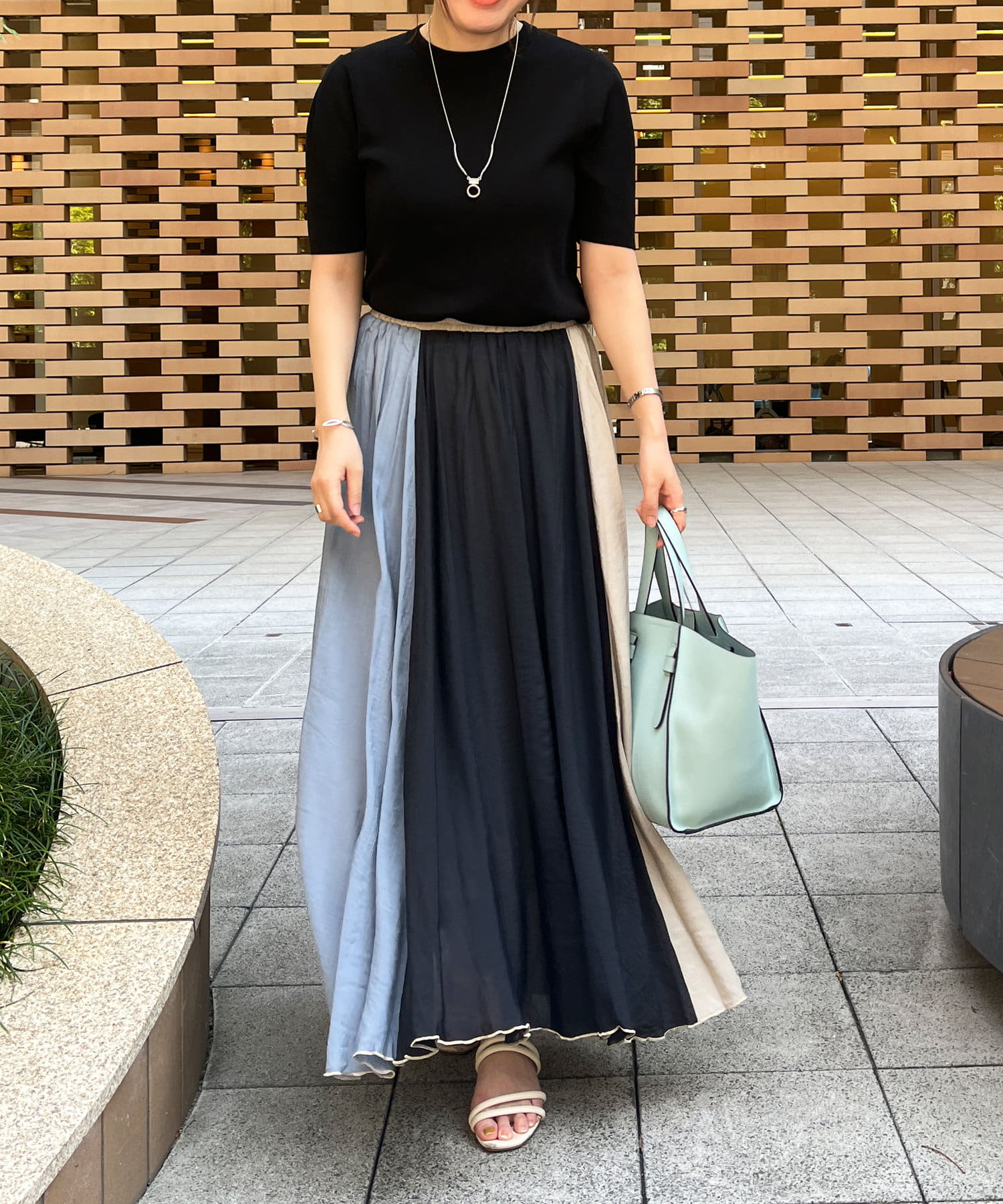 ・シアー素材&差し色が効いた色合いのカラーブロッキングが