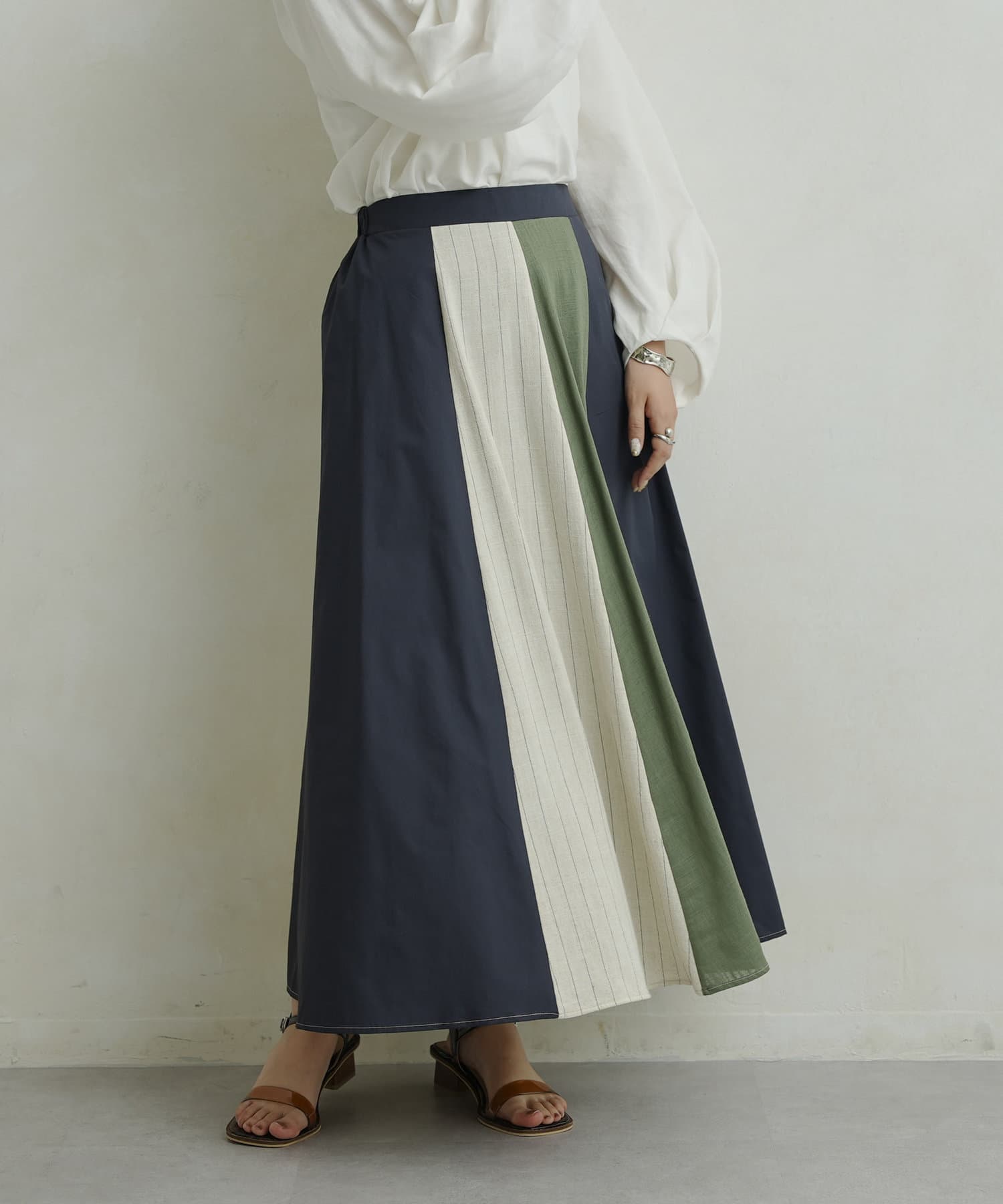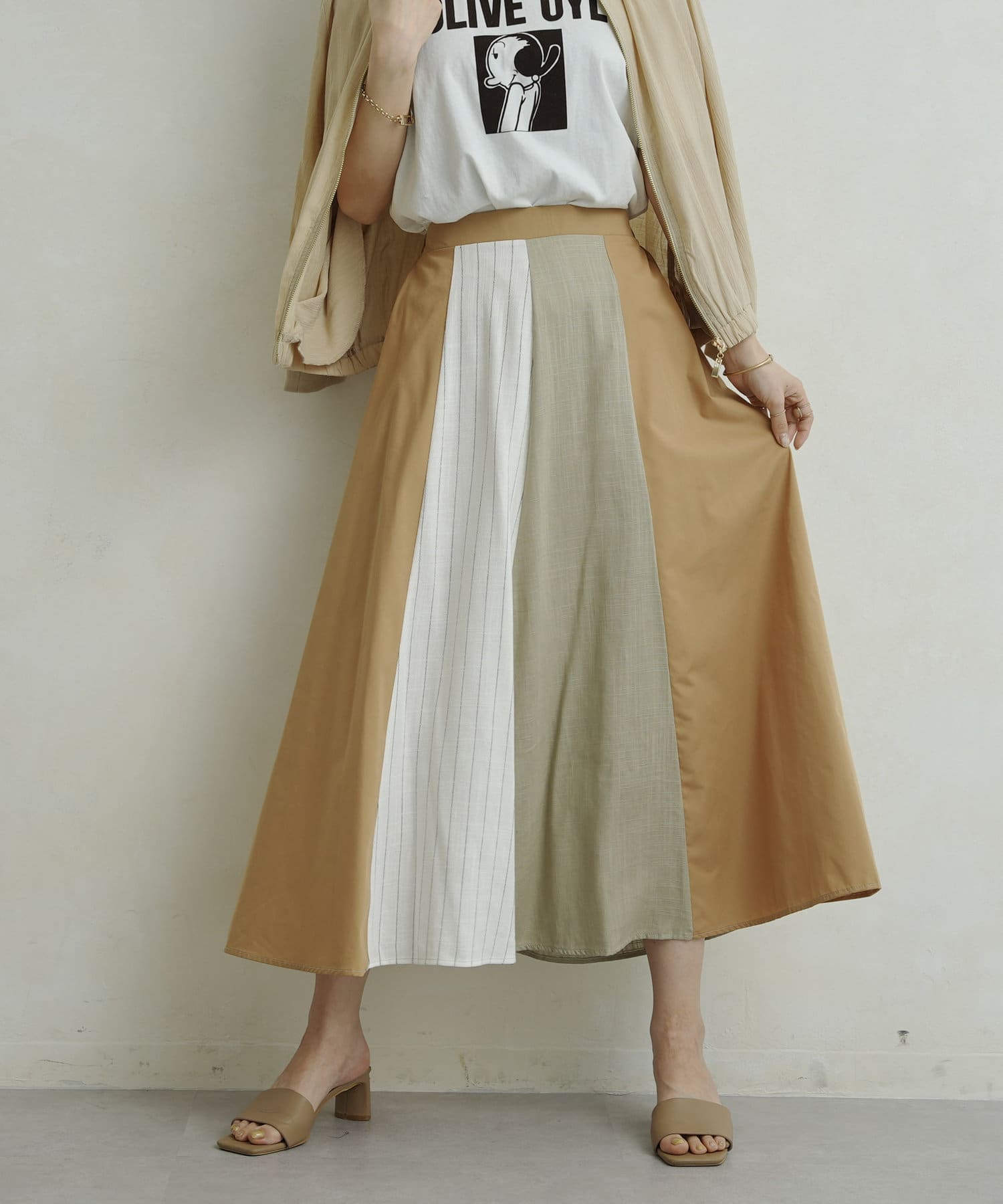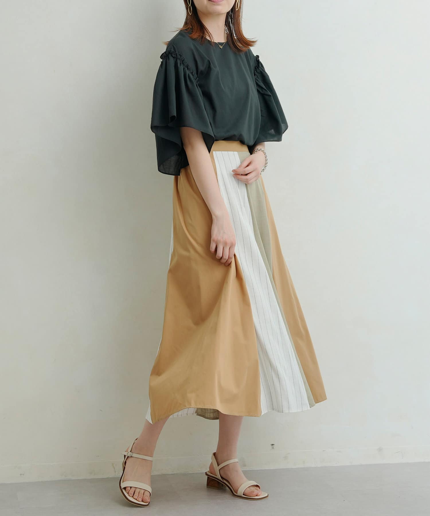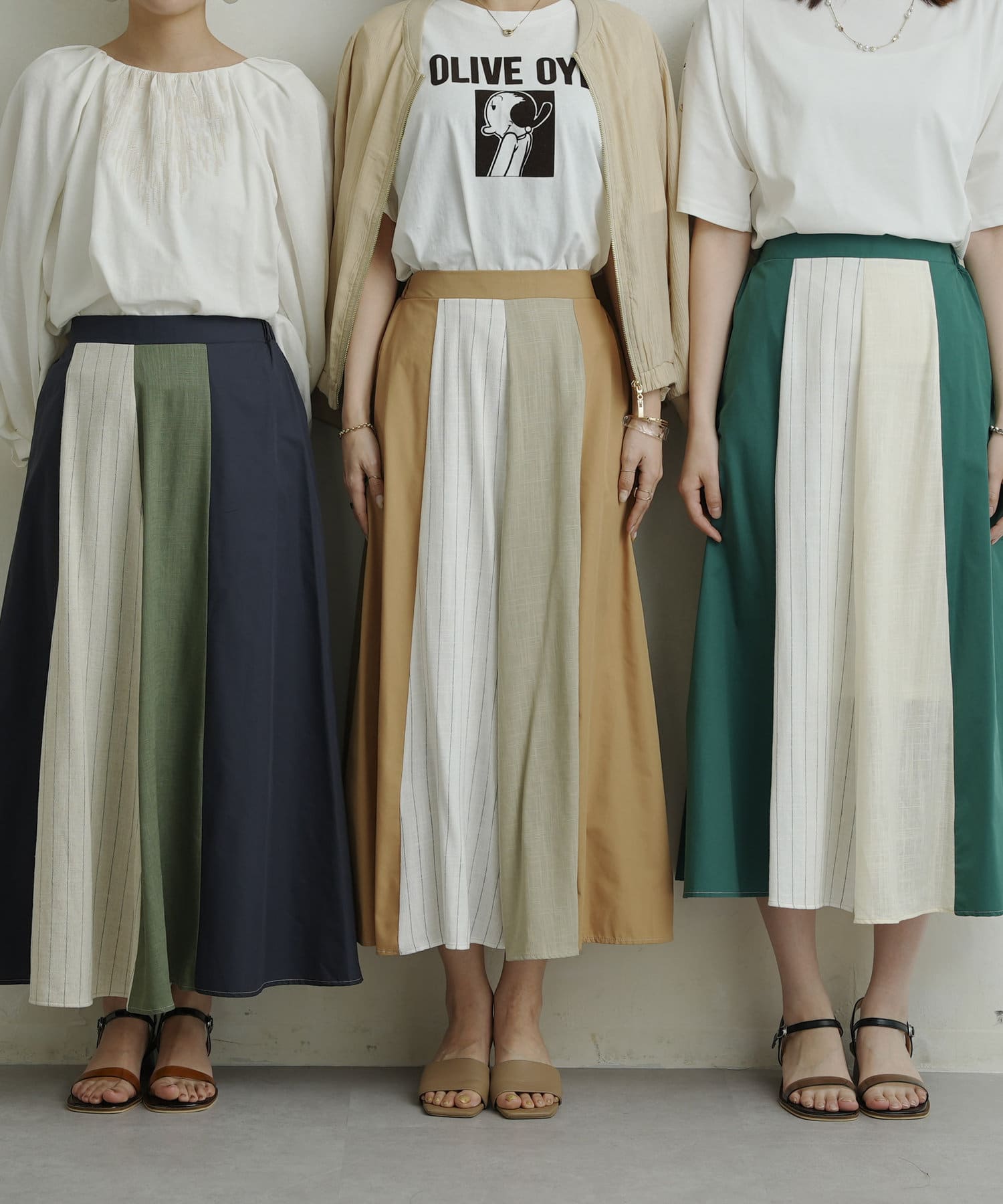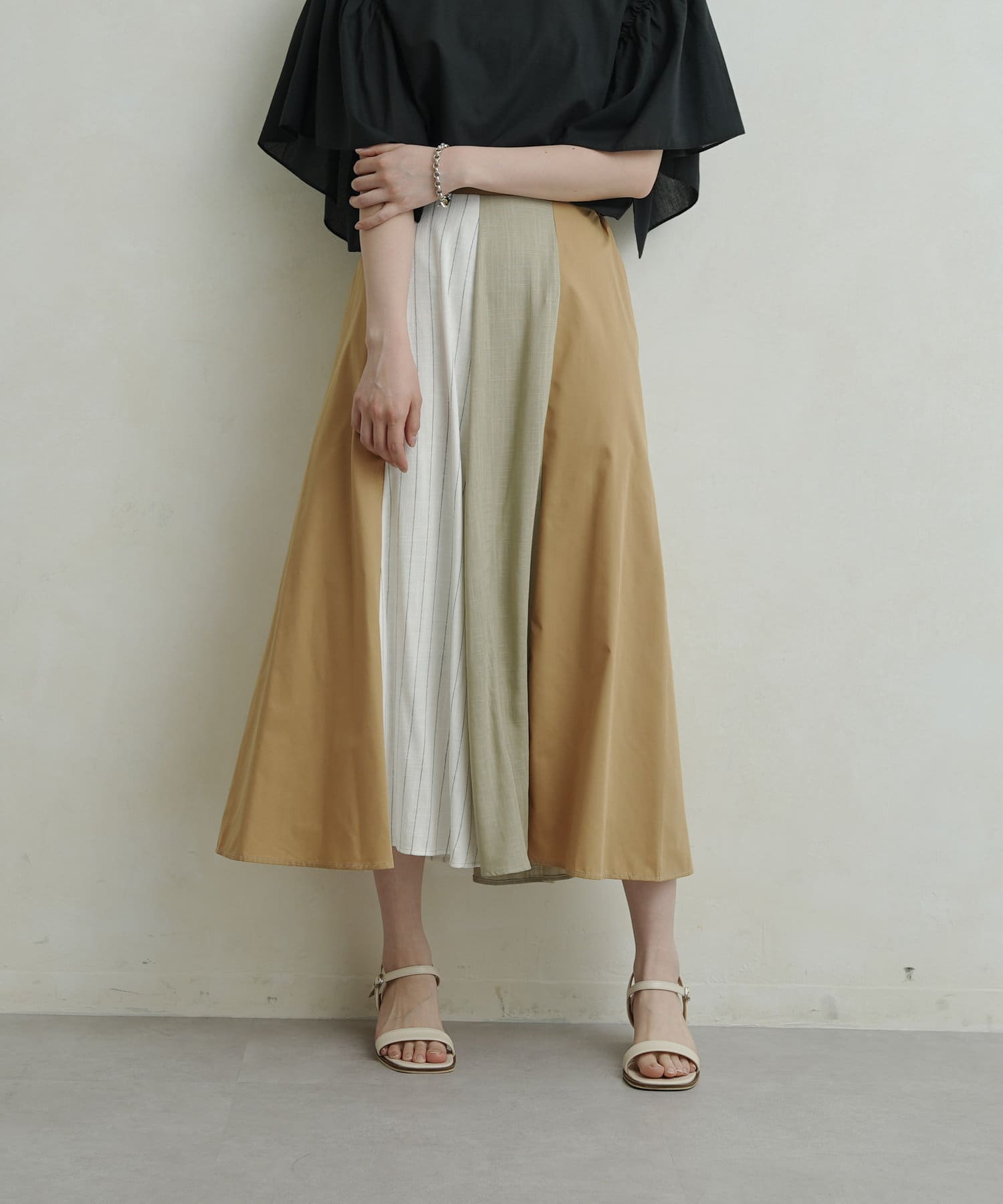 ストライプ×配色の女性らしさを引き立ててくれるフレアスカート