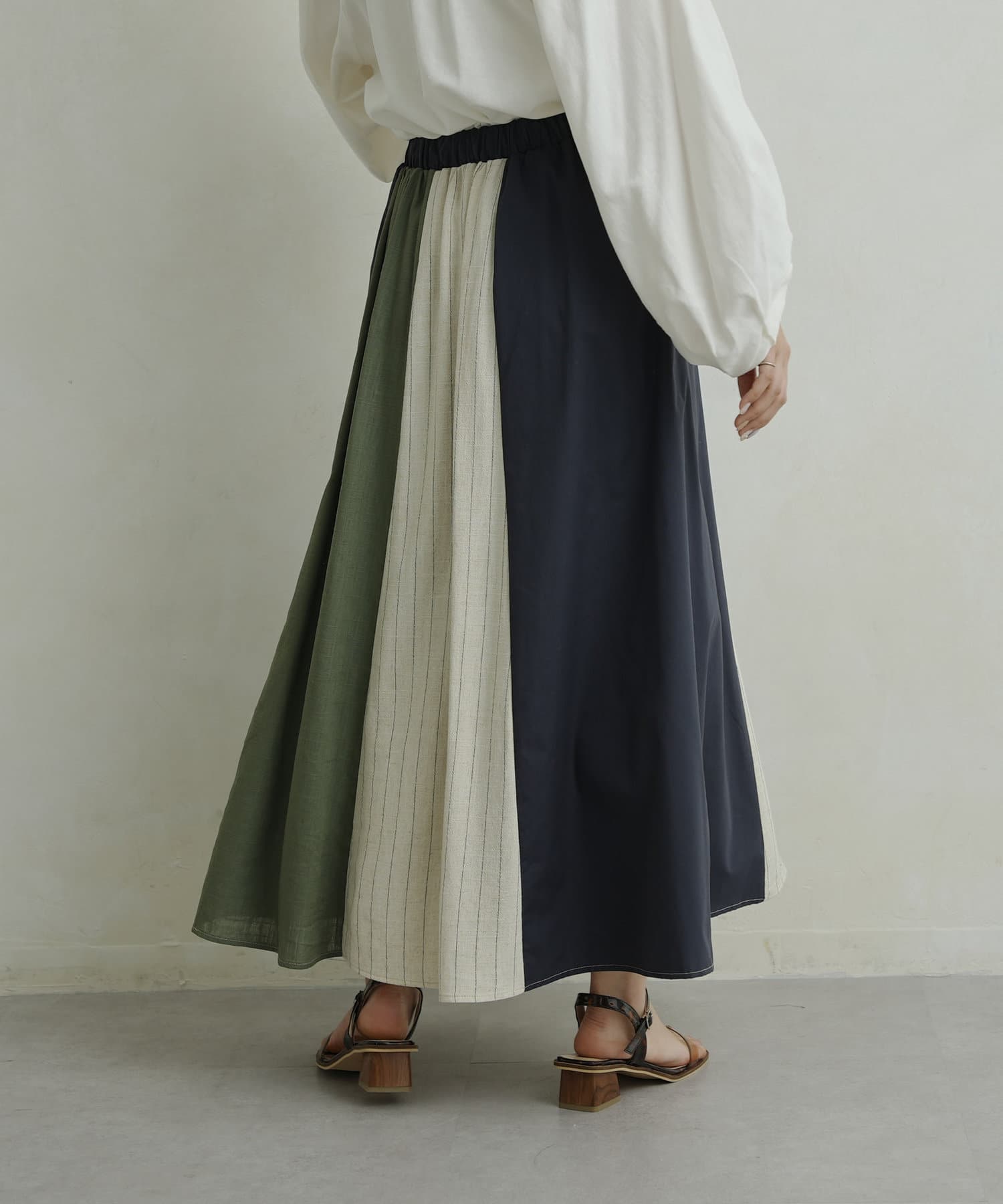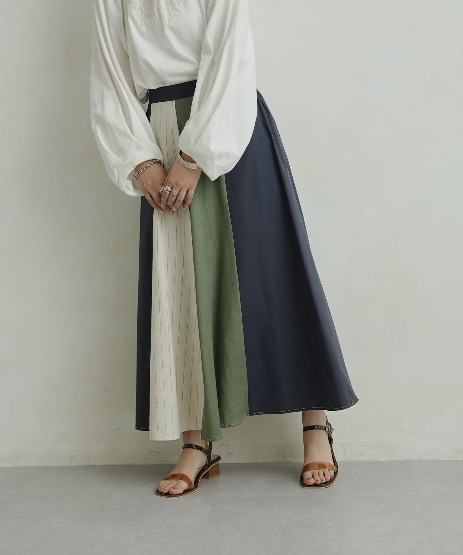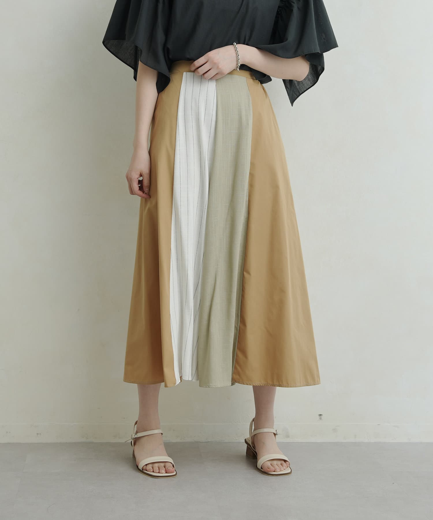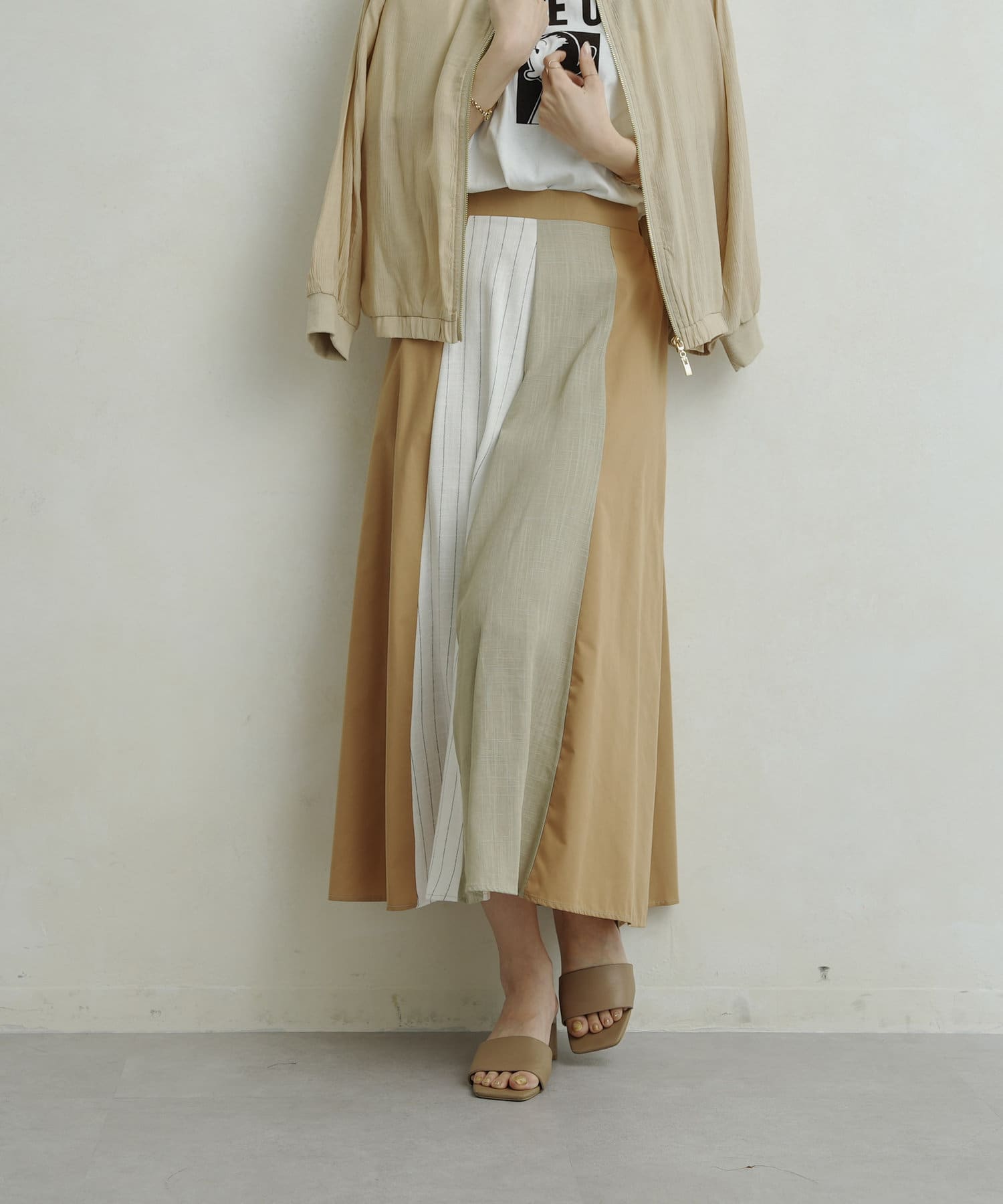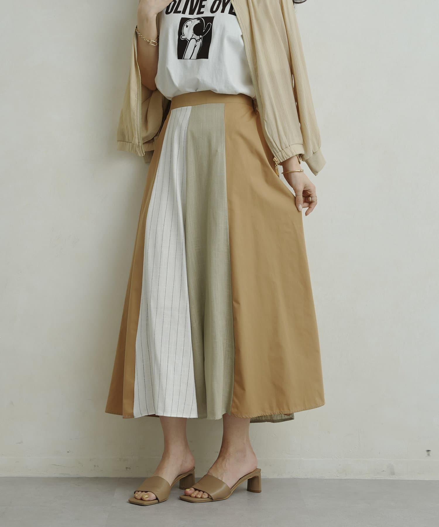 ストライプ×配色の女性らしさを引き立ててくれるフレアスカート