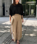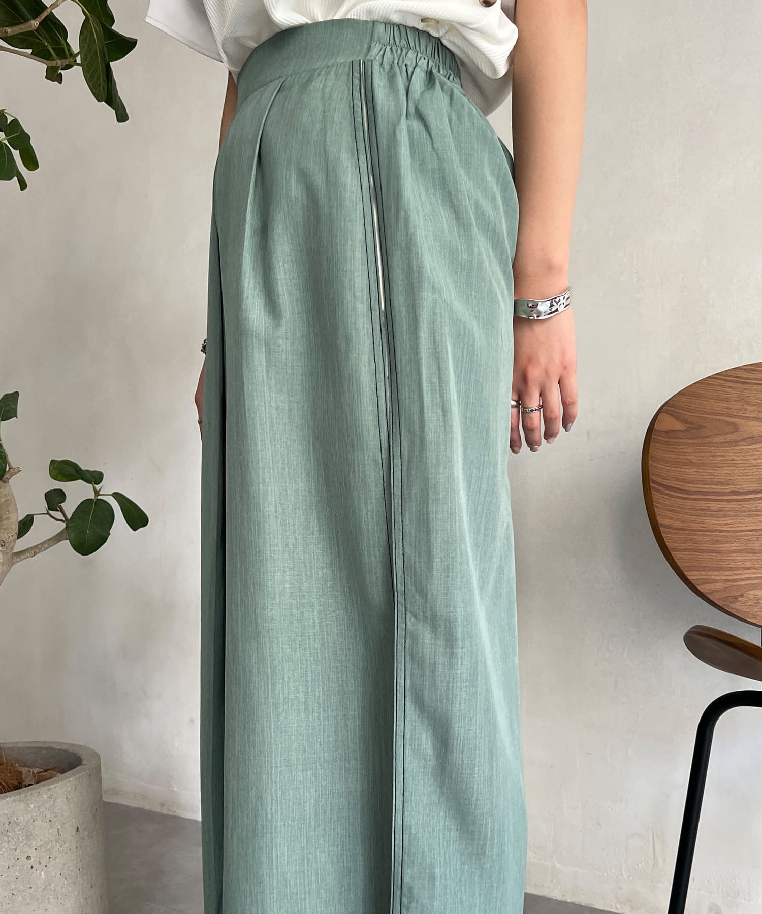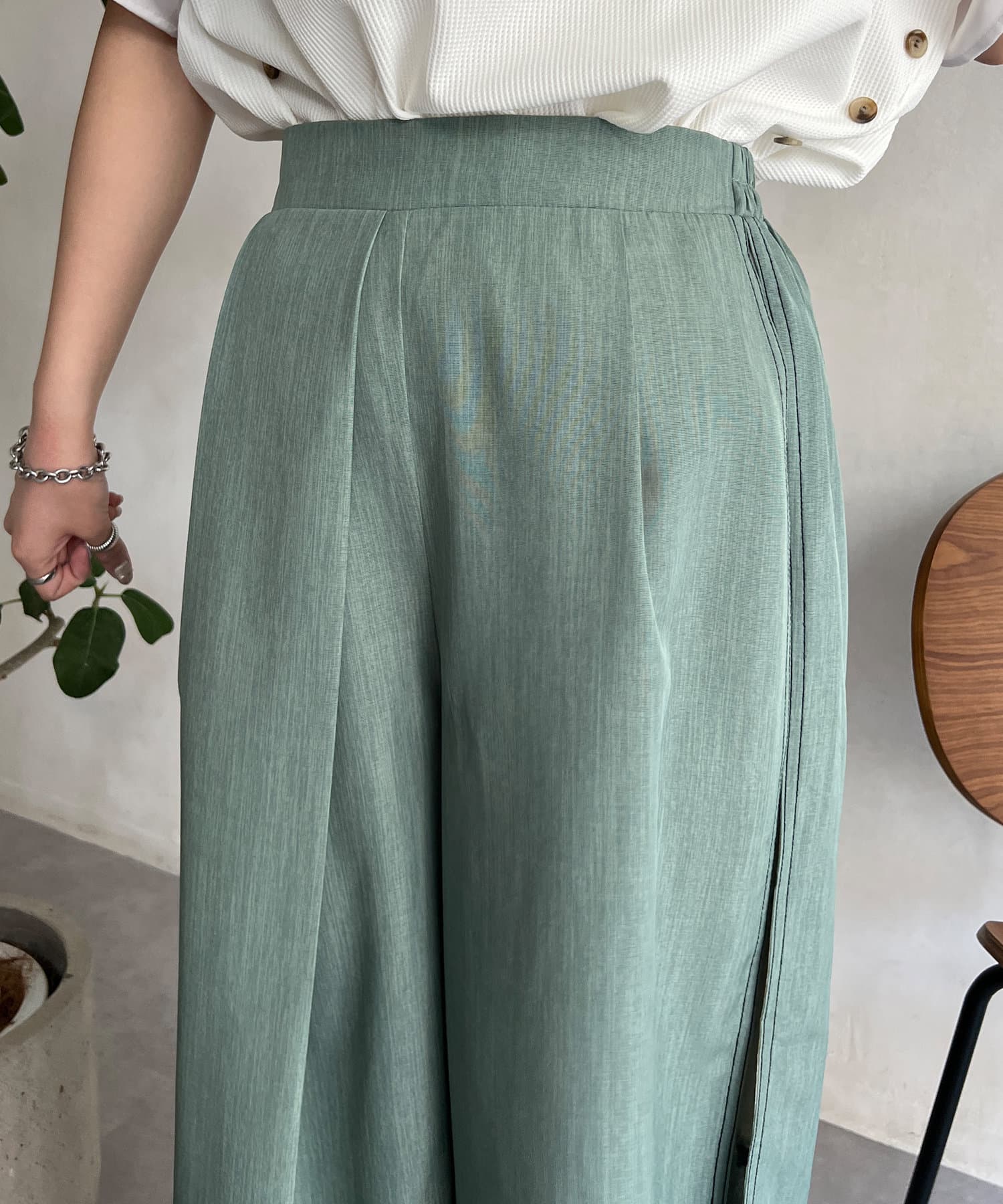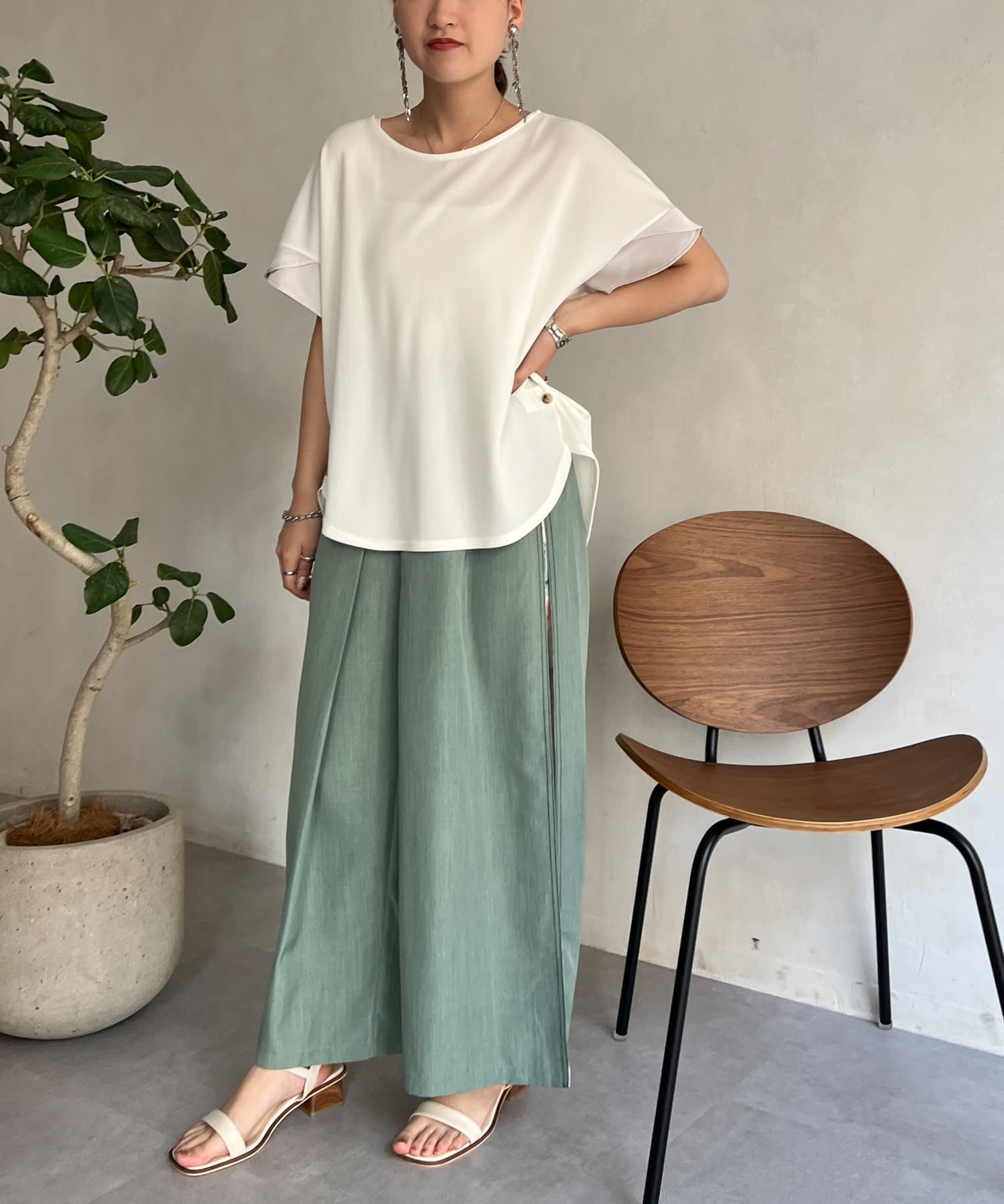 ・ラップ風タックが脚のラインをスリムで長く見えるようにスタイリング
