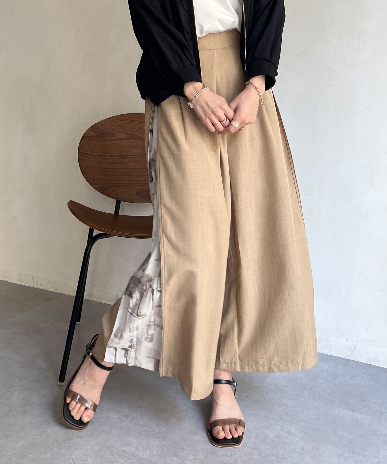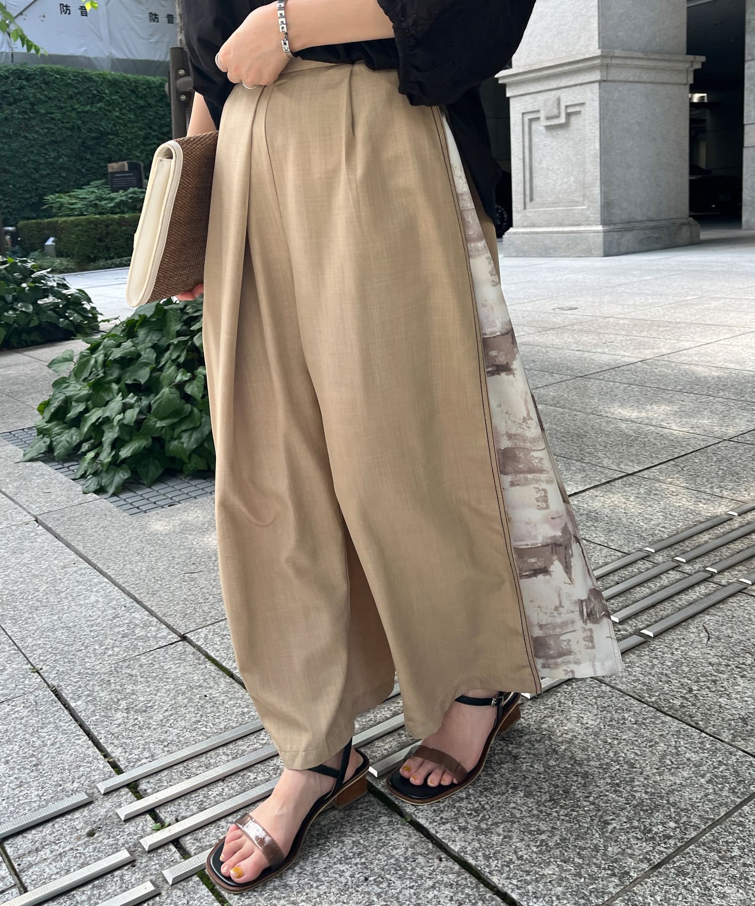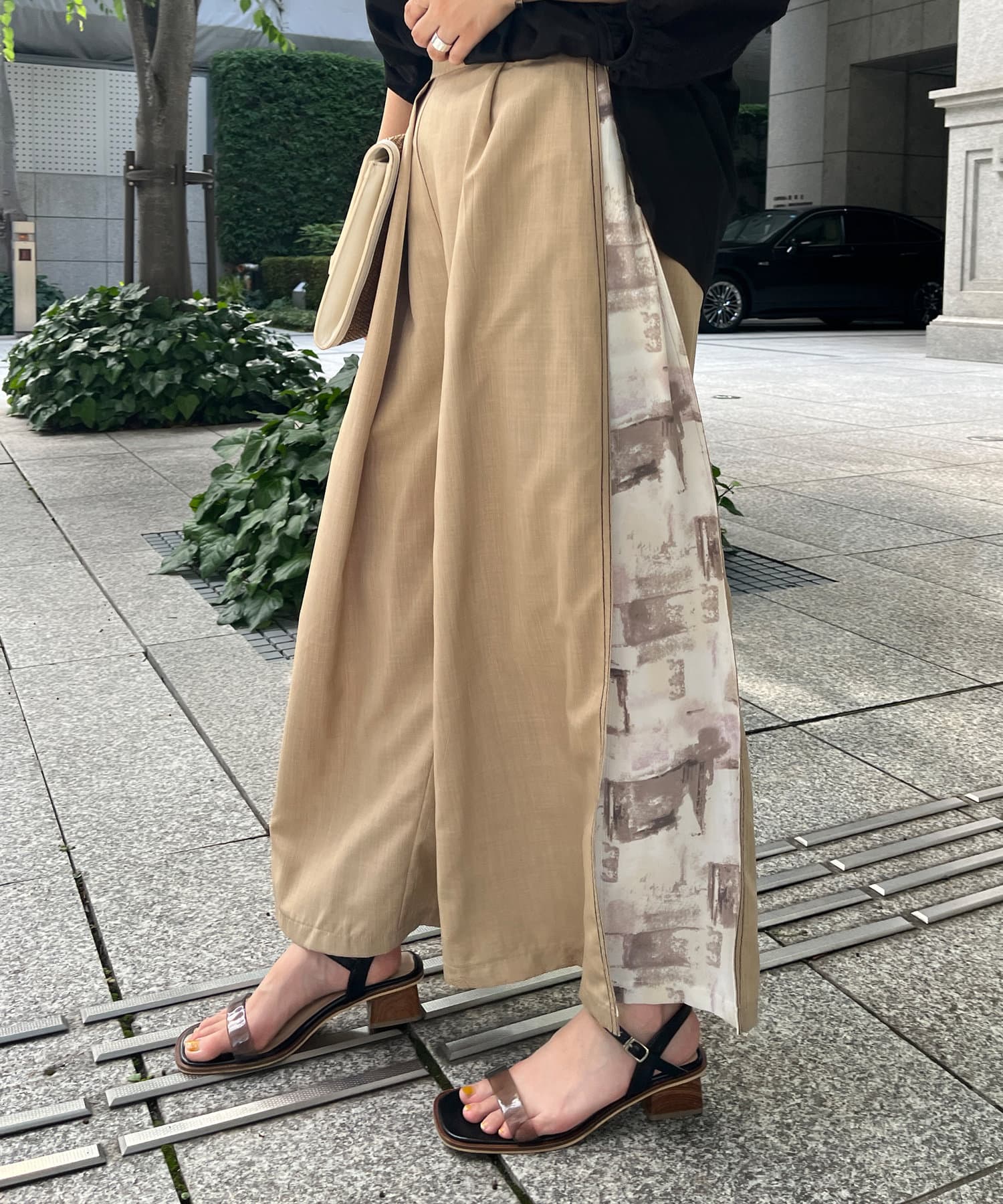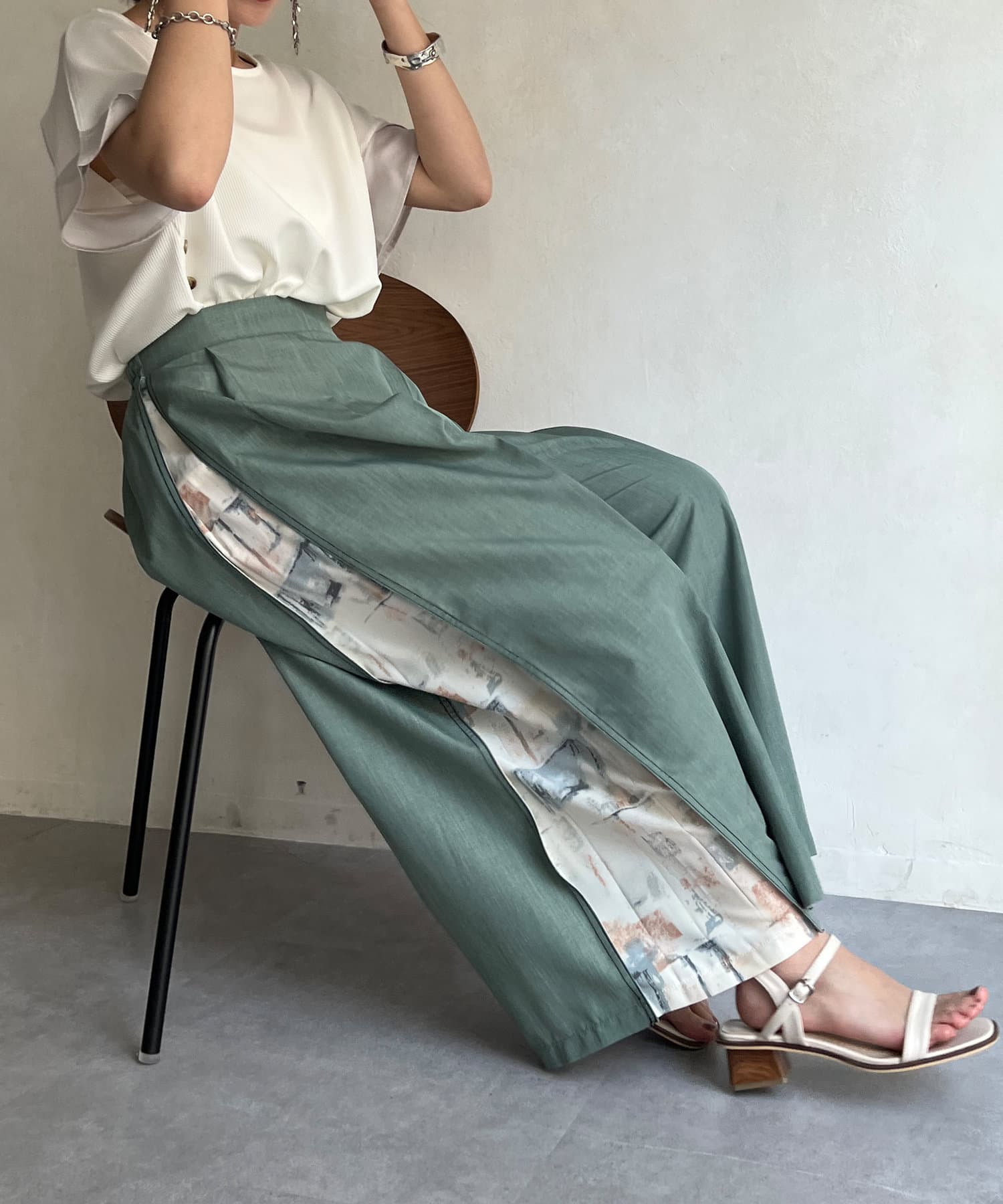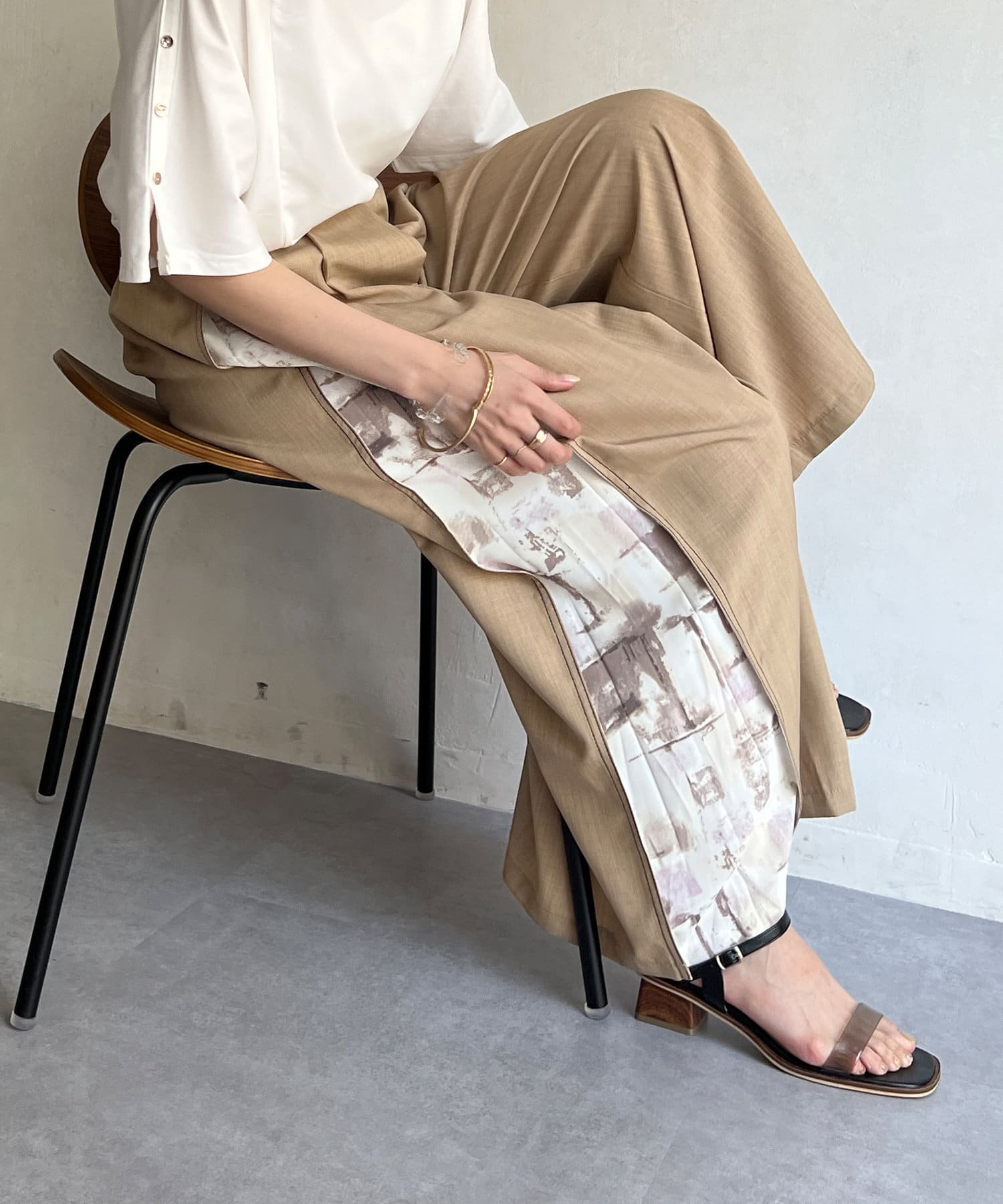 涼しげなぼかし柄がポイントのサイドプリーツワイドパンツ