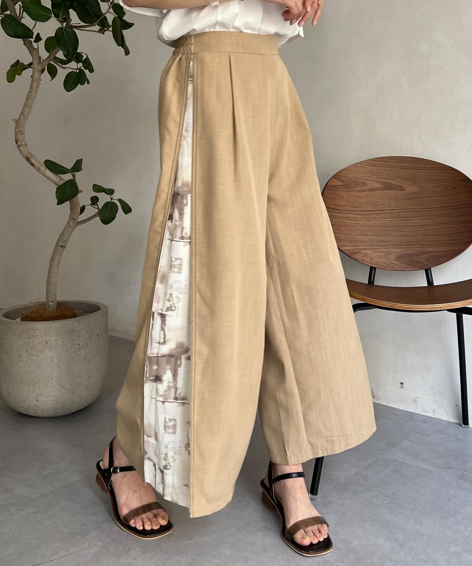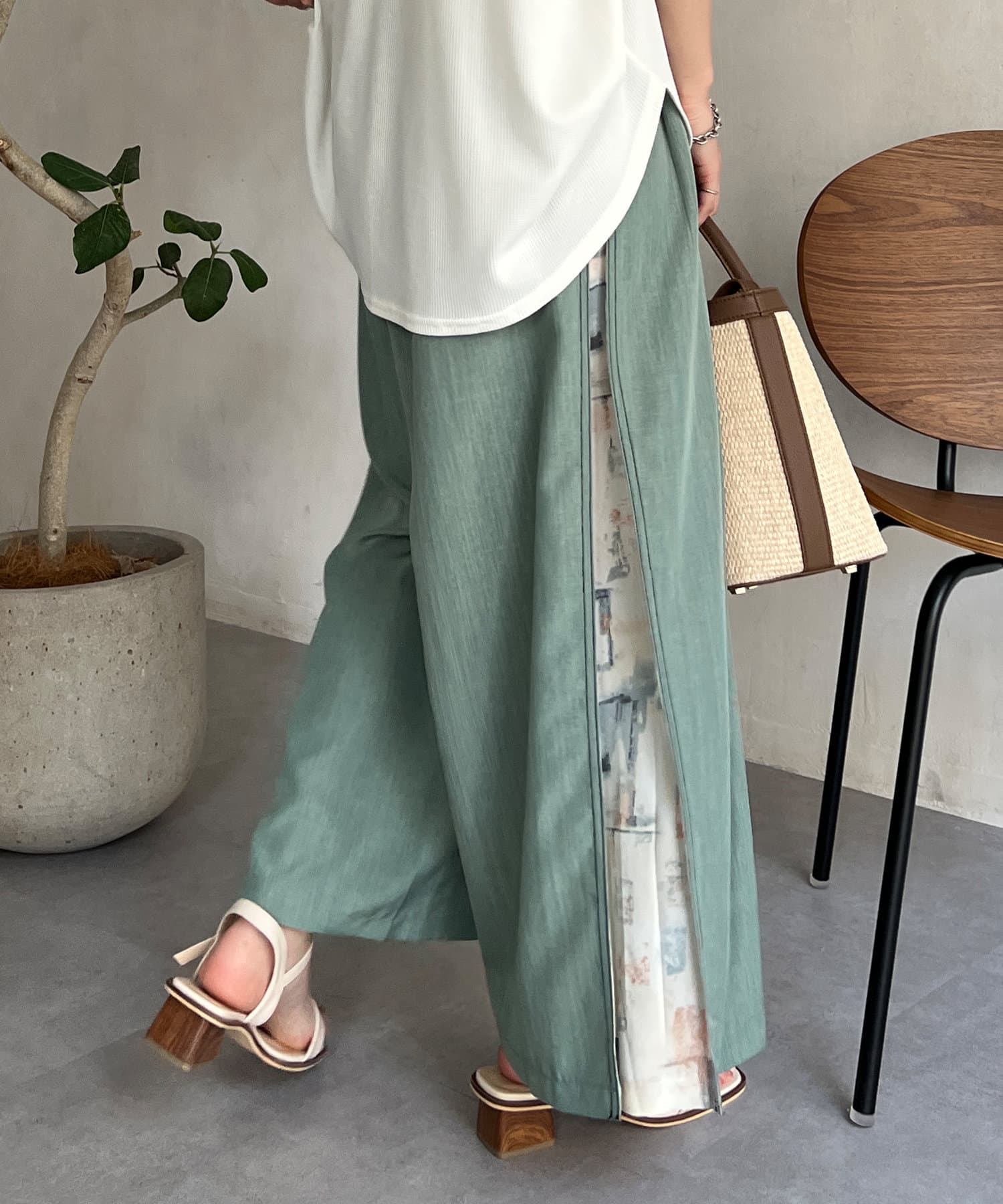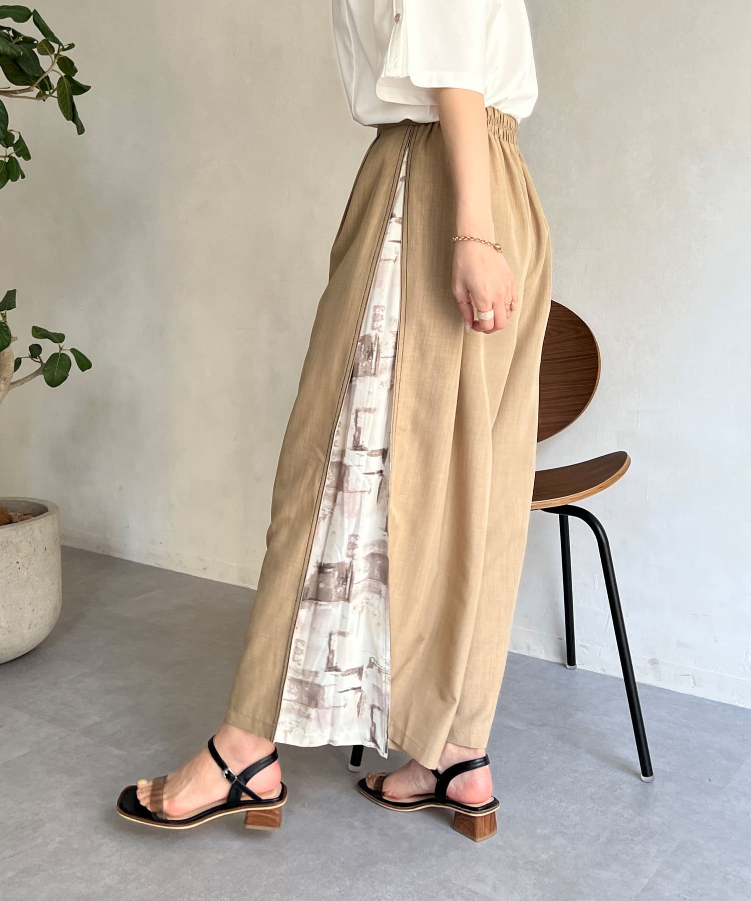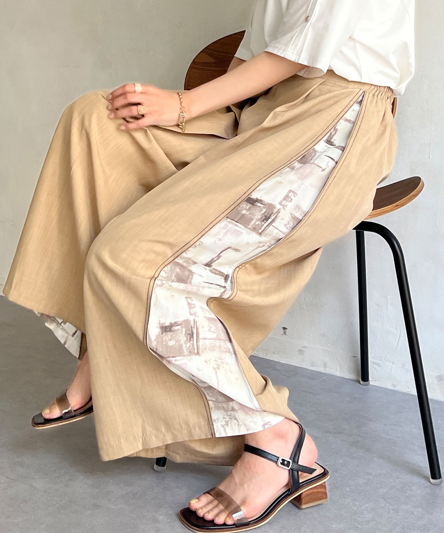 涼しげなぼかし柄がポイントのサイドプリーツワイドパンツ