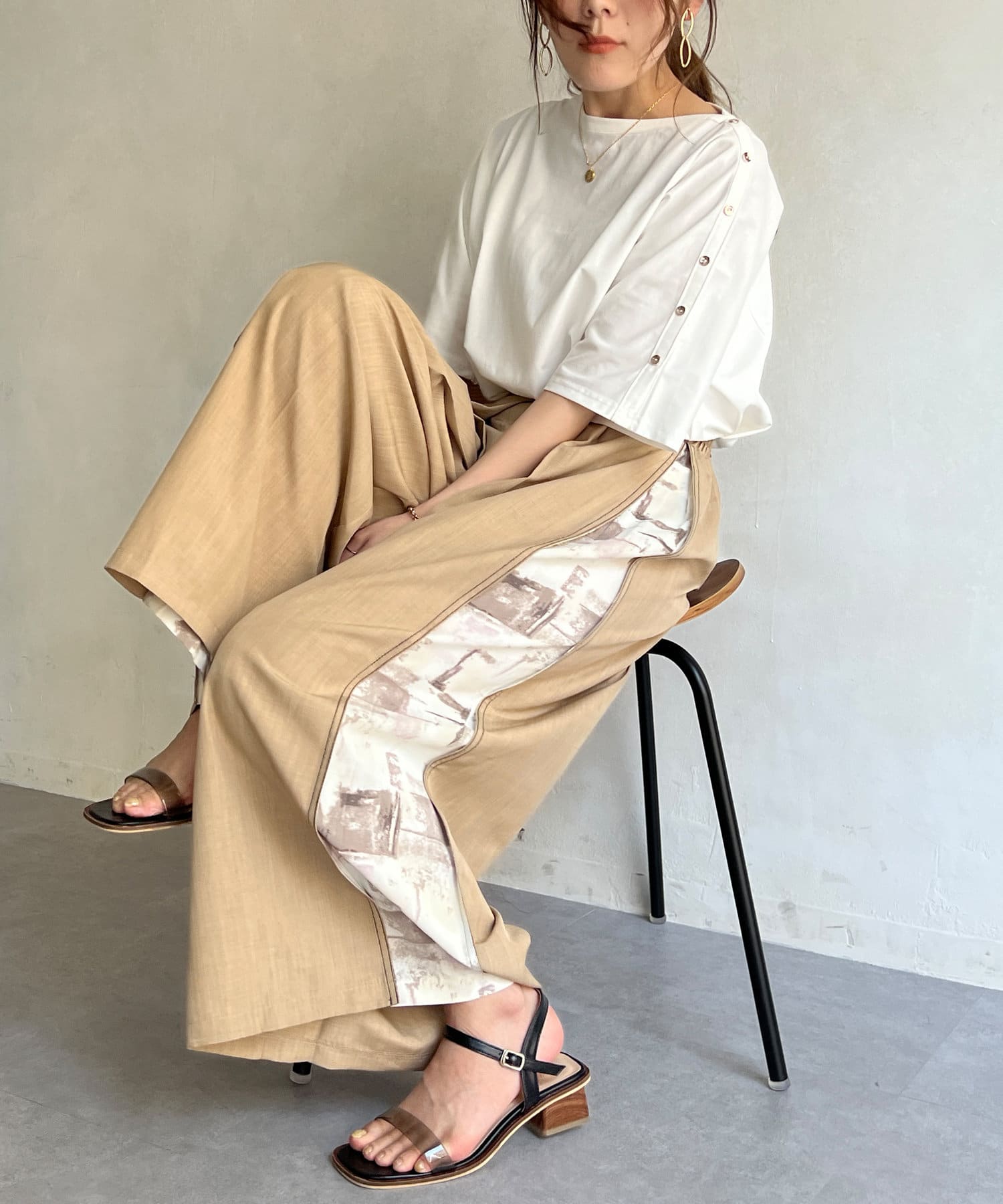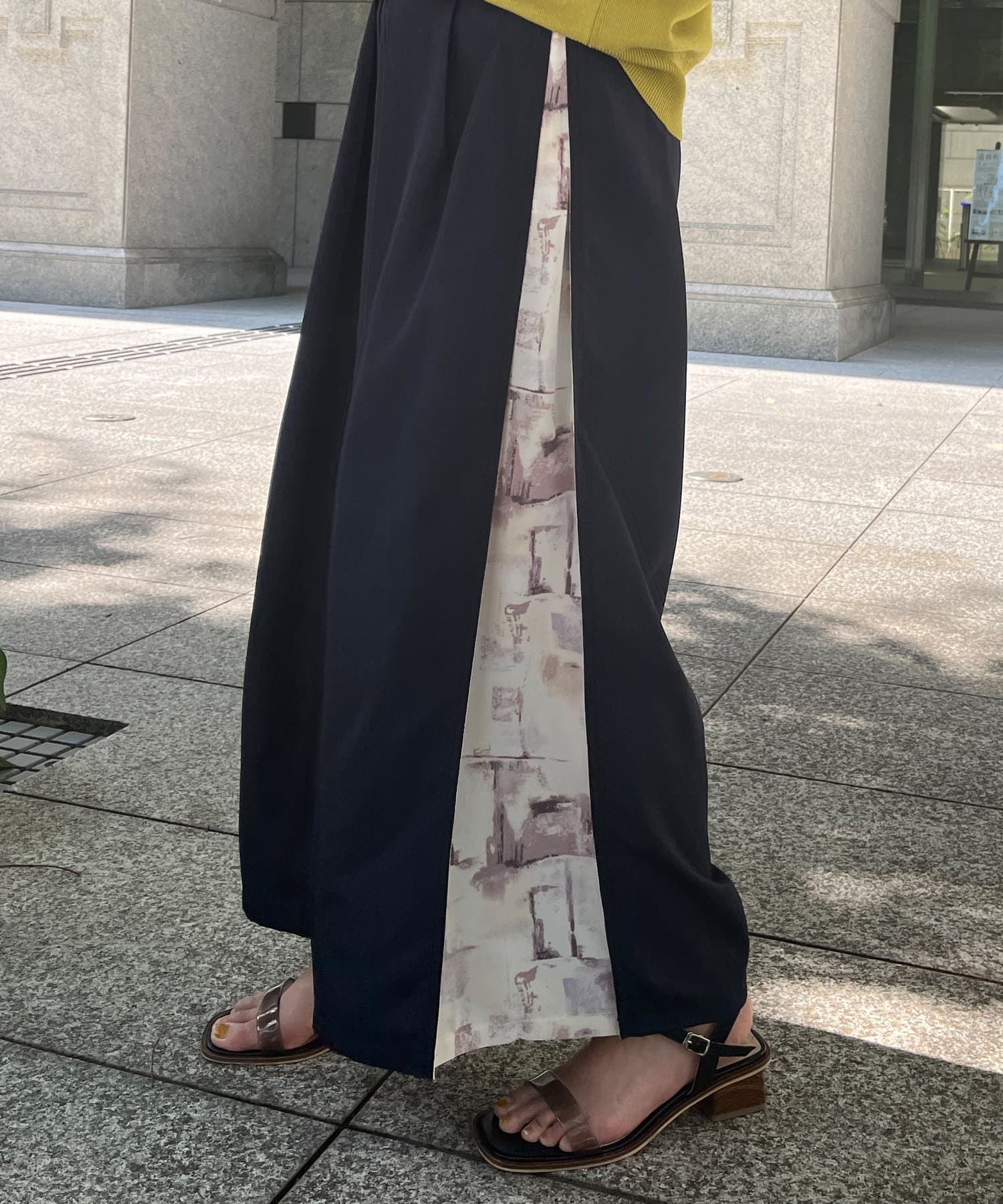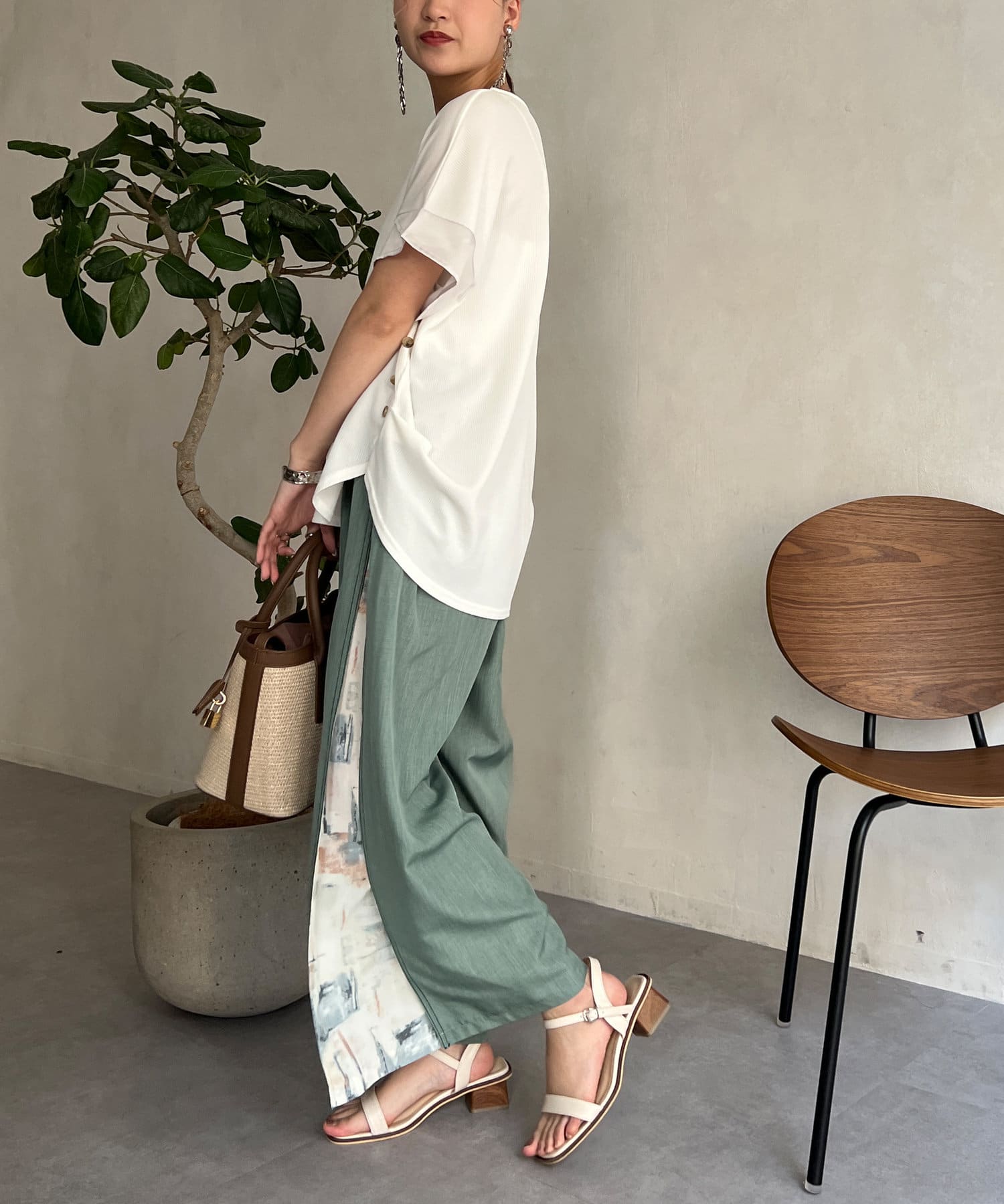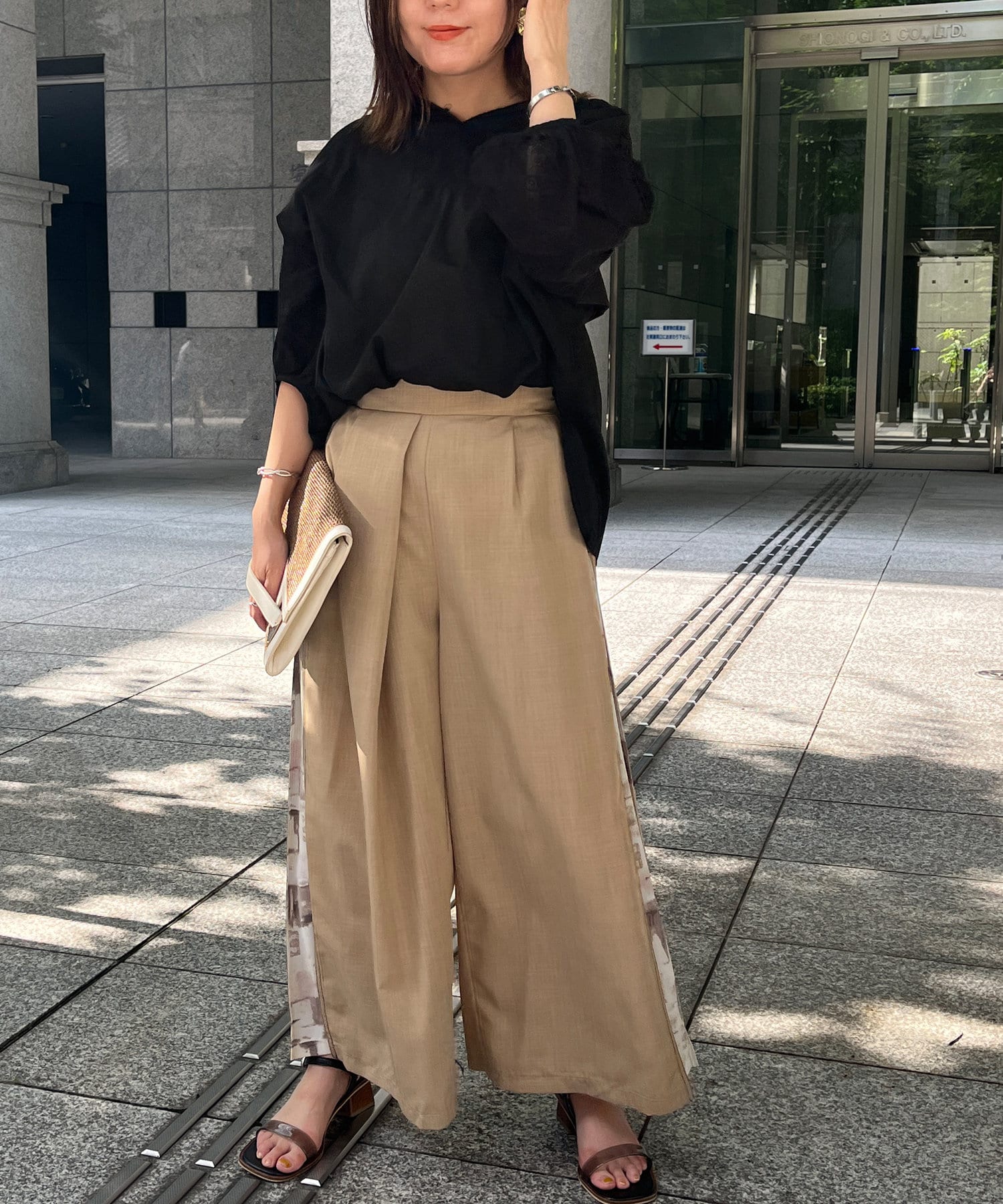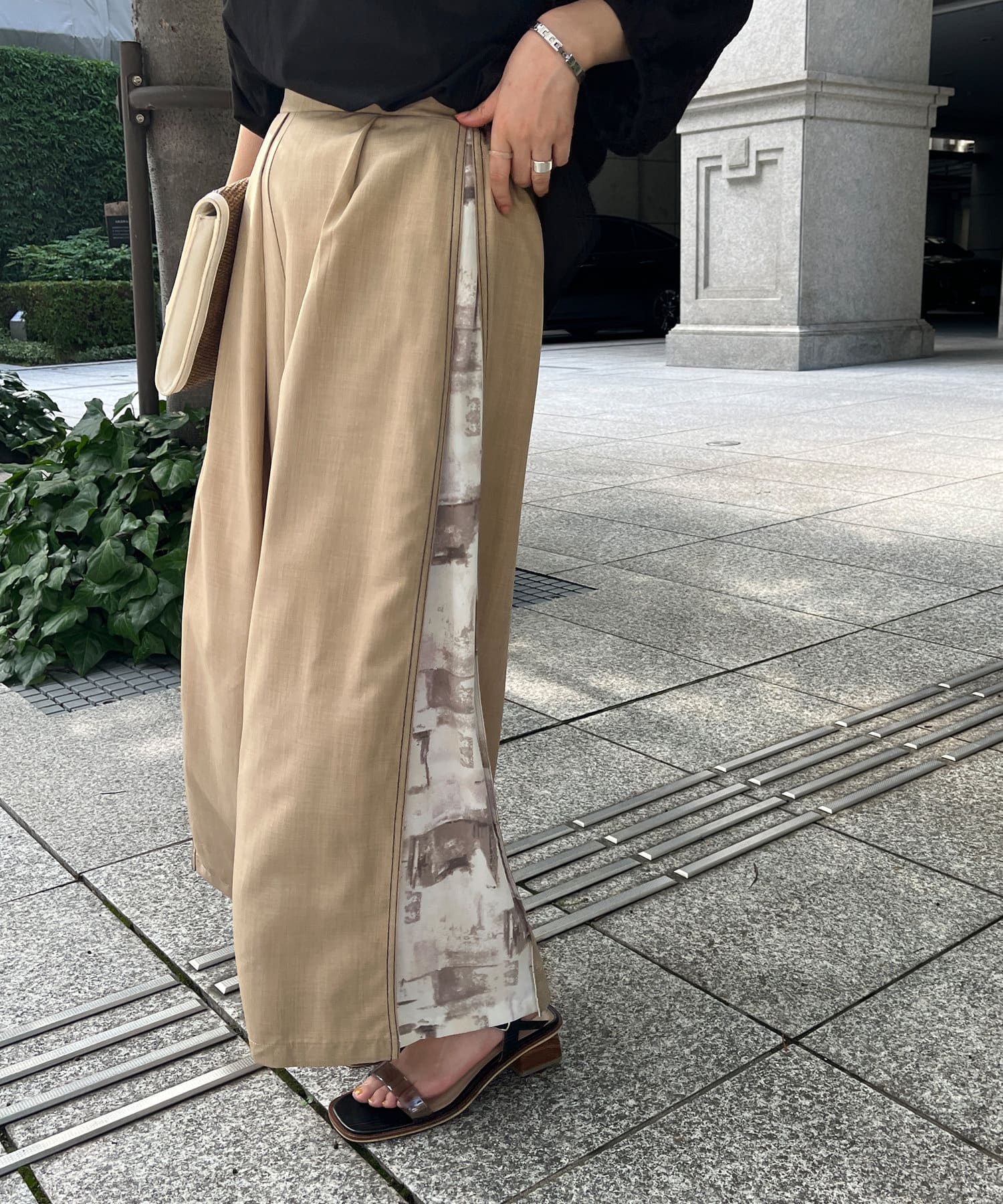 涼しげなぼかし柄がポイントのサイドプリーツワイドパンツ