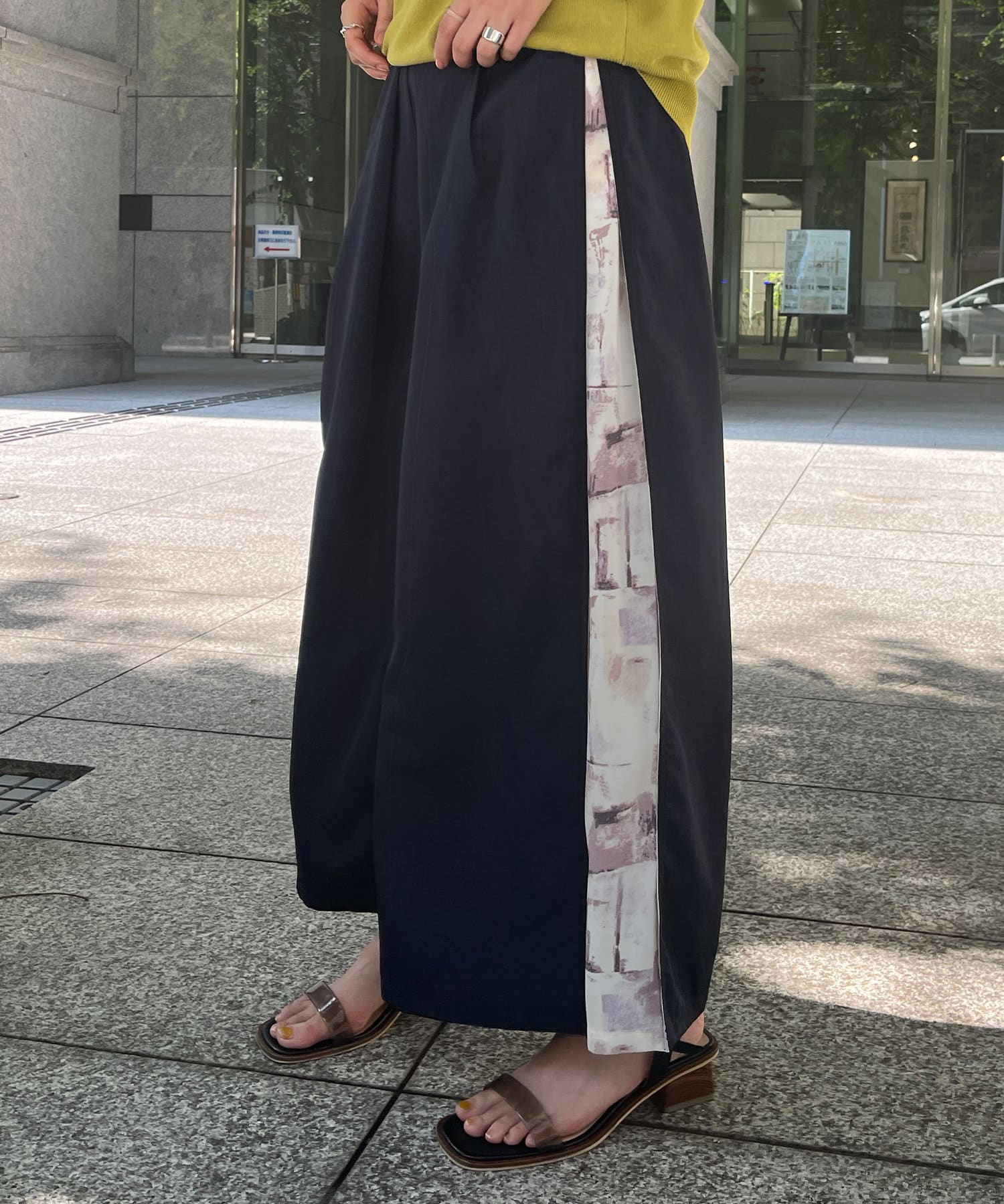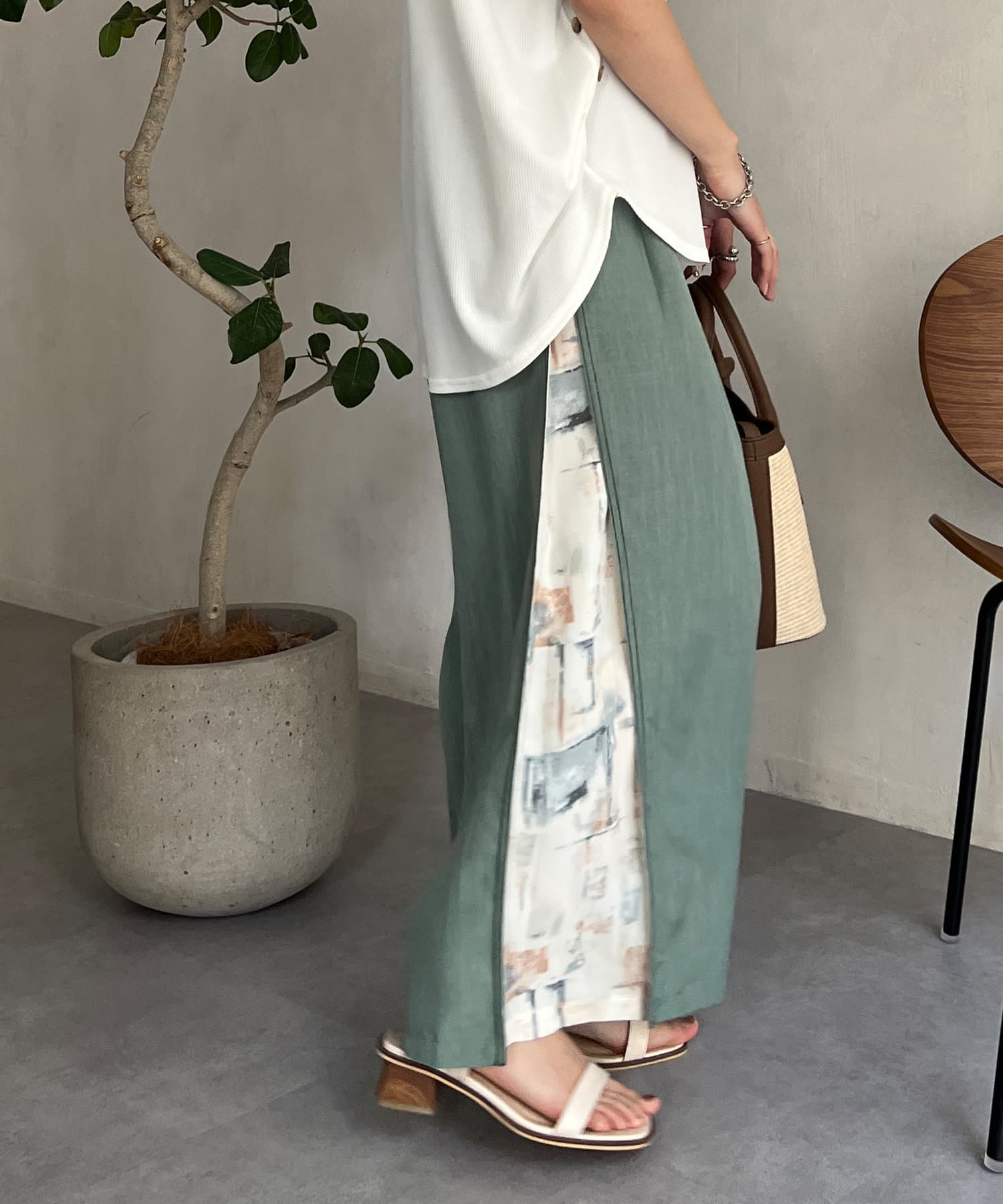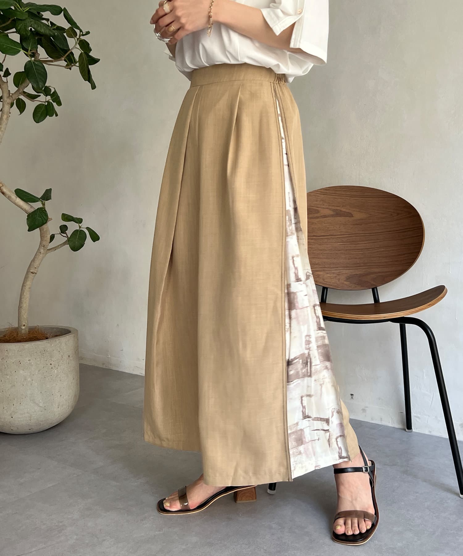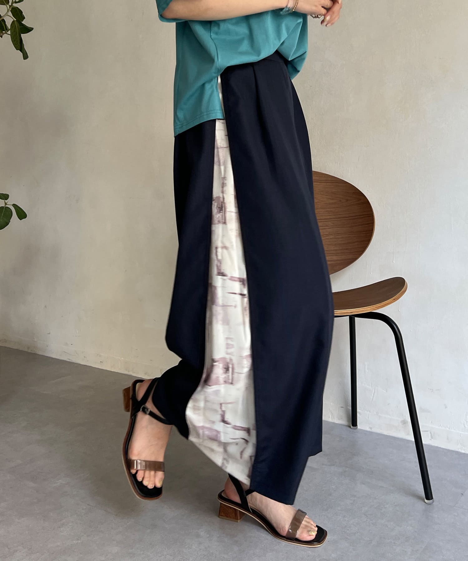 涼しげなぼかし柄がポイントのサイドプリーツワイドパンツ