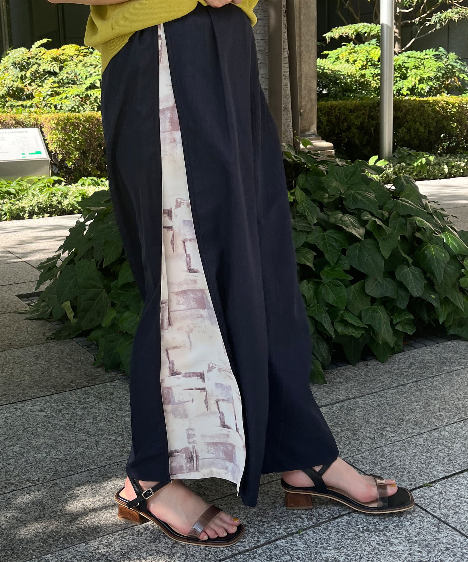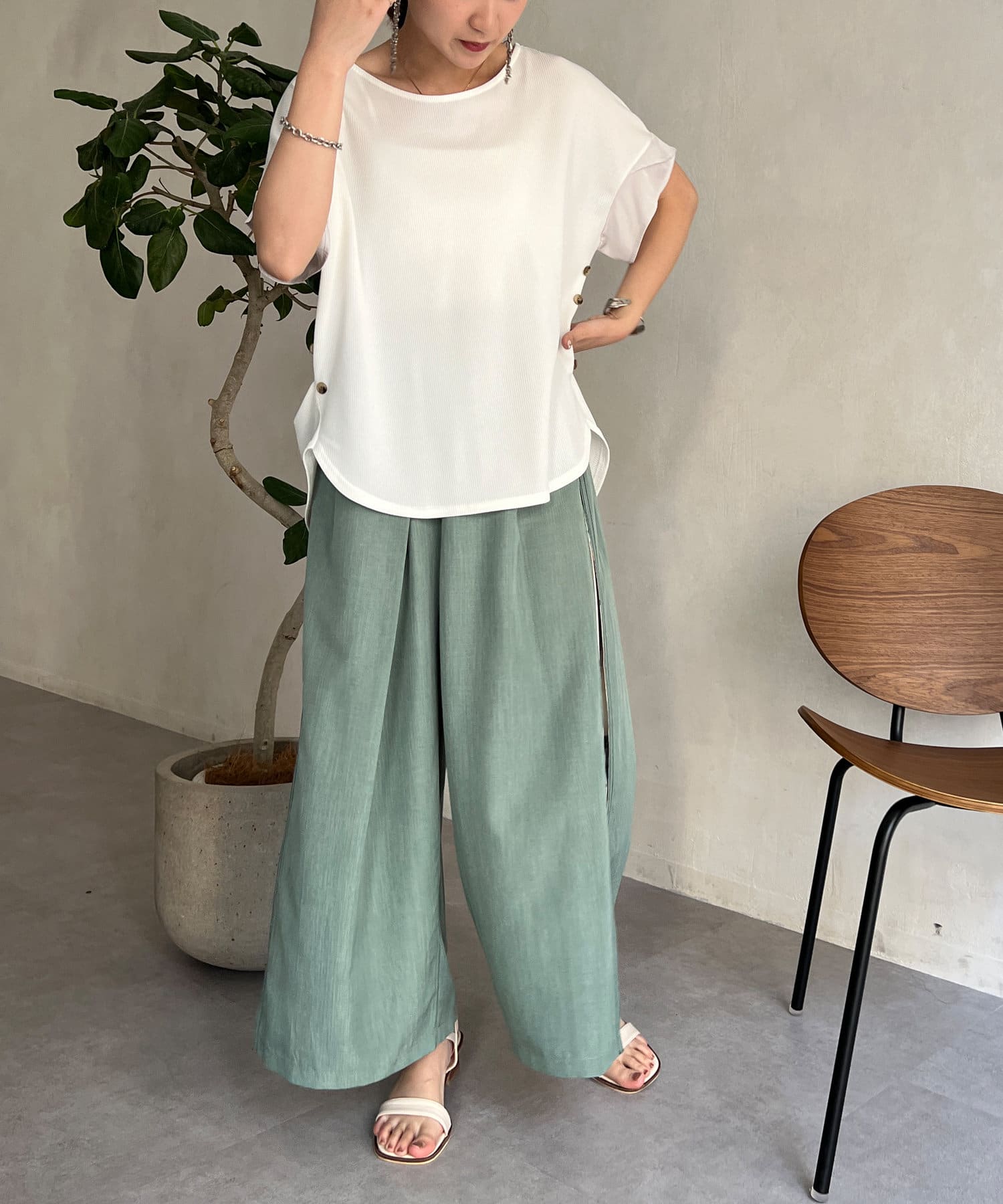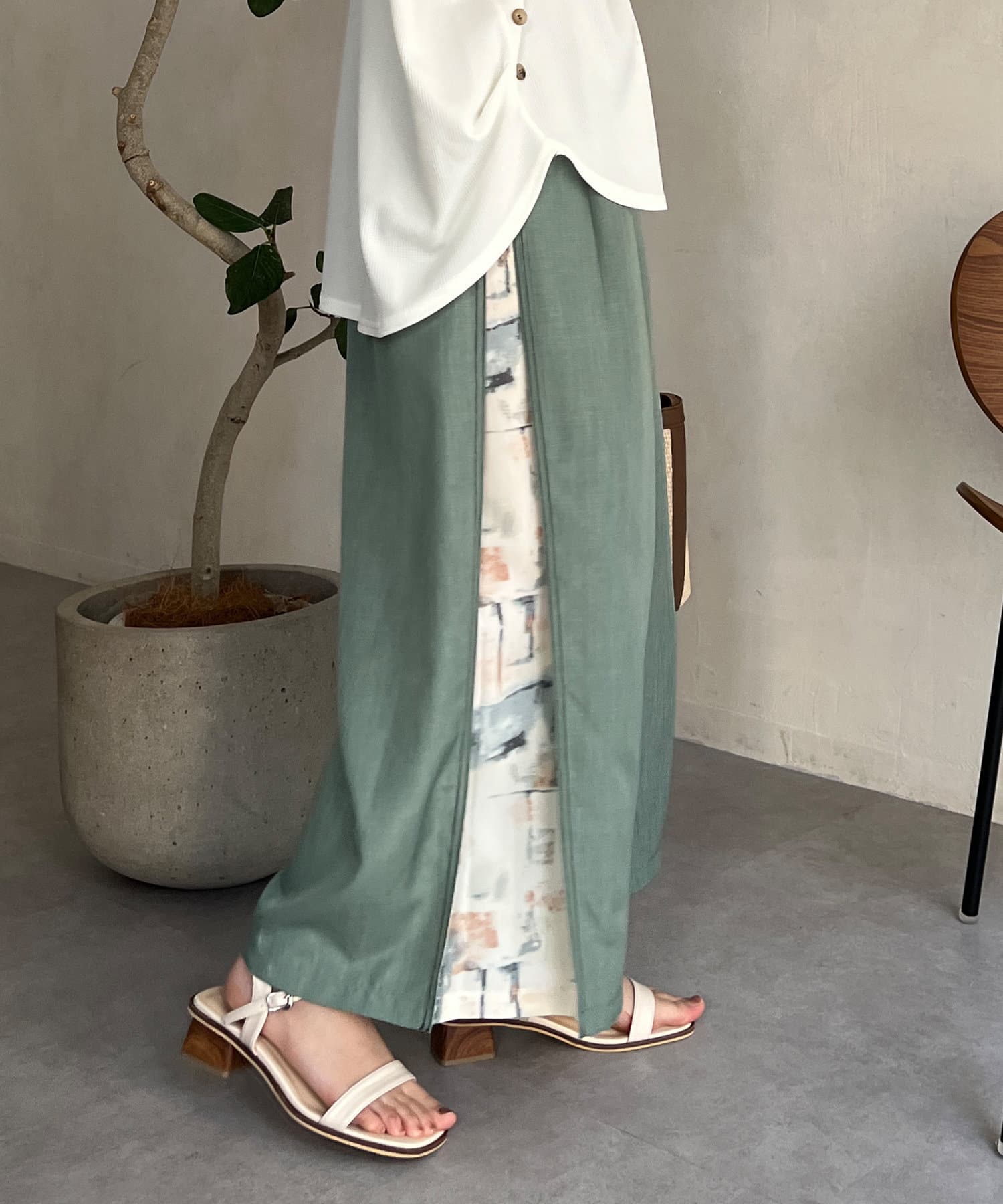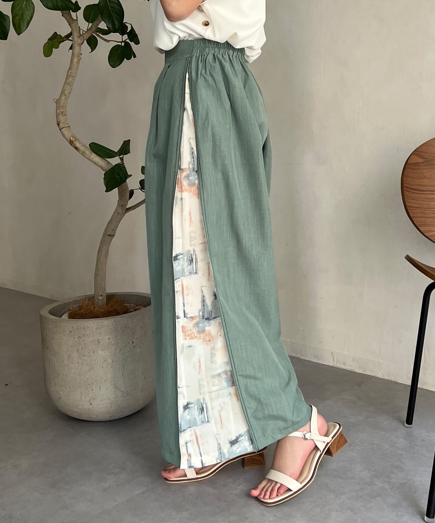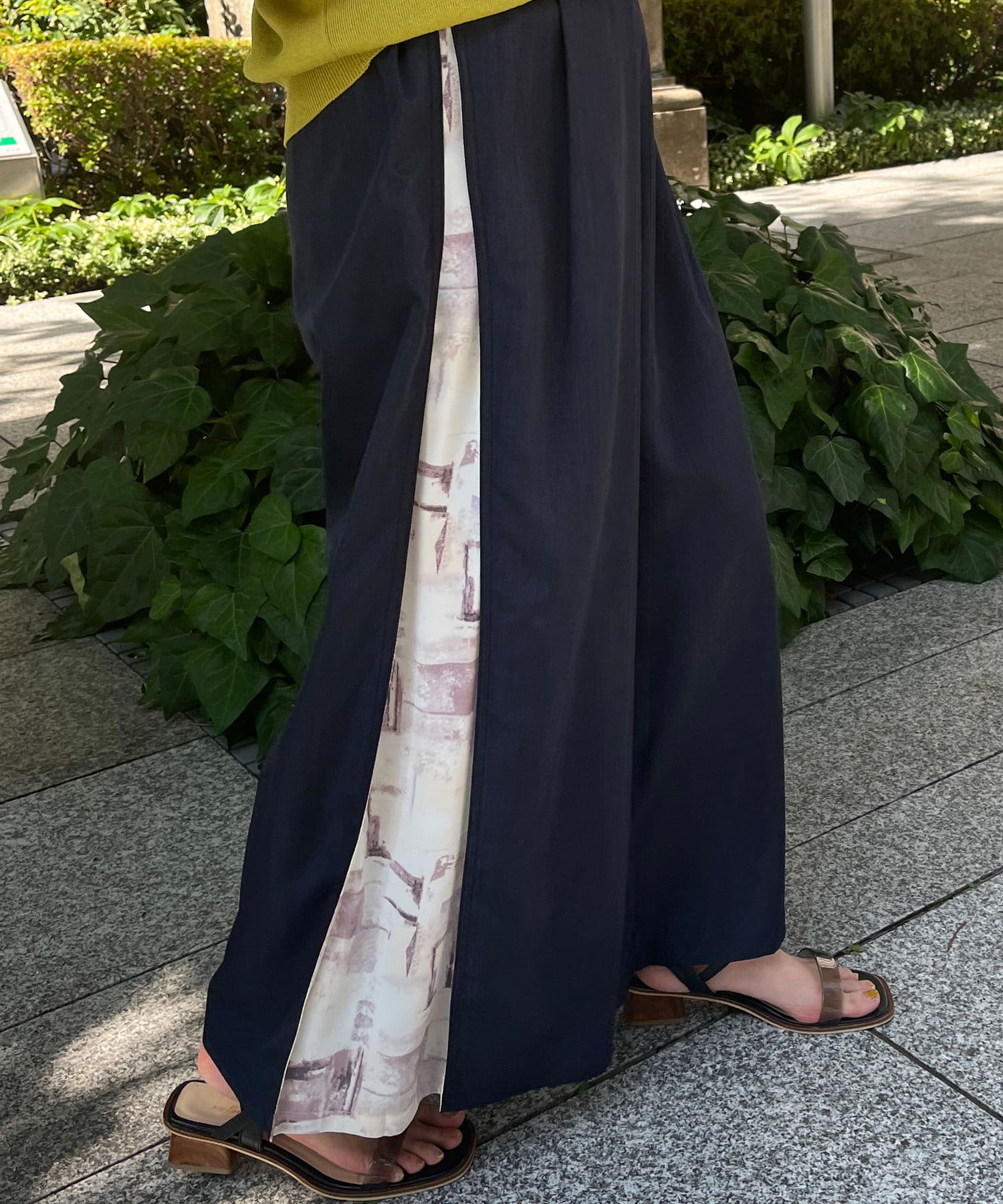 涼しげなぼかし柄がポイントのサイドプリーツワイドパンツ