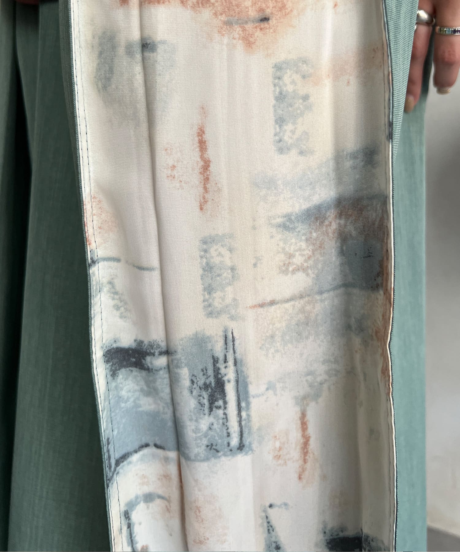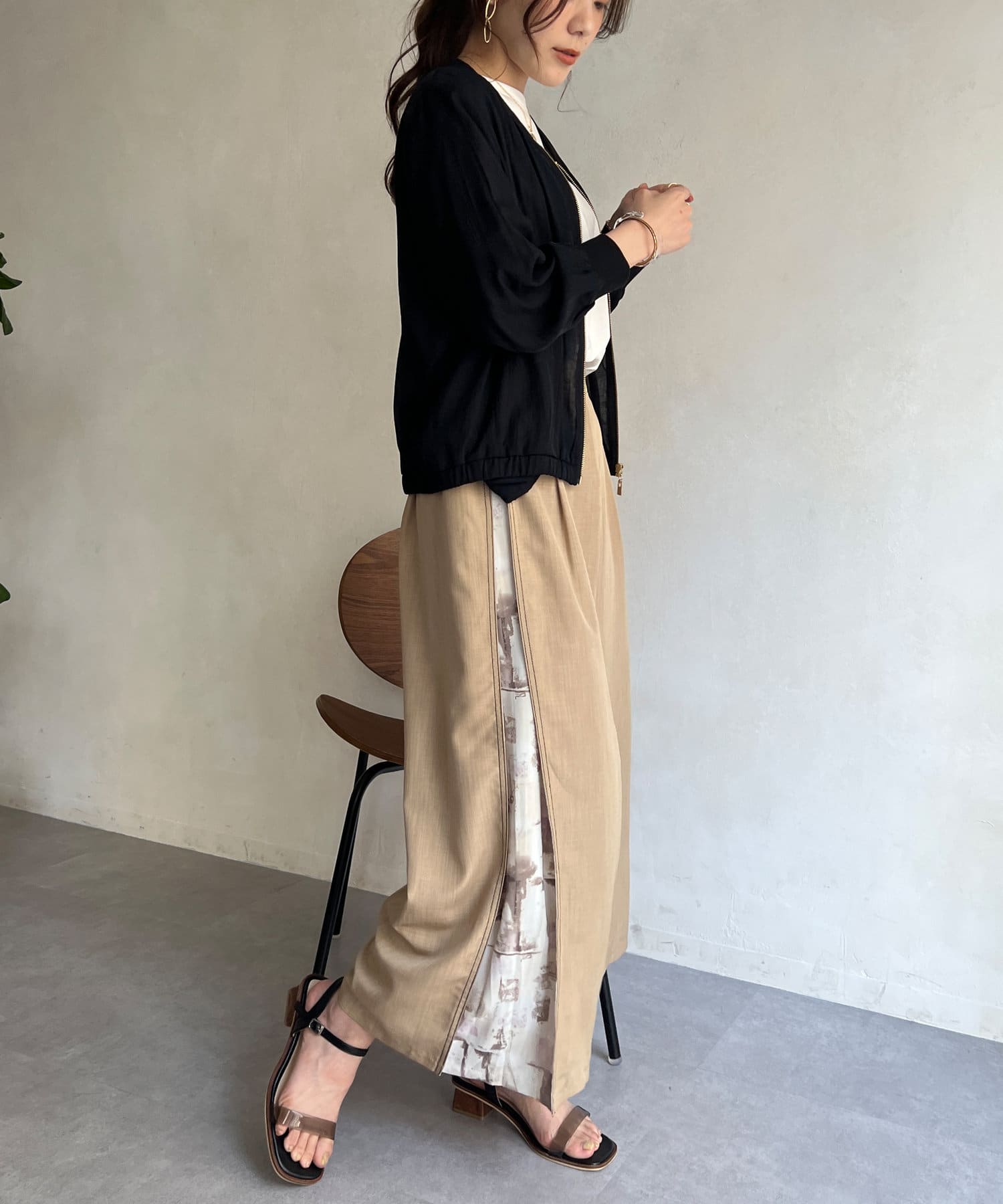 ・縦の配色切替ディテールと涼しげなぼかし柄がポイントのアイテム