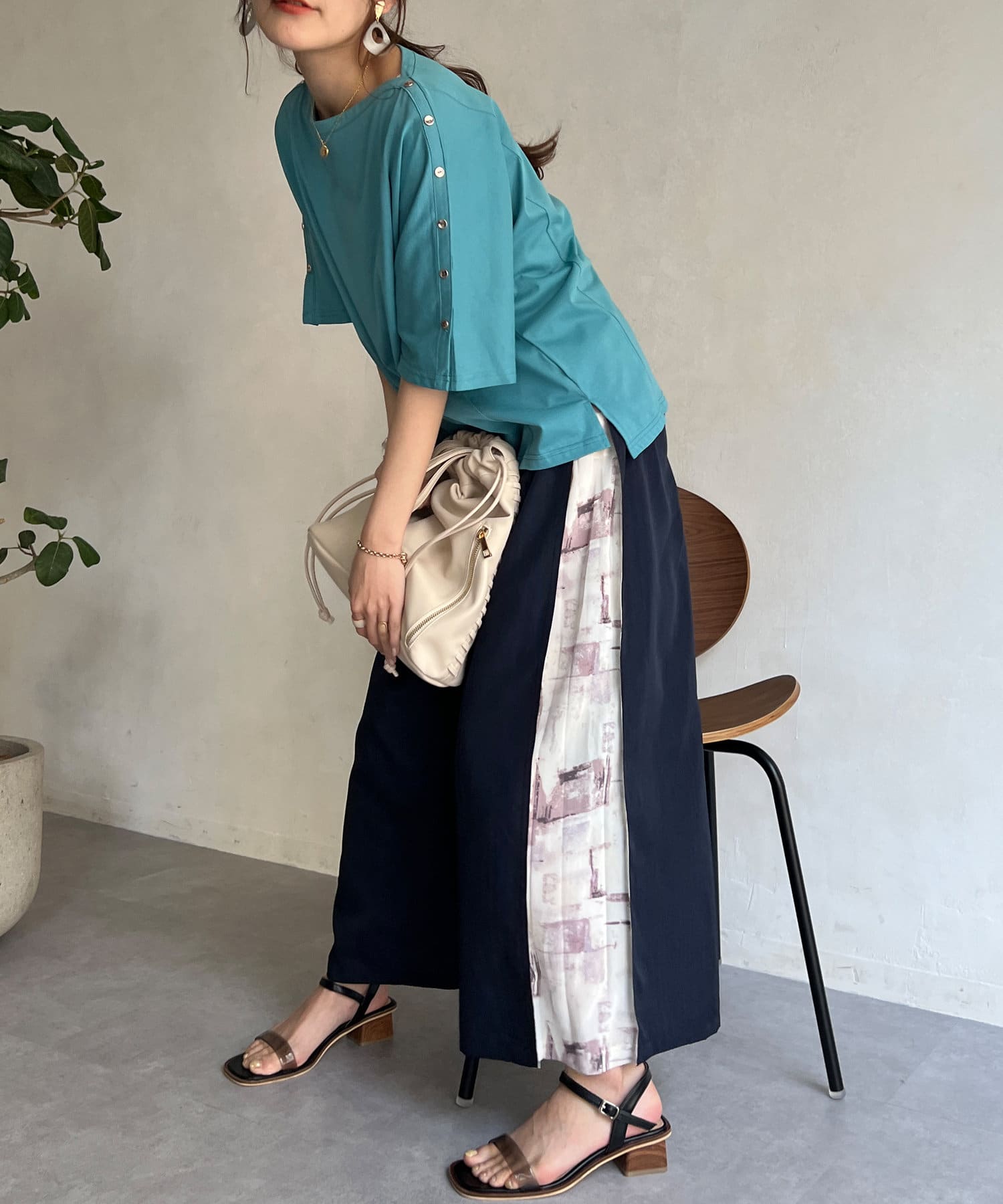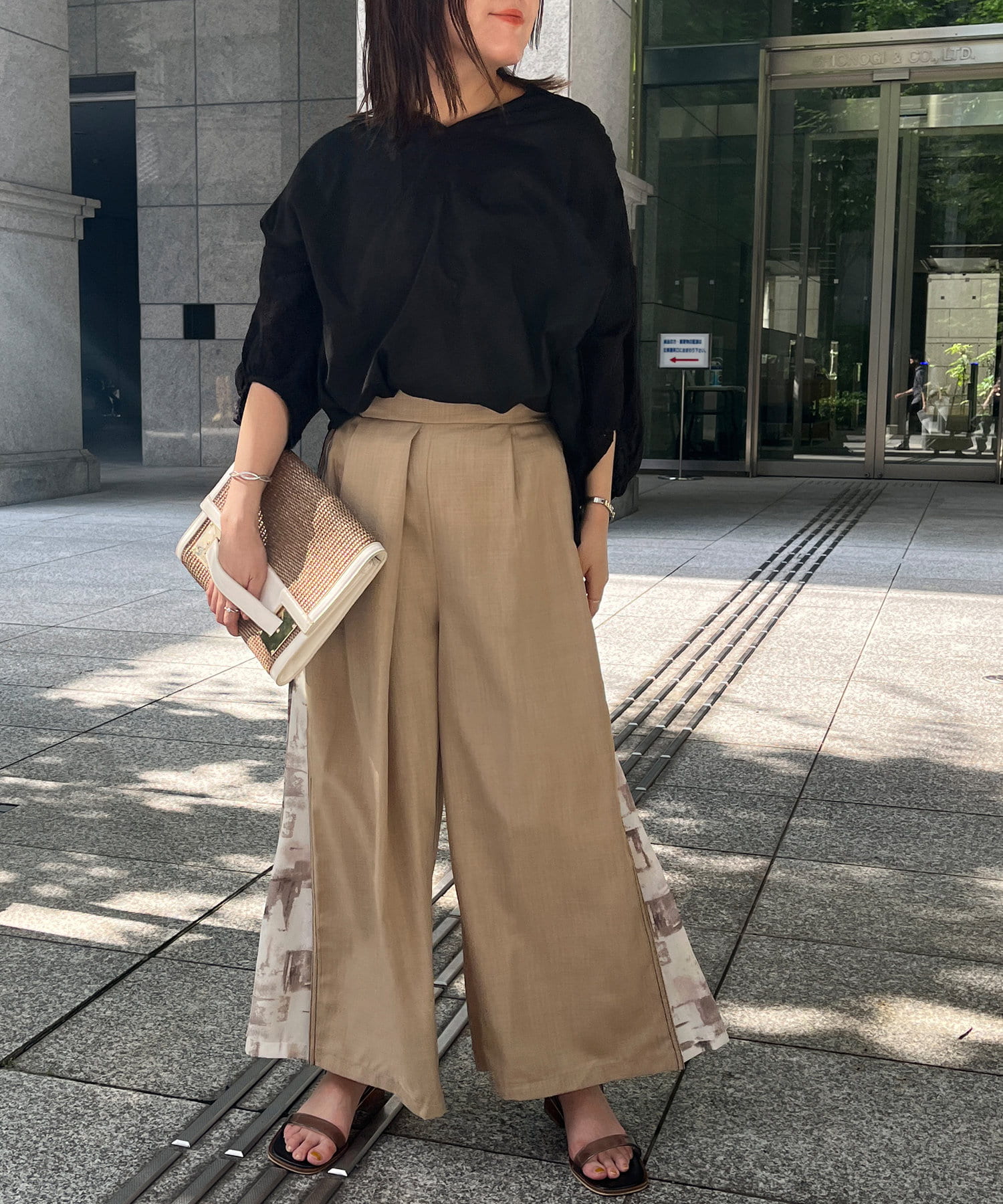 ・清涼感のあるぼかし柄が夏にピッタリのワイドパンツです。