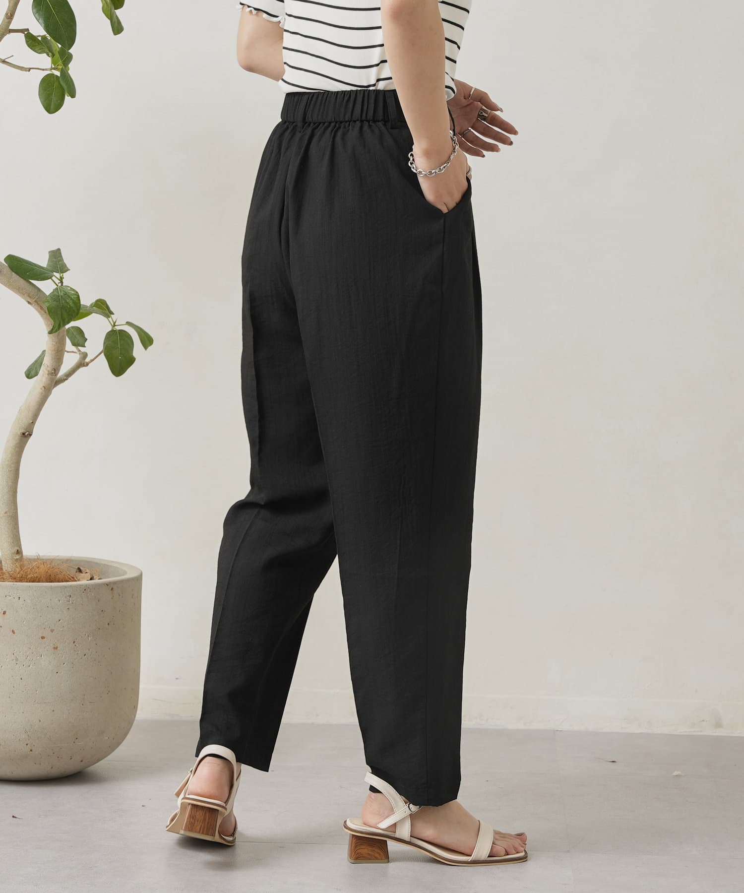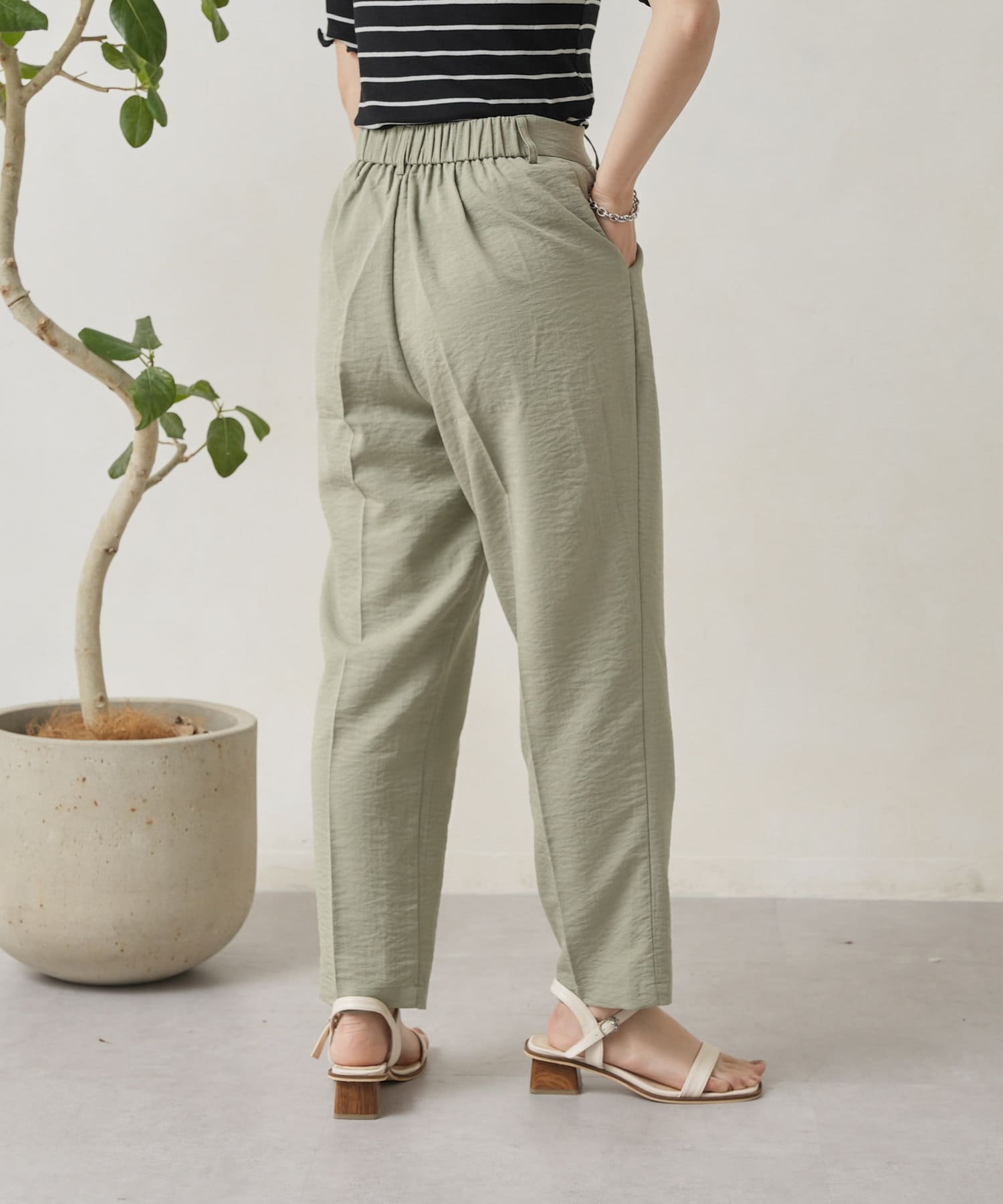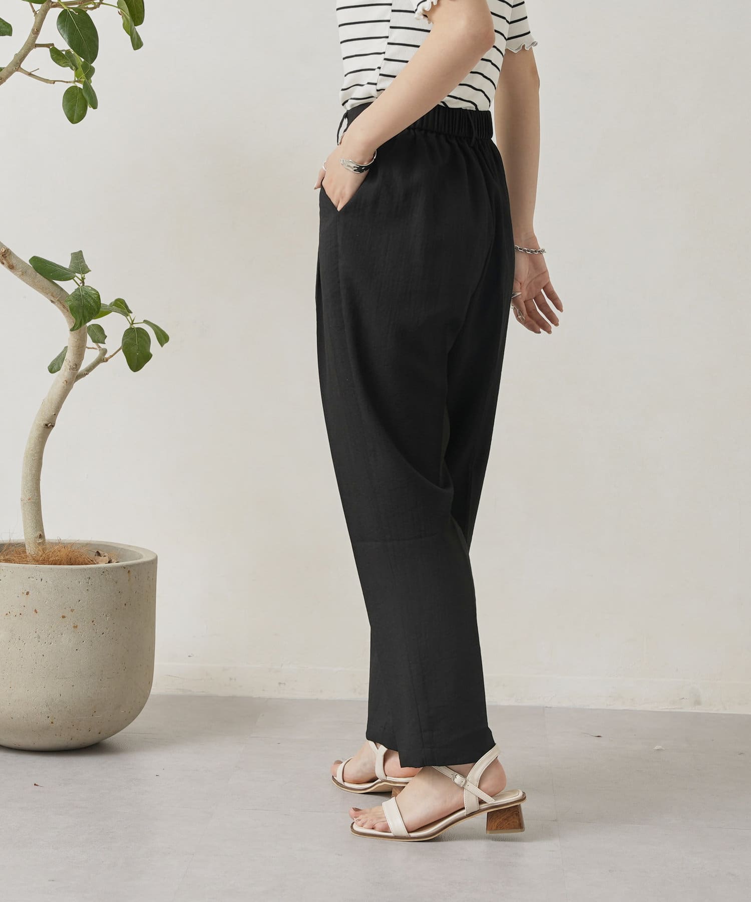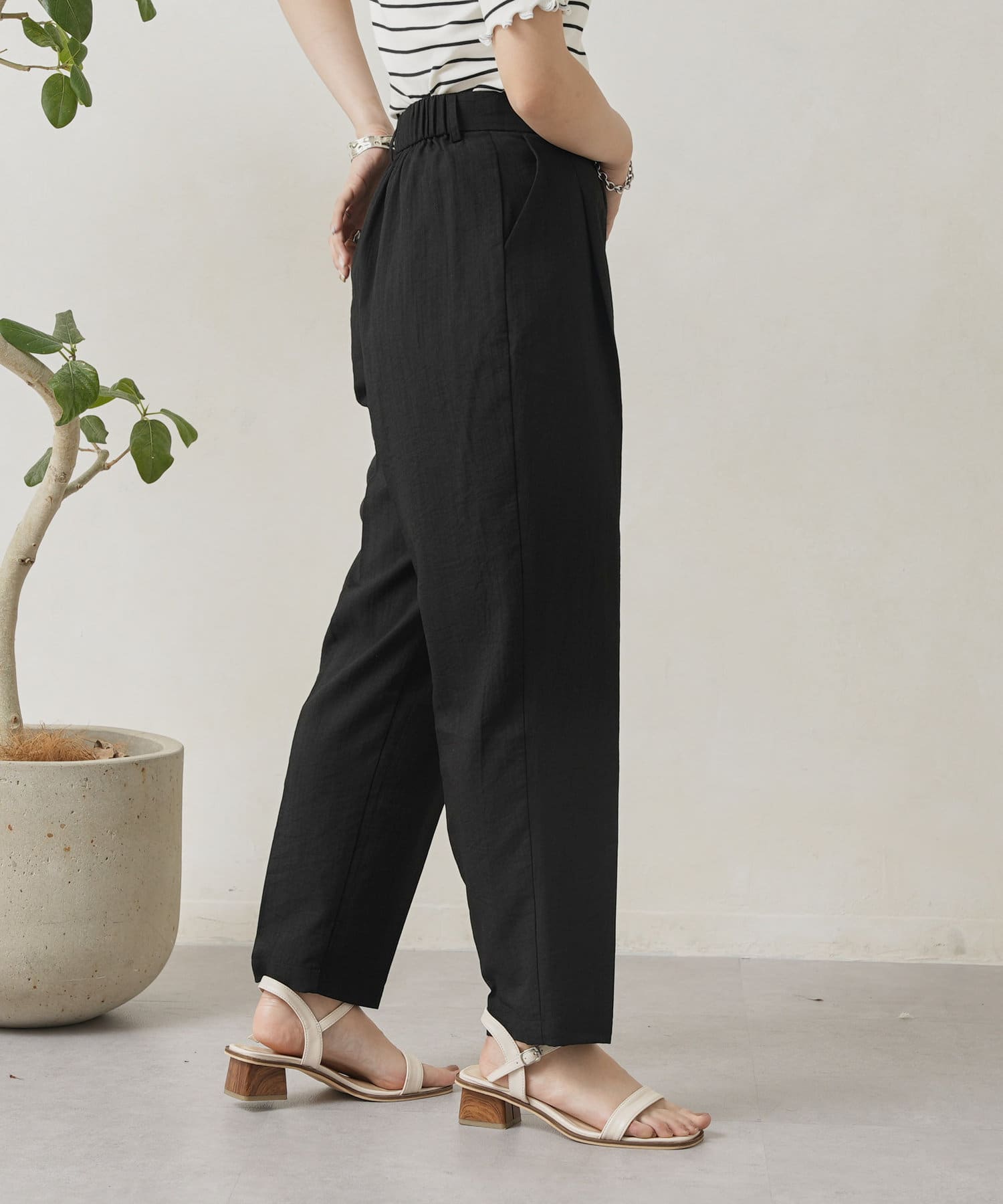・リネンタッチの生地が軽くてストレスフリーな履き心地。