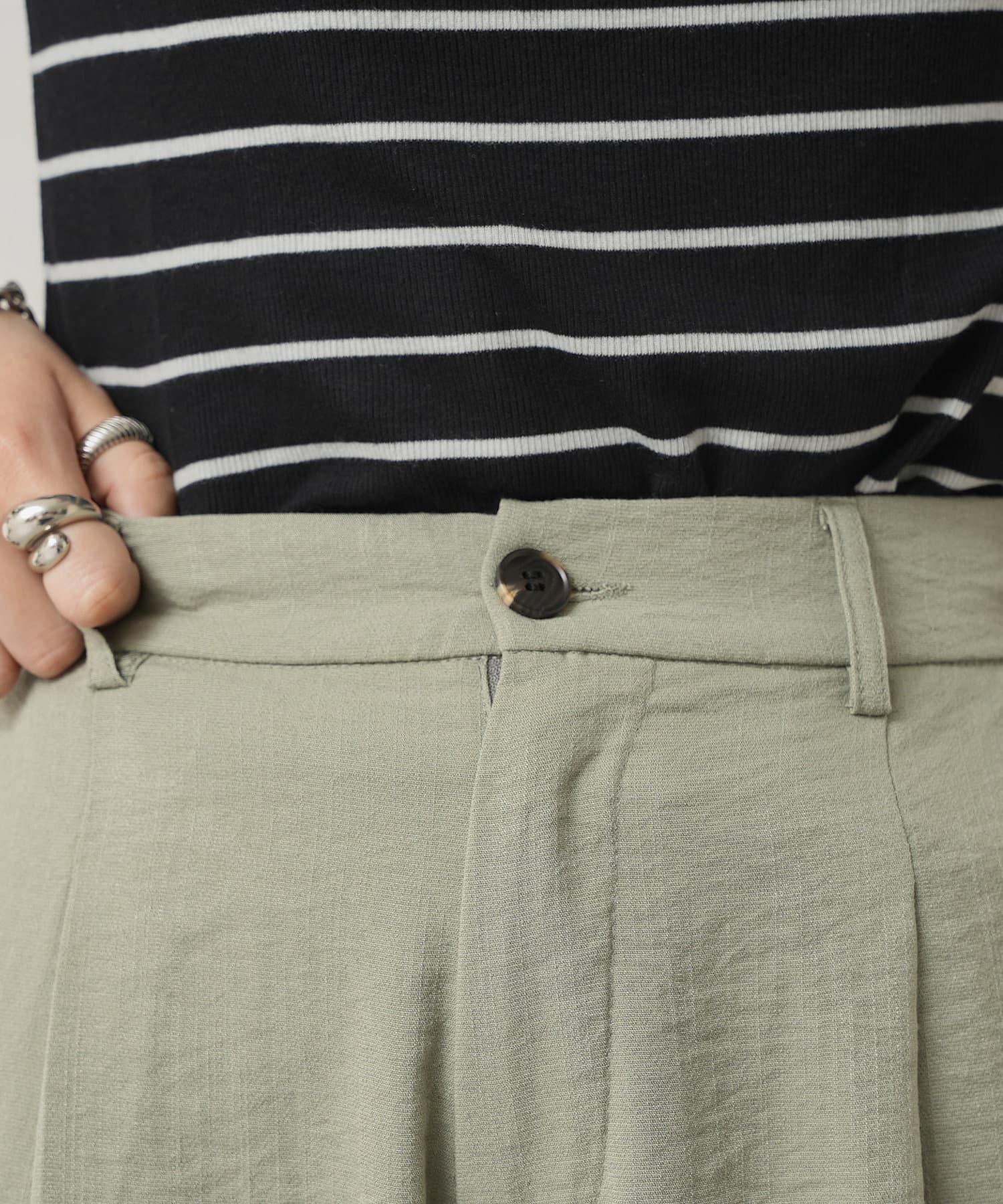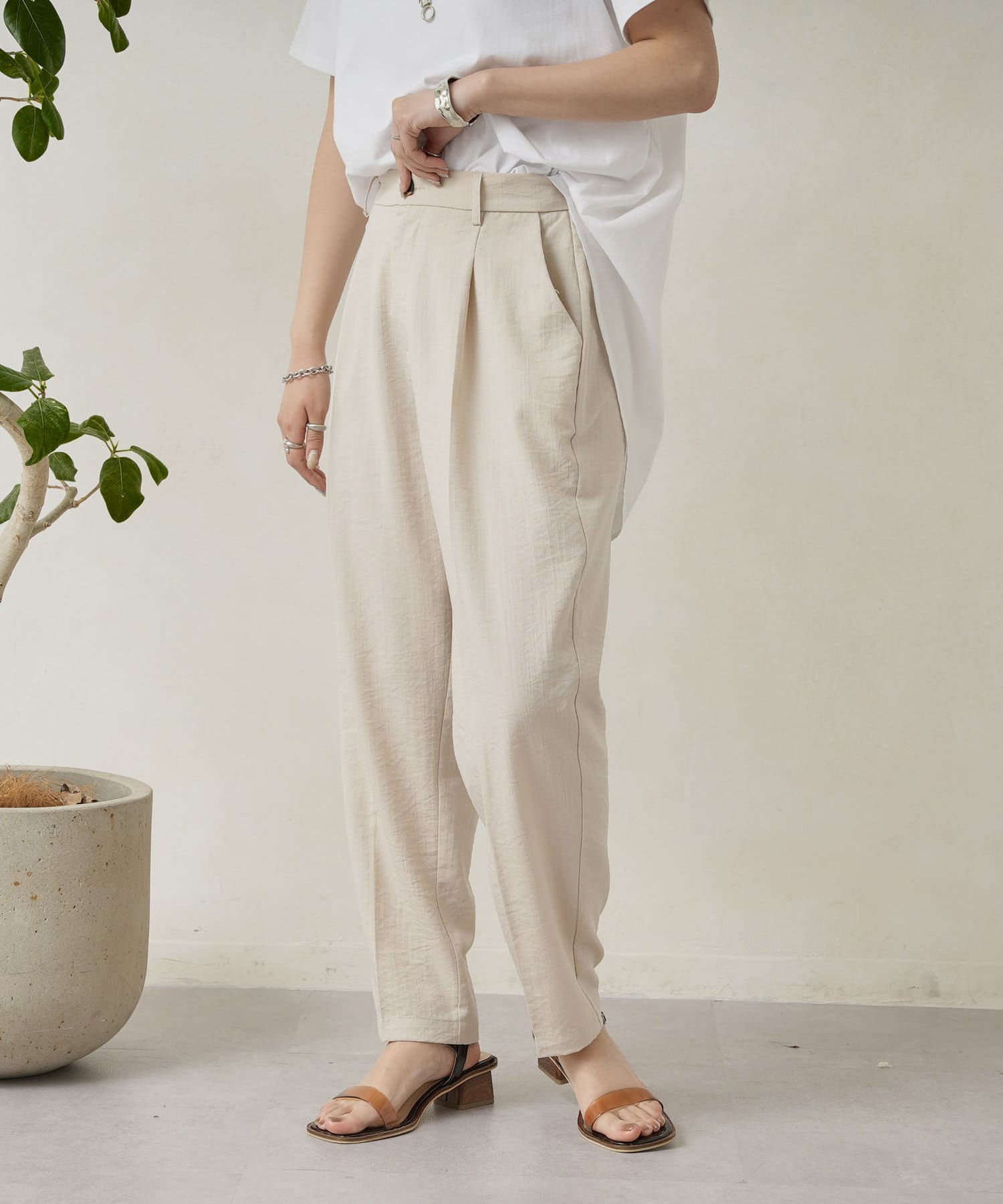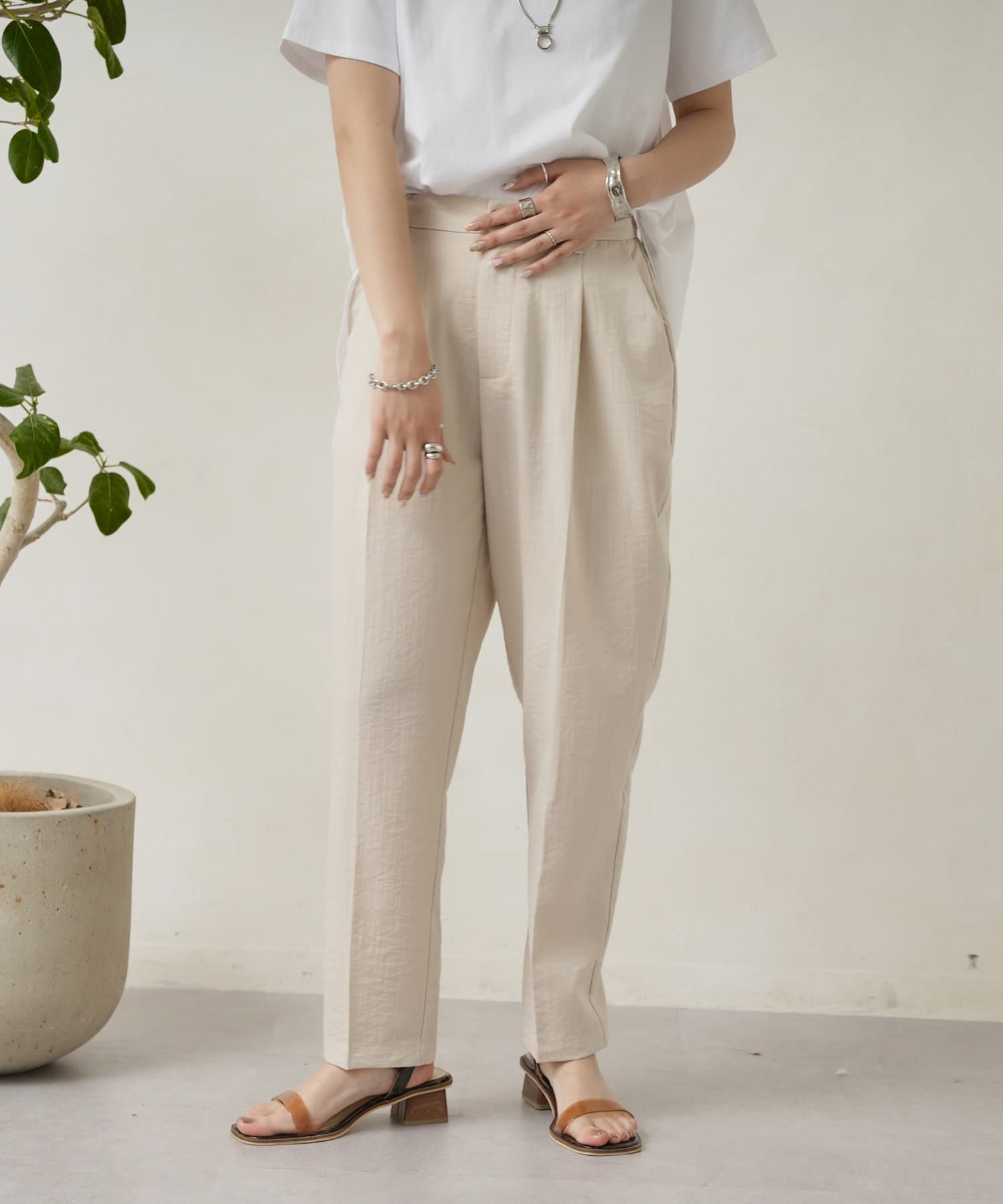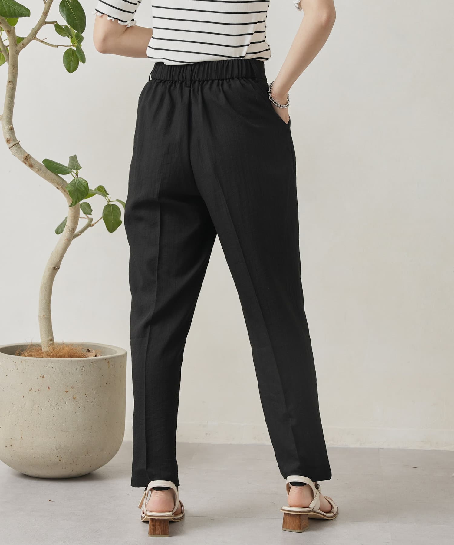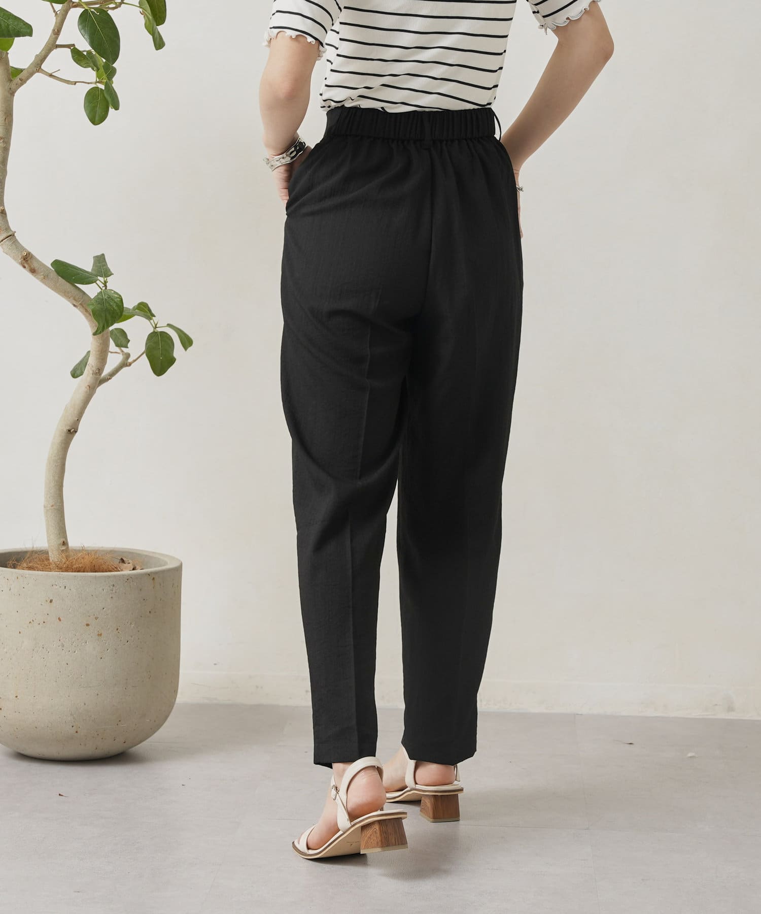 ・リネンタッチの生地が軽くてストレスフリーな履き心地。