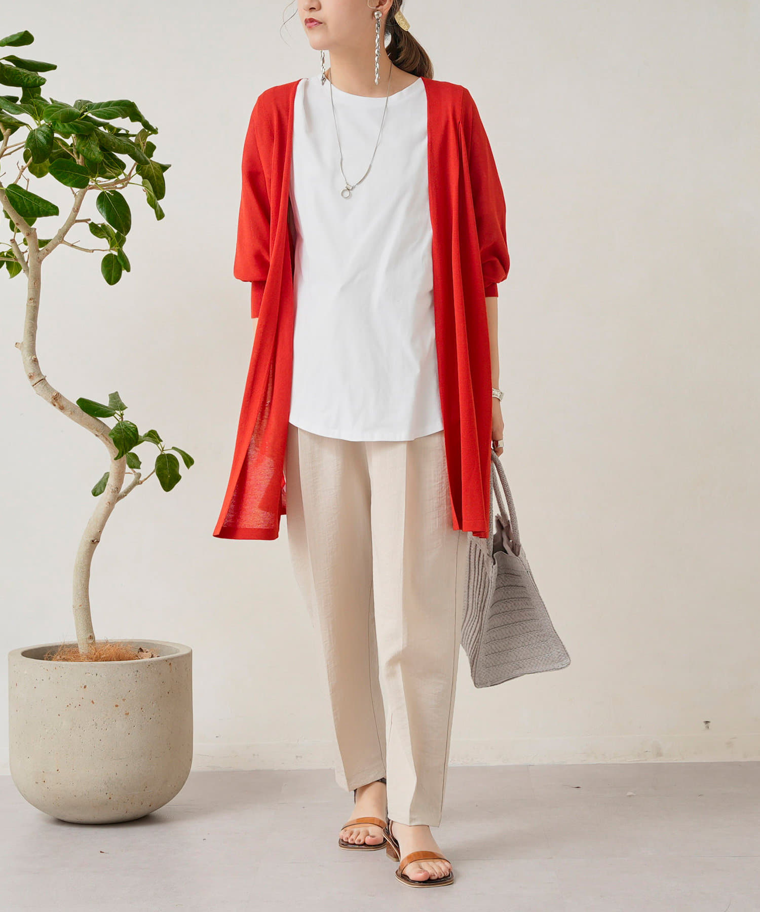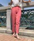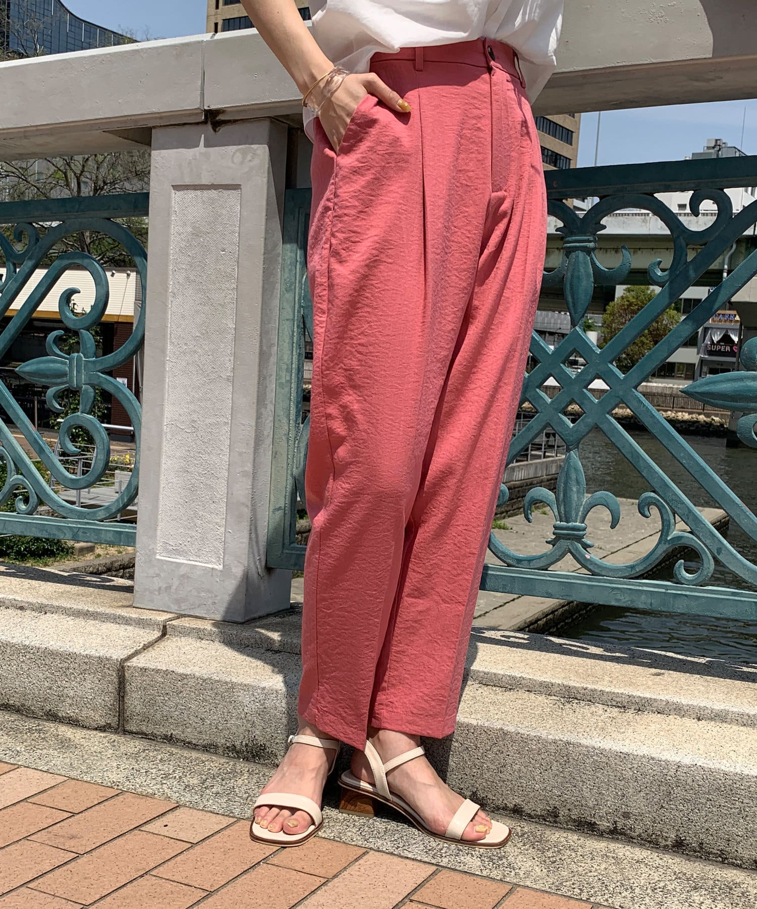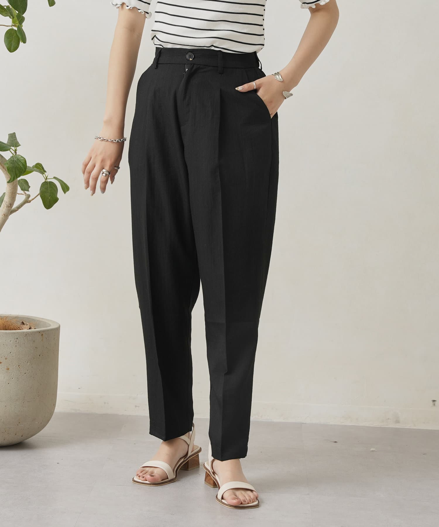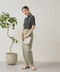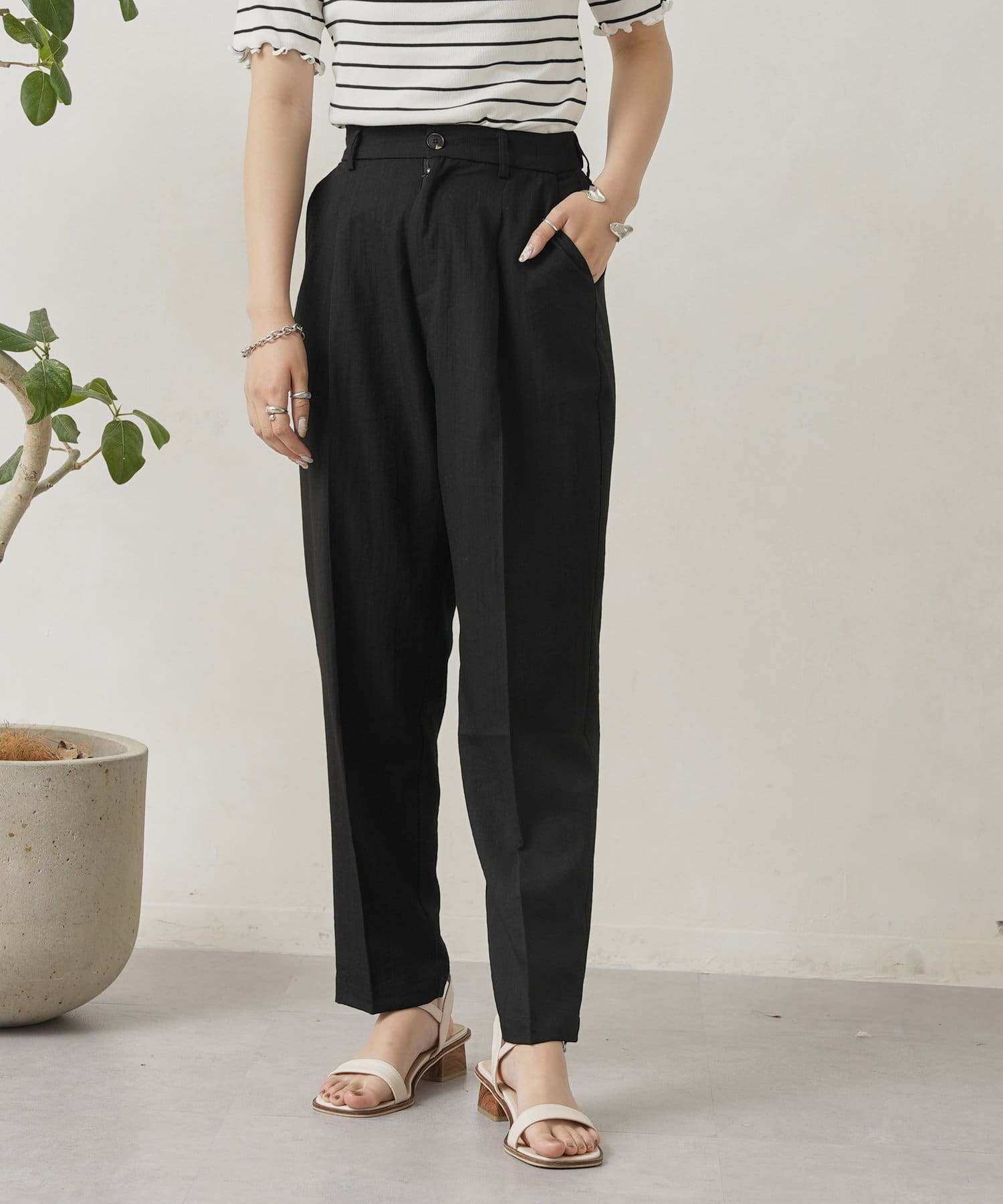 ・リネンタッチの生地が軽くてストレスフリーな履き心地。