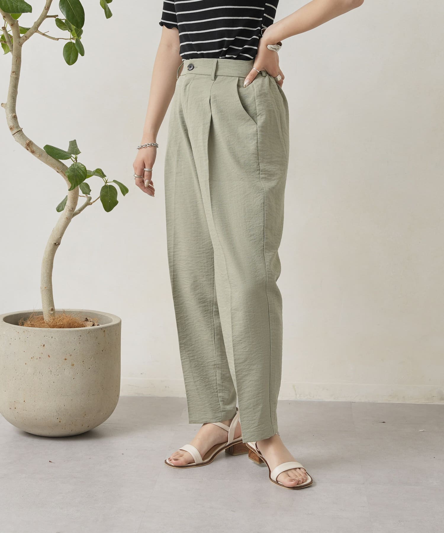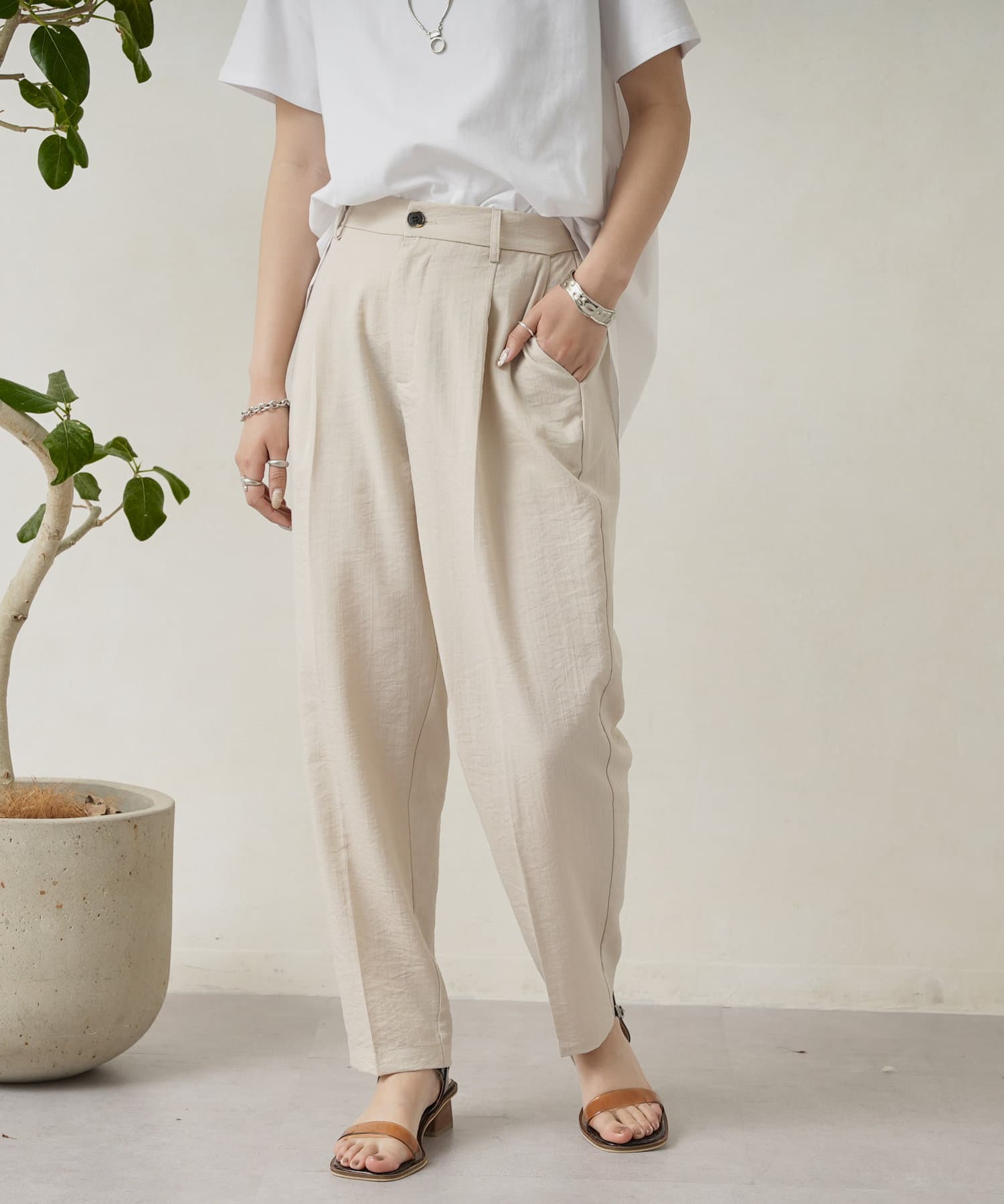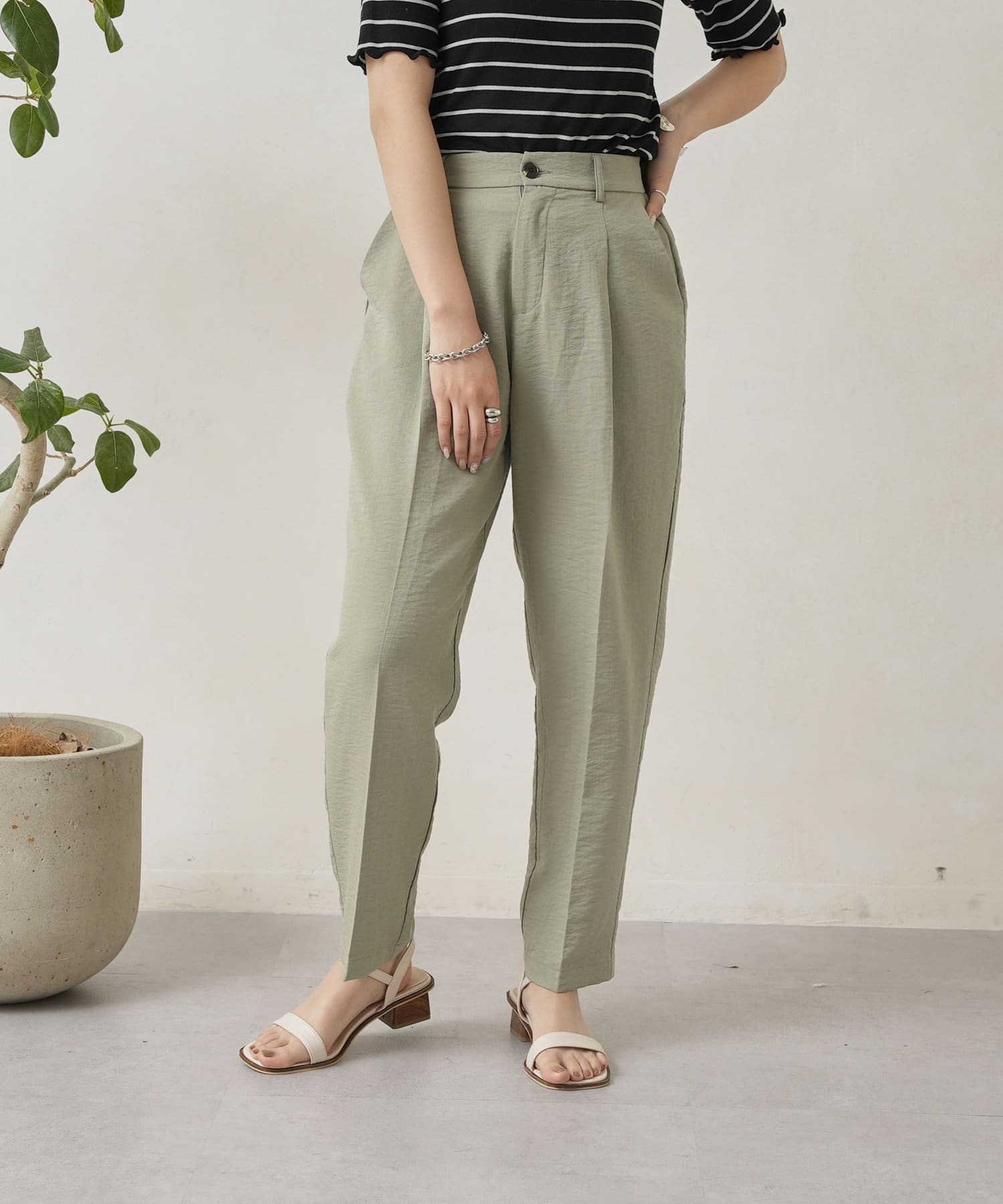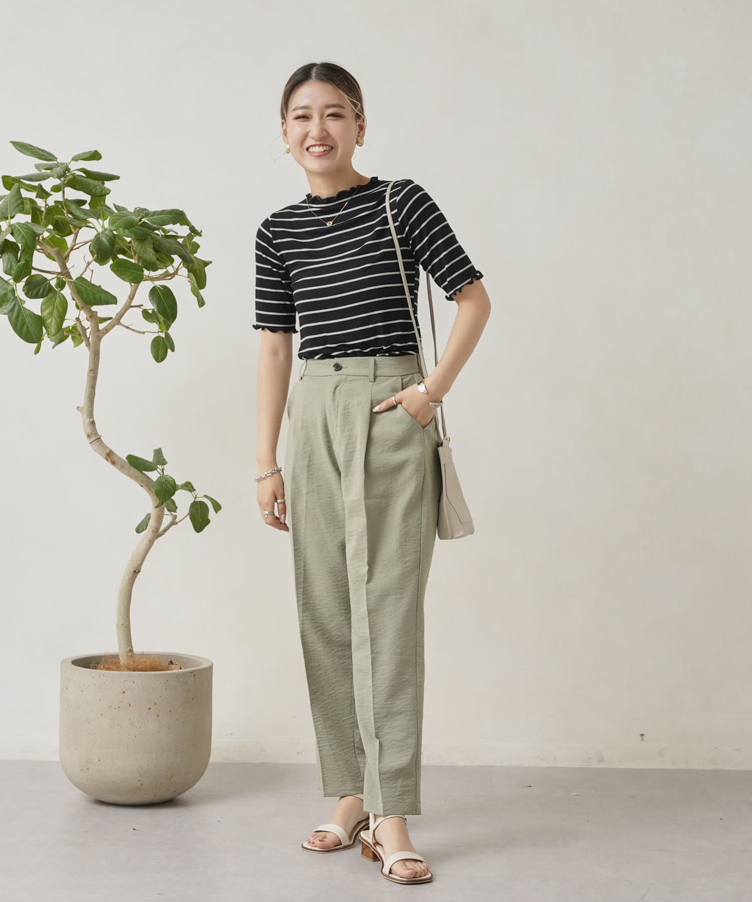 ・タックが入って立体的。シンプルながらこなれた印象に。