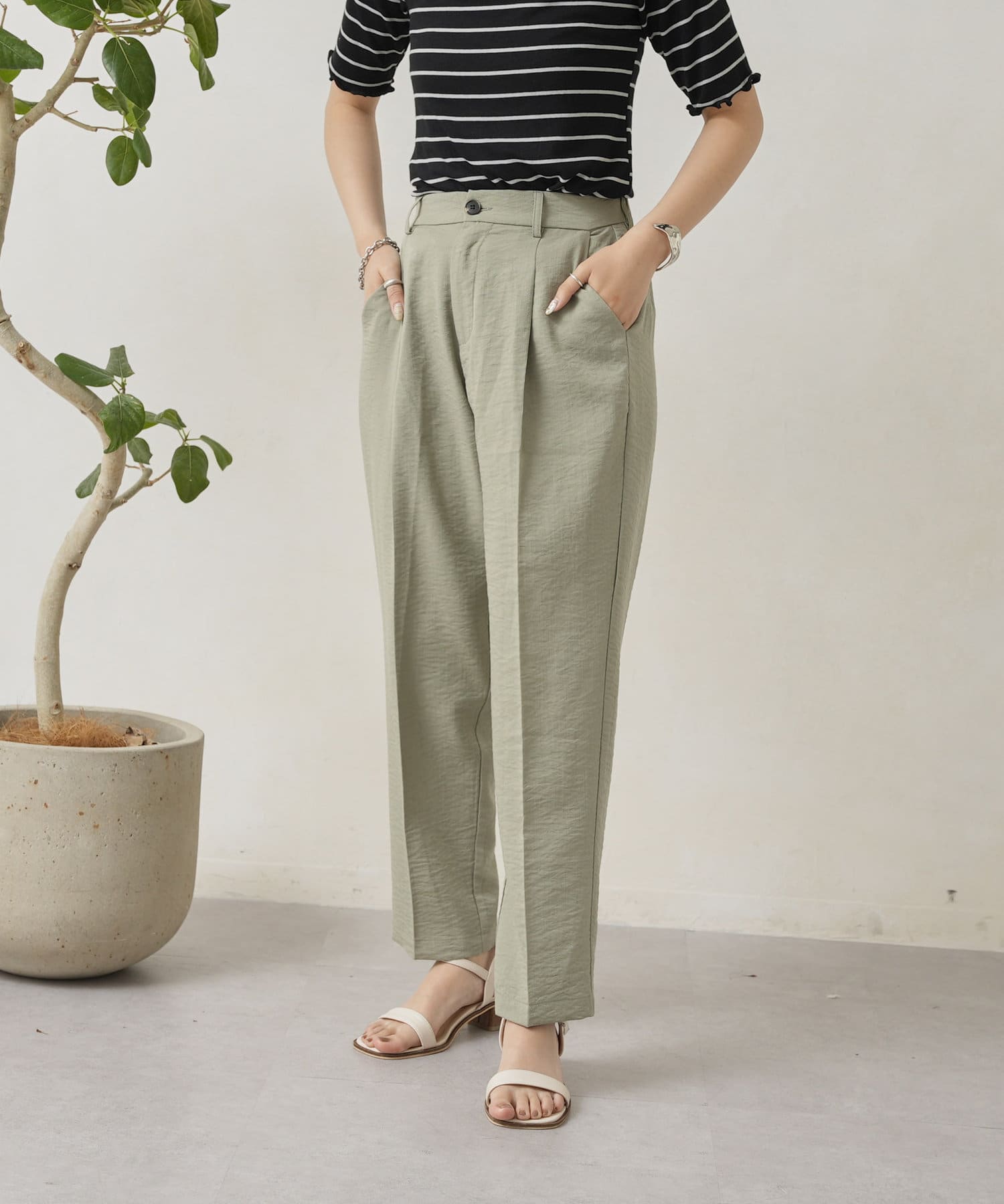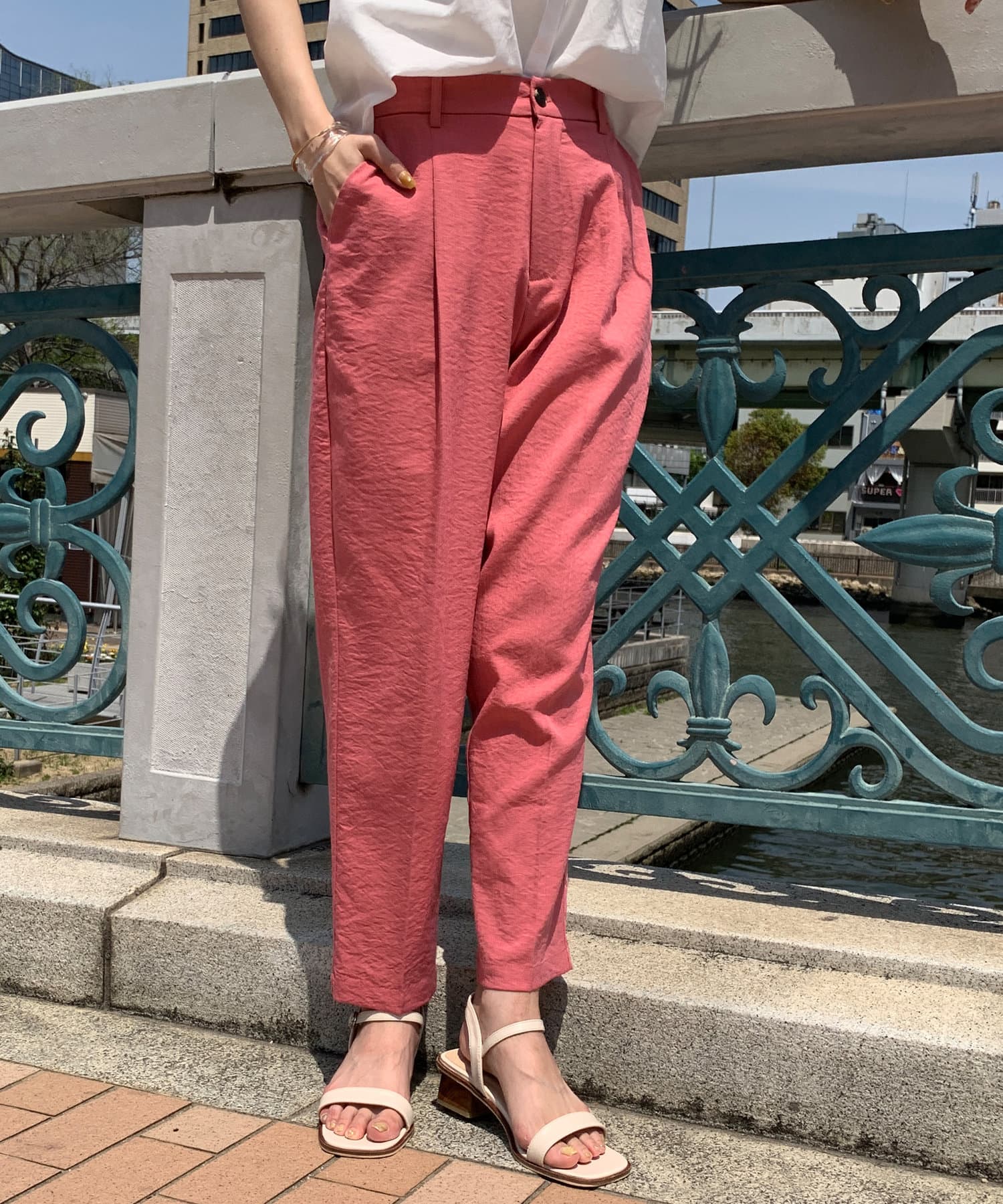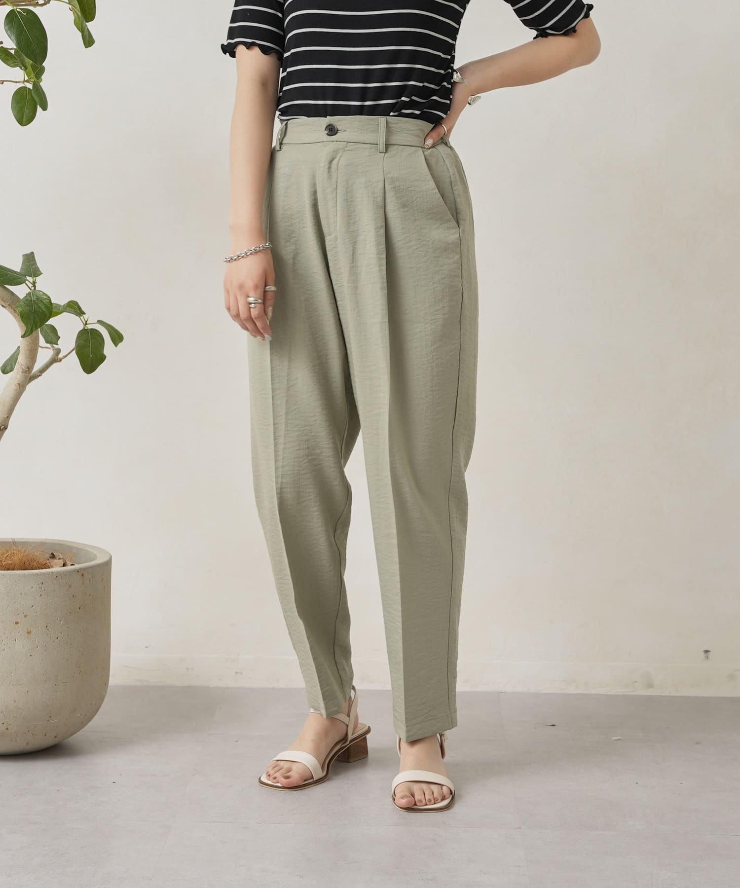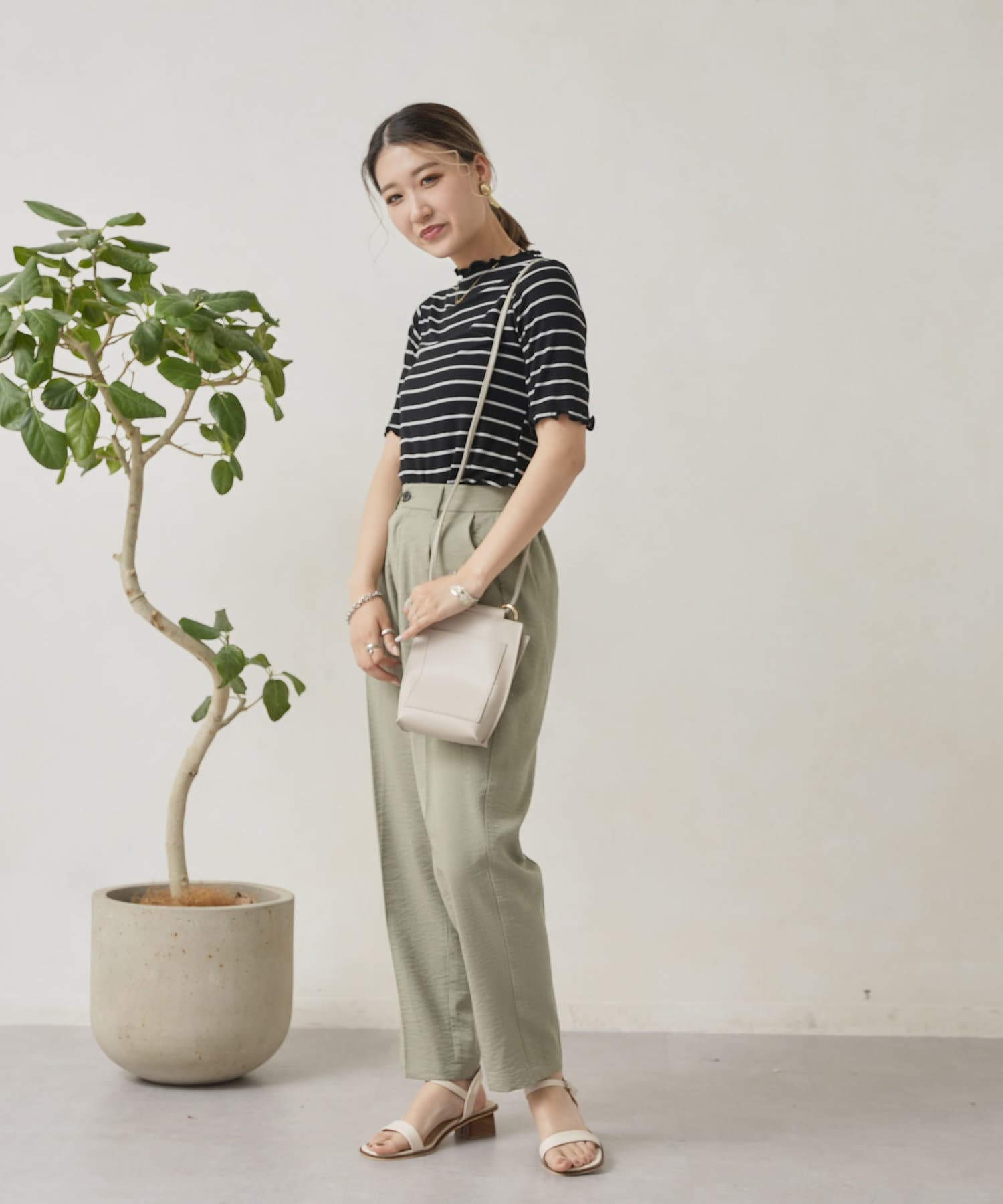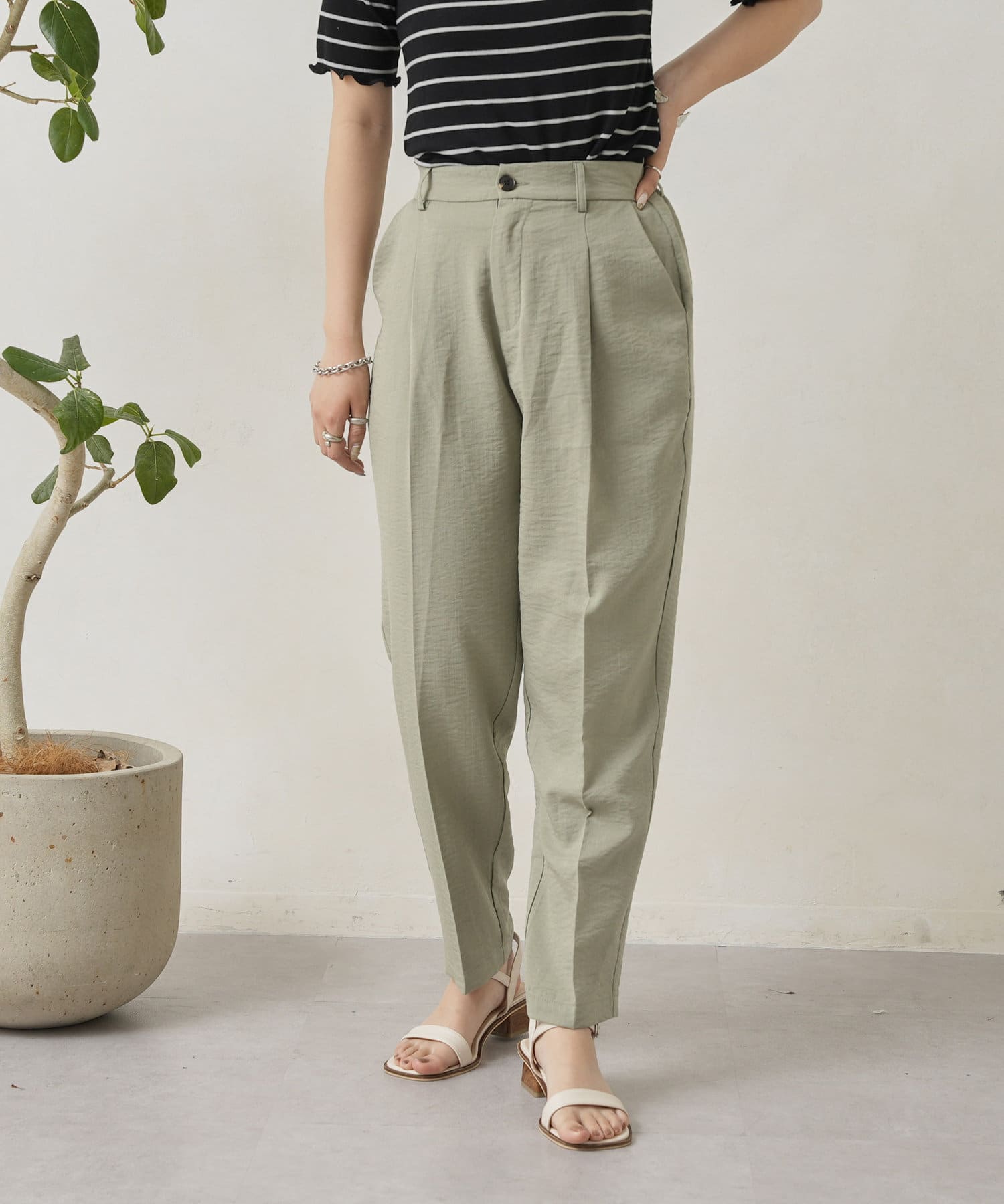 ・タックが入って立体的。シンプルながらこなれた印象に。