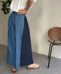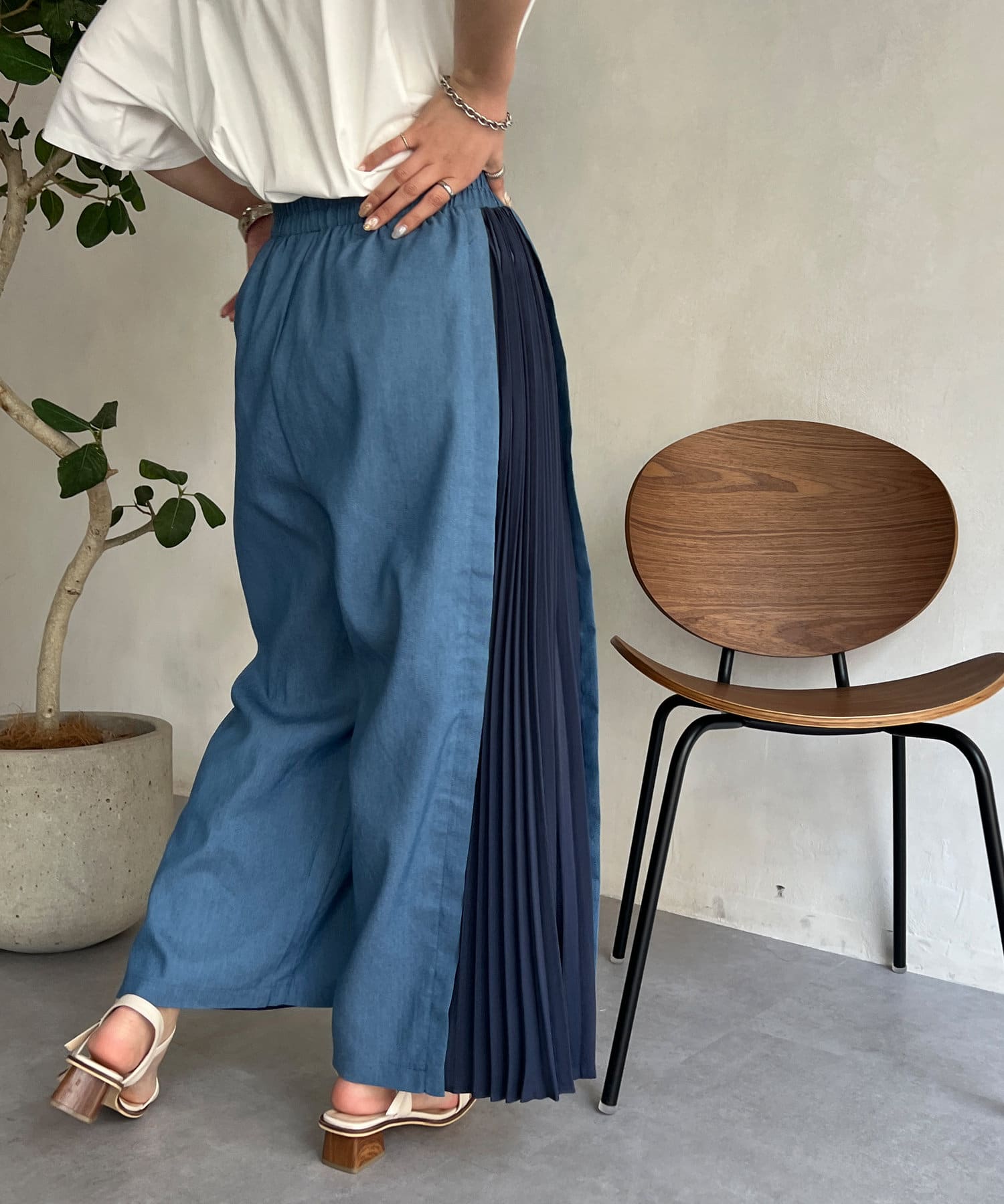 サイドプリーツが見た目にも新鮮なリラックス感溢れるデニムワイドパンツ