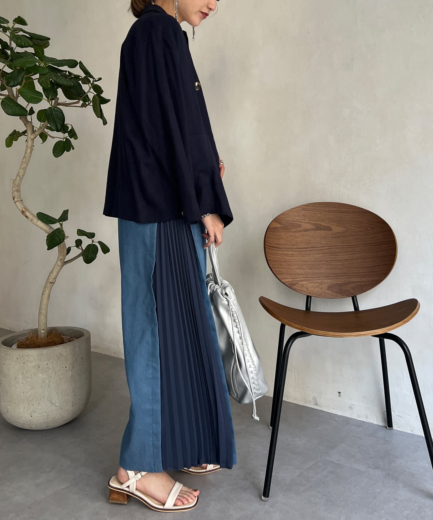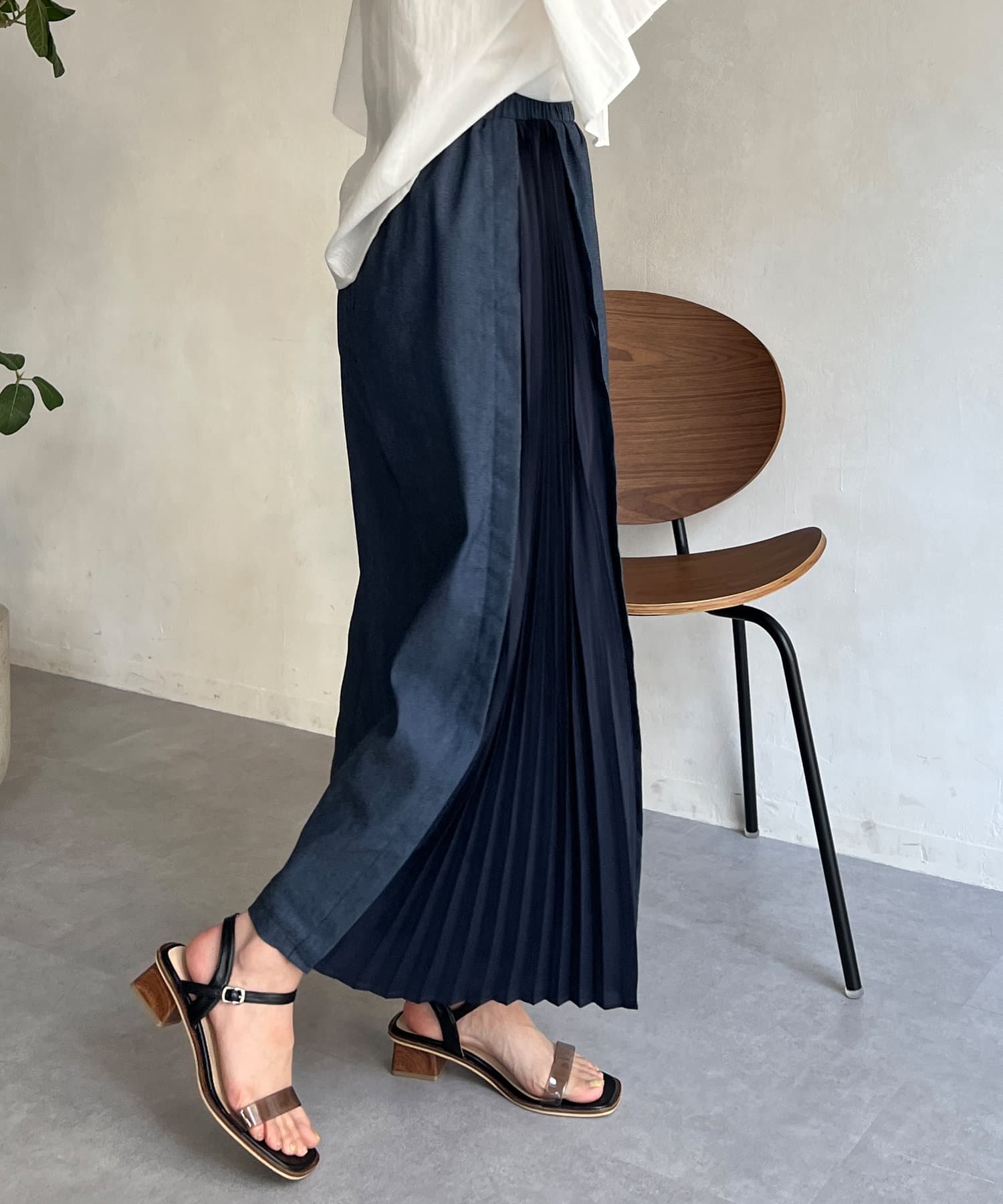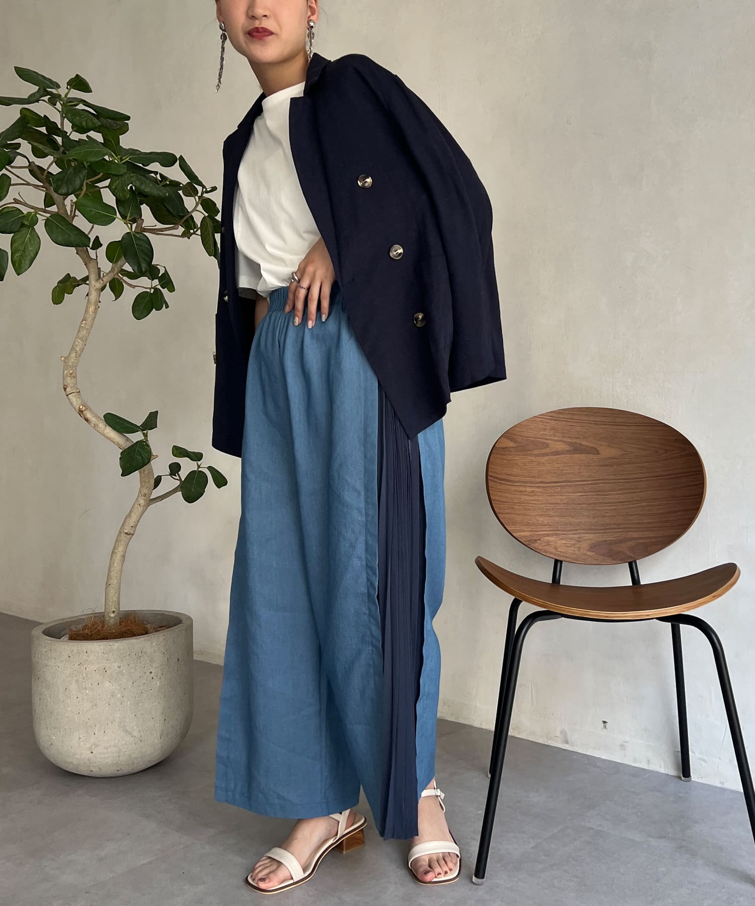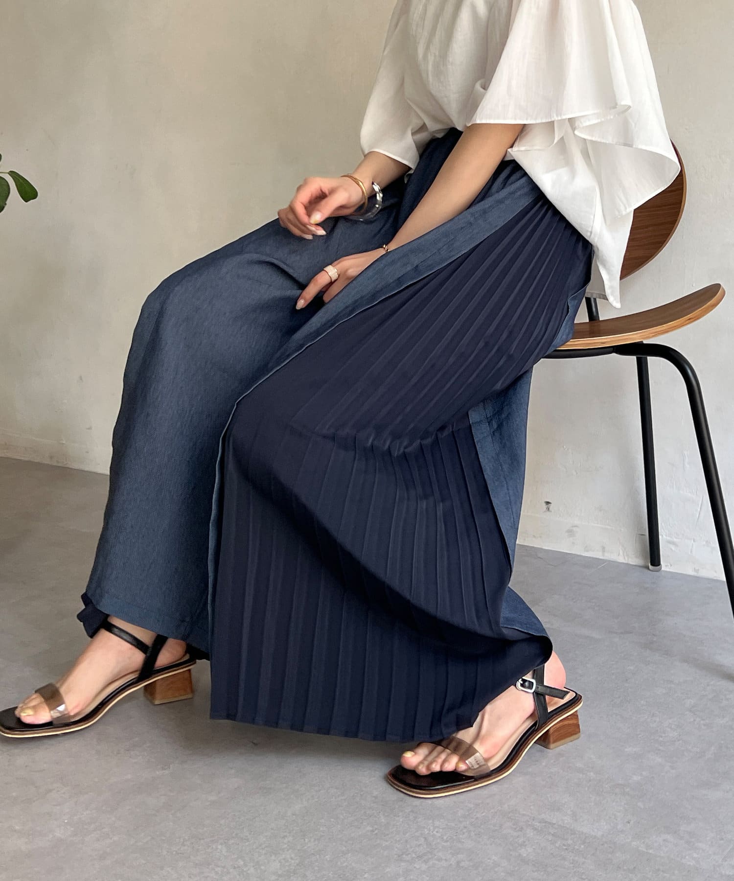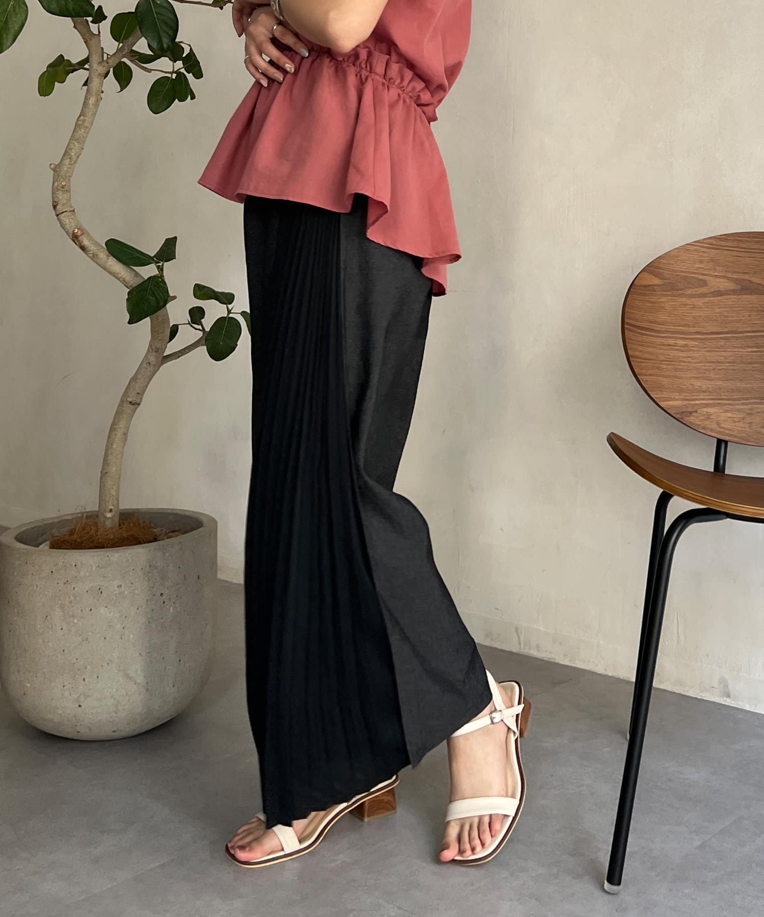 Chez toi(シェトワ) 【着用動画あり】サイドプリーツデニム