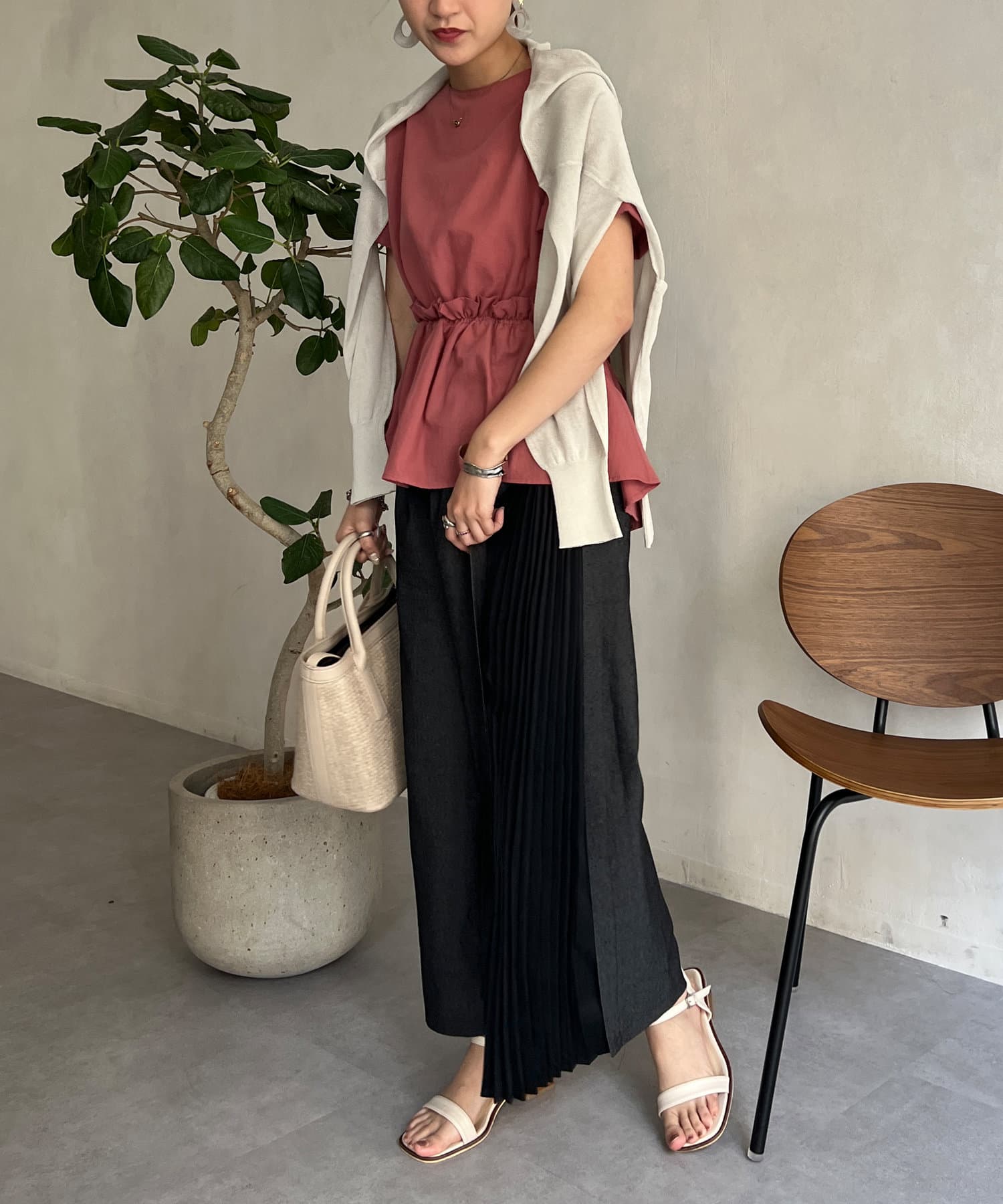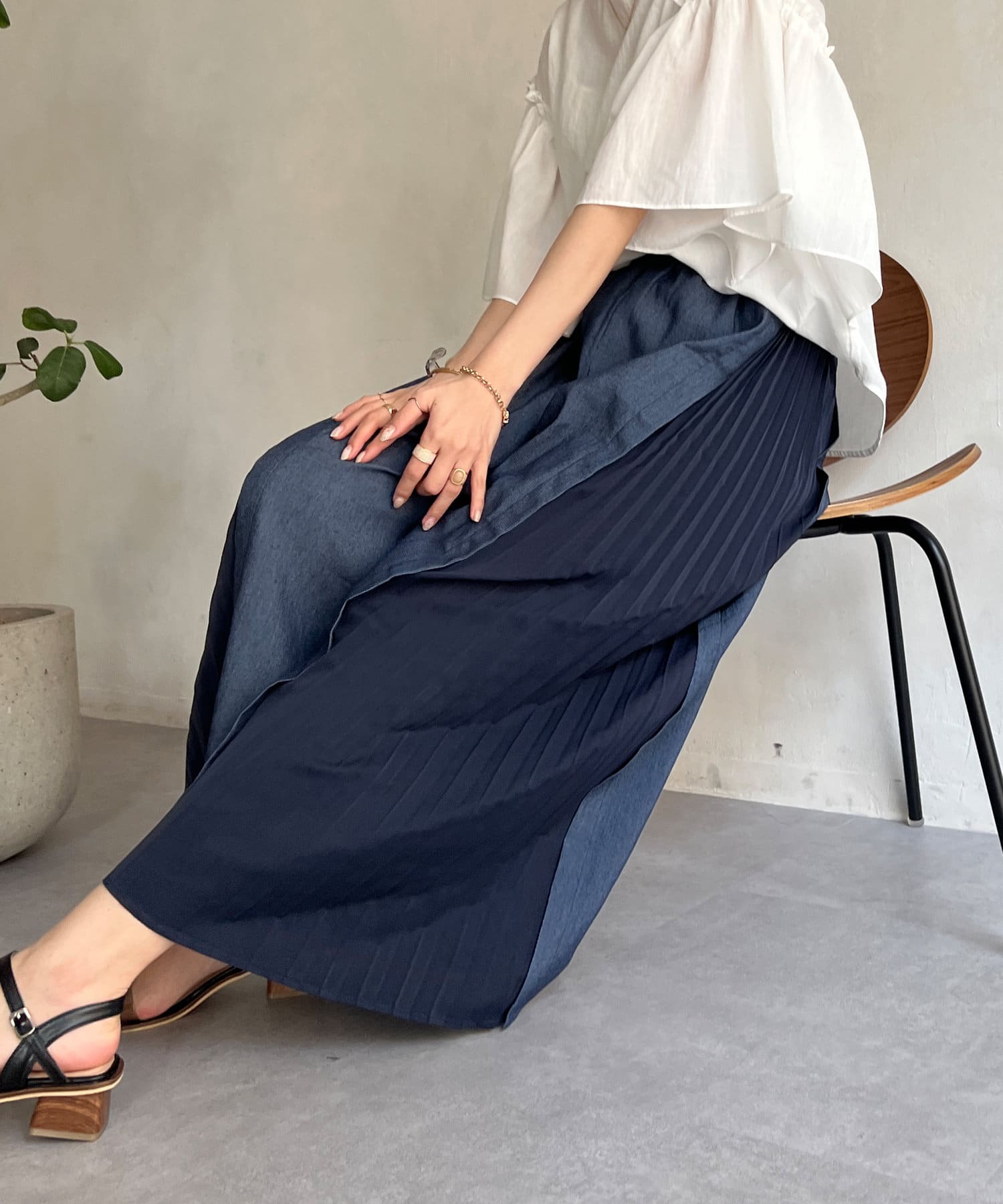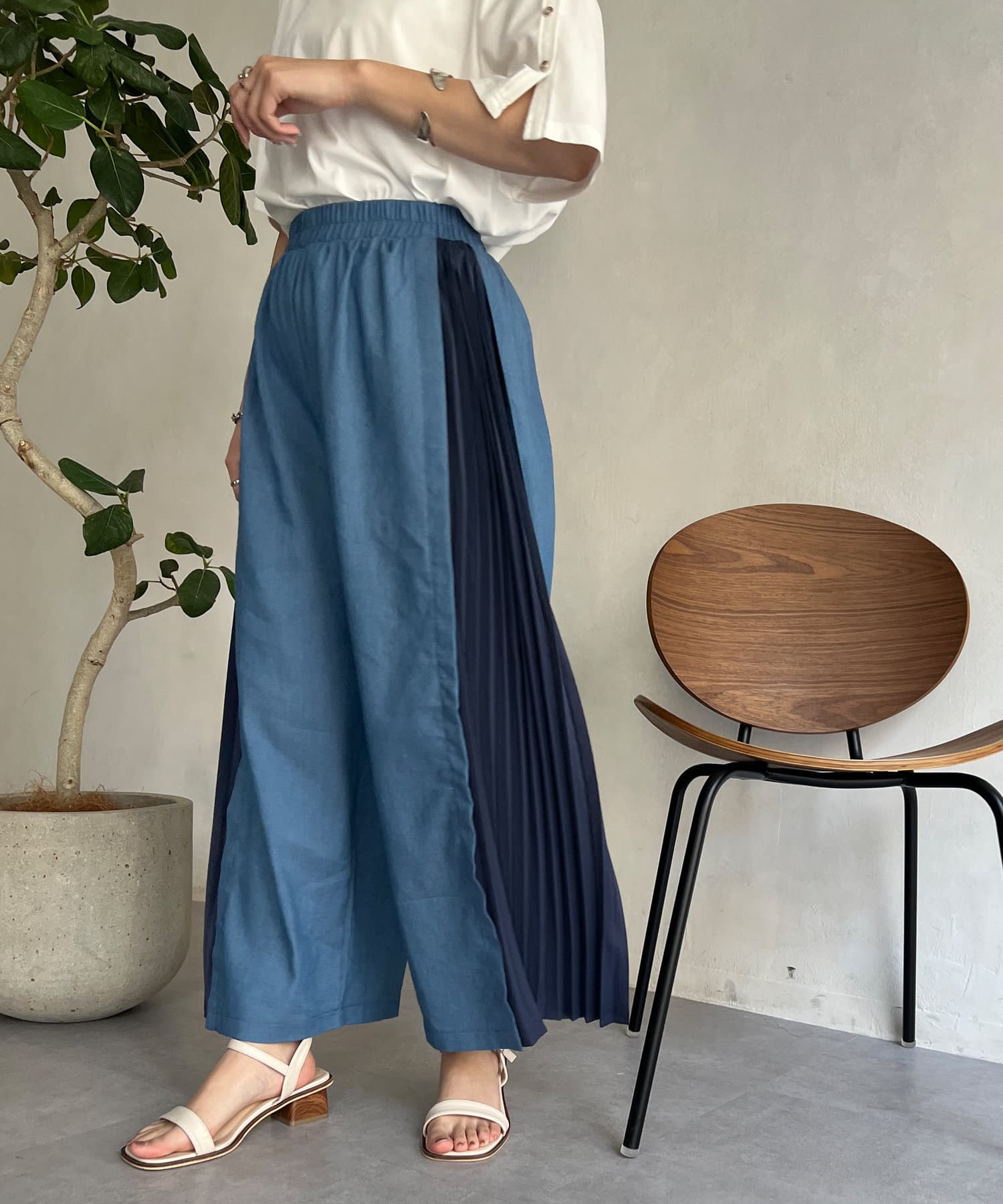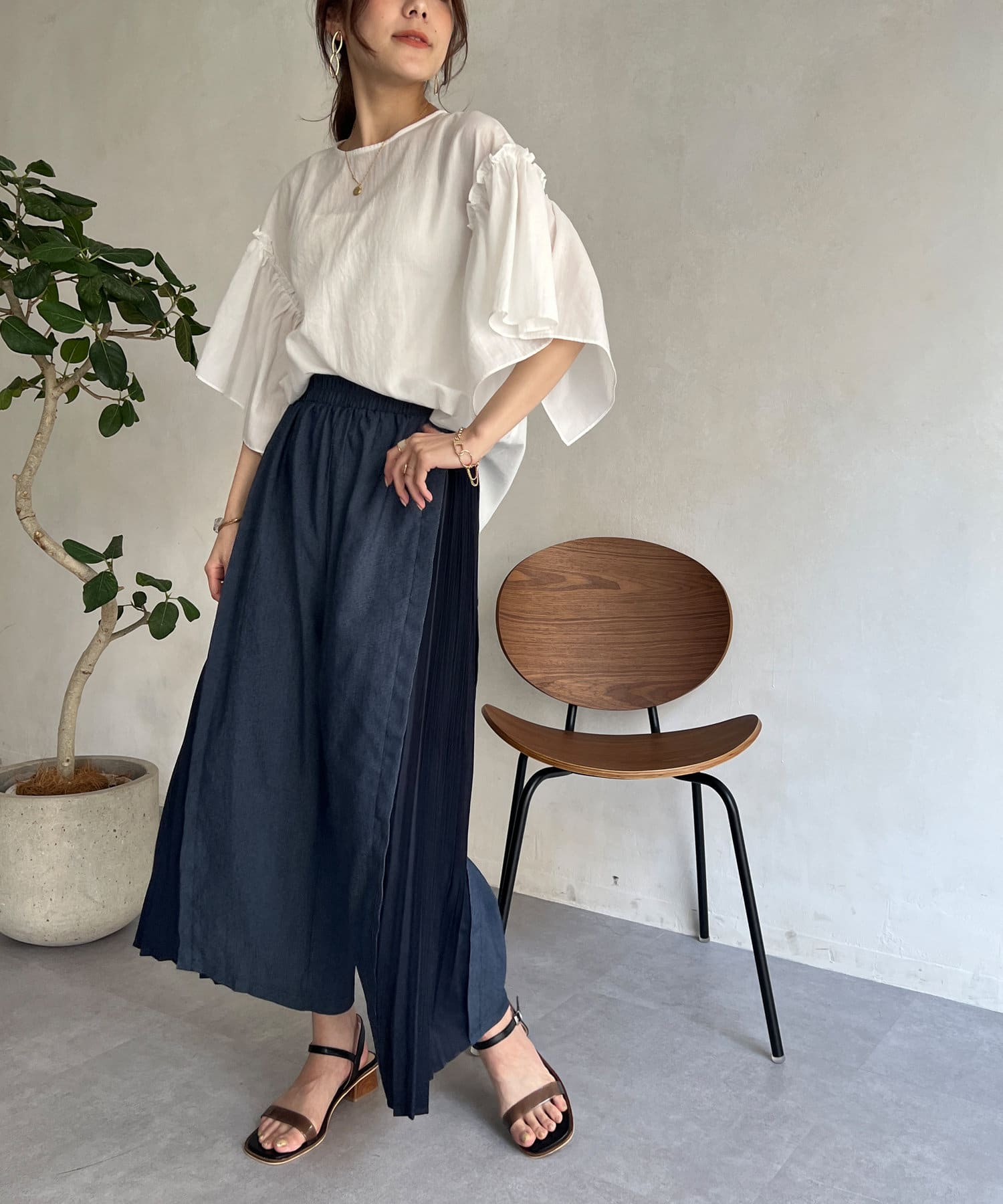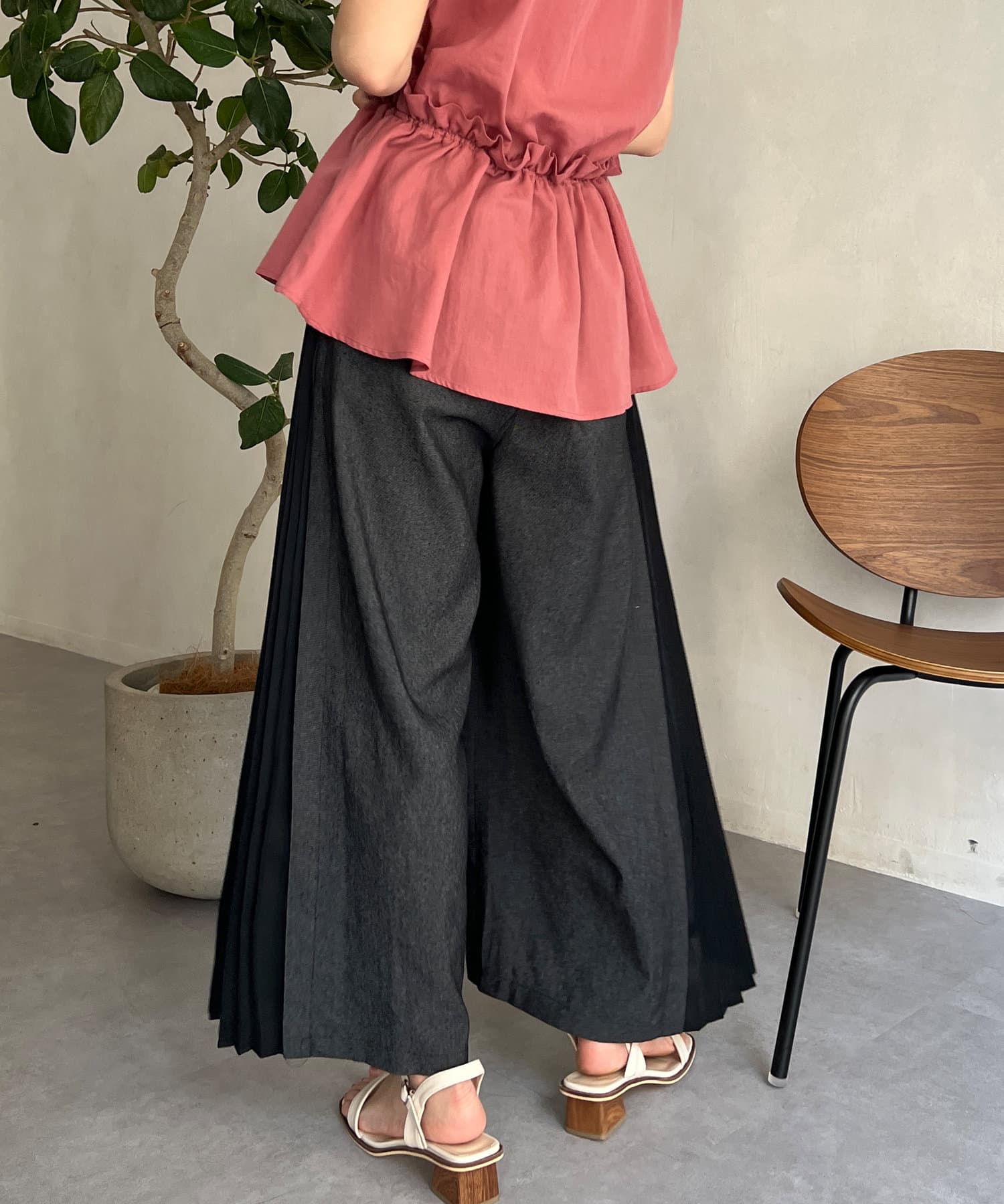 Chez toi(シェトワ) 【着用動画あり】サイドプリーツデニム