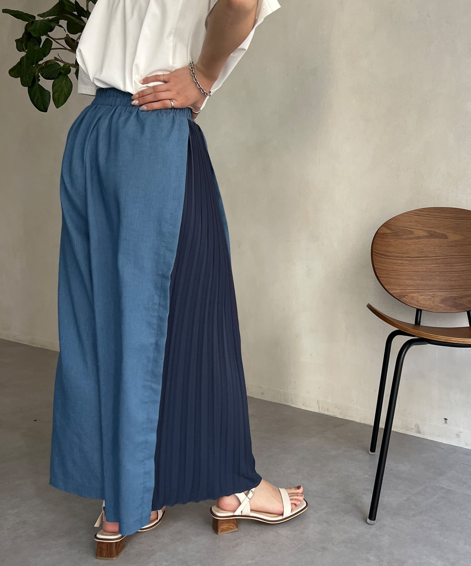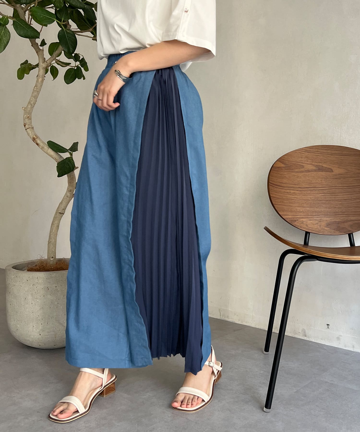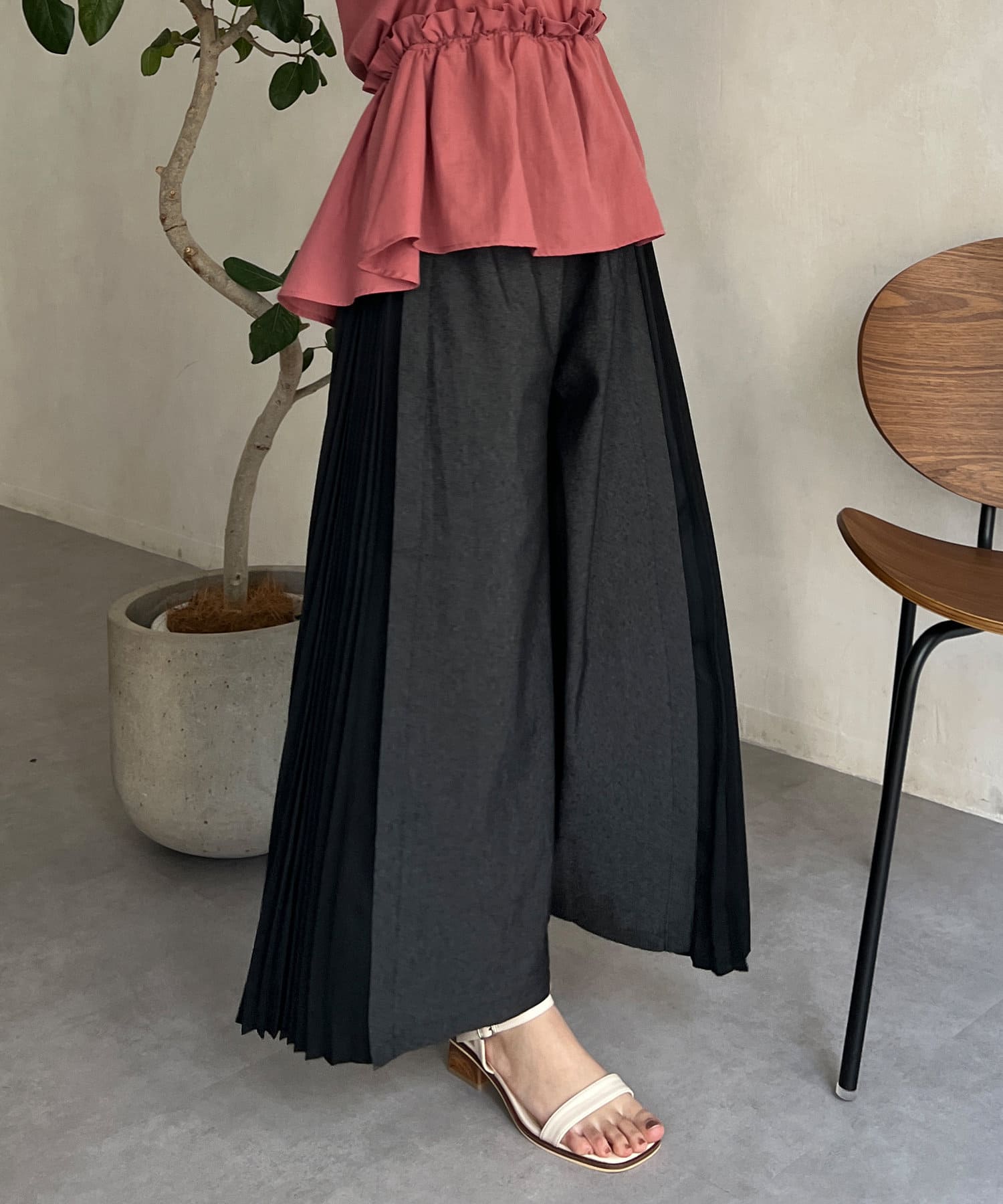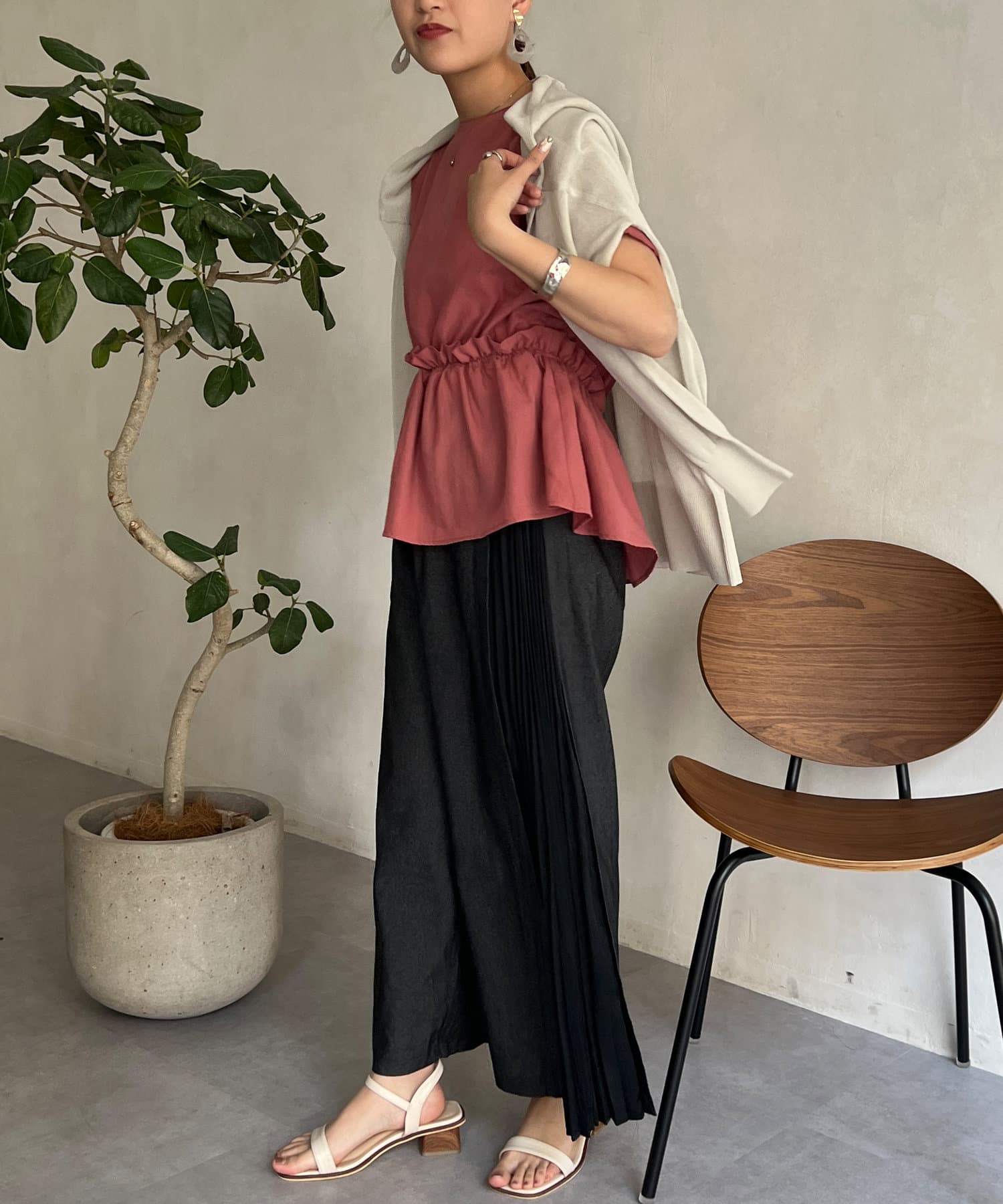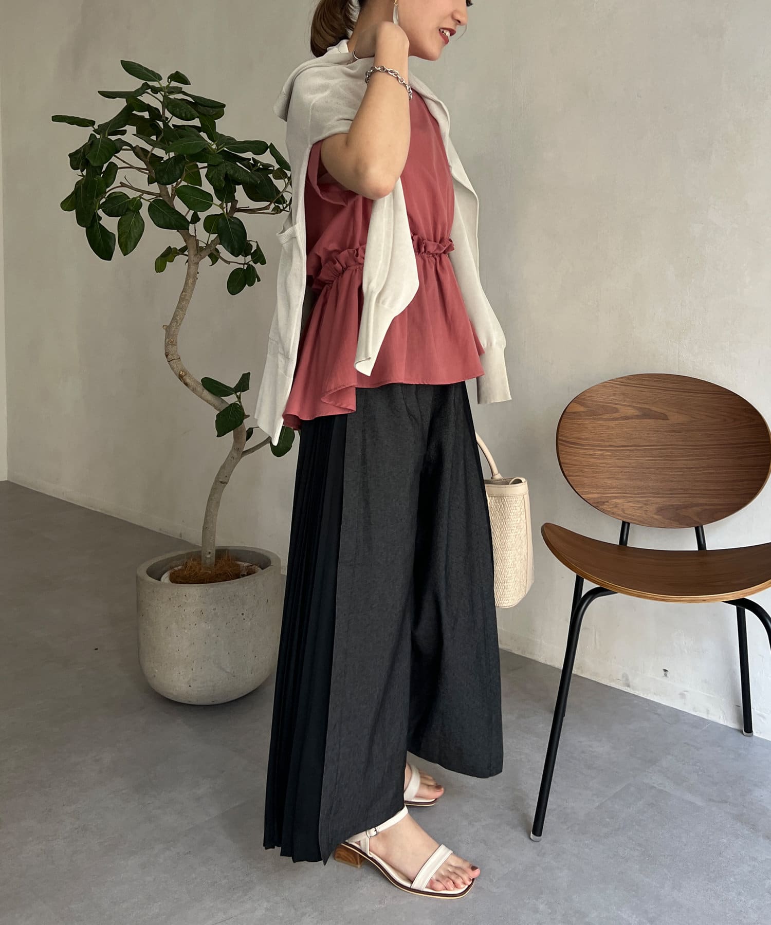 Chez toi(シェトワ) 【着用動画あり】サイドプリーツデニム