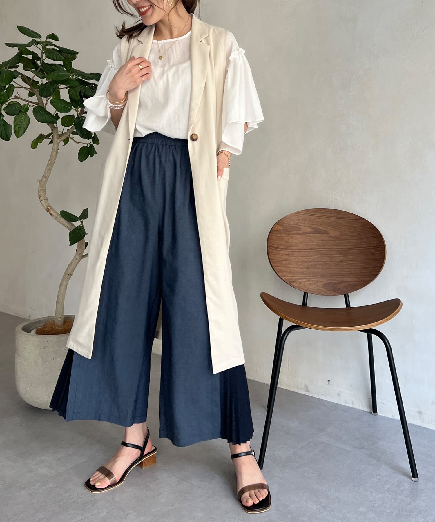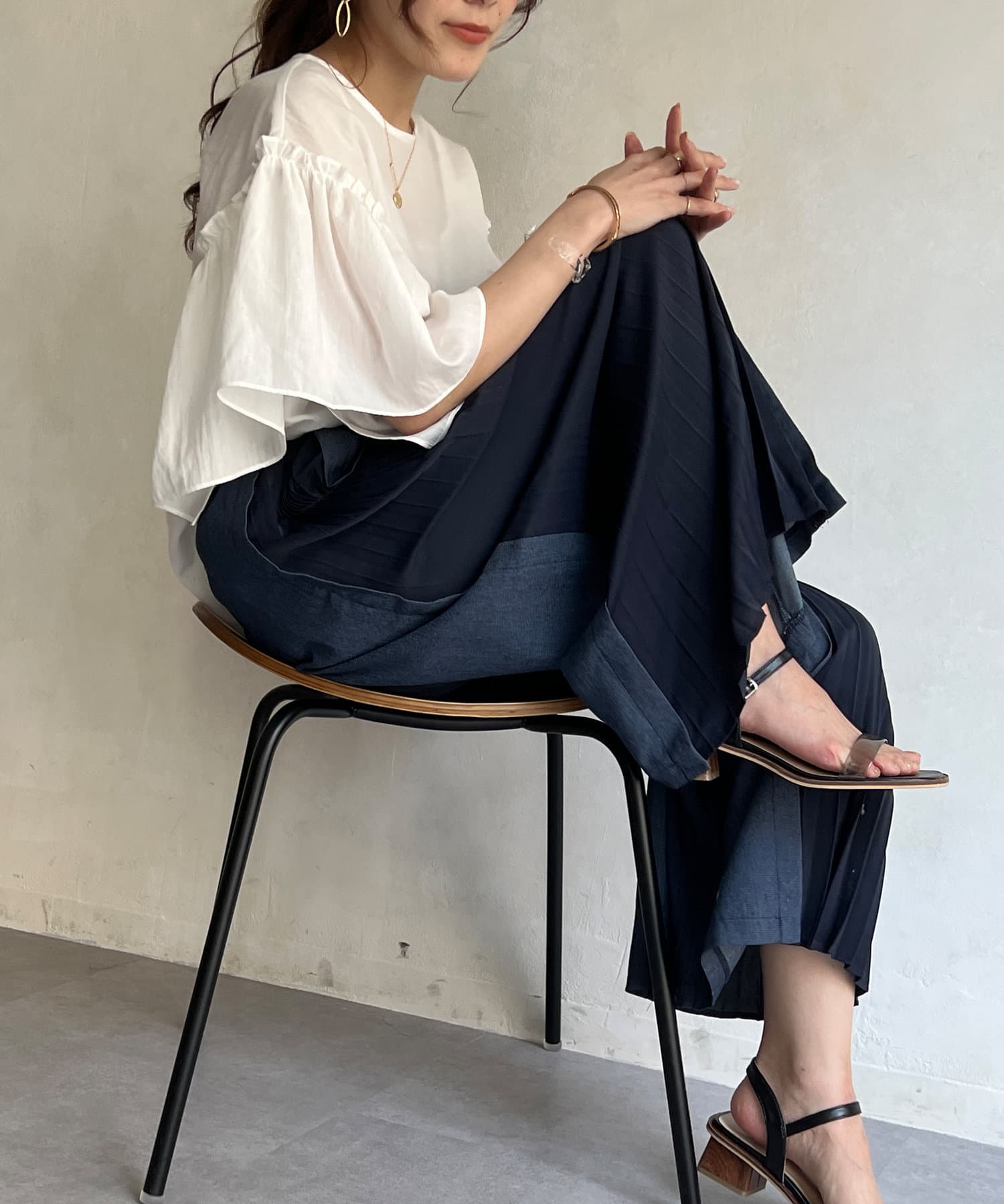 ・夏にぴったりの軽やかなデニム素材のワイドシルエットでクールな印象を与えながら、