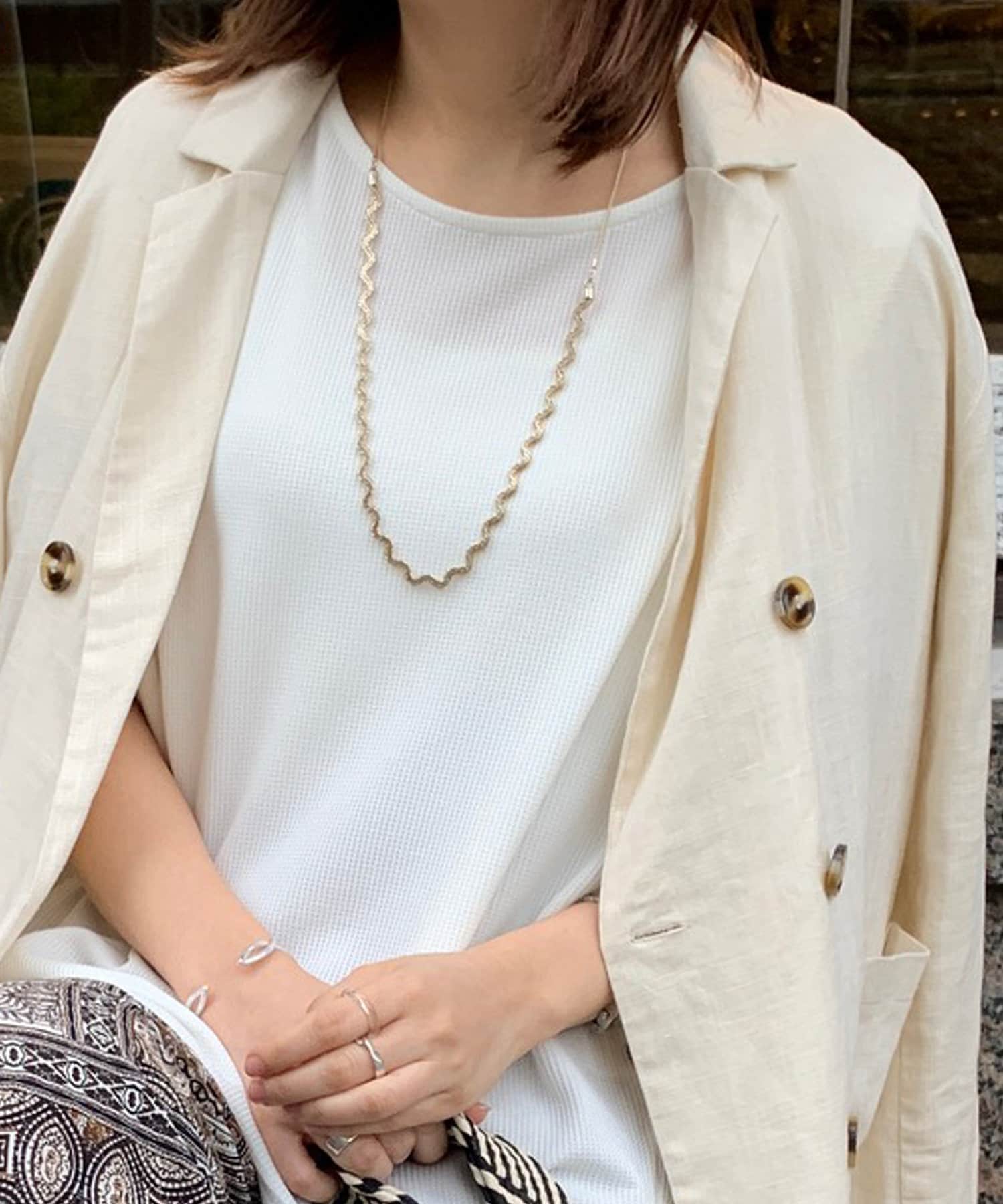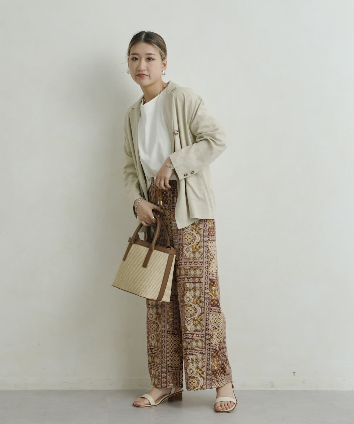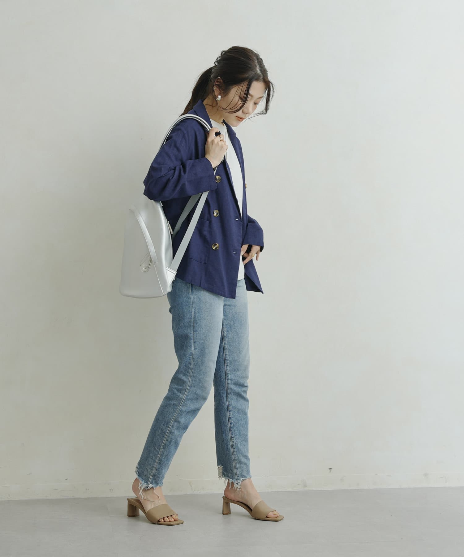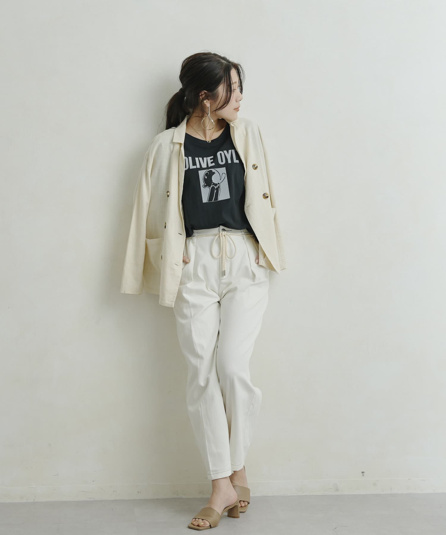 ・リネン素材のボトムと合わせてセットアップ風に着用するのも