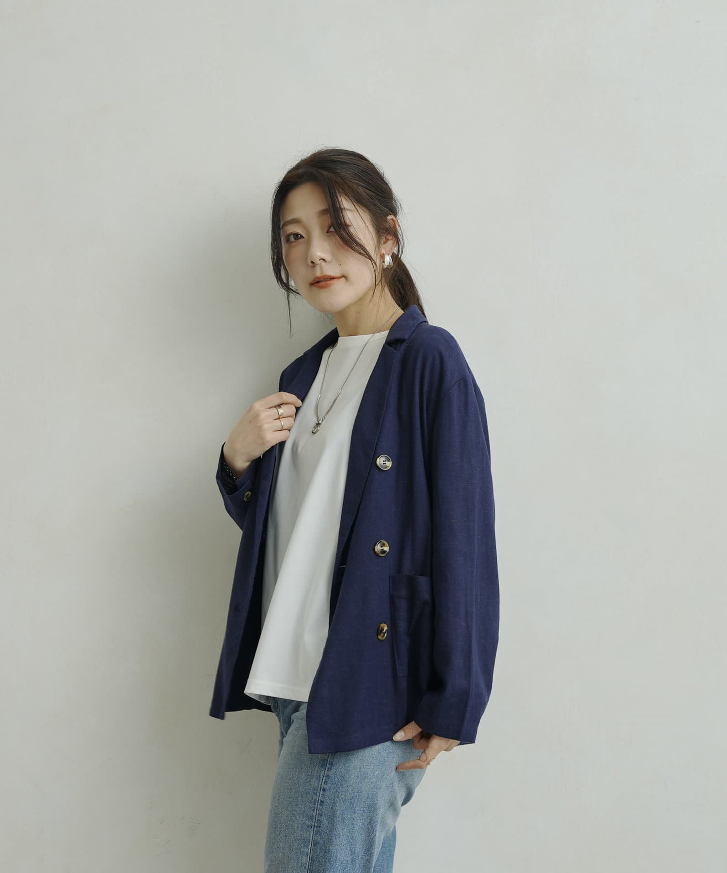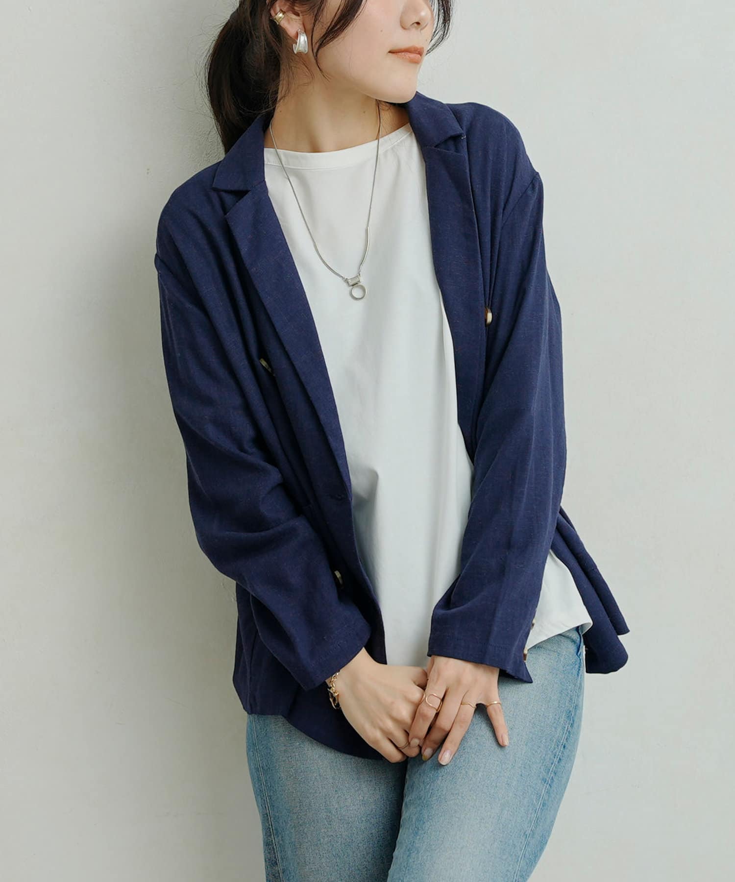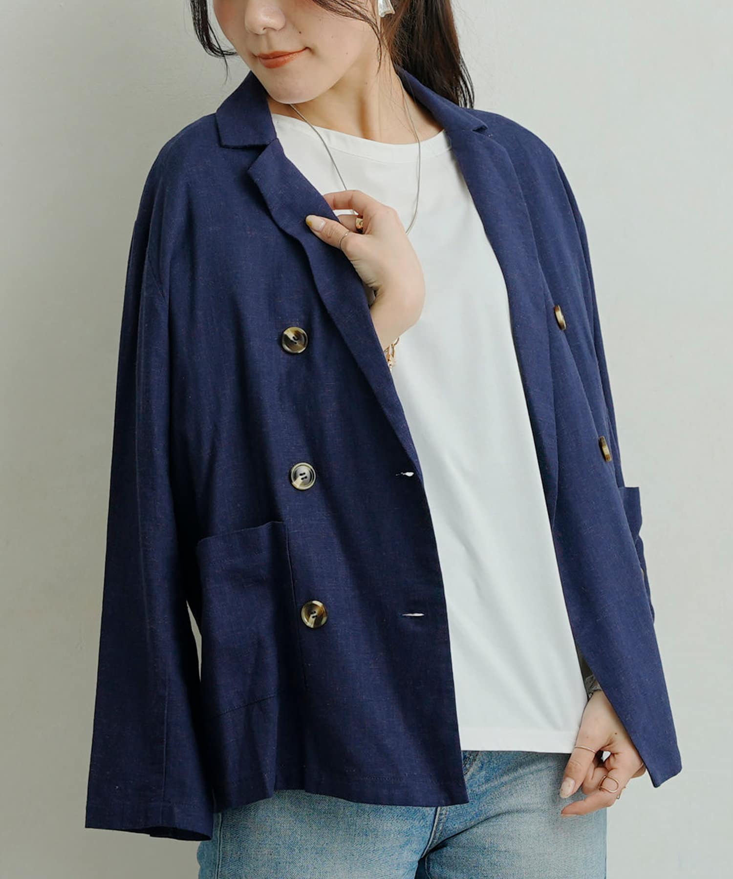 TOP > Chez toi > レディース > ジャケット/アウター > テーラードジャケット > 【着用動画あり】リネンテーラードジャケット