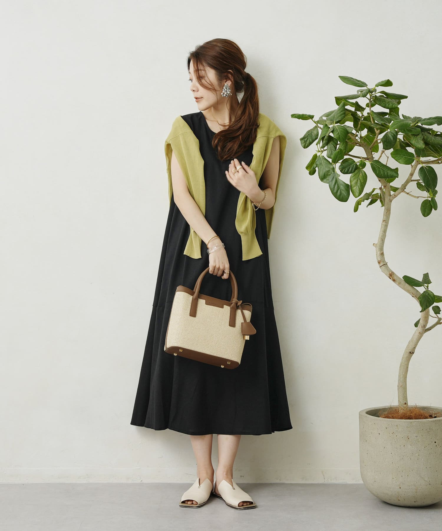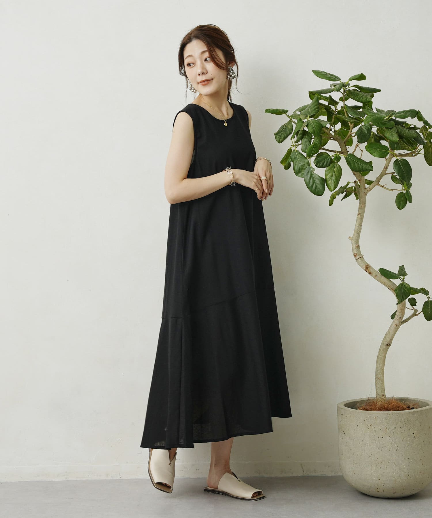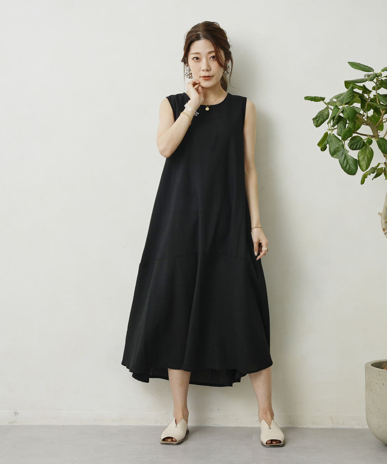 裾切替えのフレアラインが上品な大人スタイルを演出できるらくちんワンピース