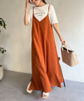 • Chez toi(シェトワ) 【着用動画あり】ロゴT×くるみボタンキャミワンピース