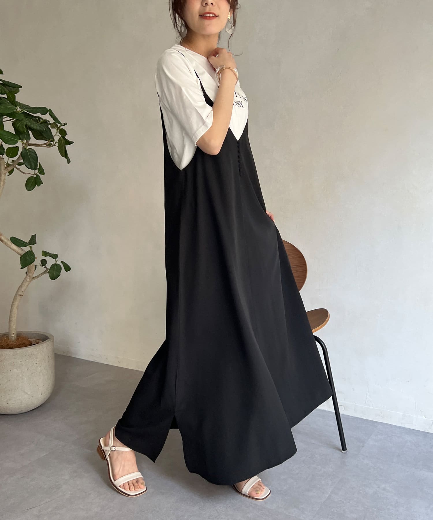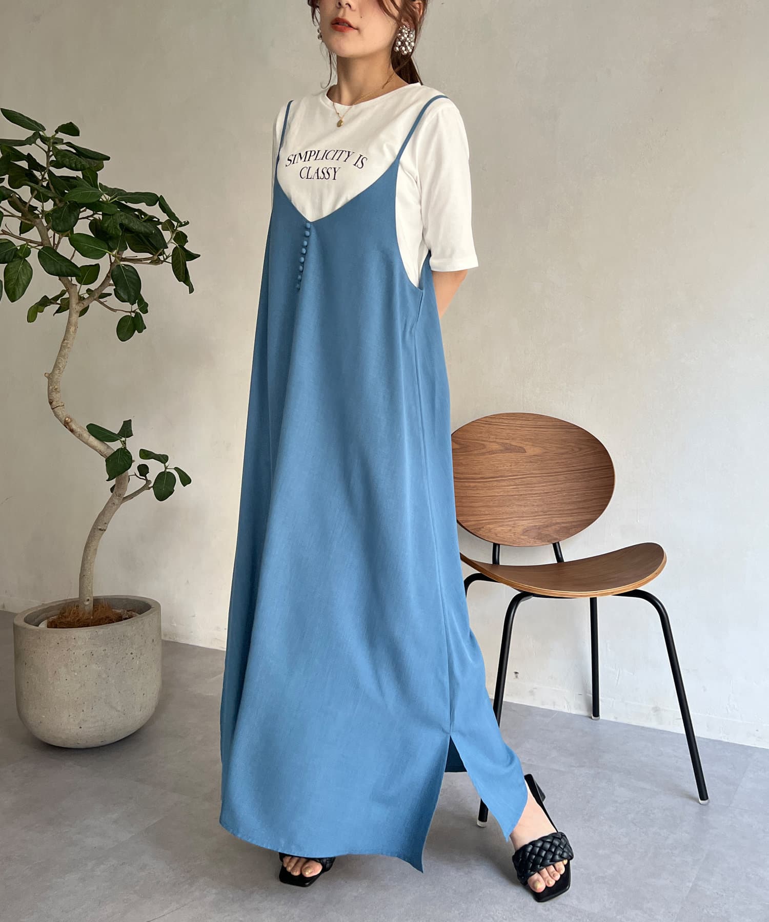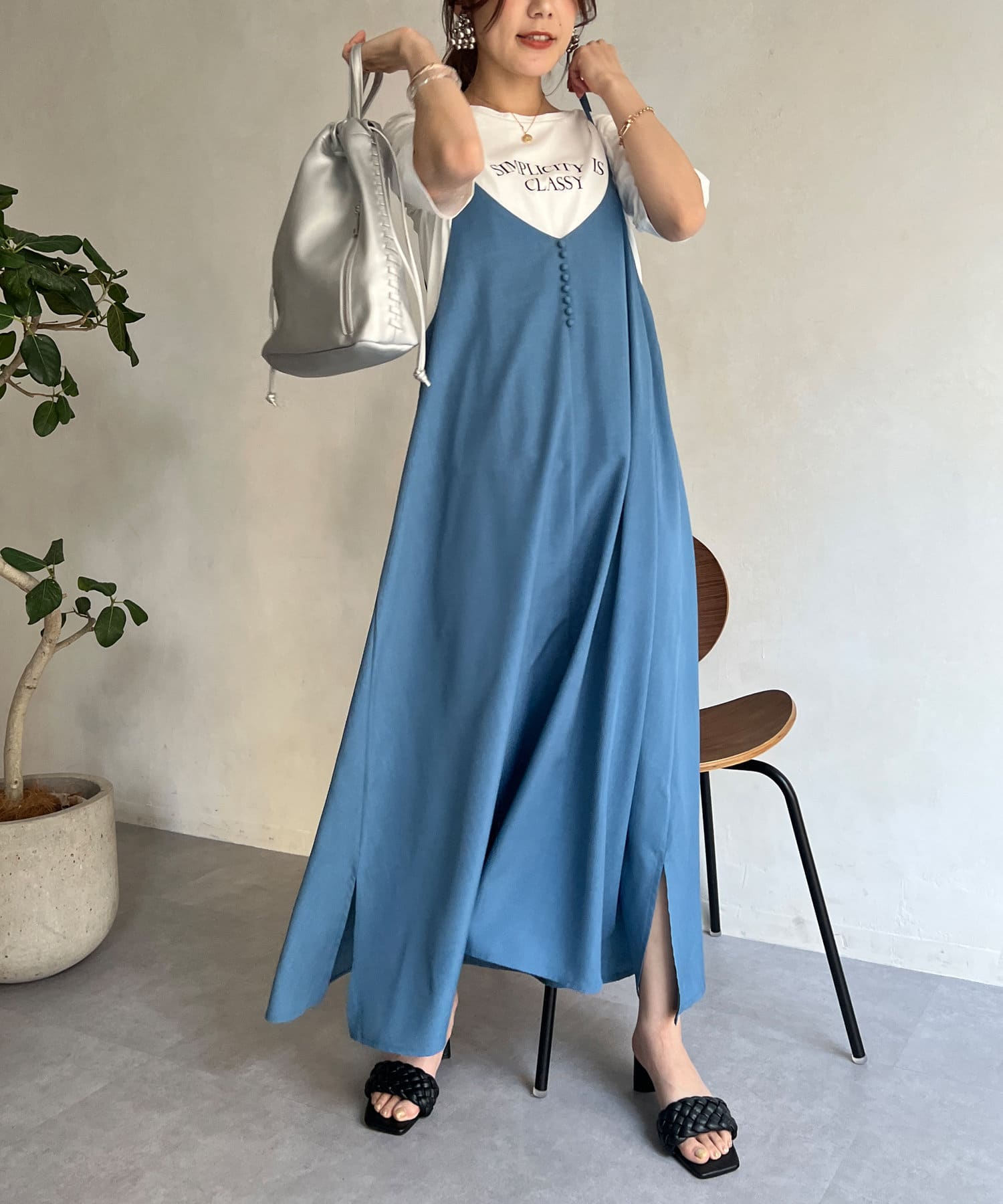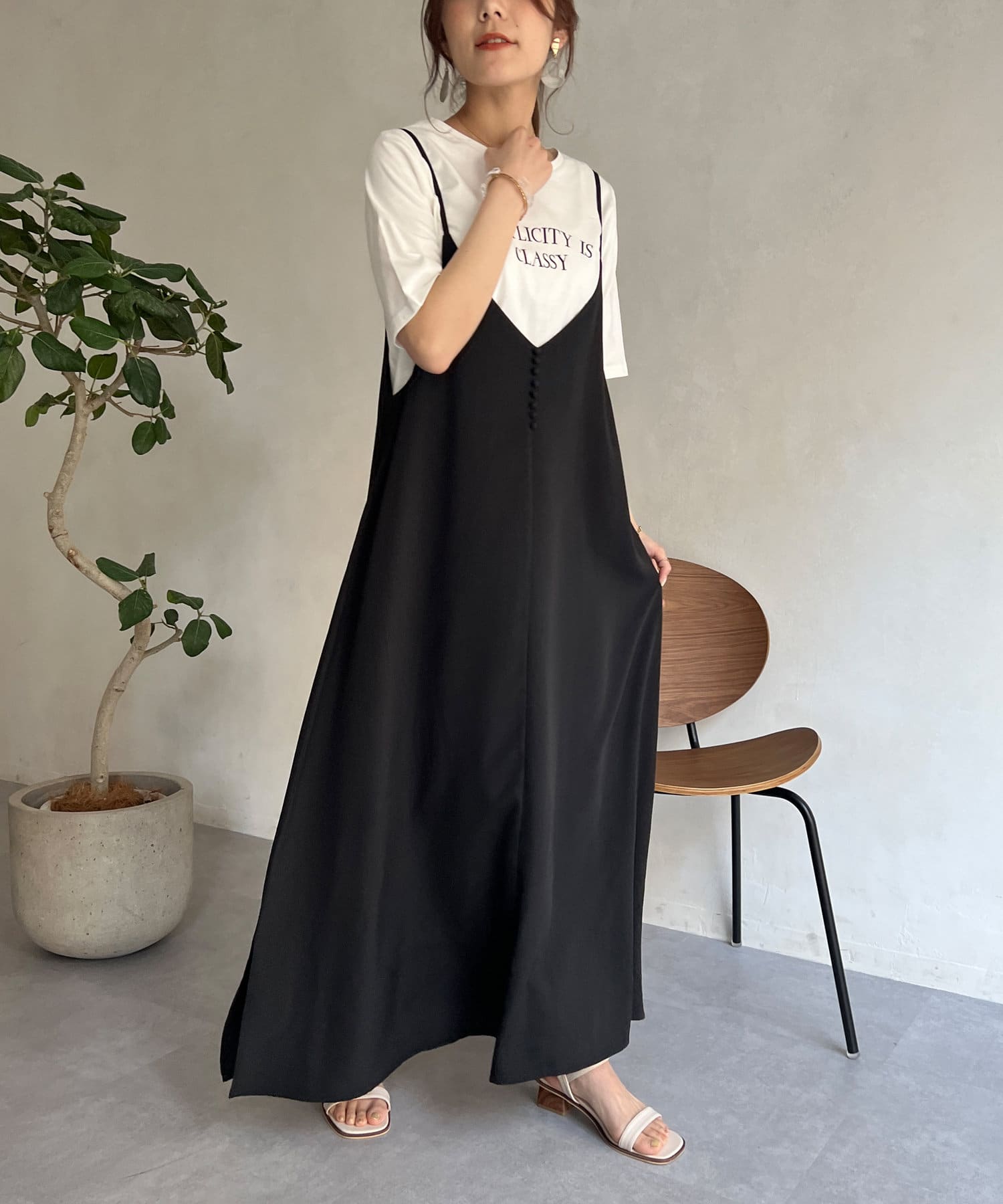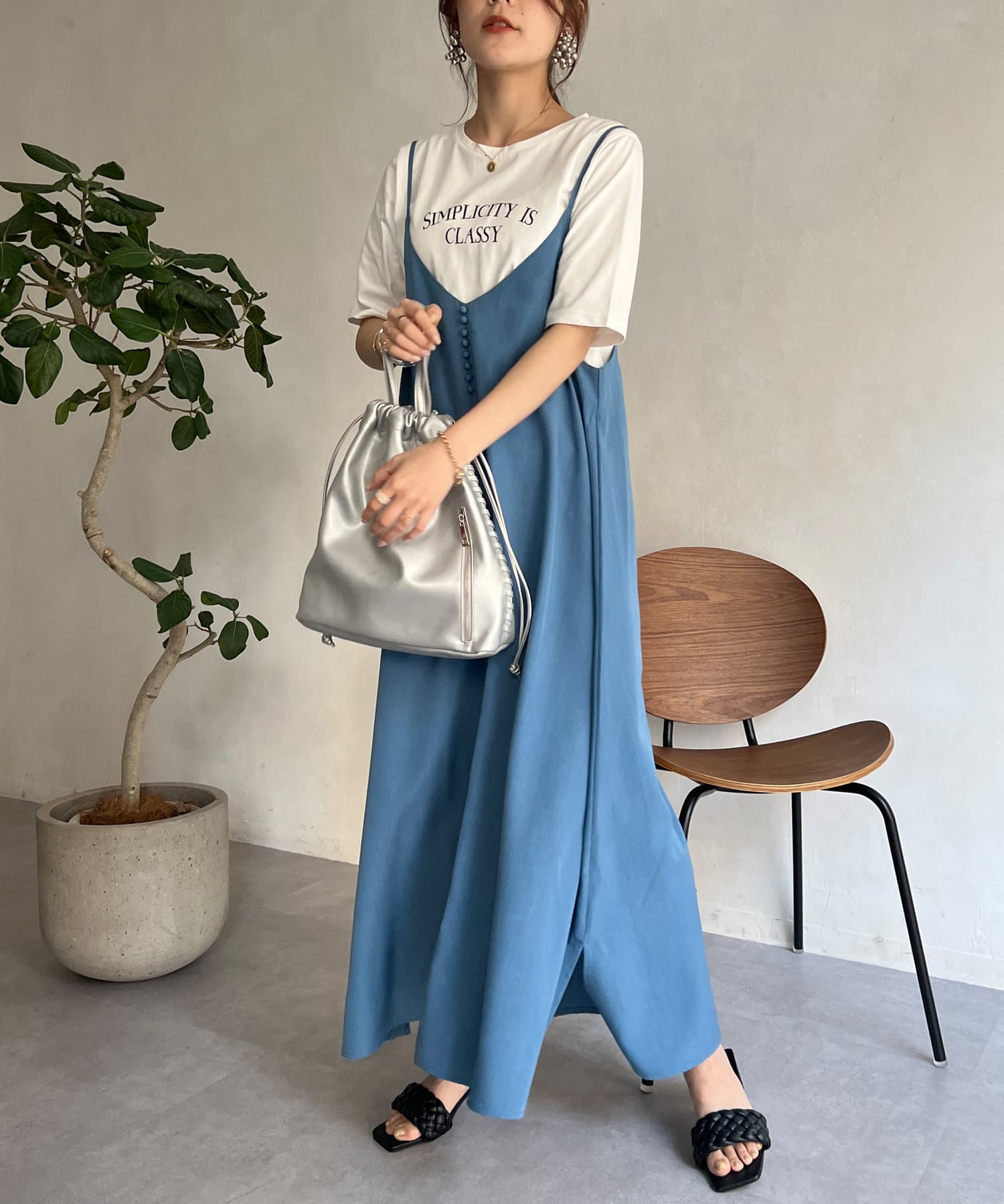 【着用動画あり】ロゴT×くるみボタンキャミワンピース