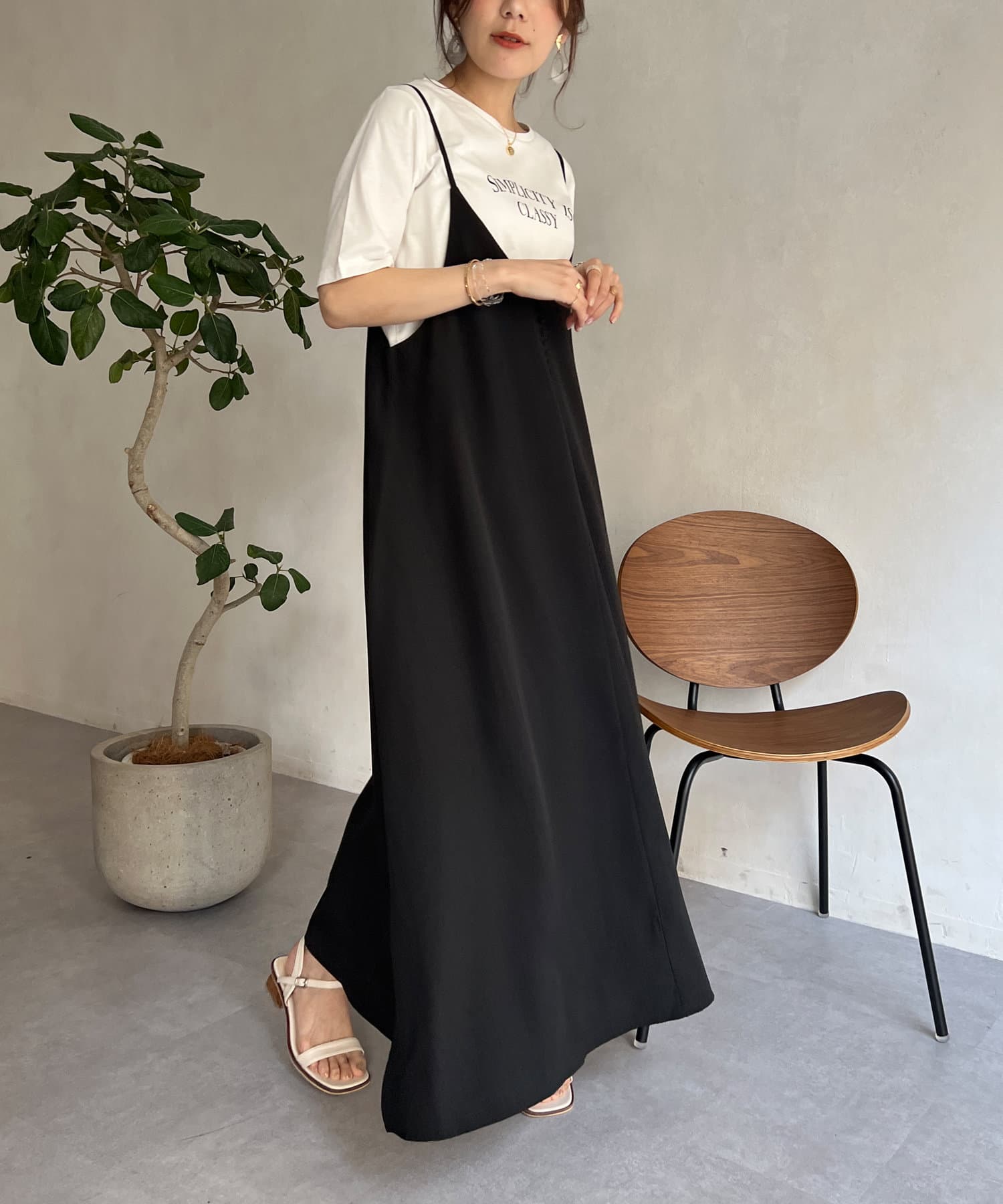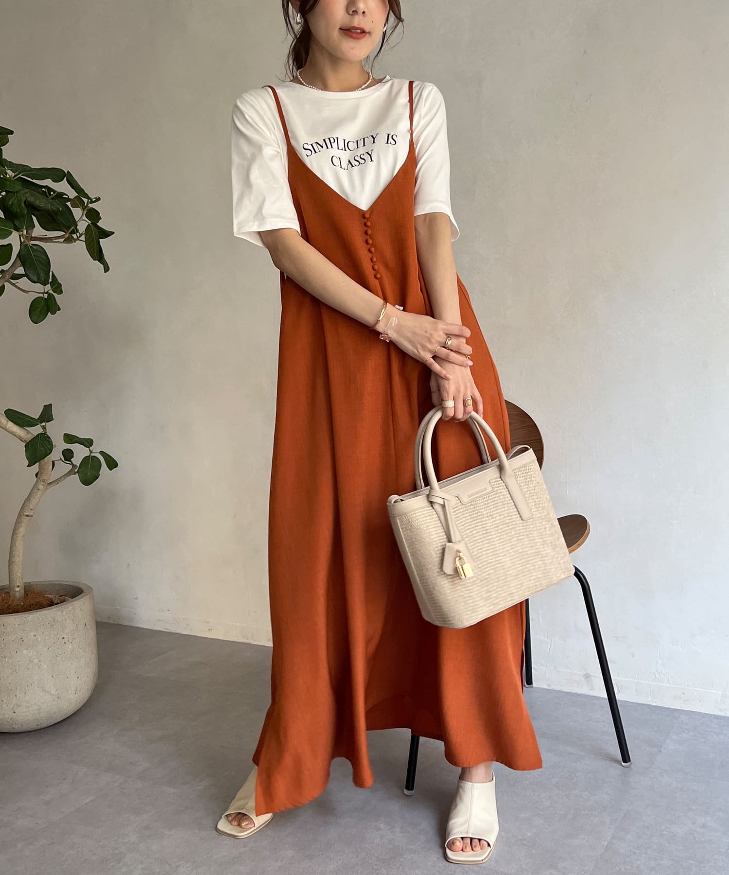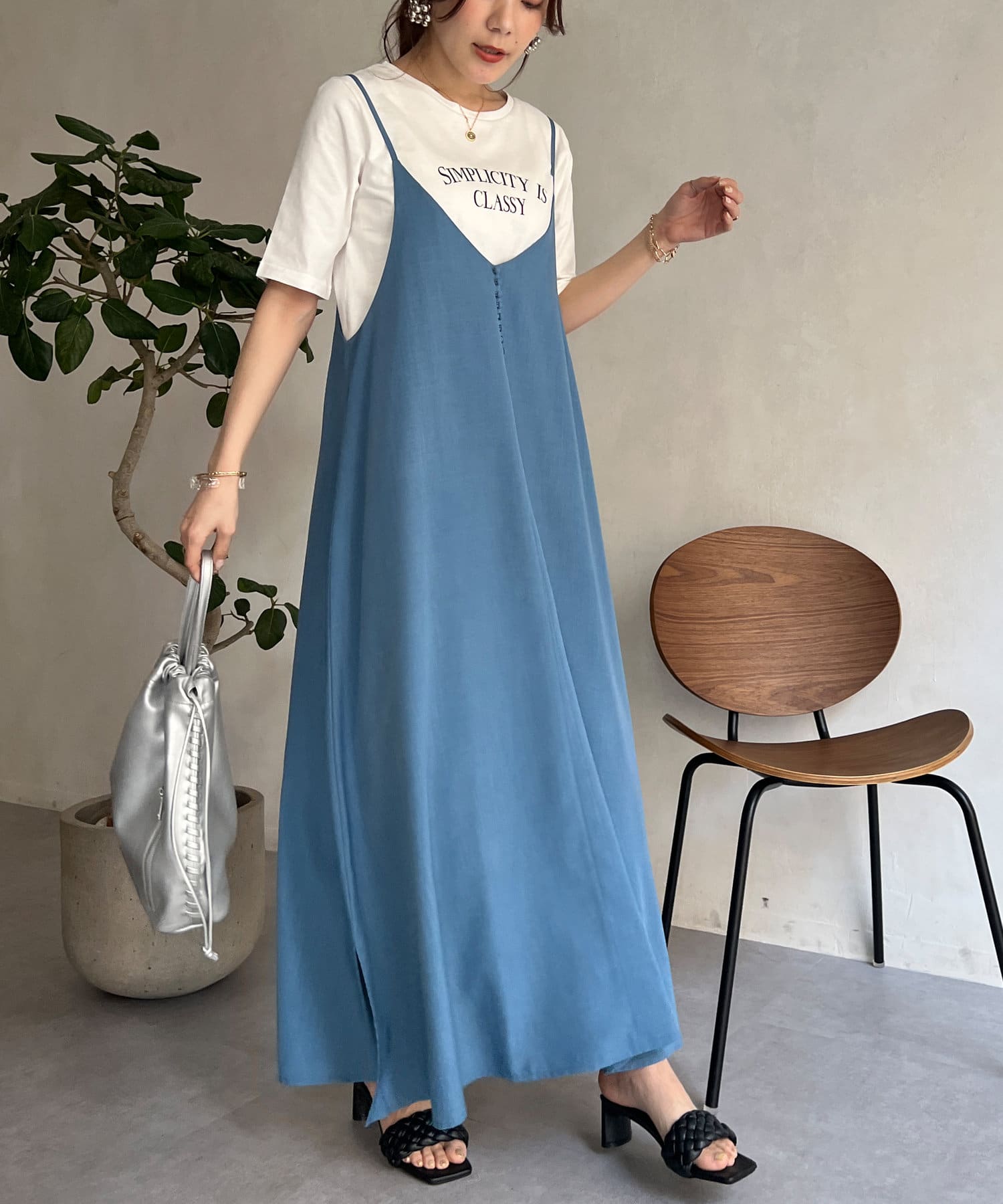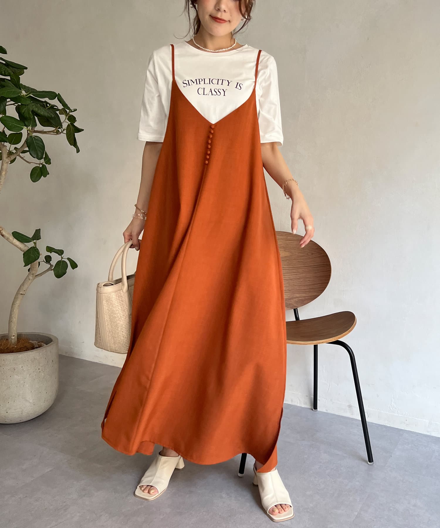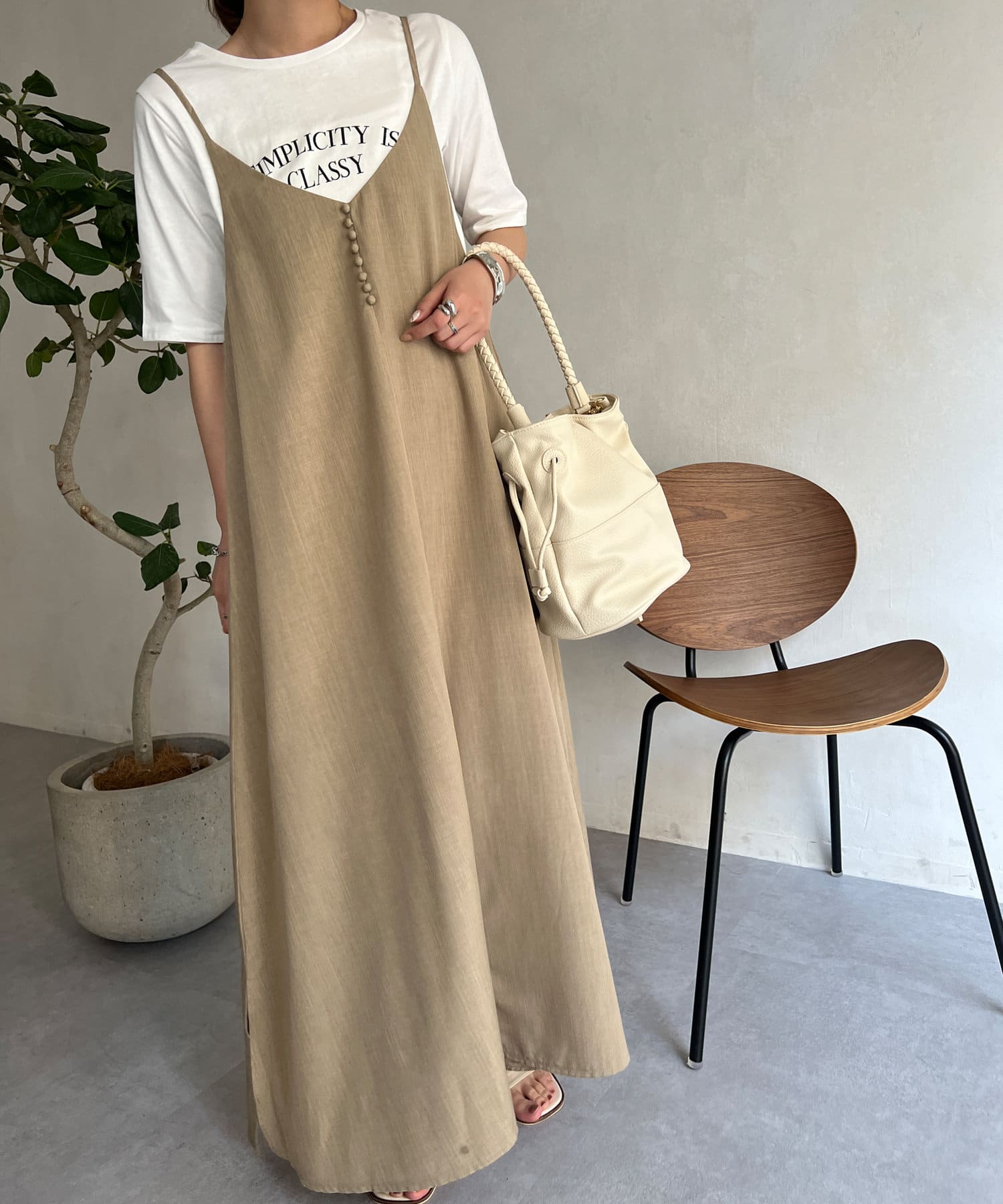 【着用動画あり】ロゴT×くるみボタンキャミワンピース