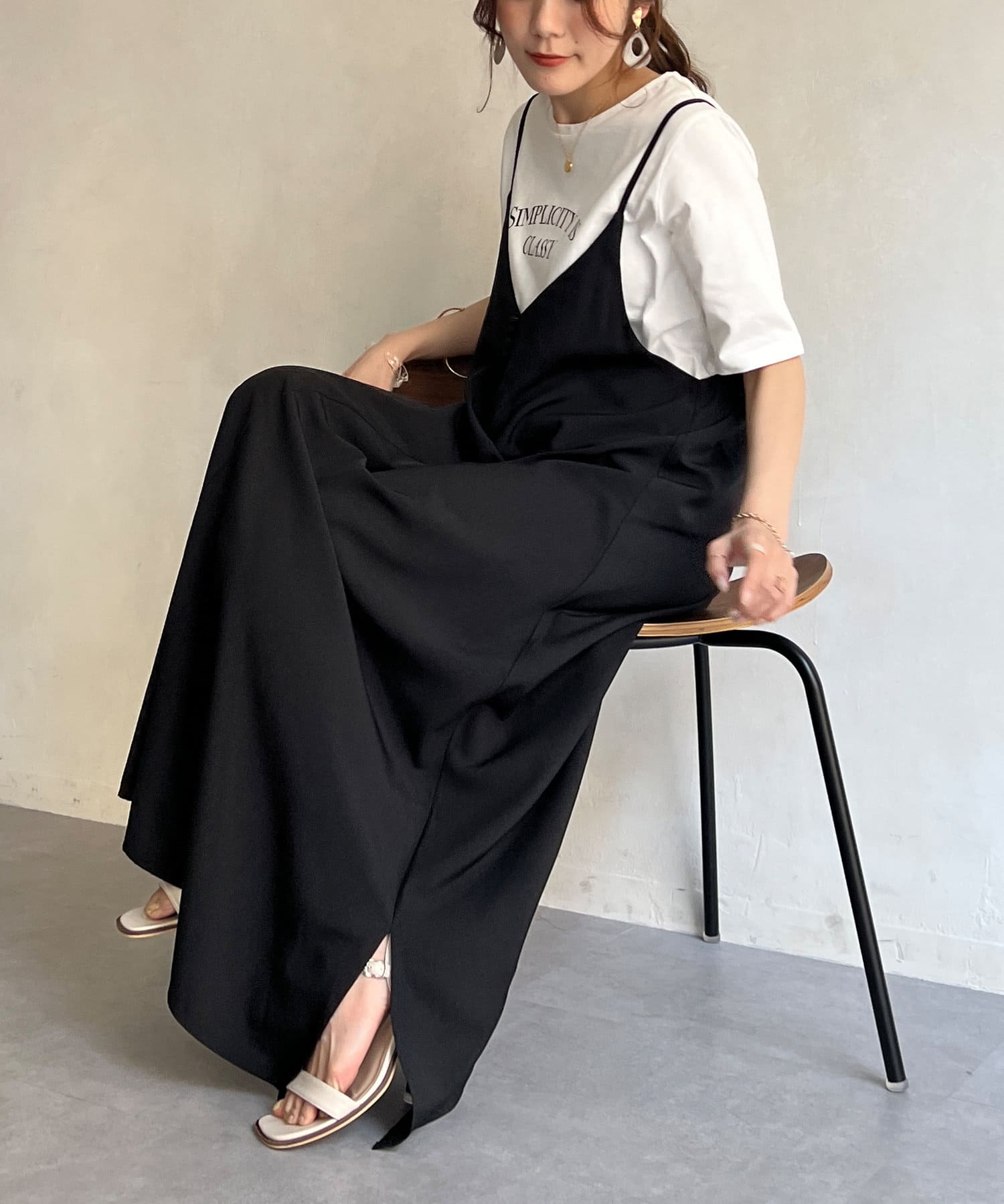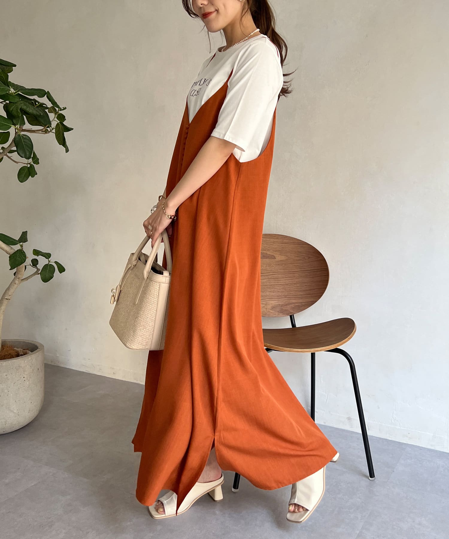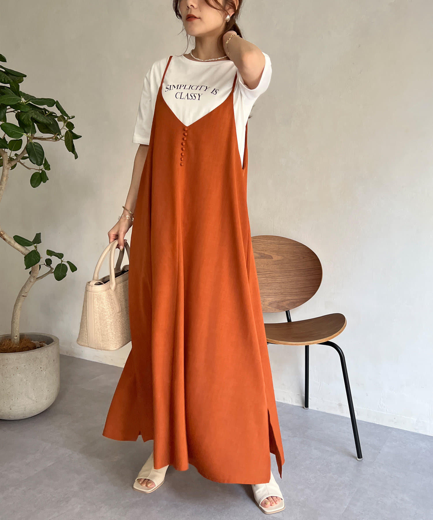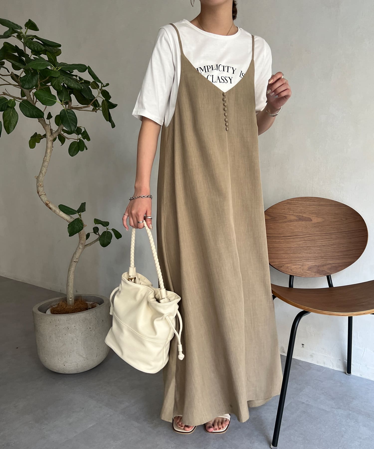 【着用動画あり】ロゴT×くるみボタンキャミワンピース