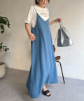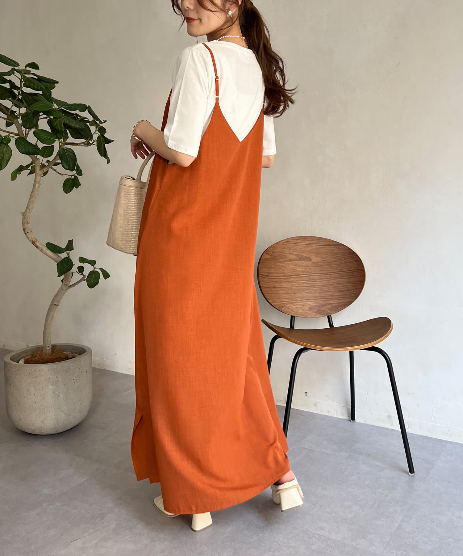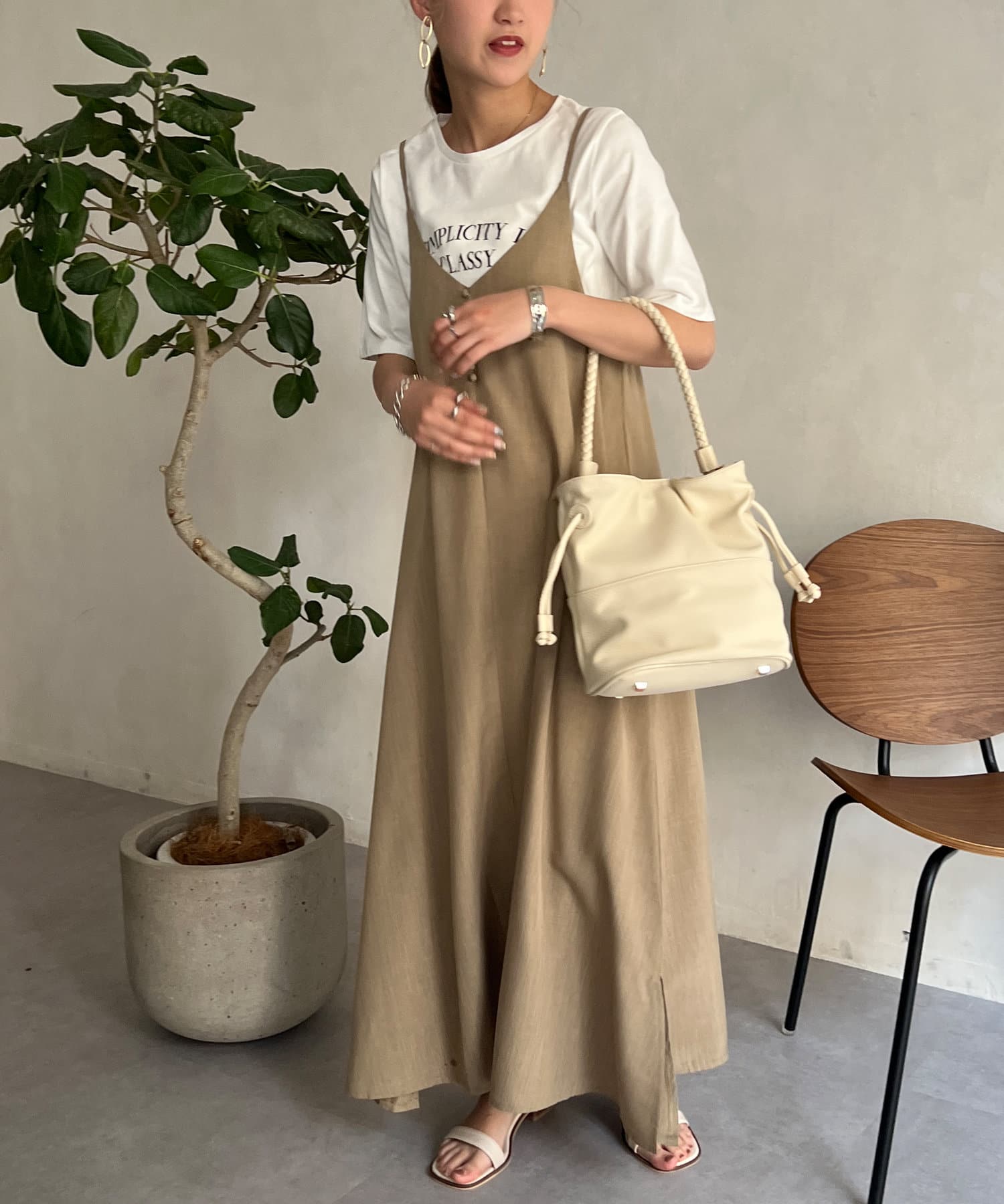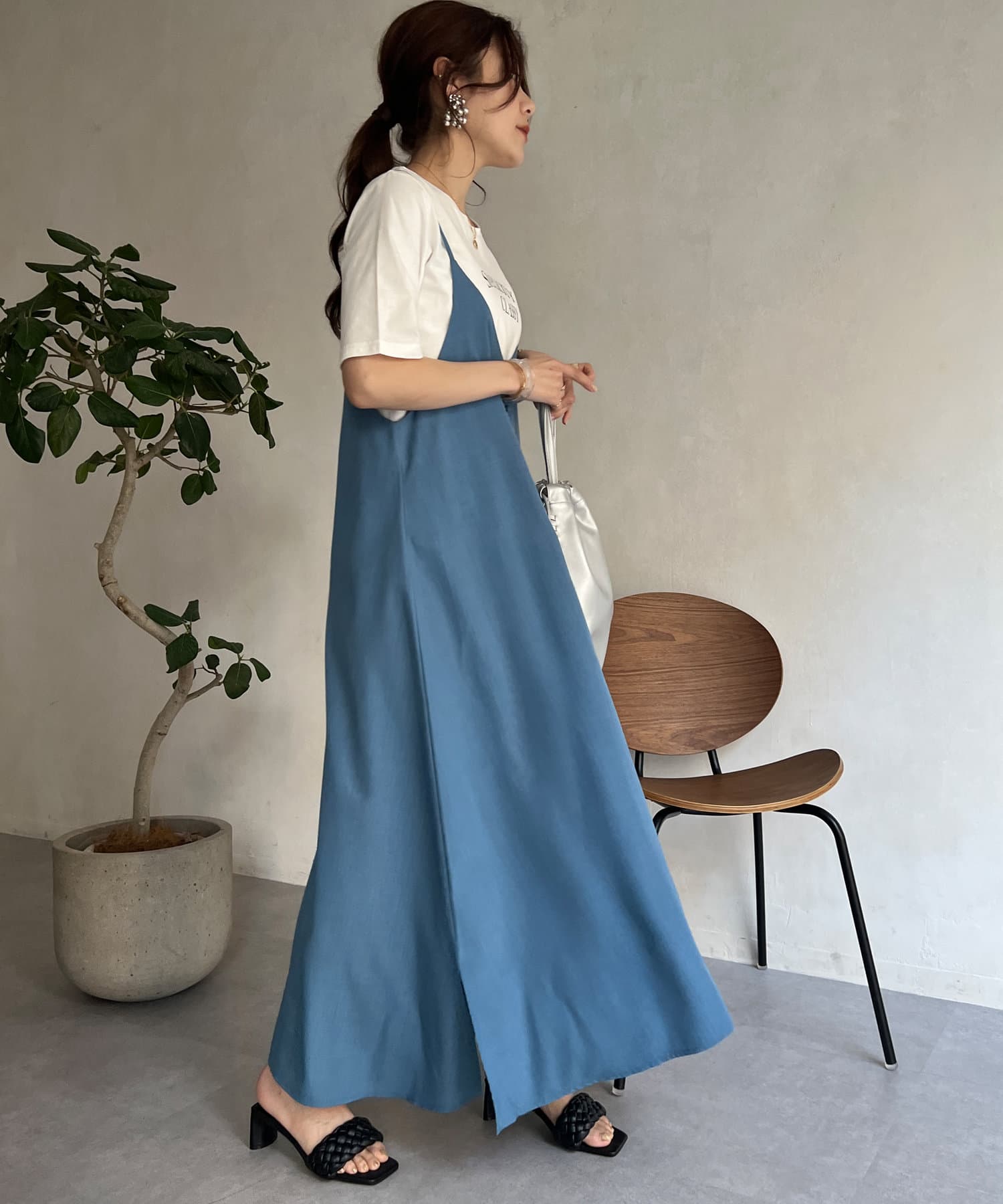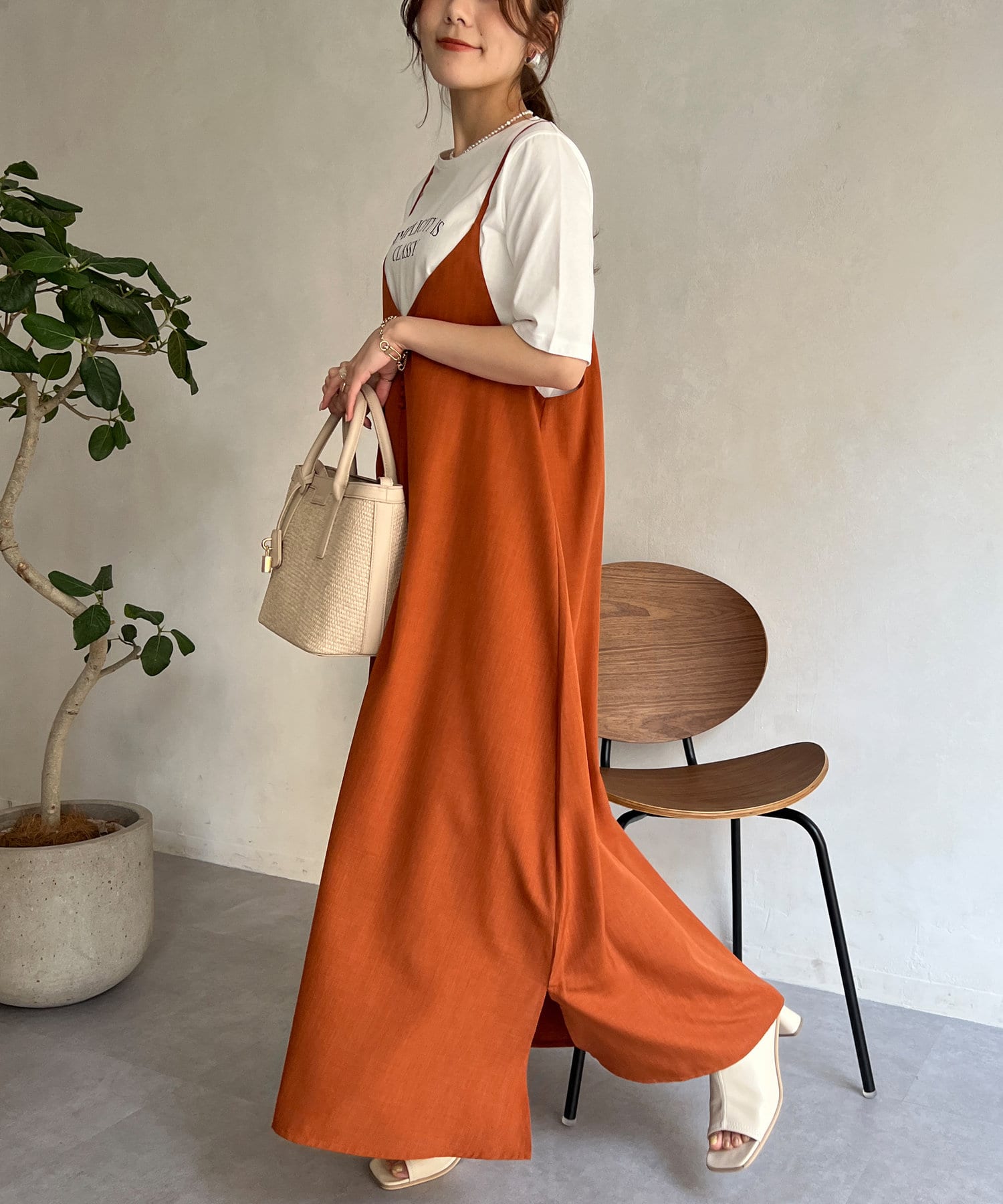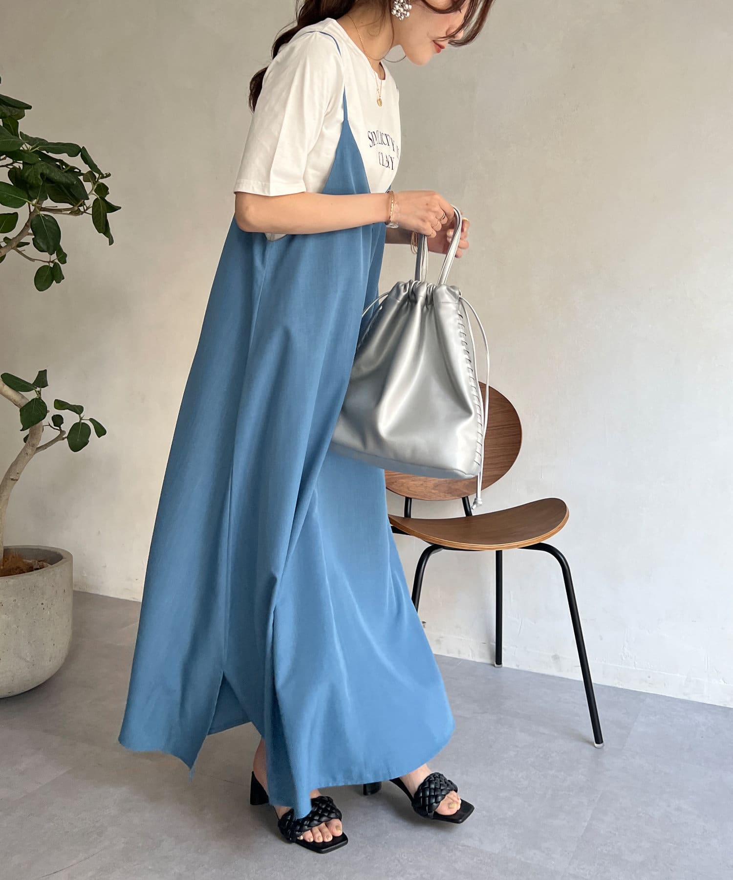 【着用動画あり】ロゴT×くるみボタンキャミワンピース