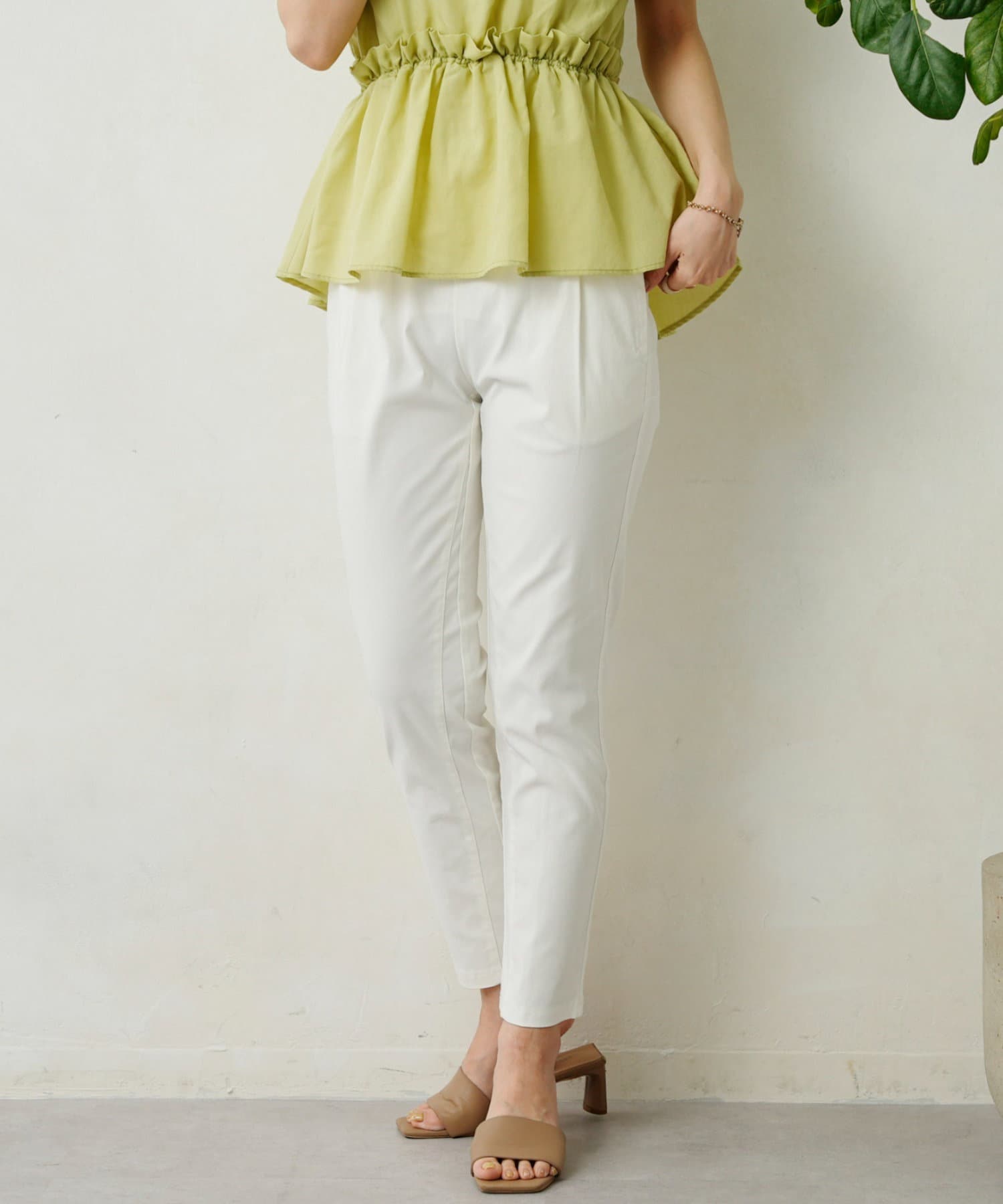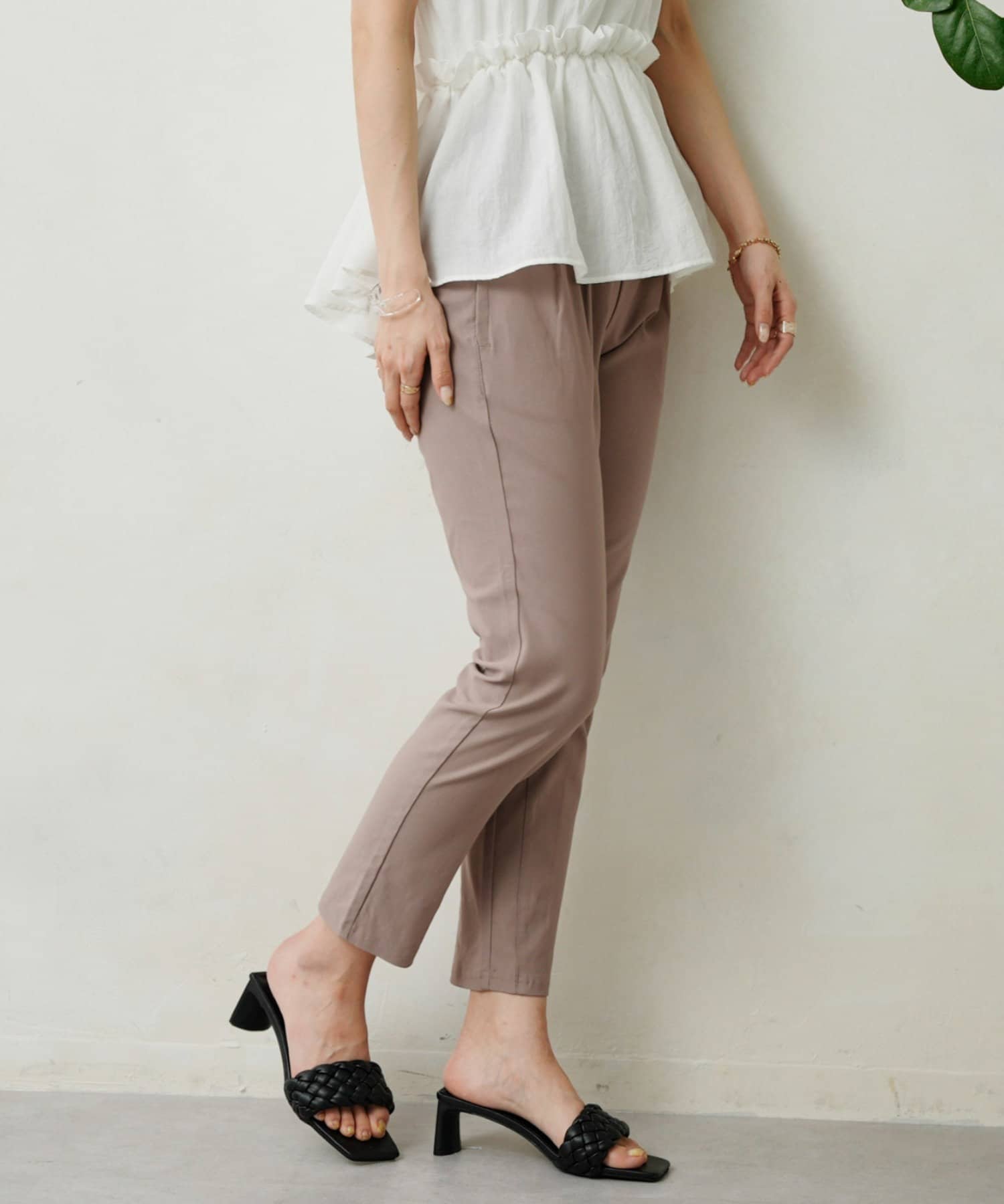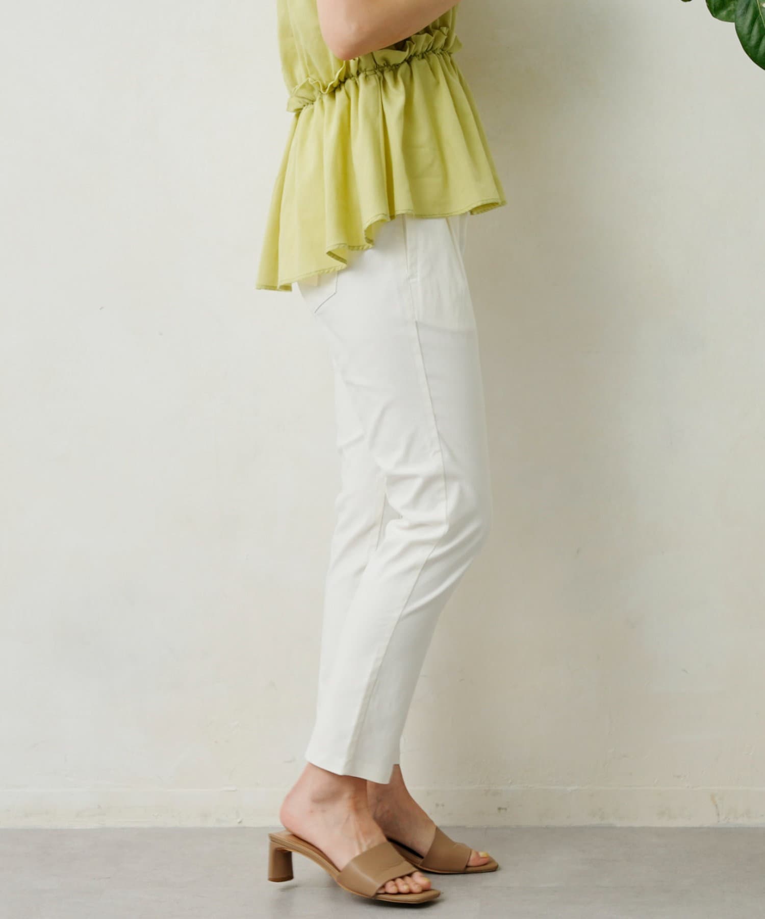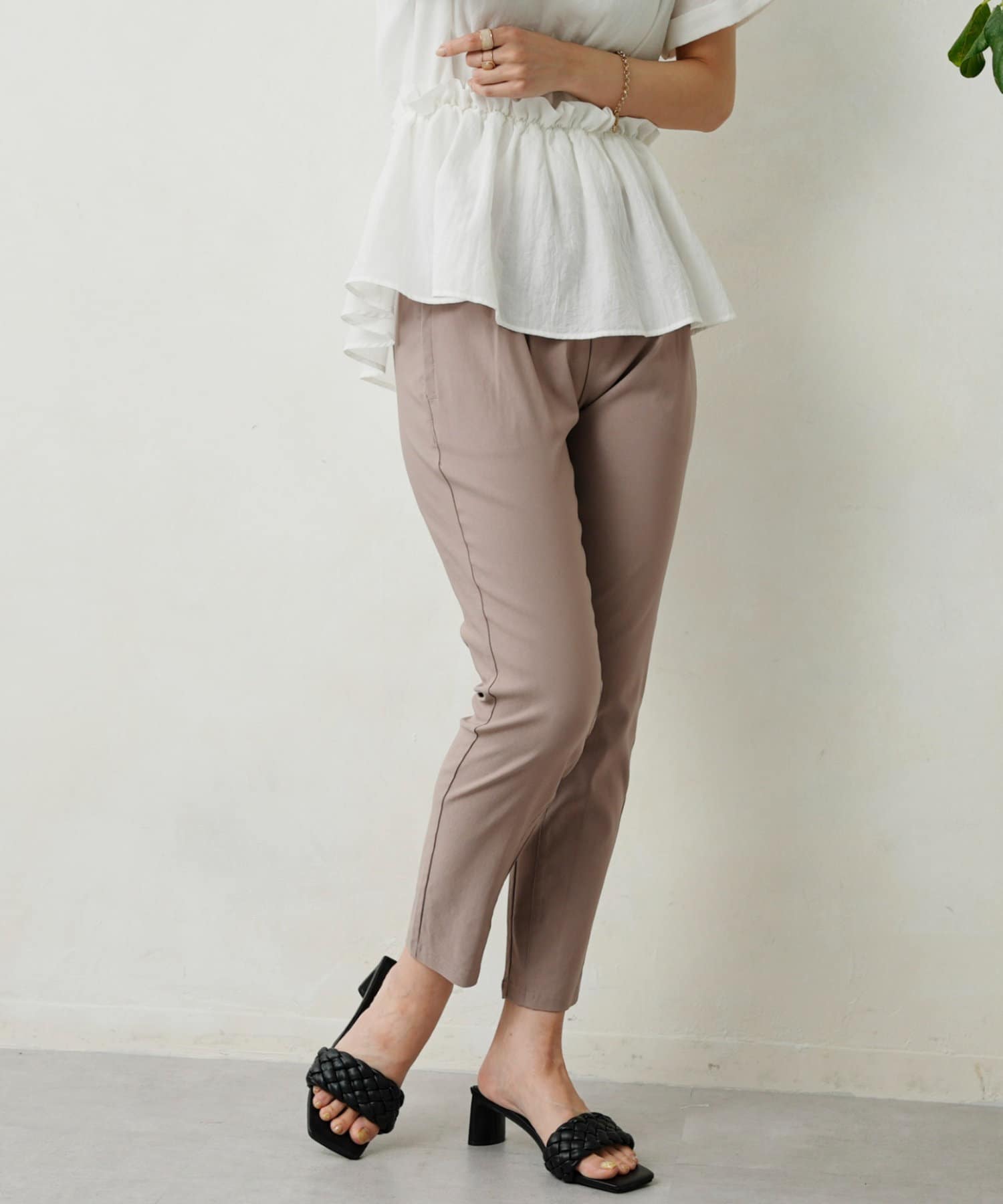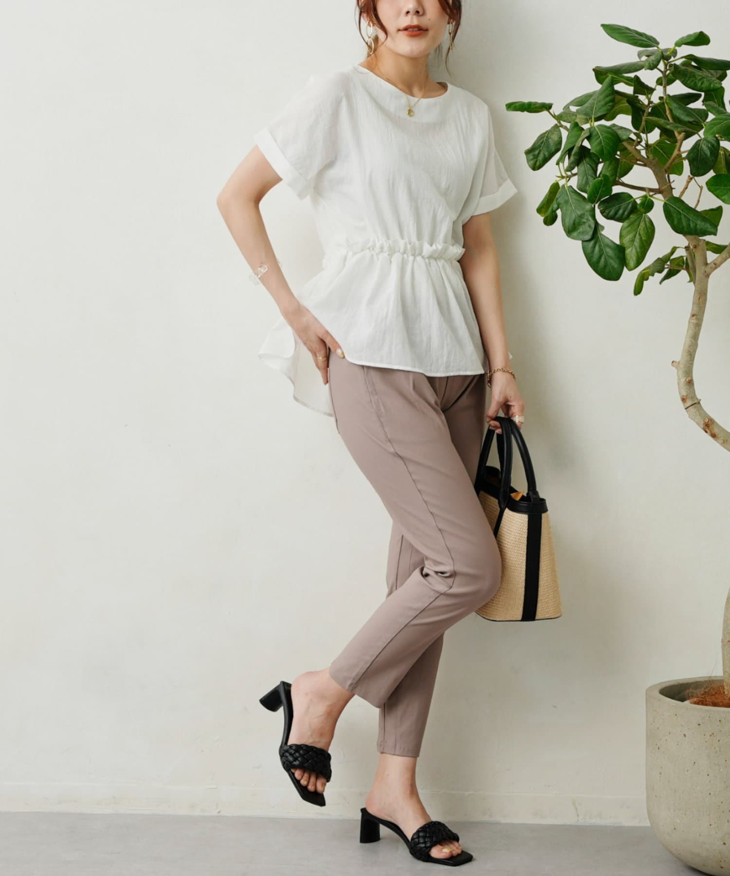 細身のパンツなので、ブラウスやチュニックやワンピースのレイヤード