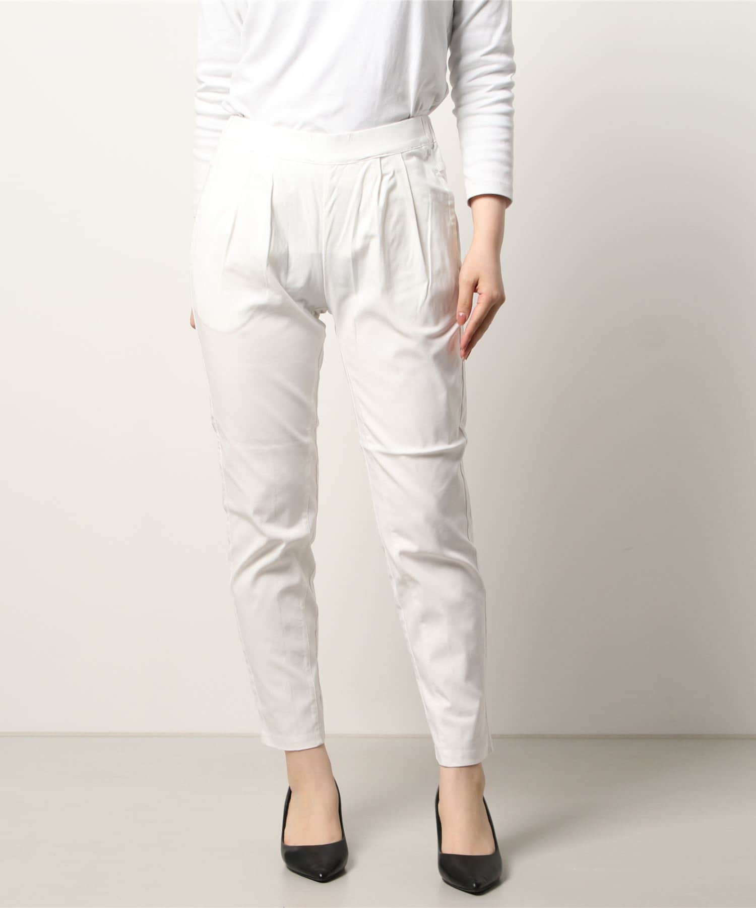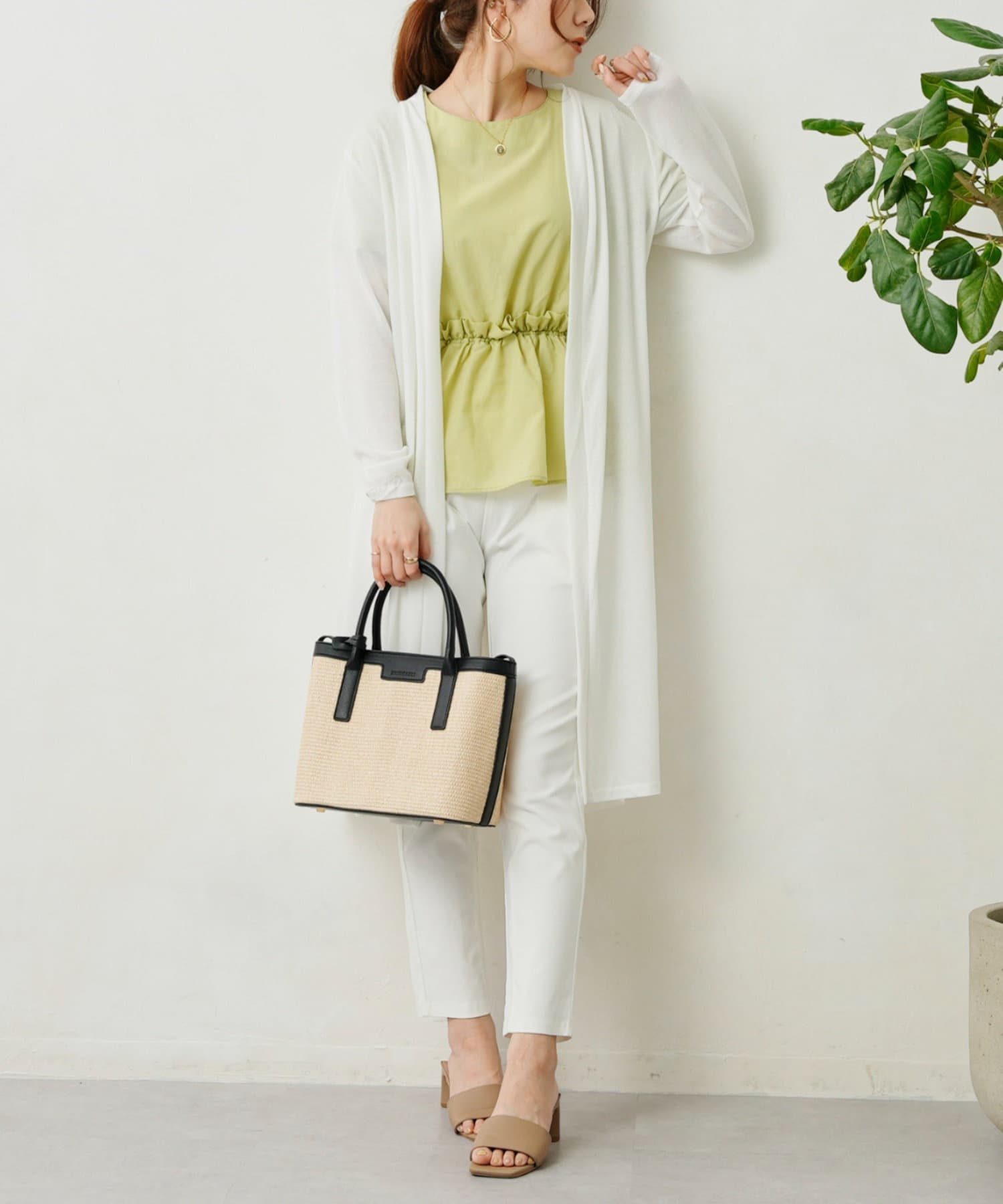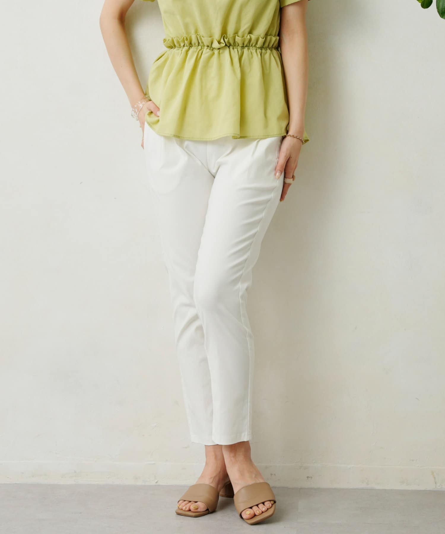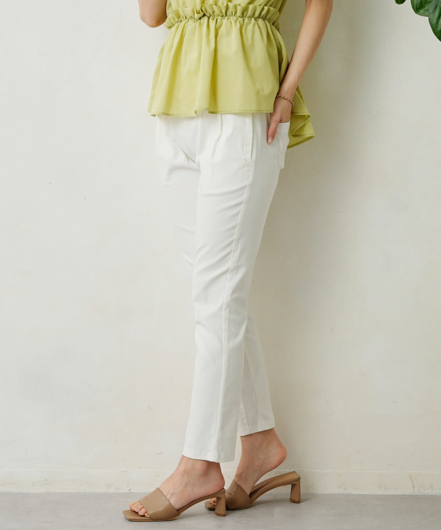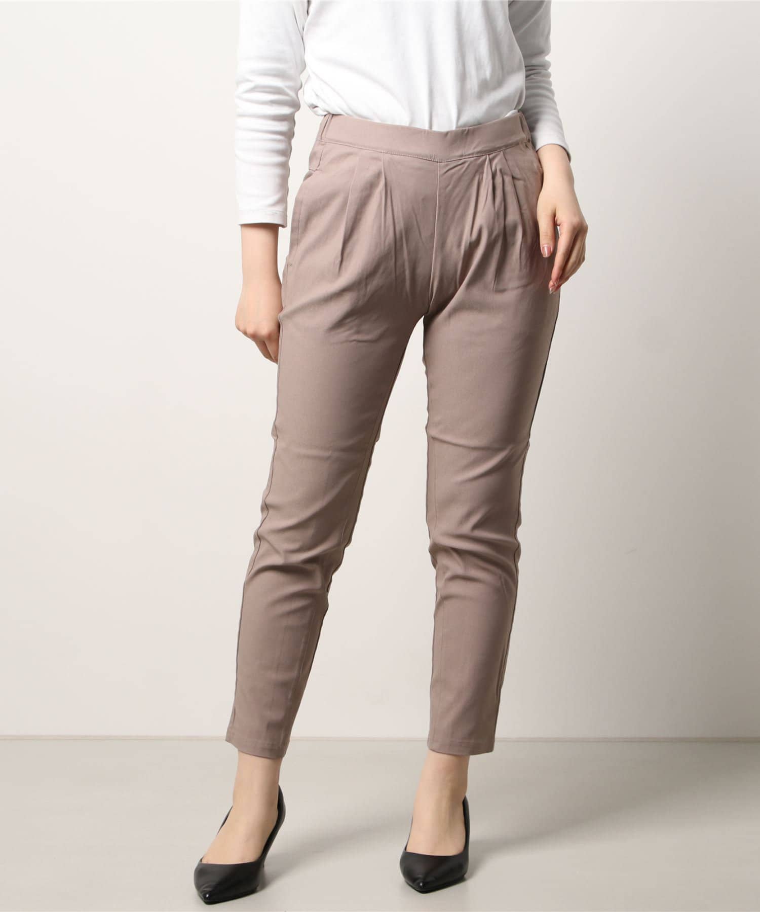 細身のパンツなので、ブラウスやチュニックやワンピースのレイヤード
