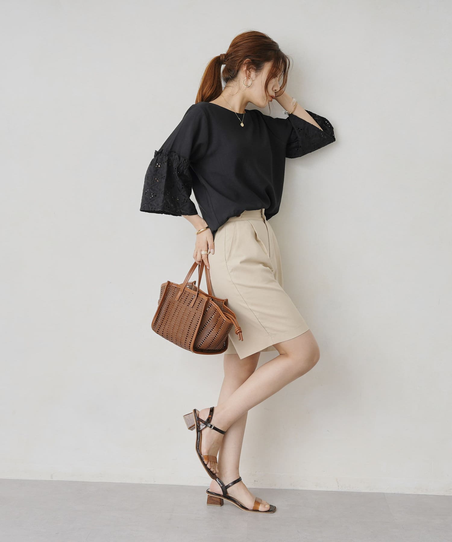 ・ひざ上の短すぎない丈感で大人の女性も穿きやすい。
