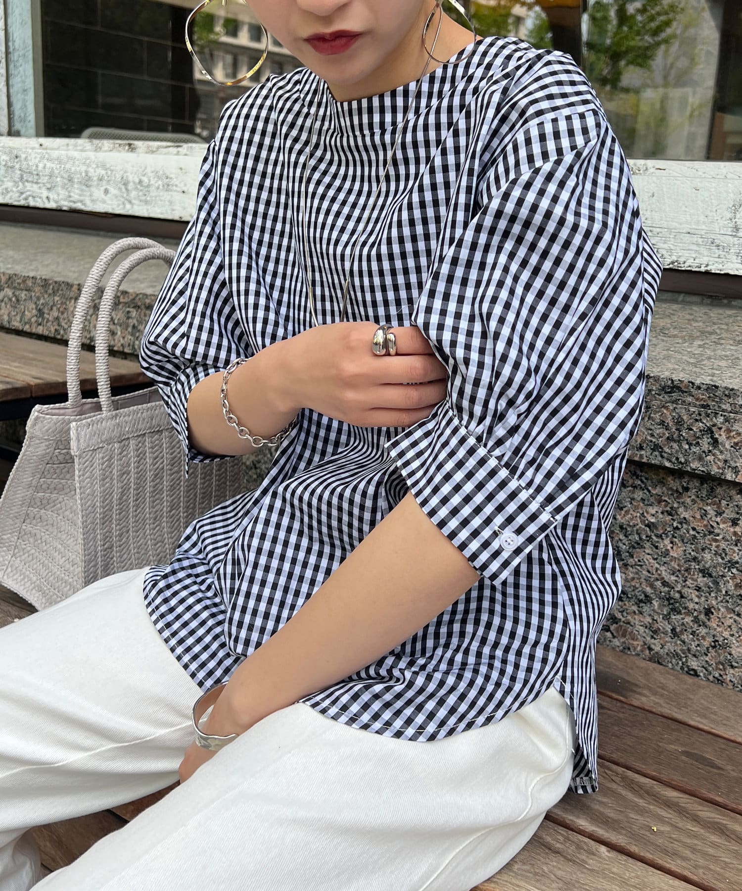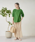 ・ボートネックのシルエットでデコルテを上品にきれいに見せてくれます。