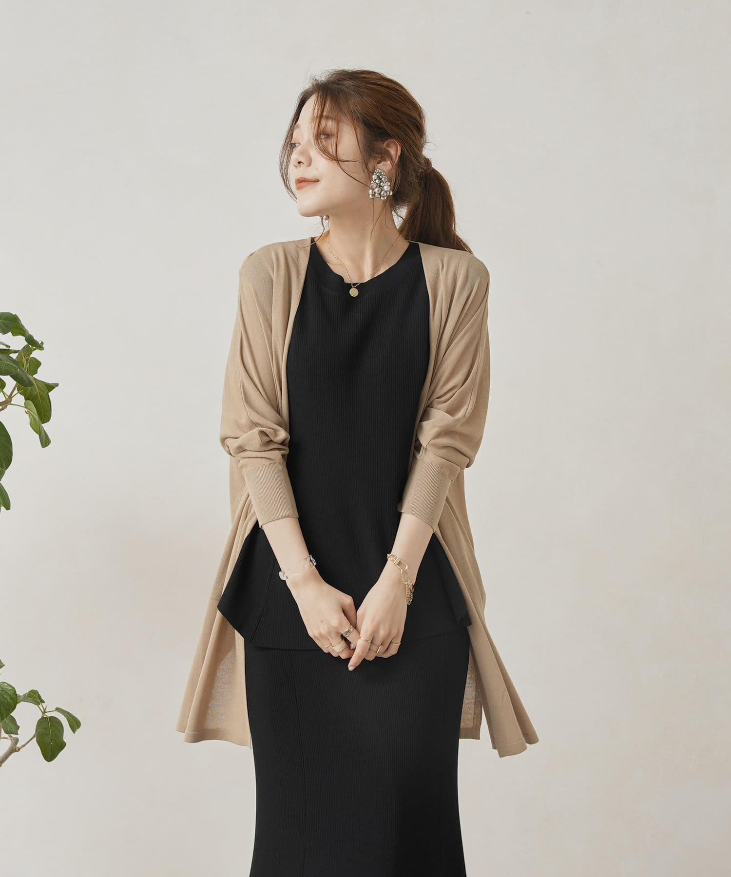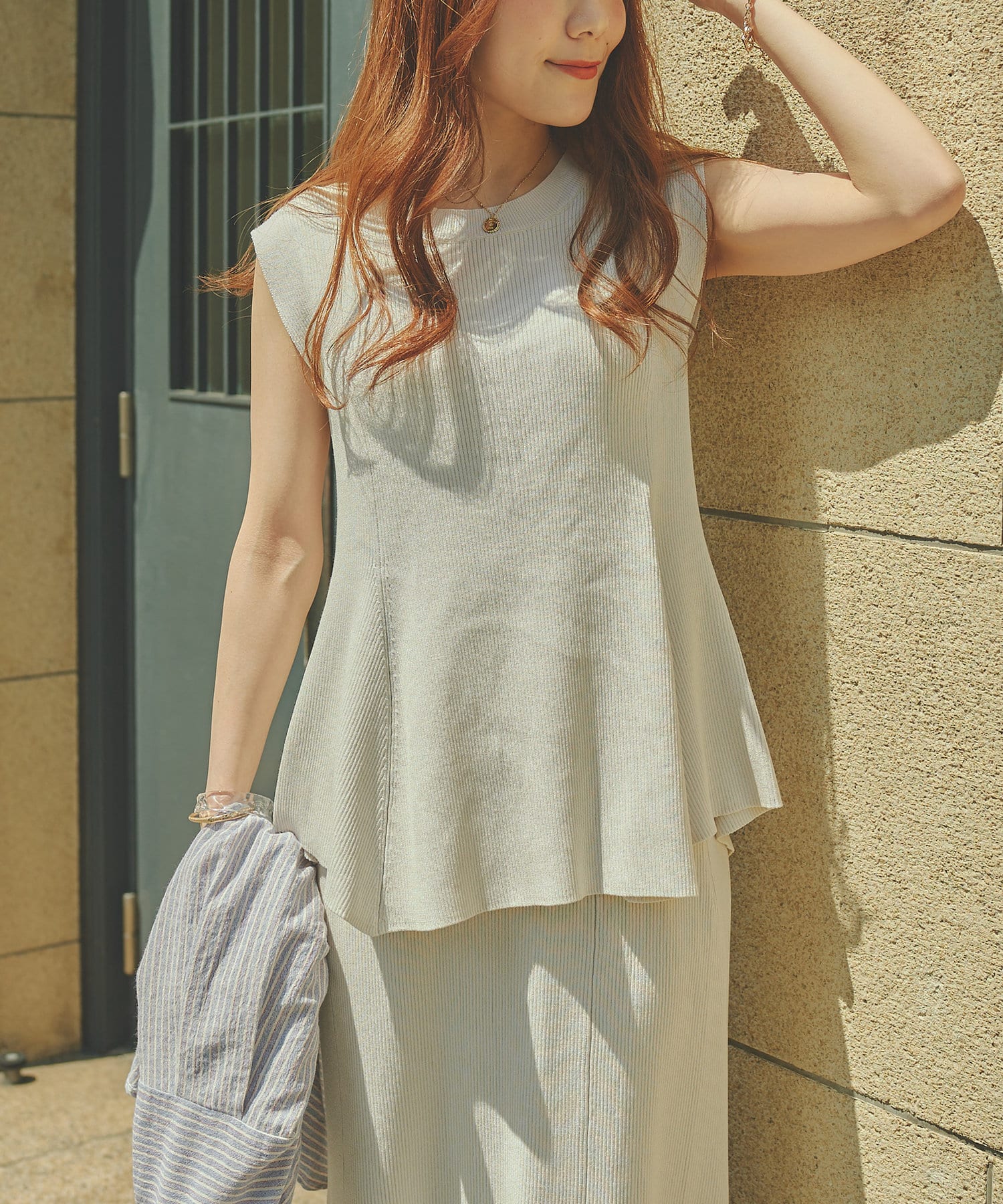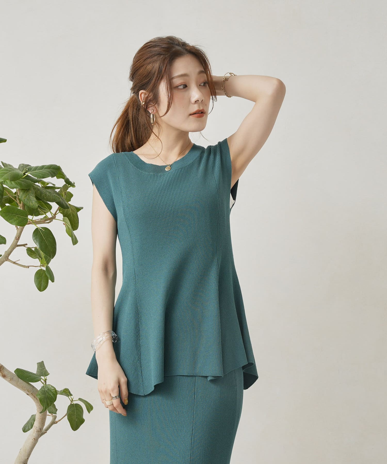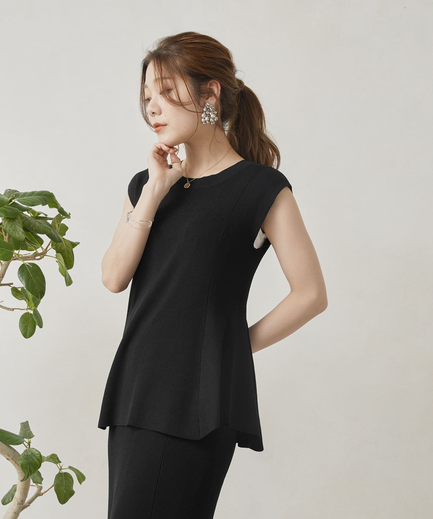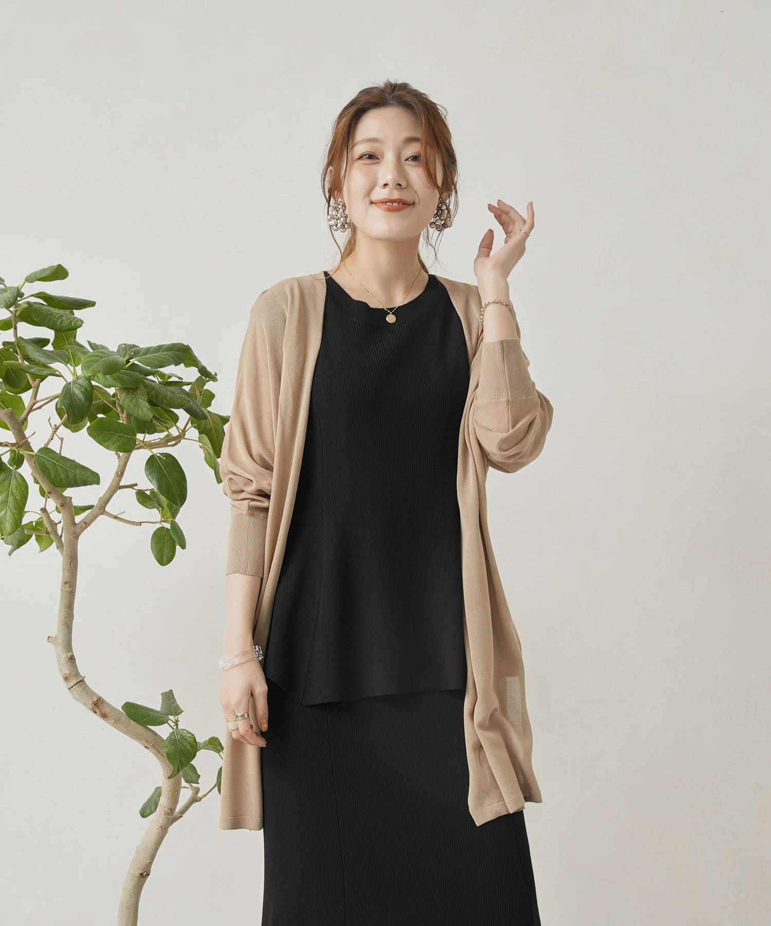 ・伸縮性のあるリブニット。フィット感があり、ストレスフリーな着心地。