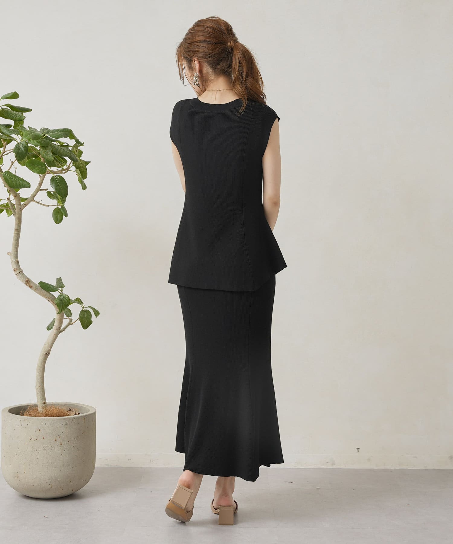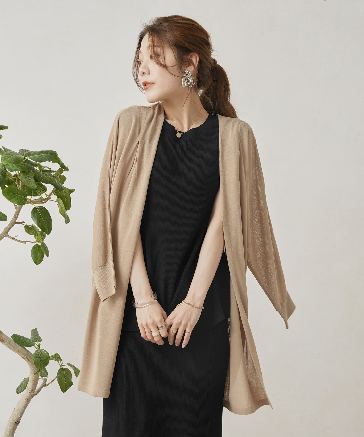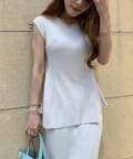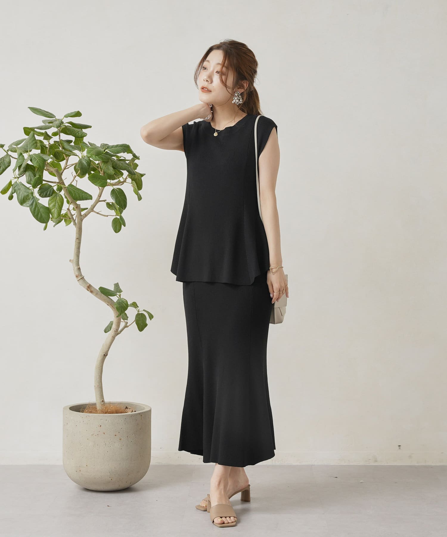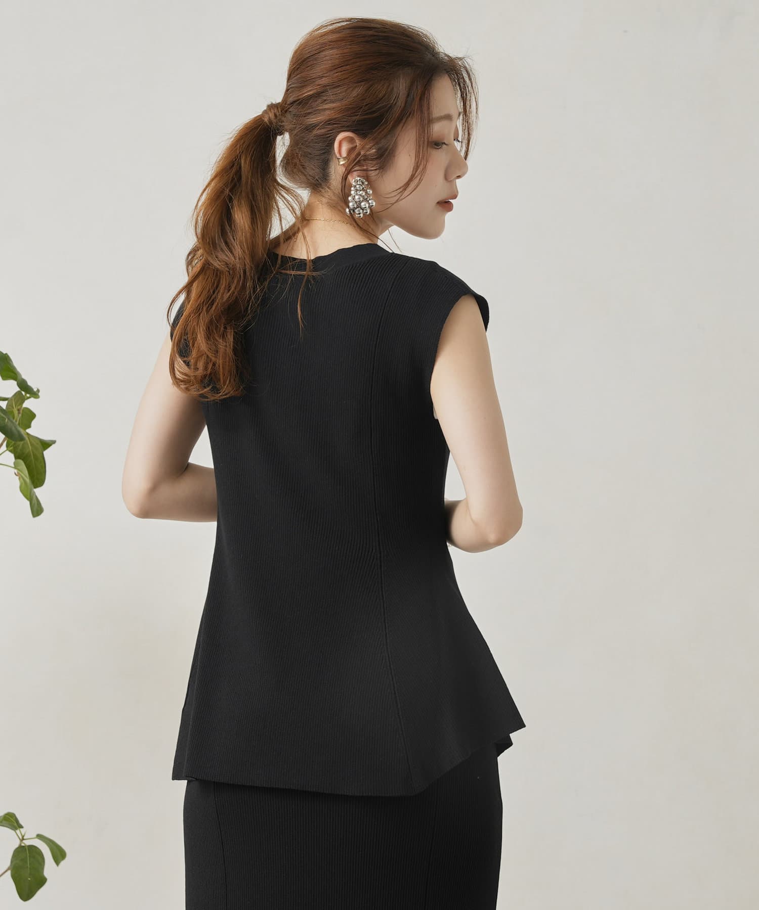 ・伸縮性のあるリブニット。フィット感があり、ストレスフリーな着心地。